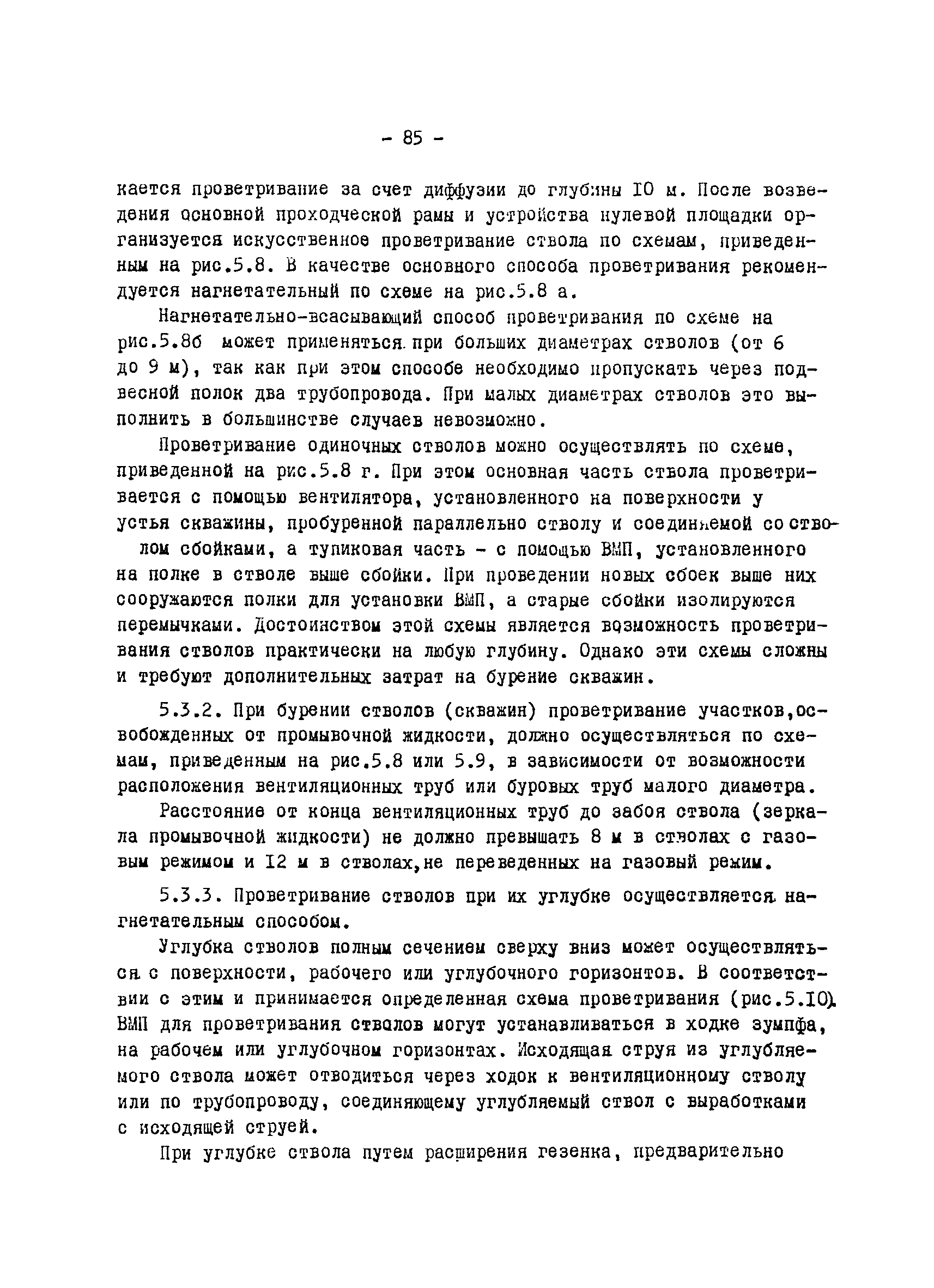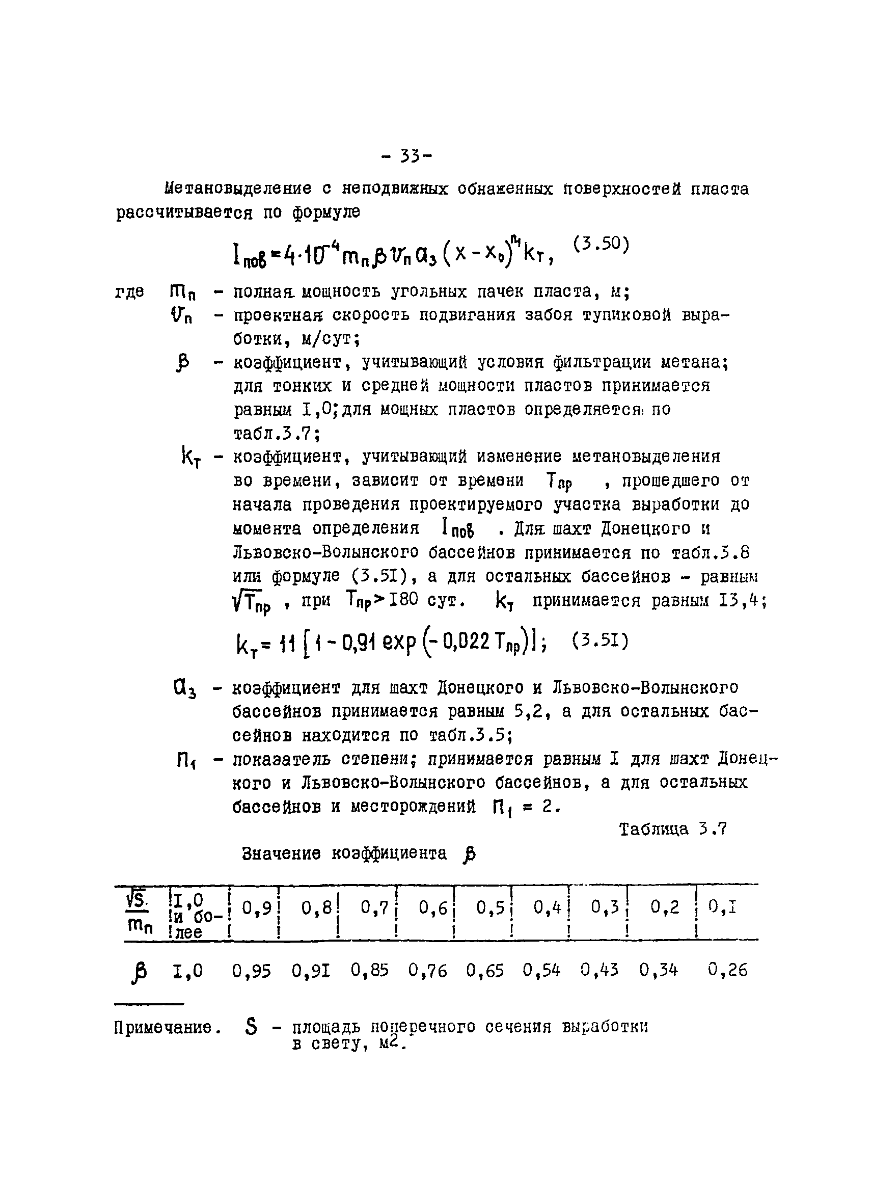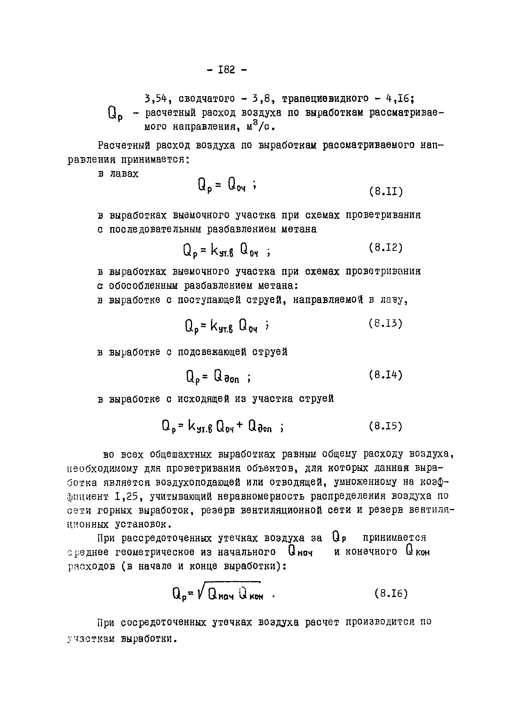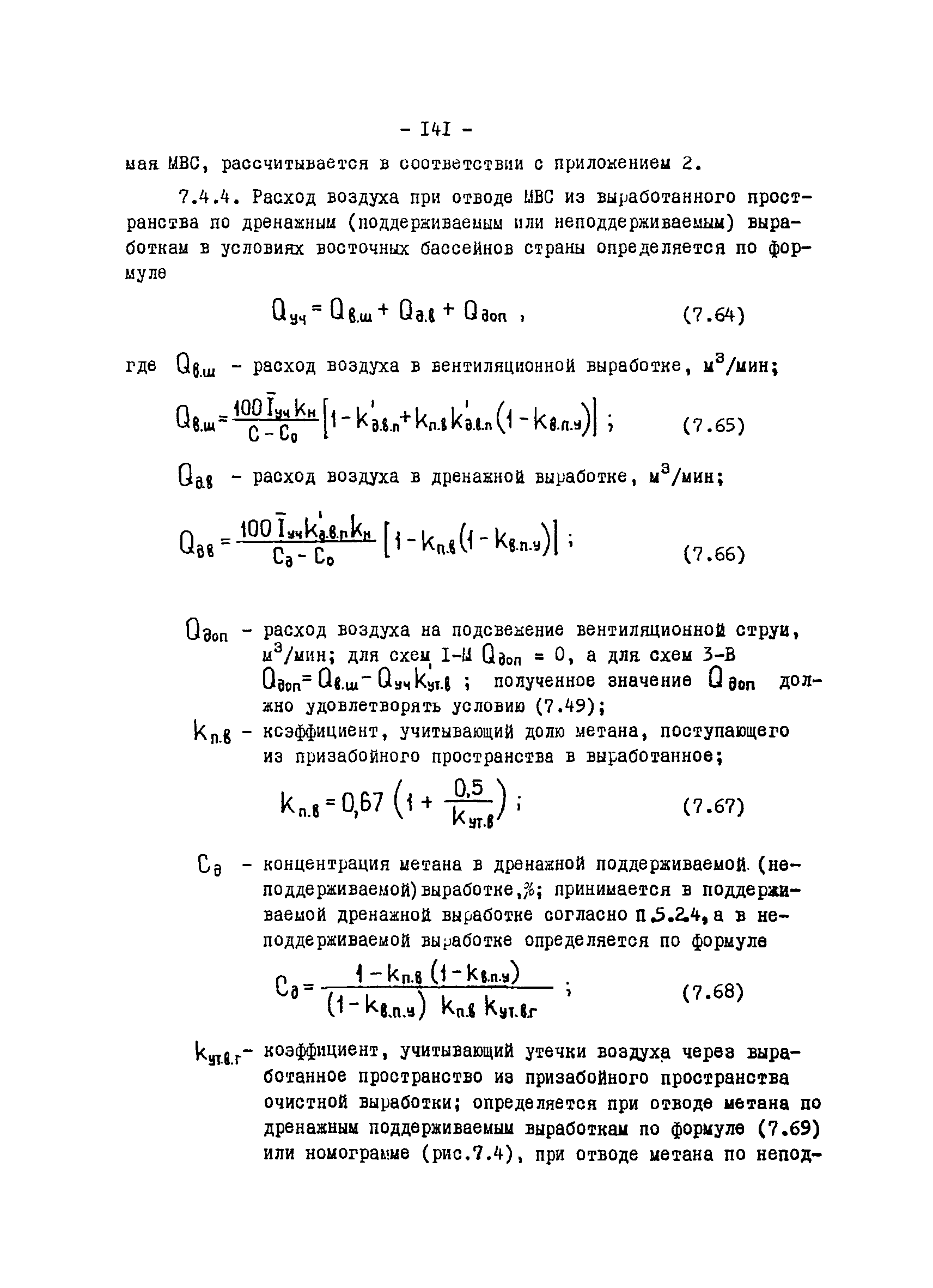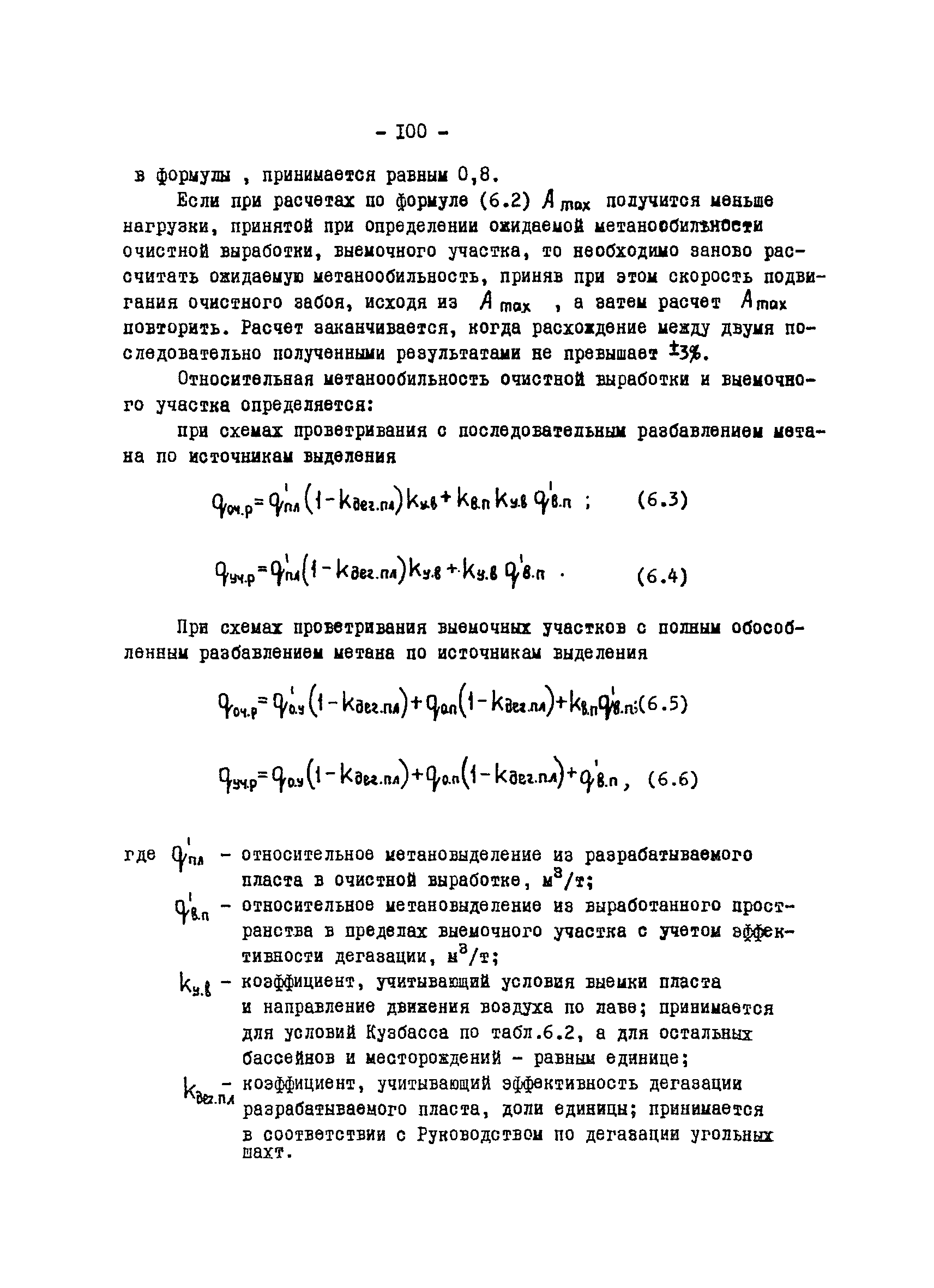 | Оглавление: | Основные условные обозначения 1. Общие положения 1.1. Геологоразведочные организация 1.2. Угольные шахты 1.3. Проектные организации 1.4. Научно-исследовательские институты и служба ВГСЧ 2. Порядок проектирования вентиляции угольных вахт 2.1. Проектирование вентиляции новых шахт и на период строительства 2.2. Проектирование вентиляции реконструируемых шахт и новых горизонтов на действующих шахтах 3. Прогноз метанообильности выработок угольных шахт 3.1. Прогноз метанообильности выработок по метаноносности угольных пластов 3.1.1. Метановыделение из разрабатываемого пласта 3.1.2. Метановыделение из сближенных угольных пластов (спутников) 3.1.3. Метановыделение из вмещающих пород 3.1.4. Метан обильность тупиковых выработок 3.1.5. Метановыделение при проведении вертикальных стволов 3.1.6. Определение относительной метанообильности шахты 3.2. Определение ожидаемой абсолютной газообильности выработок действующей шахты 3.2.1. Общие положения определения фактической газообильности горных выработок 3.2.2. Определение метанообильности тупиковых выработок 3.2.3. Определение газообильности очистных выработок и выемочных участков 3.2.4. Определение ожидаемого метановыделения очистной выработки и выемочного участка 3.2.5. Определение метанообильности шахты 4. Прогноз углекислотообильности горных выработок 4.1. Прогноз углекислотообильности горных выработок по степени метаморфизма углей 4.1.1. Углекислотообильность выемочного участка 4.1.2. Углекислотообильность тупиковых выработок 4.1.3. Углекислотообильность шахтопласта и шахты 4.2. Определение ожидаемой углекислотообильности выработок действующей шахты 4.2.1. Определение углекислотообильности очистных выработок и выемочных участков 4.2.2. Определение углекислотообильности тупиковых выработок 4.2.3. Определение углекислотообильности шахты 5. Способы и схемы проветривания шахт 5.1. Выбор схемы и способа проветривания шахты 5.2. Схемы проветривания выемочных участков 5.2.1. Требования к схемам проветривания выемочных участков 5.2.2. Классификация схем и область их применения 5.2.3. Проверка схем проветривания выемочных участков по опасности местных скоплений метана 5.2.4. Способы предупреждения образования местных скоплений метана 5.2.5. Оценка схем проветривания выемочных участков по фактору эндогенной пожароопасности 5.3. Схемы проветривания стволов и тупиковых выработок 6. Максимально допустимая нагрузка на очистную выработку по газовому фактору 6.1. Расчет максимально допустимой нагрузки на очистную выработку при проектировании новых шахт 6.1.1. Для очистных выработок типа лав по природной метаноносности угольных пластов 6.1.2. Для систем разработки с камерообразными выработками 6.2. Расчет максимально допустимой нагрузки на очистную выработку для действующих шахт 7. Расчет расхода воздуха для проветривания угольных шахт 7.1. Расчет расхода воздуха для шахты в целом 7.2. Расчет расхода воздуха для проветривания одиночных тупиковых выработок и вертикальных стволов 7.3. Расчет расхода воздуха для проветривания очистных выработок 7.4. Расход воздуха для проветривания выемочных участков 7.5. Расход воздуха для проветривания погашаемых и поддерживаемых выработок 7.6. Расход воздуха для проветривания камер 7.7. Утечки воздуха через вентиляционные сооружения 7.8. Выбор средств проветривания тупиковых выработок 