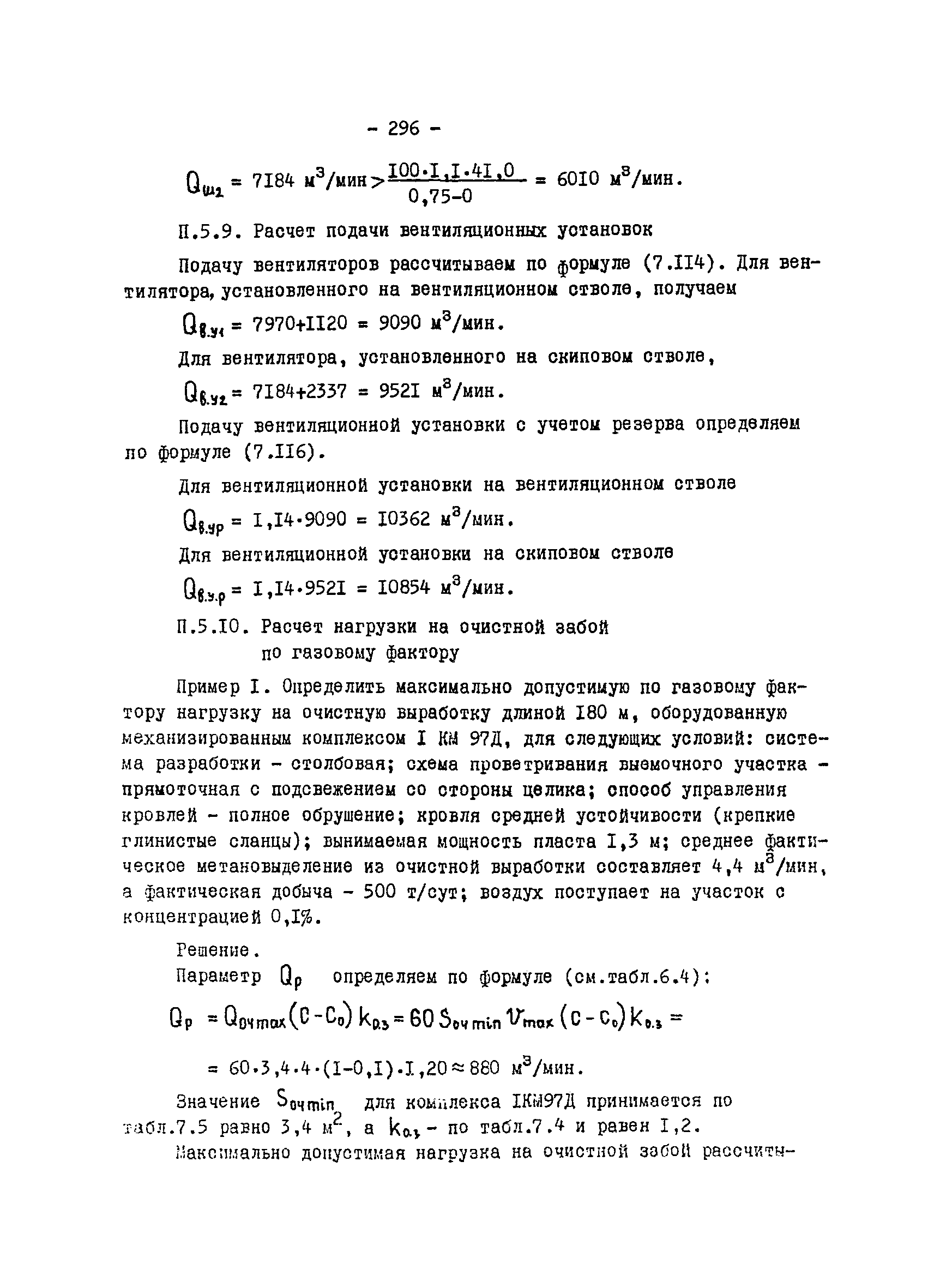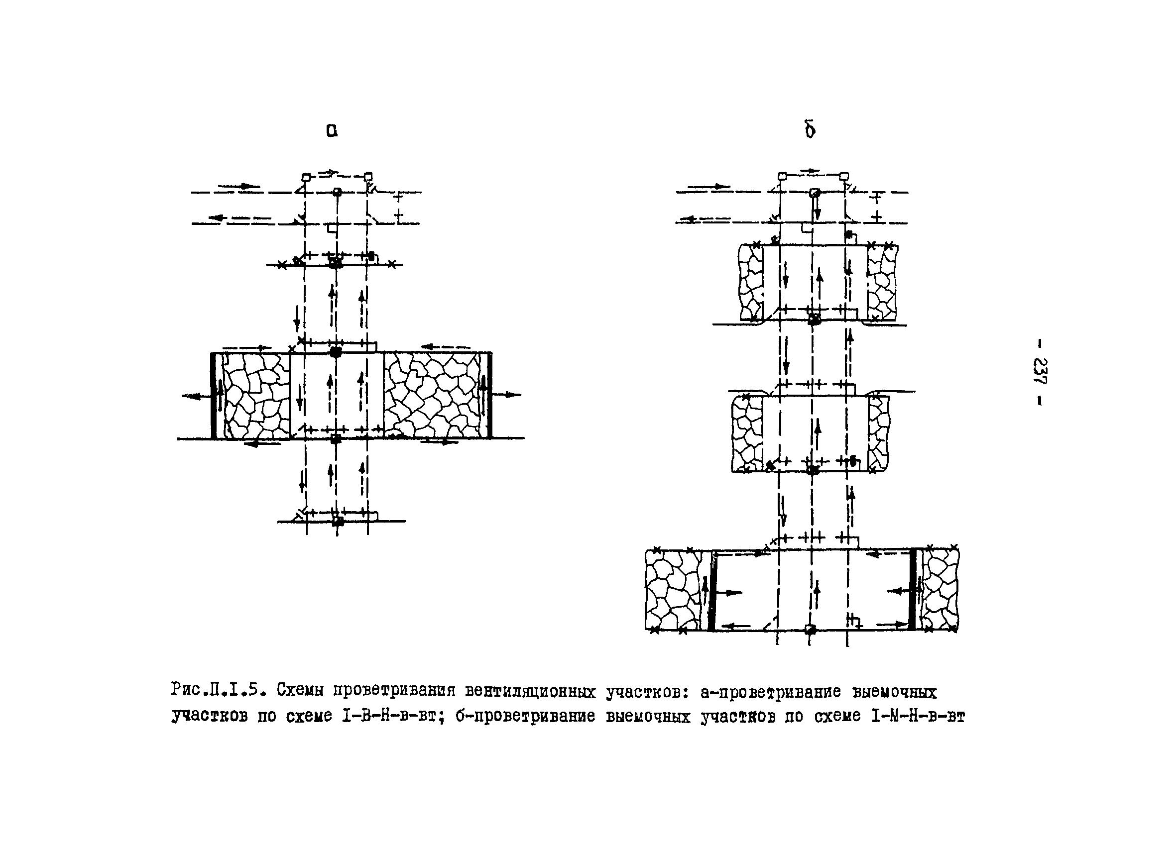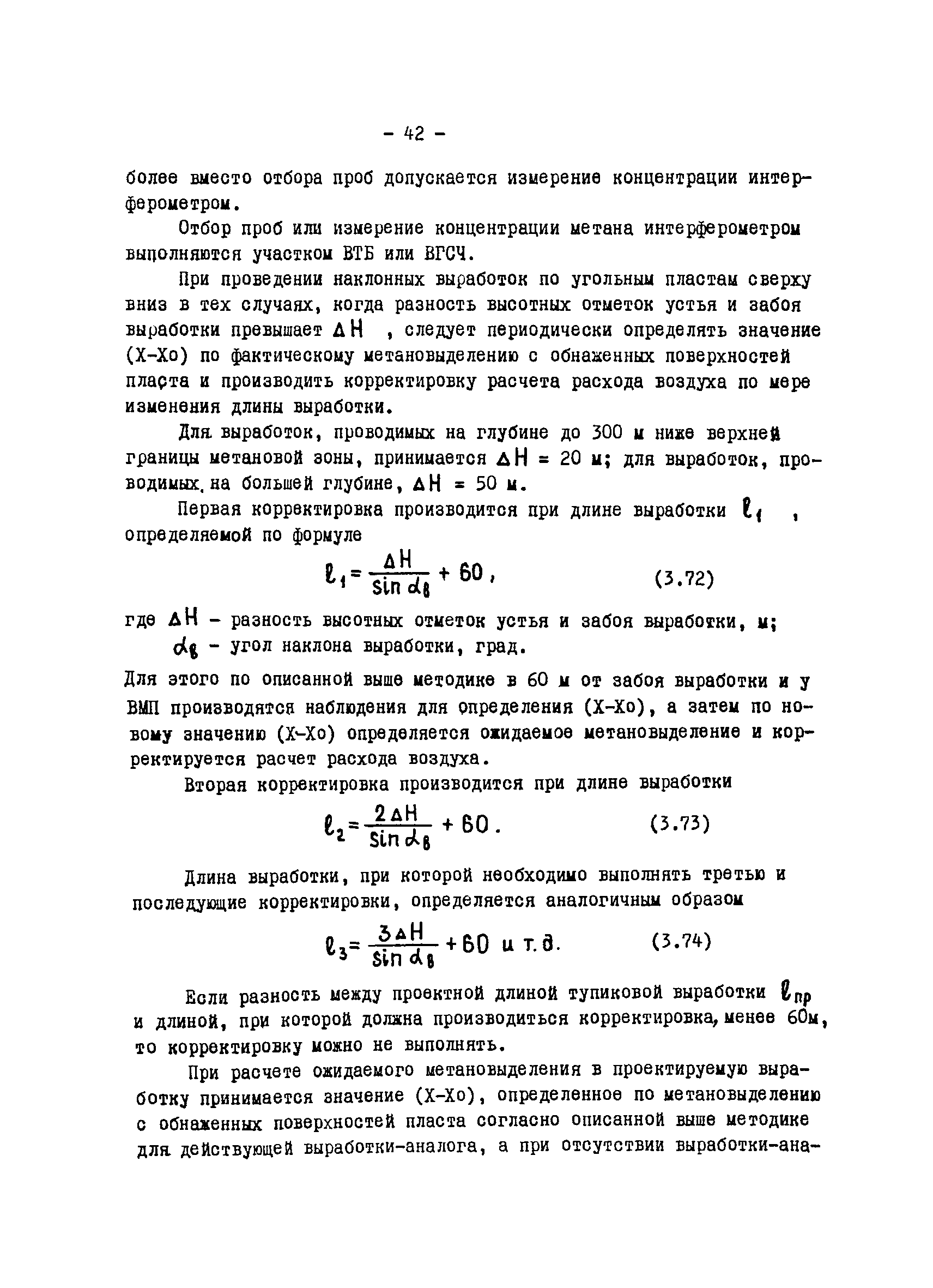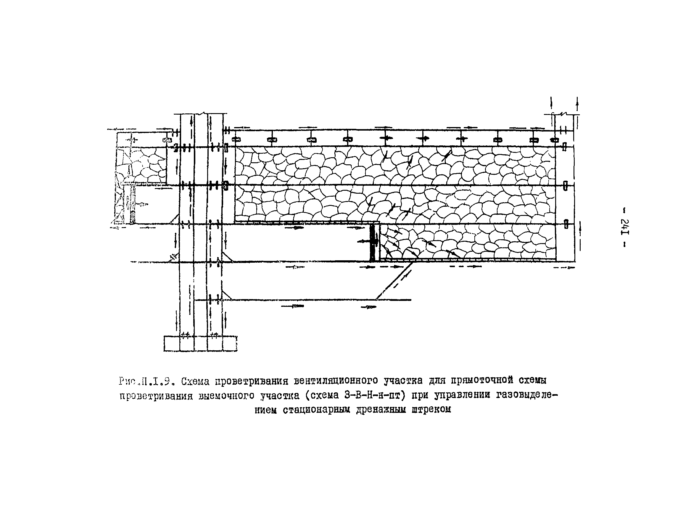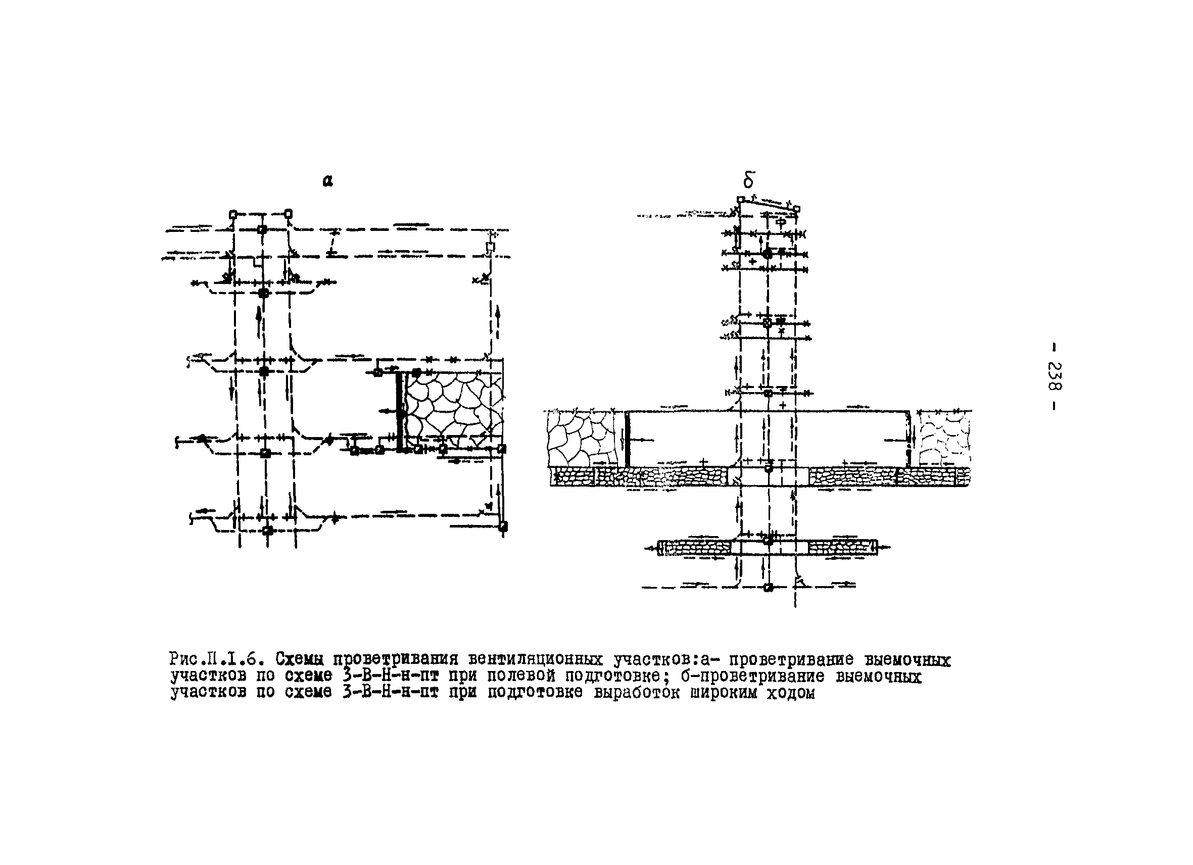 | Оглавление: | Основные условные обозначения 1. Общие положения 1.1. Геологоразведочные организация 1.2. Угольные шахты 1.3. Проектные организации 1.4. Научно-исследовательские институты и служба ВГСЧ 2. Порядок проектирования вентиляции угольных вахт 2.1. Проектирование вентиляции новых шахт и на период строительства 2.2. Проектирование вентиляции реконструируемых шахт и новых горизонтов на действующих шахтах 3. Прогноз метанообильности выработок угольных шахт 3.1. Прогноз метанообильности выработок по метаноносности угольных пластов 3.1.1. Метановыделение из разрабатываемого пласта 3.1.2. Метановыделение из сближенных угольных пластов (спутников) 3.1.3. Метановыделение из вмещающих пород 3.1.4. Метан обильность тупиковых выработок 3.1.5. Метановыделение при проведении вертикальных стволов 3.1.6. Определение относительной метанообильности шахты 3.2. Определение ожидаемой абсолютной газообильности выработок действующей шахты 3.2.1. Общие положения определения фактической газообильности горных выработок 3.2.2. Определение метанообильности тупиковых выработок 3.2.3. Определение газообильности очистных выработок и выемочных участков 3.2.4. Определение ожидаемого метановыделения очистной выработки и выемочного участка 3.2.5. Определение метанообильности шахты 4. Прогноз углекислотообильности горных выработок 4.1. Прогноз углекислотообильности горных выработок по степени метаморфизма углей 4.1.1. Углекислотообильность выемочного участка 4.1.2. Углекислотообильность тупиковых выработок 4.1.3. Углекислотообильность шахтопласта и шахты 4.2. Определение ожидаемой углекислотообильности выработок действующей шахты 4.2.1. Определение углекислотообильности очистных выработок и выемочных участков 4.2.2. Определение углекислотообильности тупиковых выработок 4.2.3. Определение углекислотообильности шахты 5. Способы и схемы проветривания шахт 5.1. Выбор схемы и способа проветривания шахты 5.2. Схемы проветривания выемочных участков 5.2.1. Требования к схемам проветривания выемочных участков 5.2.2. Классификация схем и область их применения 5.2.3. Проверка схем проветривания выемочных участков по опасности местных скоплений метана 5.2.4. Способы предупреждения образования местных скоплений метана 5.2.5. Оценка схем проветривания выемочных участков по фактору эндогенной пожароопасности 5.3. Схемы проветривания стволов и тупиковых выработок 6. Максимально допустимая нагрузка на очистную выработку по газовому фактору 6.1. Расчет максимально допустимой нагрузки на очистную выработку при проектировании новых шахт 6.1.1. Для очистных выработок типа лав по природной метаноносности угольных пластов 6.1.2. Для систем разработки с камерообразными выработками 6.2. Расчет максимально допустимой нагрузки на очистную выработку для действующих шахт 7. Расчет расхода воздуха для проветривания угольных шахт 7.1. Расчет расхода воздуха для шахты в целом 7.2. Расчет расхода воздуха для проветривания одиночных тупиковых выработок и вертикальных стволов 7.3. Расчет расхода воздуха для проветривания очистных выработок 7.4. Расход воздуха для проветривания выемочных участков 7.5. Расход воздуха для проветривания погашаемых и поддерживаемых выработок 7.6. Расход воздуха для проветривания камер 7.7. Утечки воздуха через вентиляционные сооружения 7.8. Выбор средств проветривания тупиковых выработок 