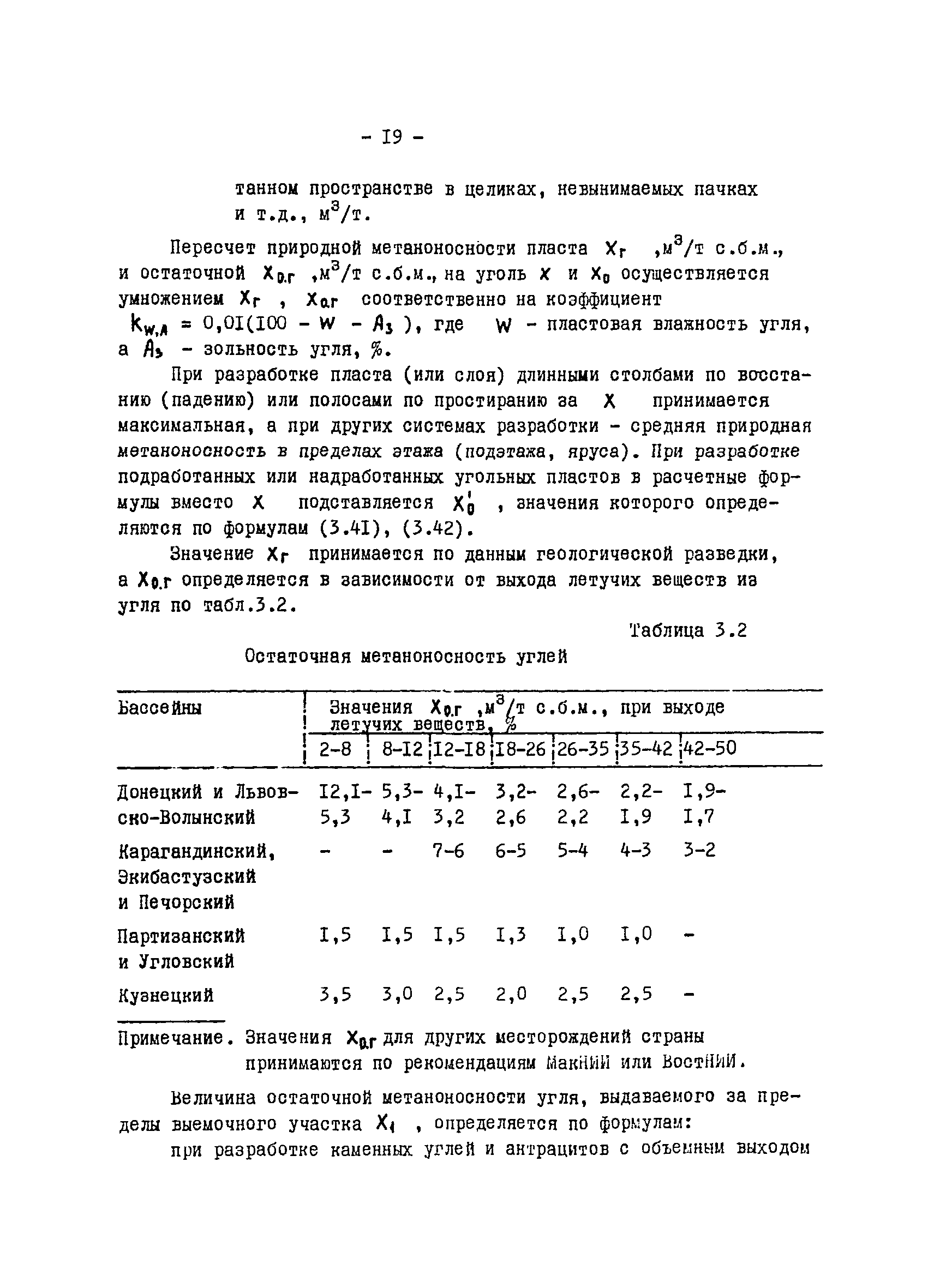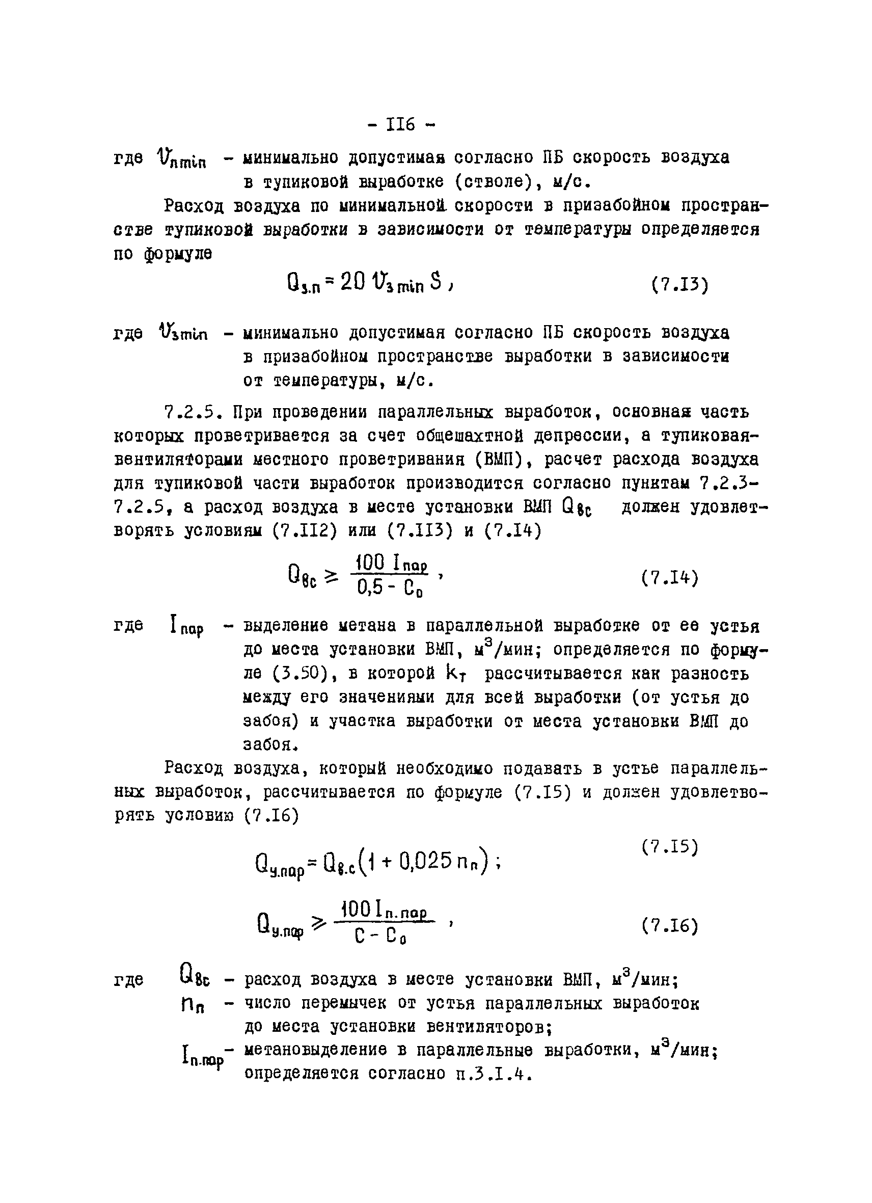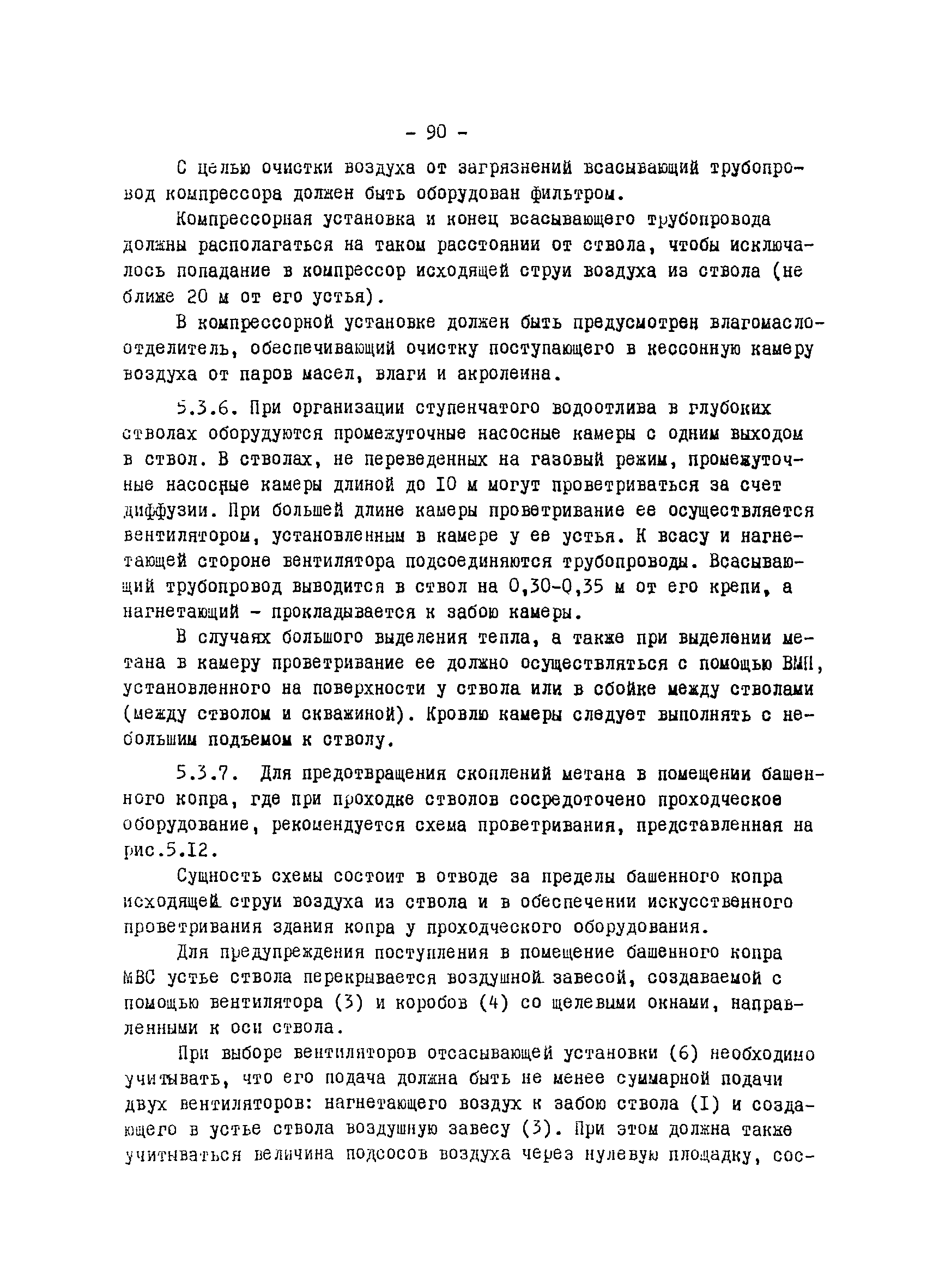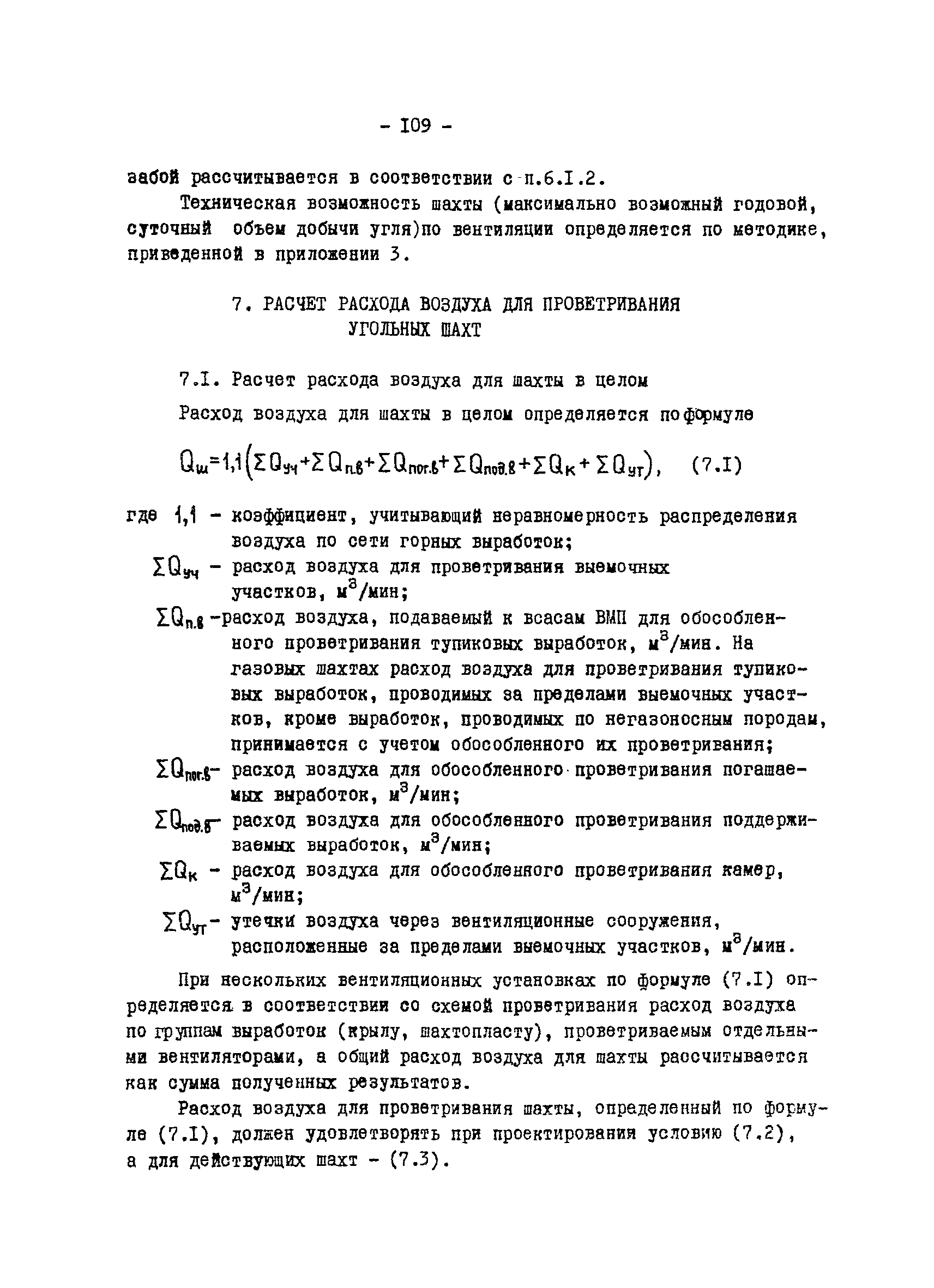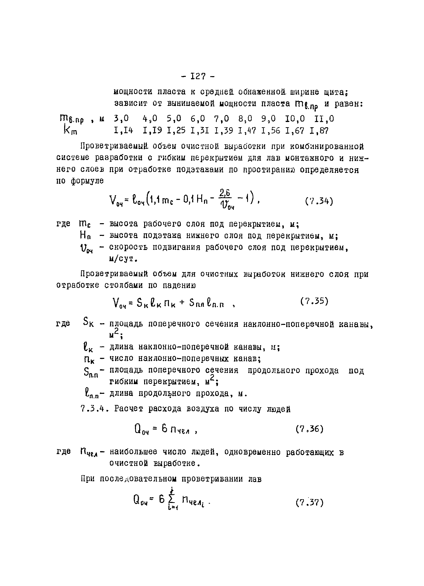 | Оглавление: | Основные условные обозначения 1. Общие положения 1.1. Геологоразведочные организация 1.2. Угольные шахты 1.3. Проектные организации 1.4. Научно-исследовательские институты и служба ВГСЧ 2. Порядок проектирования вентиляции угольных вахт 2.1. Проектирование вентиляции новых шахт и на период строительства 2.2. Проектирование вентиляции реконструируемых шахт и новых горизонтов на действующих шахтах 3. Прогноз метанообильности выработок угольных шахт 3.1. Прогноз метанообильности выработок по метаноносности угольных пластов 3.1.1. Метановыделение из разрабатываемого пласта 3.1.2. Метановыделение из сближенных угольных пластов (спутников) 3.1.3. Метановыделение из вмещающих пород 3.1.4. Метан обильность тупиковых выработок 3.1.5. Метановыделение при проведении вертикальных стволов 3.1.6. Определение относительной метанообильности шахты 3.2. Определение ожидаемой абсолютной газообильности выработок действующей шахты 3.2.1. Общие положения определения фактической газообильности горных выработок 3.2.2. Определение метанообильности тупиковых выработок 3.2.3. Определение газообильности очистных выработок и выемочных участков 3.2.4. Определение ожидаемого метановыделения очистной выработки и выемочного участка 3.2.5. Определение метанообильности шахты 4. Прогноз углекислотообильности горных выработок 4.1. Прогноз углекислотообильности горных выработок по степени метаморфизма углей 4.1.1. Углекислотообильность выемочного участка 4.1.2. Углекислотообильность тупиковых выработок 4.1.3. Углекислотообильность шахтопласта и шахты 4.2. Определение ожидаемой углекислотообильности выработок действующей шахты 4.2.1. Определение углекислотообильности очистных выработок и выемочных участков 4.2.2. Определение углекислотообильности тупиковых выработок 4.2.3. Определение углекислотообильности шахты 5. Способы и схемы проветривания шахт 5.1. Выбор схемы и способа проветривания шахты 5.2. Схемы проветривания выемочных участков 5.2.1. Требования к схемам проветривания выемочных участков 5.2.2. Классификация схем и область их применения 5.2.3. Проверка схем проветривания выемочных участков по опасности местных скоплений метана 5.2.4. Способы предупреждения образования местных скоплений метана 5.2.5. Оценка схем проветривания выемочных участков по фактору эндогенной пожароопасности 5.3. Схемы проветривания стволов и тупиковых выработок 6. Максимально допустимая нагрузка на очистную выработку по газовому фактору 6.1. Расчет максимально допустимой нагрузки на очистную выработку при проектировании новых шахт 6.1.1. Для очистных выработок типа лав по природной метаноносности угольных пластов 6.1.2. Для систем разработки с камерообразными выработками 6.2. Расчет максимально допустимой нагрузки на очистную выработку для действующих шахт 7. Расчет расхода воздуха для проветривания угольных шахт 7.1. Расчет расхода воздуха для шахты в целом 7.2. Расчет расхода воздуха для проветривания одиночных тупиковых выработок и вертикальных стволов 7.3. Расчет расхода воздуха для проветривания очистных выработок 7.4. Расход воздуха для проветривания выемочных участков 7.5. Расход воздуха для проветривания погашаемых и поддерживаемых выработок 7.6. Расход воздуха для проветривания камер 7.7. Утечки воздуха через вентиляционные сооружения 7.8. Выбор средств проветривания тупиковых выработок 