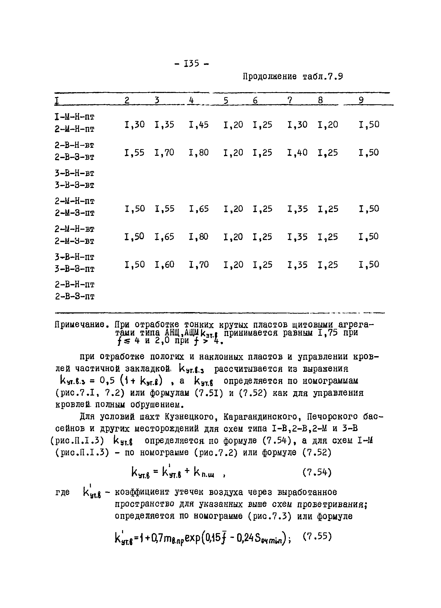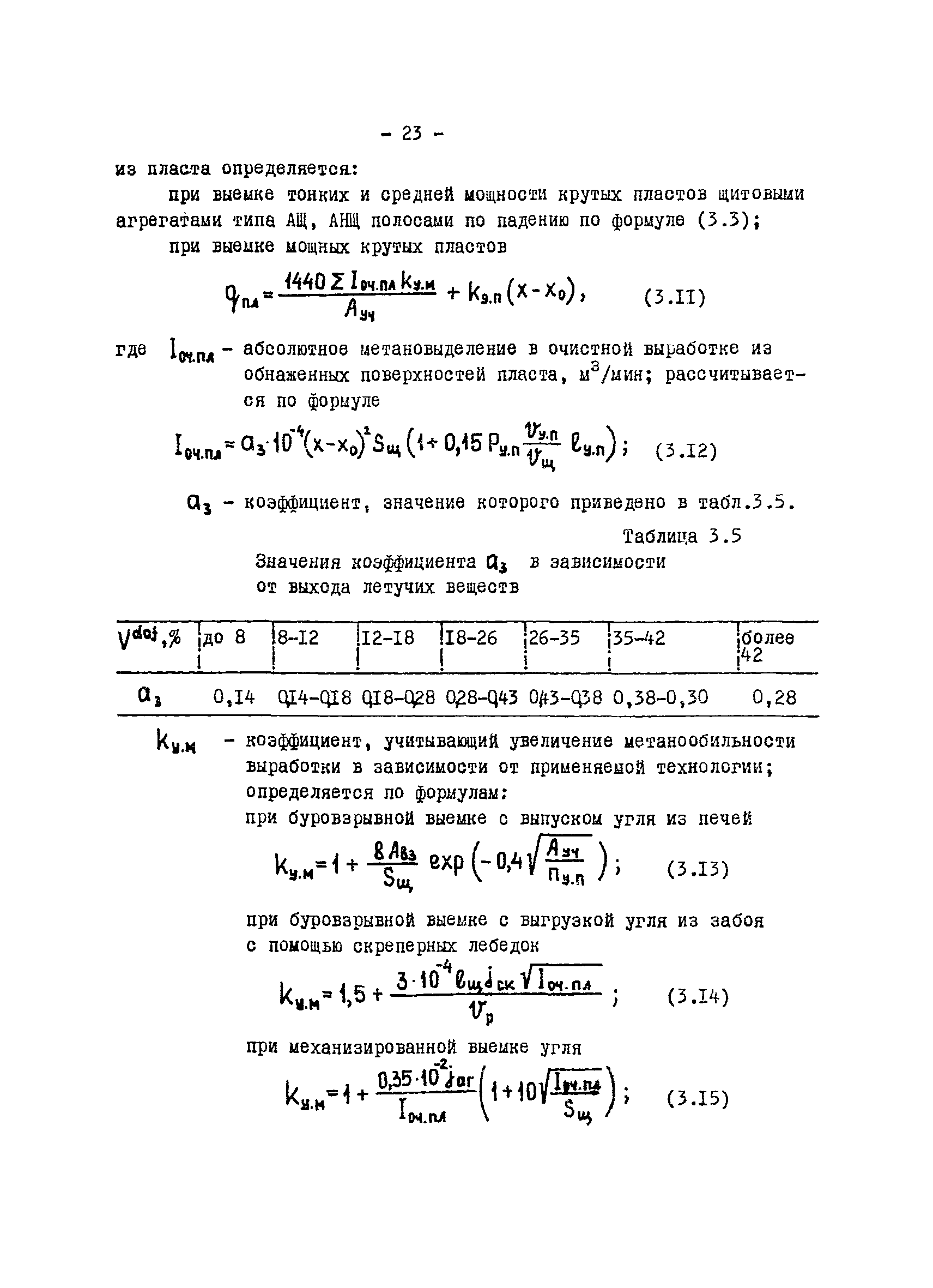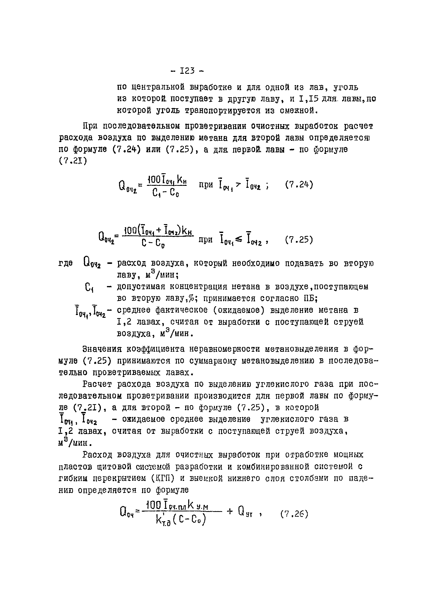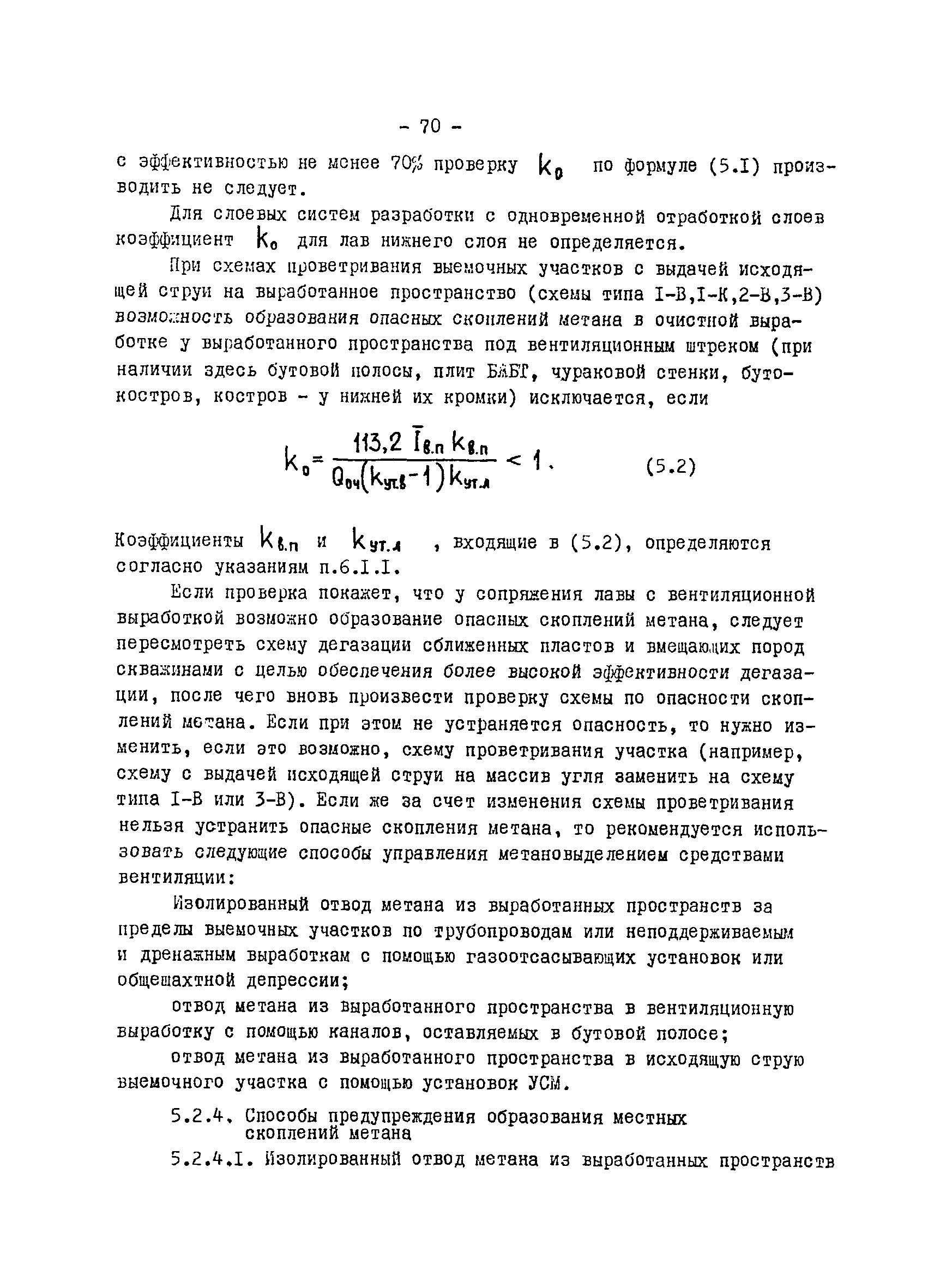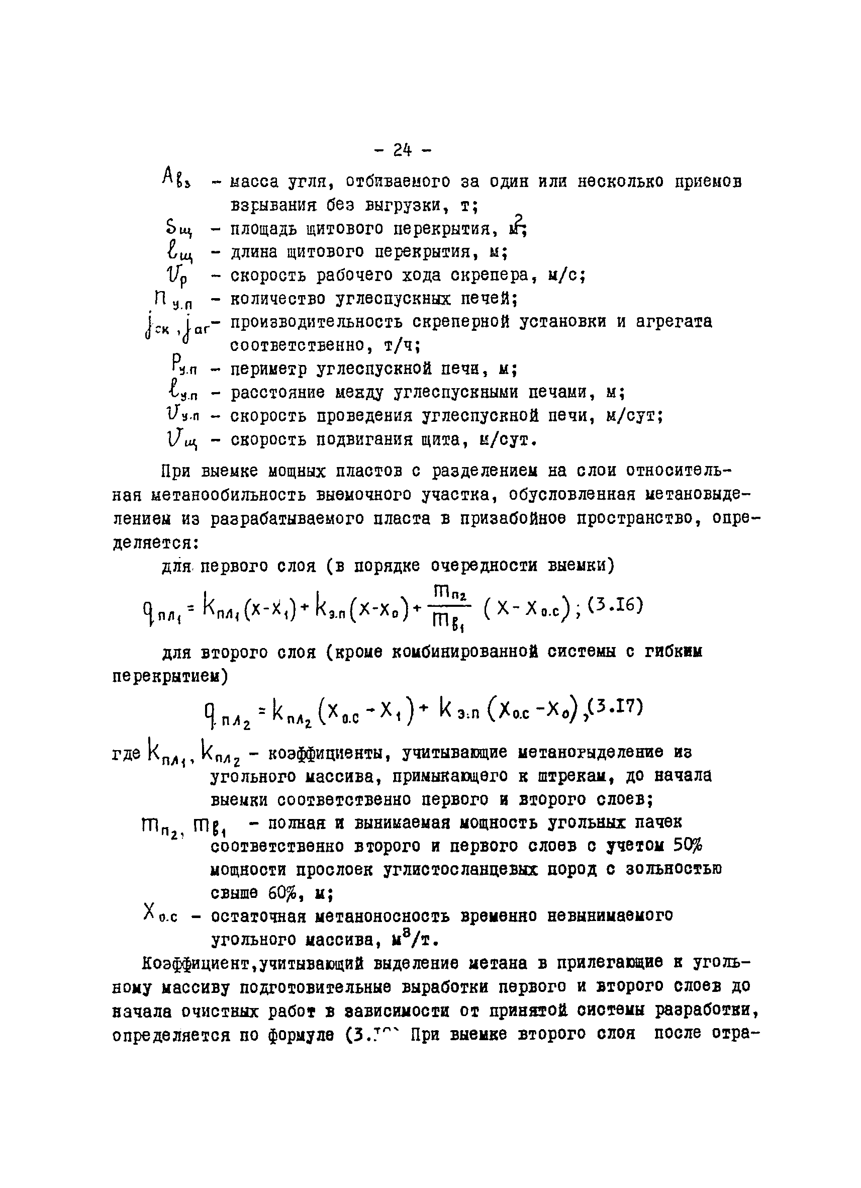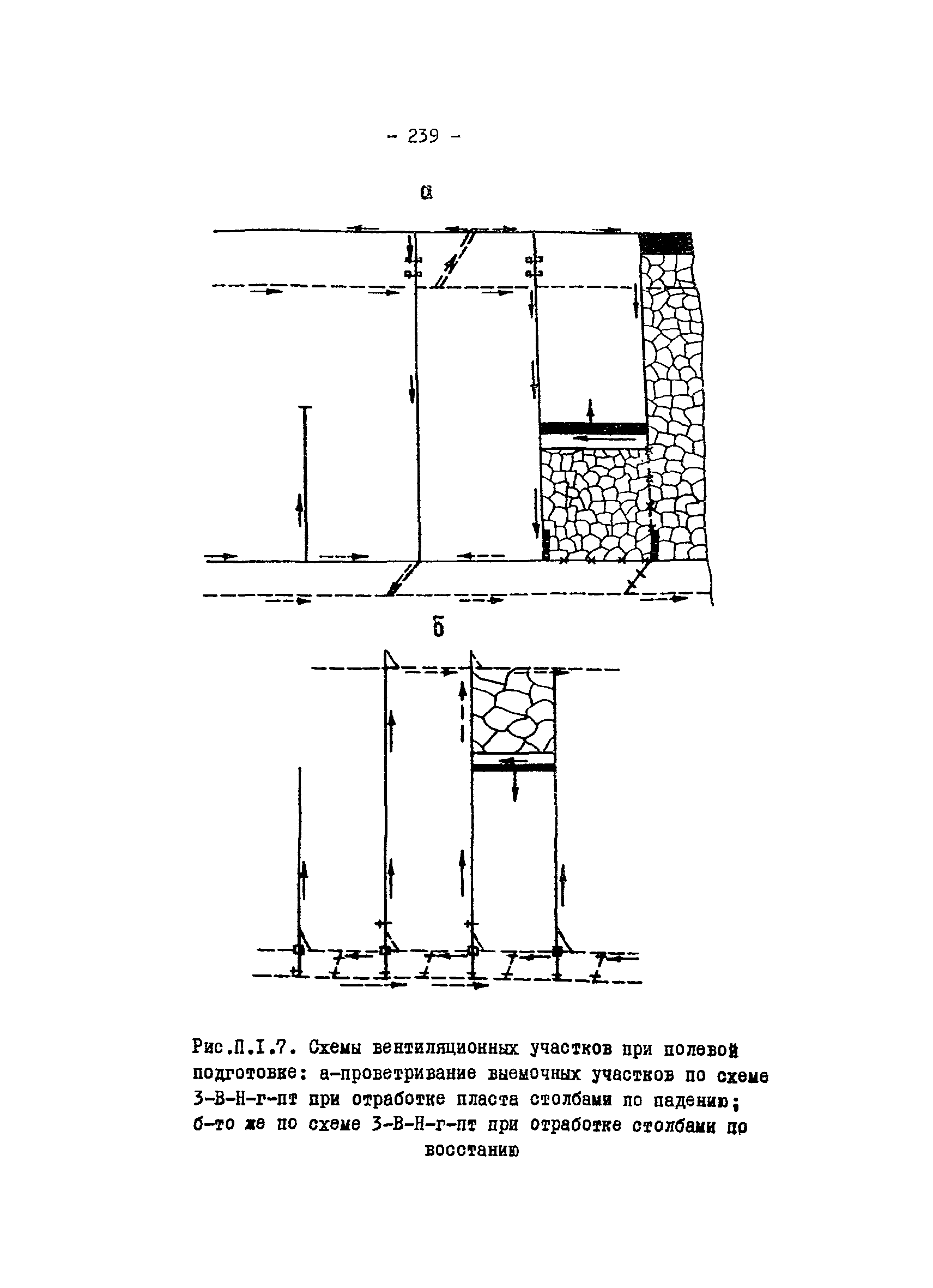 | Оглавление: | Основные условные обозначения 1. Общие положения 1.1. Геологоразведочные организация 1.2. Угольные шахты 1.3. Проектные организации 1.4. Научно-исследовательские институты и служба ВГСЧ 2. Порядок проектирования вентиляции угольных вахт 2.1. Проектирование вентиляции новых шахт и на период строительства 2.2. Проектирование вентиляции реконструируемых шахт и новых горизонтов на действующих шахтах 3. Прогноз метанообильности выработок угольных шахт 3.1. Прогноз метанообильности выработок по метаноносности угольных пластов 3.1.1. Метановыделение из разрабатываемого пласта 3.1.2. Метановыделение из сближенных угольных пластов (спутников) 3.1.3. Метановыделение из вмещающих пород 3.1.4. Метан обильность тупиковых выработок 3.1.5. Метановыделение при проведении вертикальных стволов 3.1.6. Определение относительной метанообильности шахты 3.2. Определение ожидаемой абсолютной газообильности выработок действующей шахты 3.2.1. Общие положения определения фактической газообильности горных выработок 3.2.2. Определение метанообильности тупиковых выработок 3.2.3. Определение газообильности очистных выработок и выемочных участков 3.2.4. Определение ожидаемого метановыделения очистной выработки и выемочного участка 3.2.5. Определение метанообильности шахты 4. Прогноз углекислотообильности горных выработок 4.1. Прогноз углекислотообильности горных выработок по степени метаморфизма углей 4.1.1. Углекислотообильность выемочного участка 4.1.2. Углекислотообильность тупиковых выработок 4.1.3. Углекислотообильность шахтопласта и шахты 4.2. Определение ожидаемой углекислотообильности выработок действующей шахты 4.2.1. Определение углекислотообильности очистных выработок и выемочных участков 4.2.2. Определение углекислотообильности тупиковых выработок 4.2.3. Определение углекислотообильности шахты 5. Способы и схемы проветривания шахт 5.1. Выбор схемы и способа проветривания шахты 5.2. Схемы проветривания выемочных участков 5.2.1. Требования к схемам проветривания выемочных участков 5.2.2. Классификация схем и область их применения 5.2.3. Проверка схем проветривания выемочных участков по опасности местных скоплений метана 5.2.4. Способы предупреждения образования местных скоплений метана 5.2.5. Оценка схем проветривания выемочных участков по фактору эндогенной пожароопасности 5.3. Схемы проветривания стволов и тупиковых выработок 6. Максимально допустимая нагрузка на очистную выработку по газовому фактору 6.1. Расчет максимально допустимой нагрузки на очистную выработку при проектировании новых шахт 6.1.1. Для очистных выработок типа лав по природной метаноносности угольных пластов 6.1.2. Для систем разработки с камерообразными выработками 6.2. Расчет максимально допустимой нагрузки на очистную выработку для действующих шахт 7. Расчет расхода воздуха для проветривания угольных шахт 7.1. Расчет расхода воздуха для шахты в целом 7.2. Расчет расхода воздуха для проветривания одиночных тупиковых выработок и вертикальных стволов 7.3. Расчет расхода воздуха для проветривания очистных выработок 7.4. Расход воздуха для проветривания выемочных участков 7.5. Расход воздуха для проветривания погашаемых и поддерживаемых выработок 7.6. Расход воздуха для проветривания камер 7.7. Утечки воздуха через вентиляционные сооружения 7.8. Выбор средств проветривания тупиковых выработок 