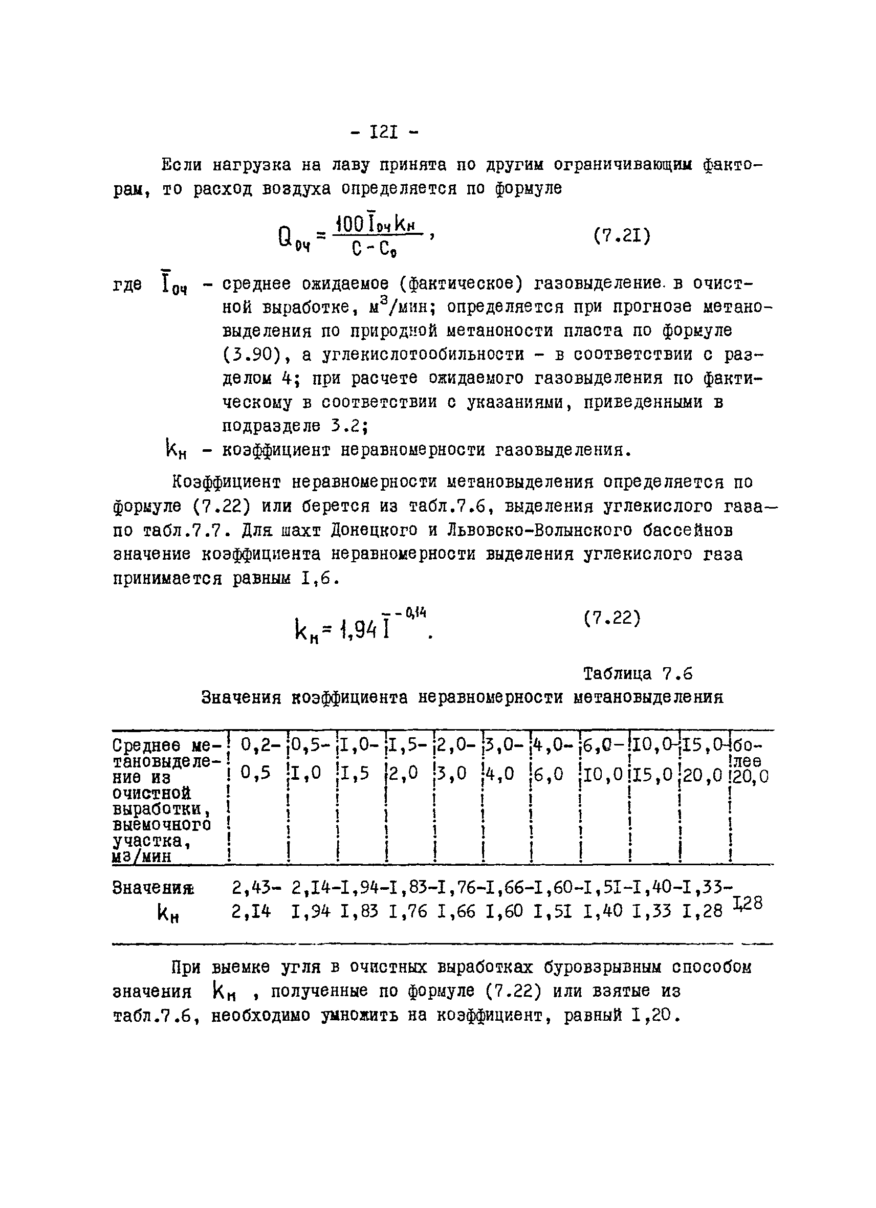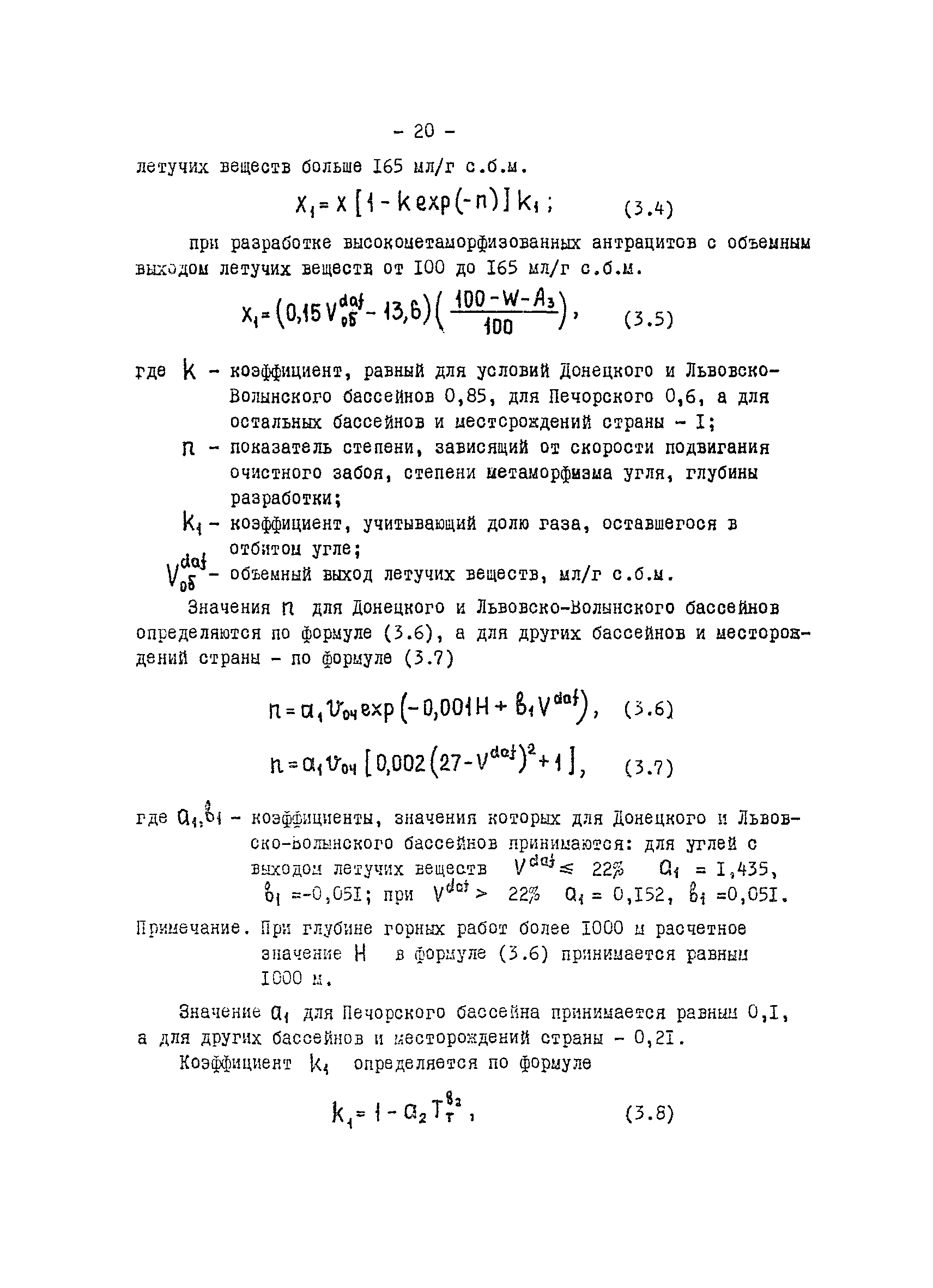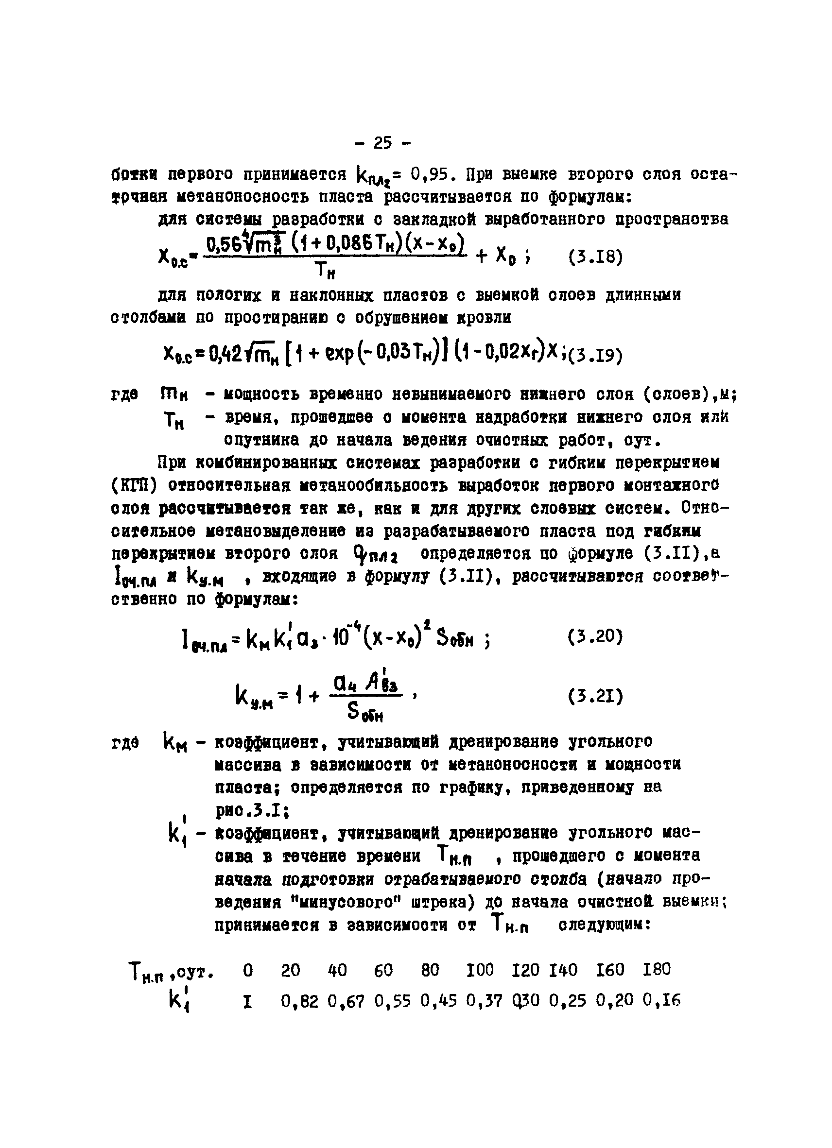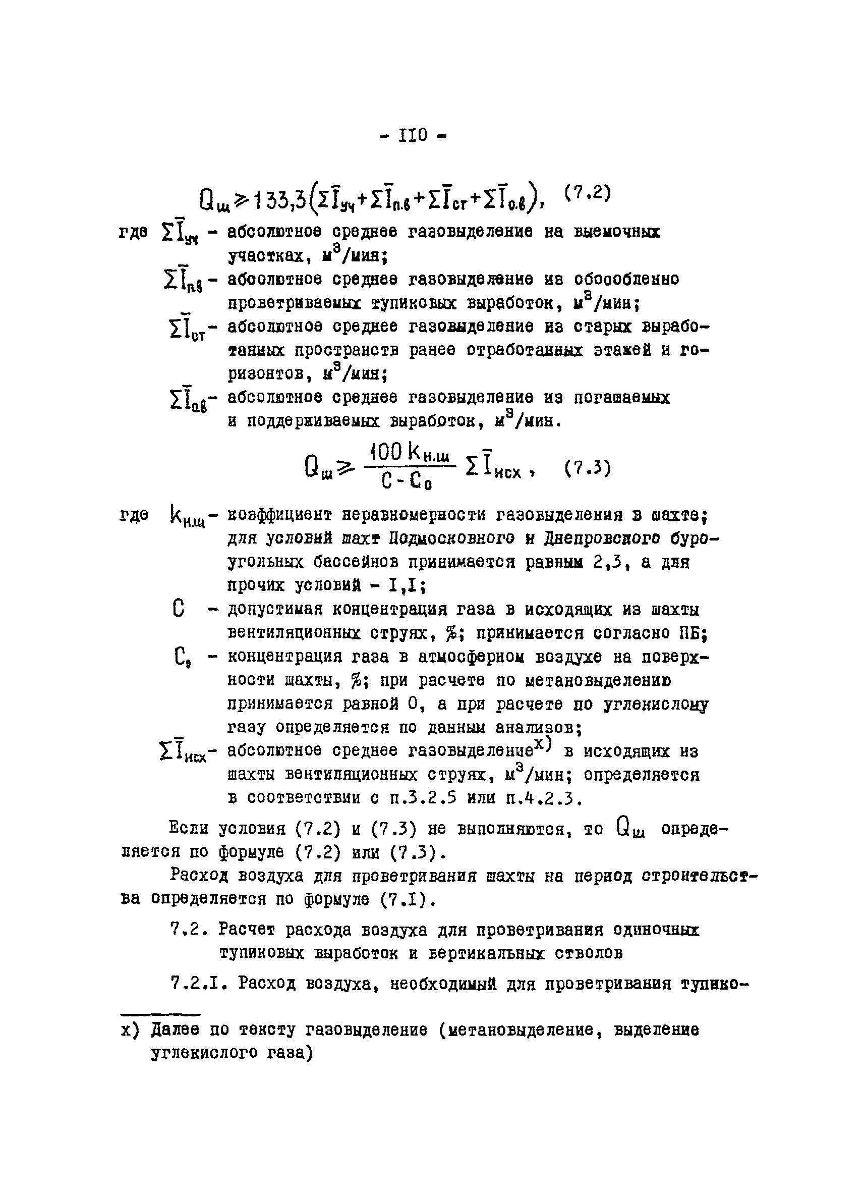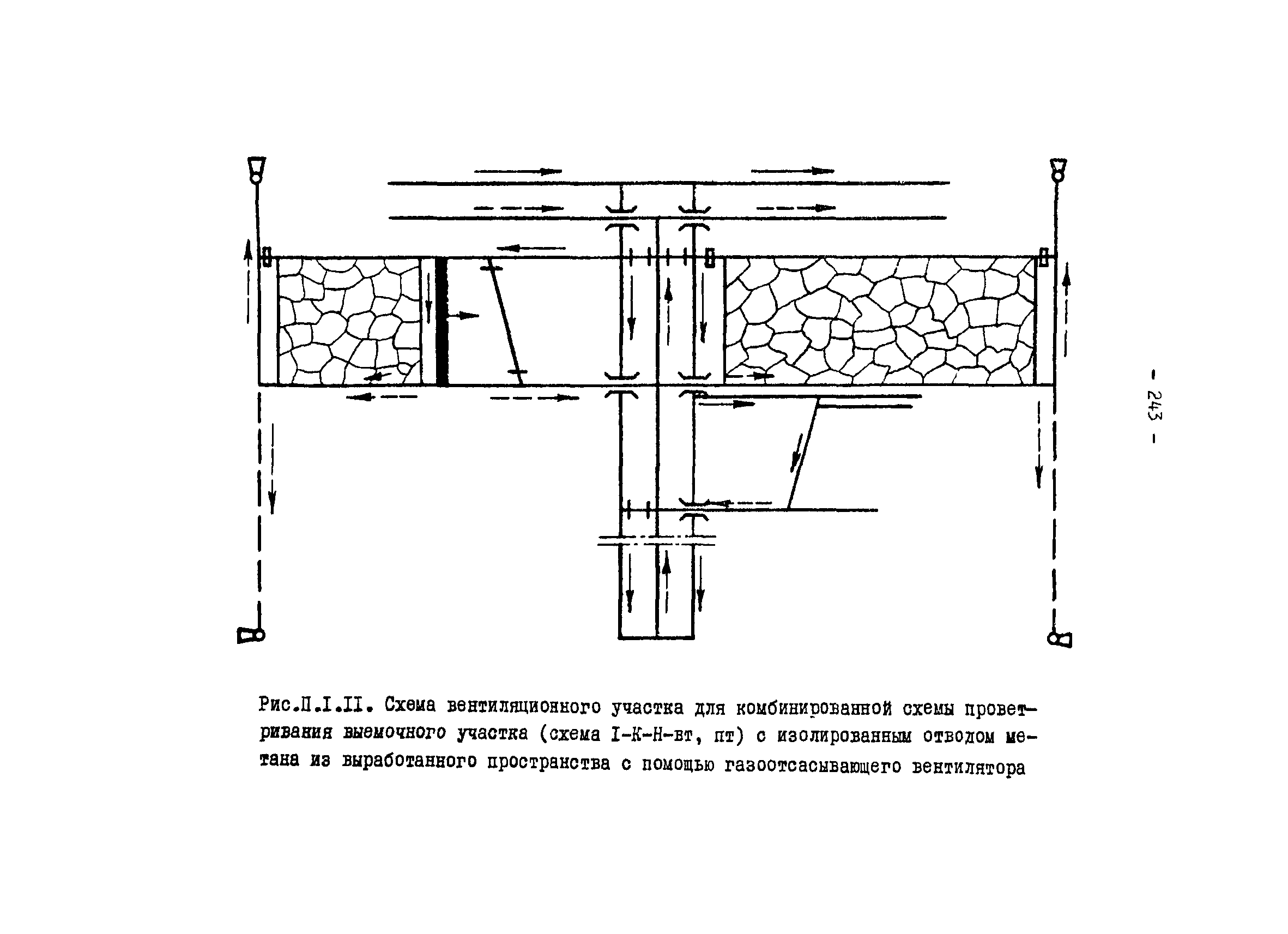 | Оглавление: | Основные условные обозначения 1. Общие положения 1.1. Геологоразведочные организация 1.2. Угольные шахты 1.3. Проектные организации 1.4. Научно-исследовательские институты и служба ВГСЧ 2. Порядок проектирования вентиляции угольных вахт 2.1. Проектирование вентиляции новых шахт и на период строительства 2.2. Проектирование вентиляции реконструируемых шахт и новых горизонтов на действующих шахтах 3. Прогноз метанообильности выработок угольных шахт 3.1. Прогноз метанообильности выработок по метаноносности угольных пластов 3.1.1. Метановыделение из разрабатываемого пласта 3.1.2. Метановыделение из сближенных угольных пластов (спутников) 3.1.3. Метановыделение из вмещающих пород 3.1.4. Метан обильность тупиковых выработок 3.1.5. Метановыделение при проведении вертикальных стволов 3.1.6. Определение относительной метанообильности шахты 3.2. Определение ожидаемой абсолютной газообильности выработок действующей шахты 3.2.1. Общие положения определения фактической газообильности горных выработок 3.2.2. Определение метанообильности тупиковых выработок 3.2.3. Определение газообильности очистных выработок и выемочных участков 3.2.4. Определение ожидаемого метановыделения очистной выработки и выемочного участка 3.2.5. Определение метанообильности шахты 4. Прогноз углекислотообильности горных выработок 4.1. Прогноз углекислотообильности горных выработок по степени метаморфизма углей 4.1.1. Углекислотообильность выемочного участка 4.1.2. Углекислотообильность тупиковых выработок 4.1.3. Углекислотообильность шахтопласта и шахты 4.2. Определение ожидаемой углекислотообильности выработок действующей шахты 4.2.1. Определение углекислотообильности очистных выработок и выемочных участков 4.2.2. Определение углекислотообильности тупиковых выработок 4.2.3. Определение углекислотообильности шахты 5. Способы и схемы проветривания шахт 5.1. Выбор схемы и способа проветривания шахты 5.2. Схемы проветривания выемочных участков 5.2.1. Требования к схемам проветривания выемочных участков 5.2.2. Классификация схем и область их применения 5.2.3. Проверка схем проветривания выемочных участков по опасности местных скоплений метана 5.2.4. Способы предупреждения образования местных скоплений метана 5.2.5. Оценка схем проветривания выемочных участков по фактору эндогенной пожароопасности 5.3. Схемы проветривания стволов и тупиковых выработок 6. Максимально допустимая нагрузка на очистную выработку по газовому фактору 6.1. Расчет максимально допустимой нагрузки на очистную выработку при проектировании новых шахт 6.1.1. Для очистных выработок типа лав по природной метаноносности угольных пластов 6.1.2. Для систем разработки с камерообразными выработками 6.2. Расчет максимально допустимой нагрузки на очистную выработку для действующих шахт 7. Расчет расхода воздуха для проветривания угольных шахт 7.1. Расчет расхода воздуха для шахты в целом 7.2. Расчет расхода воздуха для проветривания одиночных тупиковых выработок и вертикальных стволов 7.3. Расчет расхода воздуха для проветривания очистных выработок 7.4. Расход воздуха для проветривания выемочных участков 7.5. Расход воздуха для проветривания погашаемых и поддерживаемых выработок 7.6. Расход воздуха для проветривания камер 7.7. Утечки воздуха через вентиляционные сооружения 7.8. Выбор средств проветривания тупиковых выработок 