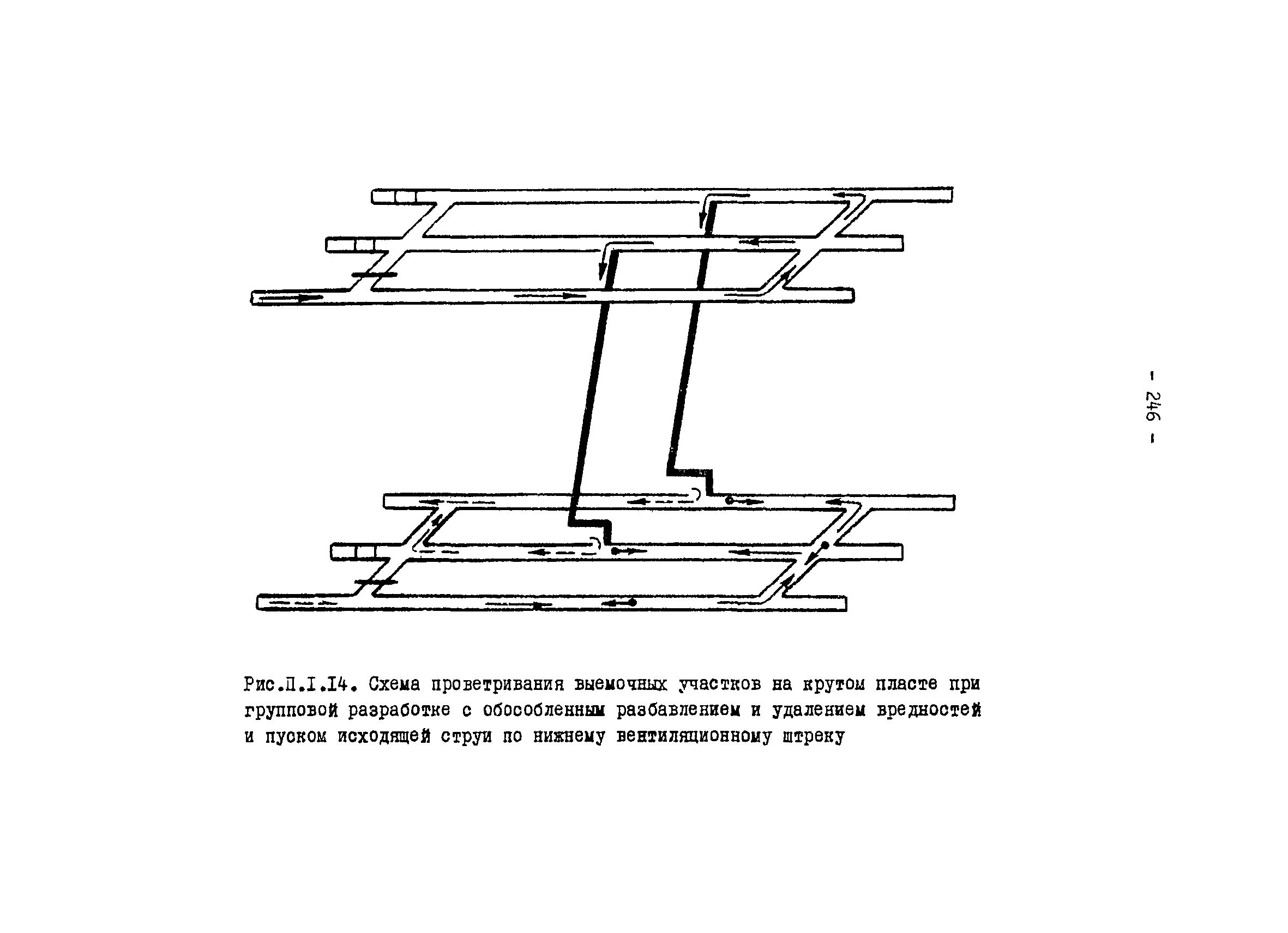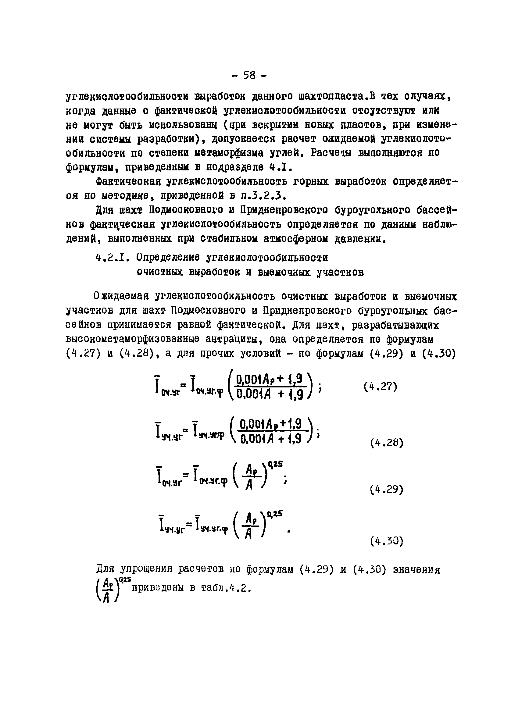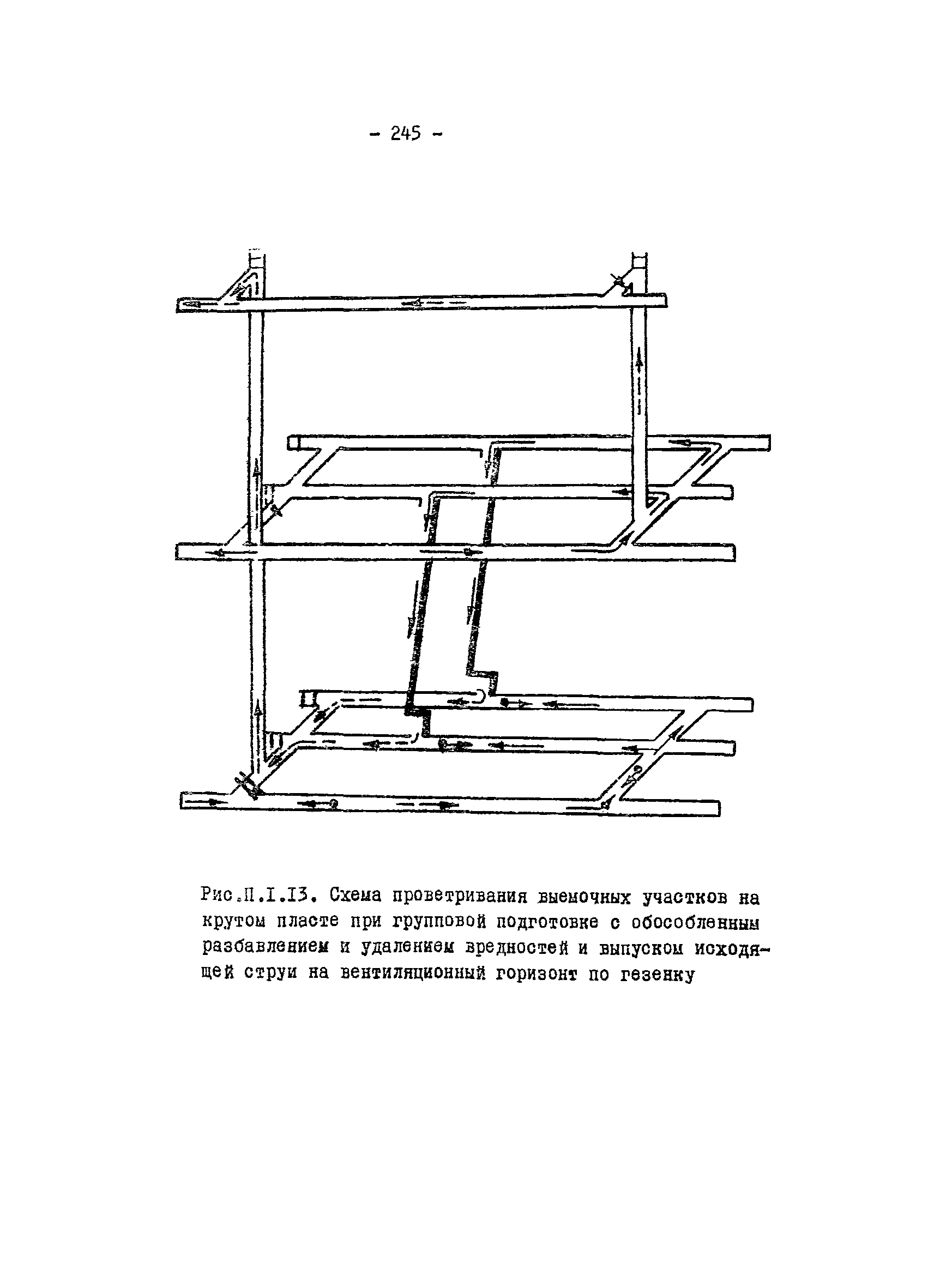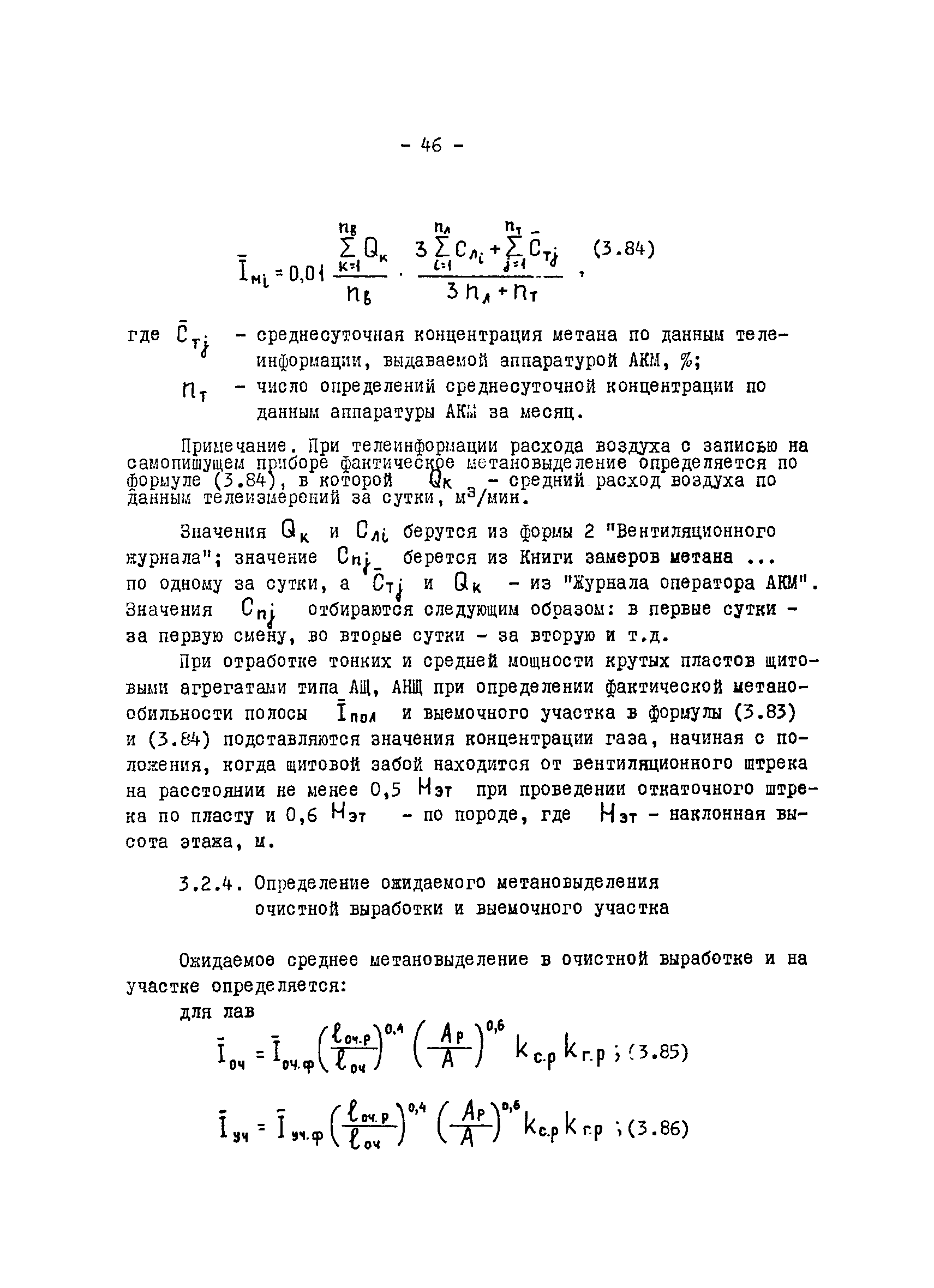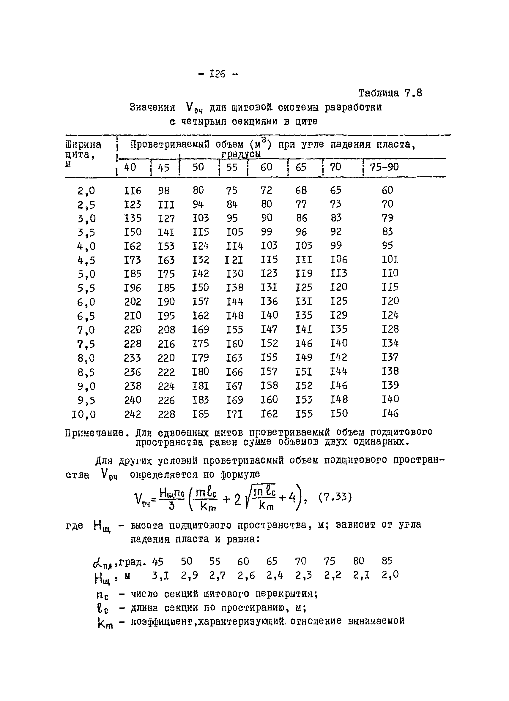 | Оглавление: | Основные условные обозначения 1. Общие положения 1.1. Геологоразведочные организация 1.2. Угольные шахты 1.3. Проектные организации 1.4. Научно-исследовательские институты и служба ВГСЧ 2. Порядок проектирования вентиляции угольных вахт 2.1. Проектирование вентиляции новых шахт и на период строительства 2.2. Проектирование вентиляции реконструируемых шахт и новых горизонтов на действующих шахтах 3. Прогноз метанообильности выработок угольных шахт 3.1. Прогноз метанообильности выработок по метаноносности угольных пластов 3.1.1. Метановыделение из разрабатываемого пласта 3.1.2. Метановыделение из сближенных угольных пластов (спутников) 3.1.3. Метановыделение из вмещающих пород 3.1.4. Метан обильность тупиковых выработок 3.1.5. Метановыделение при проведении вертикальных стволов 3.1.6. Определение относительной метанообильности шахты 3.2. Определение ожидаемой абсолютной газообильности выработок действующей шахты 3.2.1. Общие положения определения фактической газообильности горных выработок 3.2.2. Определение метанообильности тупиковых выработок 3.2.3. Определение газообильности очистных выработок и выемочных участков 3.2.4. Определение ожидаемого метановыделения очистной выработки и выемочного участка 3.2.5. Определение метанообильности шахты 4. Прогноз углекислотообильности горных выработок 4.1. Прогноз углекислотообильности горных выработок по степени метаморфизма углей 4.1.1. Углекислотообильность выемочного участка 4.1.2. Углекислотообильность тупиковых выработок 4.1.3. Углекислотообильность шахтопласта и шахты 4.2. Определение ожидаемой углекислотообильности выработок действующей шахты 4.2.1. Определение углекислотообильности очистных выработок и выемочных участков 4.2.2. Определение углекислотообильности тупиковых выработок 4.2.3. Определение углекислотообильности шахты 5. Способы и схемы проветривания шахт 5.1. Выбор схемы и способа проветривания шахты 5.2. Схемы проветривания выемочных участков 5.2.1. Требования к схемам проветривания выемочных участков 5.2.2. Классификация схем и область их применения 5.2.3. Проверка схем проветривания выемочных участков по опасности местных скоплений метана 5.2.4. Способы предупреждения образования местных скоплений метана 5.2.5. Оценка схем проветривания выемочных участков по фактору эндогенной пожароопасности 5.3. Схемы проветривания стволов и тупиковых выработок 6. Максимально допустимая нагрузка на очистную выработку по газовому фактору 6.1. Расчет максимально допустимой нагрузки на очистную выработку при проектировании новых шахт 6.1.1. Для очистных выработок типа лав по природной метаноносности угольных пластов 6.1.2. Для систем разработки с камерообразными выработками 6.2. Расчет максимально допустимой нагрузки на очистную выработку для действующих шахт 7. Расчет расхода воздуха для проветривания угольных шахт 7.1. Расчет расхода воздуха для шахты в целом 7.2. Расчет расхода воздуха для проветривания одиночных тупиковых выработок и вертикальных стволов 7.3. Расчет расхода воздуха для проветривания очистных выработок 7.4. Расход воздуха для проветривания выемочных участков 7.5. Расход воздуха для проветривания погашаемых и поддерживаемых выработок 7.6. Расход воздуха для проветривания камер 7.7. Утечки воздуха через вентиляционные сооружения 7.8. Выбор средств проветривания тупиковых выработок 