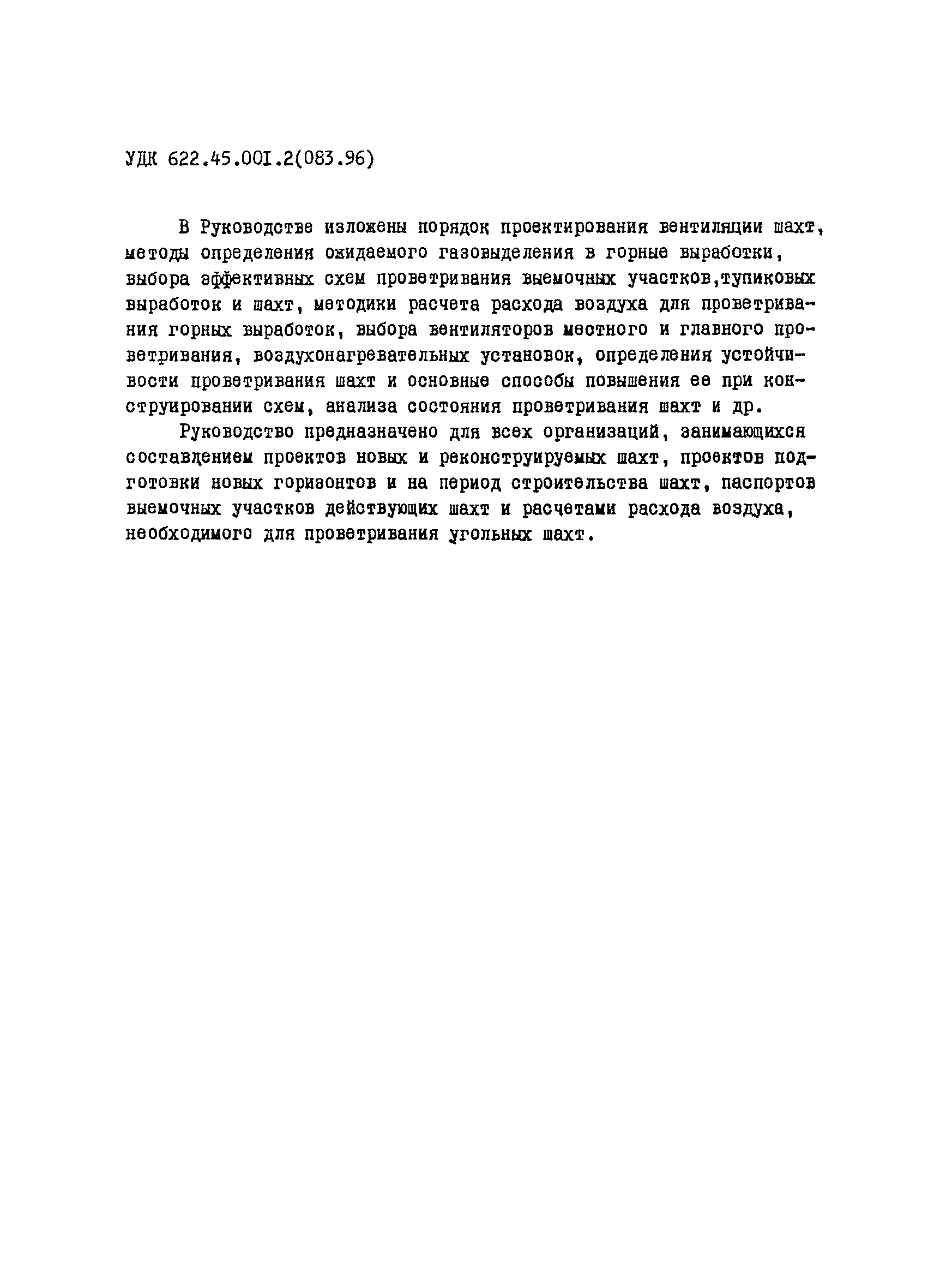| Название рус.: | Руководство по проектированию вентиляции угольных шахт (редакция 1989 года) |