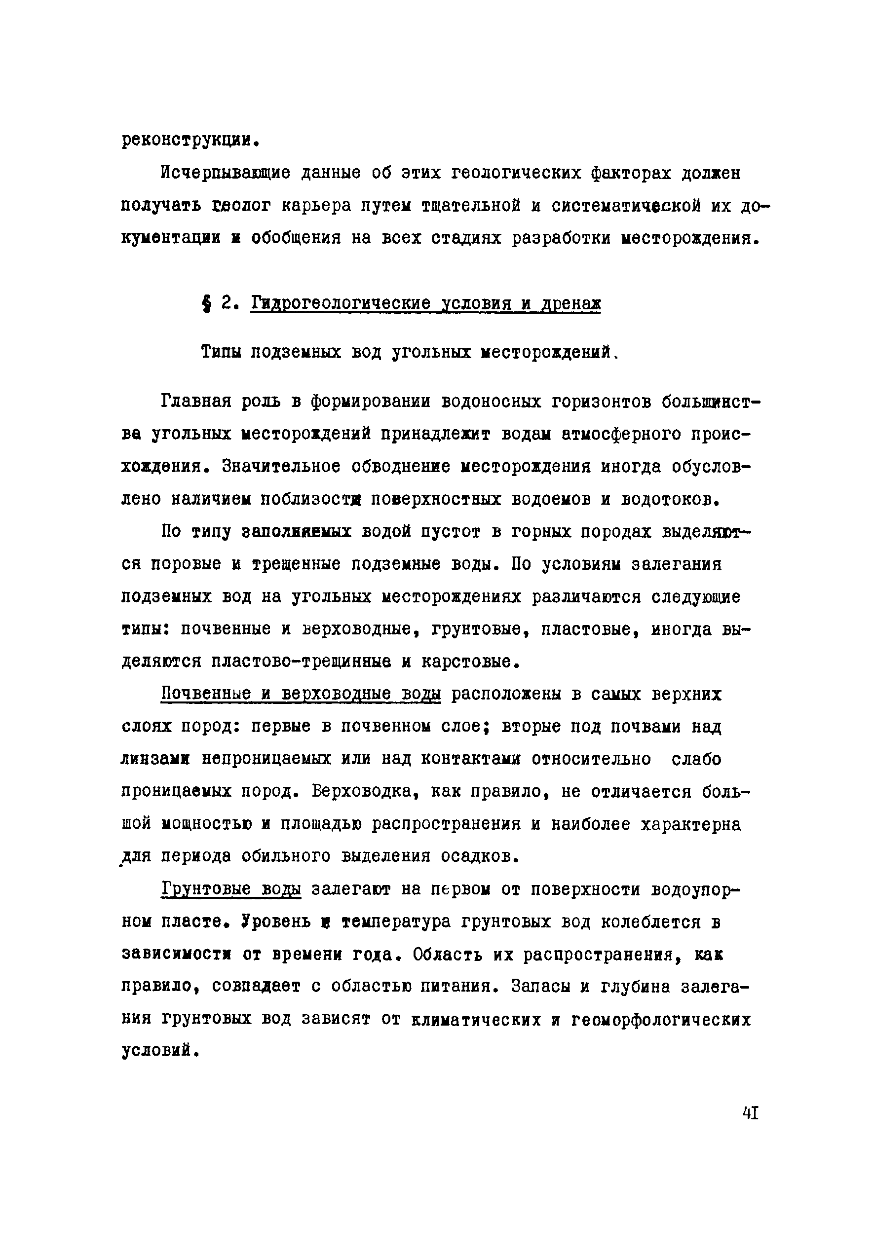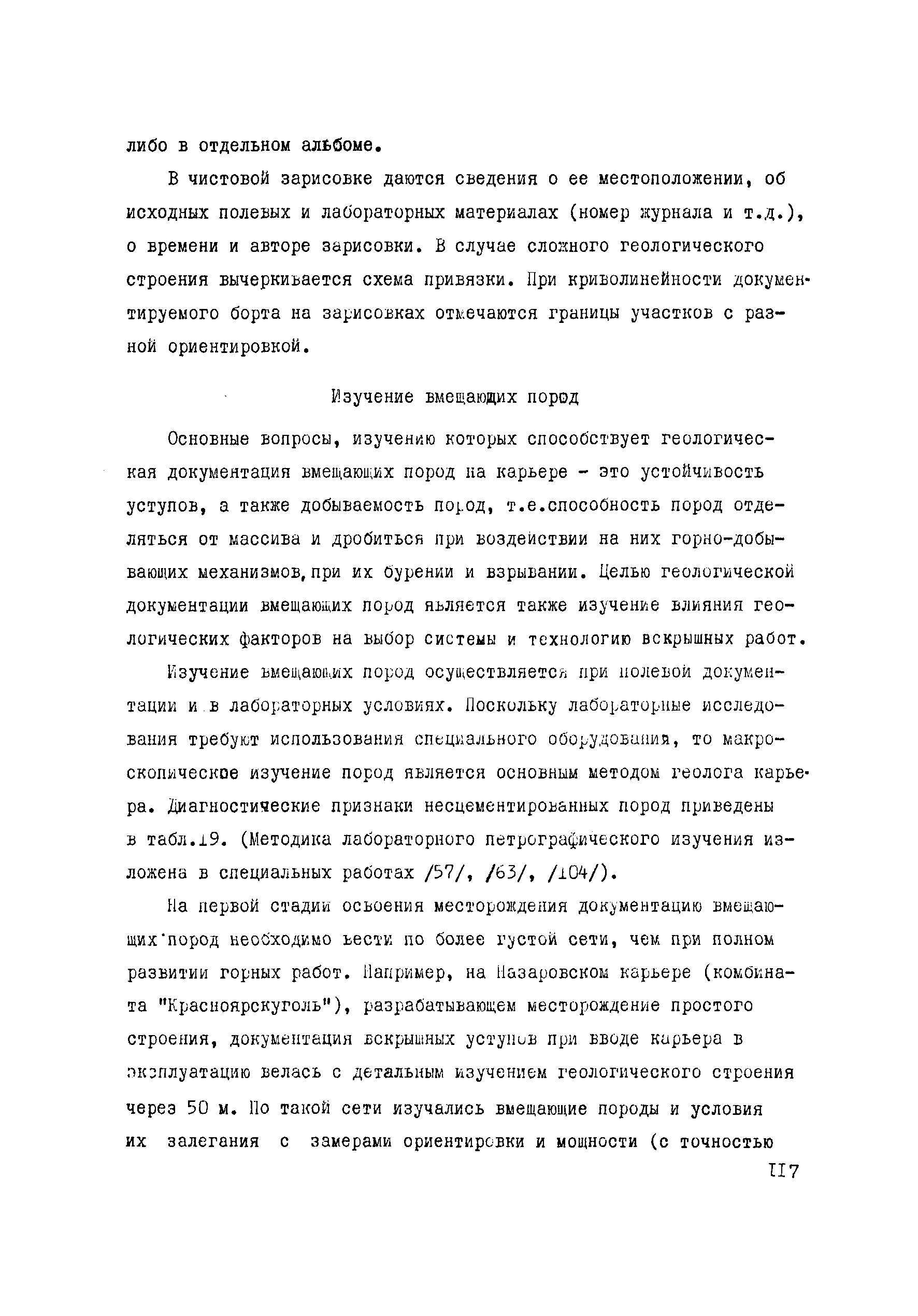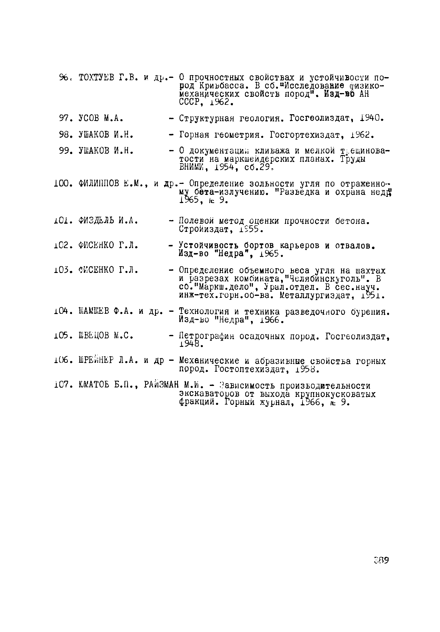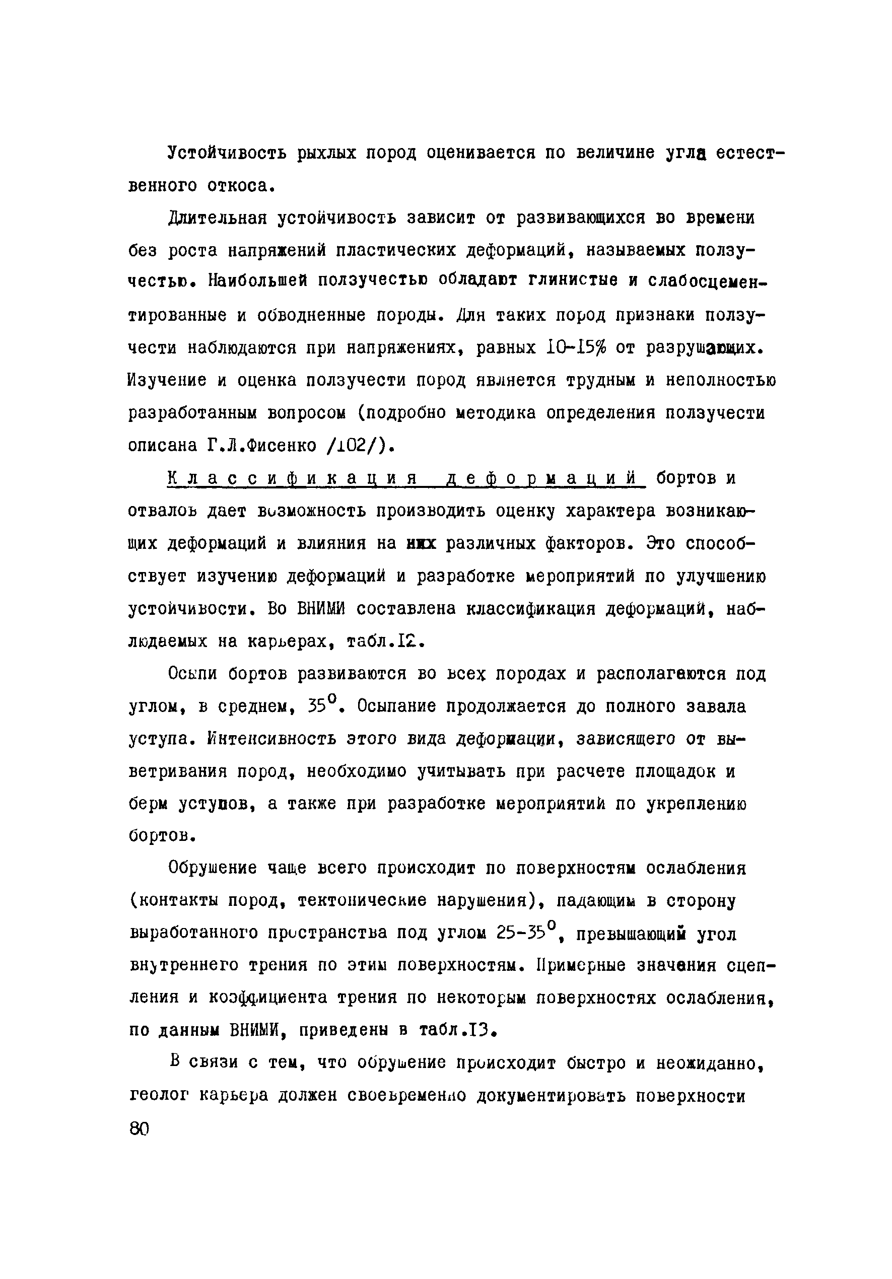 | Оглавление: | Глава 1. Горно-геологические условия открытой разработки угольных месторождений § 1. Геологические условия Состав и строение угленосной толщи Разрывные и складчатые нарушения Трещиноватость Выветривание пород Самовозгорание углей Влияние геологических факторов на открытый способ разработки § 2. Гидрогеологические условия и дренаж Типы подземных вод угольных месторождений Гидрогеологические характеристики Условия обводнения карьеров Прогноз притока воды в карьер Гидрогеологическая классификация карьерных полей Способы осушения § 3. Инженерно-геологические условия Инженерно-геологические характеристики пород Влияние состава и строения пород на их свойства Устойчивость пород § 4. Горно-геологическая классификация угольных месторождений, разрабатываемых открытым способом Глава 2. Геологическая документация на угольных карьерах § 1. Задачи геологической документации § 2. Методика геологической документации Объекты геологической документации Приемы и средства документации Изучение вмещающих пород Изучение угольного пласта Изучение разрывных нарушений Изучение трещиноватости § 3. Геологическая съемка на карьерах Геологическая съемка на карьерах с простыми горно-геологическими условиями Геологическая съемка на карьерах с горно-геологическими условиями средней сложностей Геологическая съемка на карьерах со сложными горно-геологическими условиями § 4. Усовершенствование геологической документации Геологическая документация с помощью «Телетопа» Геологическая документация с помощью рисовального прибора Геологическая фотодокументация § 5. Геологическая документация скважин Документация колонковых скважин Документация скважин ручного бурения § 6. Прогнозирование элементов геологического строения Глава 3. Изучение качества угля § 1. Опробование угля Задачи и виды опробования Способы отбора проб Сеть опробования и изменчивость основных показателей качества угля Документация при опробовании Контроль опробования § 2. Усовершенствование опробования Геофизические методы опробования Определение зольности по объемному (удельному) весу угля Механизированный отбор проб § 3. Определение зоны окисленных углей § 4. Изучение самовозгорания угля § 5. Контроль за полнотой выемки Глава 4. Гидрогеологические наблюдения § 1. Методика гидрогеологических наблюдений Замер притока воды Наблюдения за уровнями подземных вод Пробные откачки Изучение физико-химических свойств воды § 2. Гидрогеологическая документация горных выработок § 3. Гидрогеологическая съемка Глава 5. Изучение инженерно-геологических условий § 1. Изучение устойчивости бортов Инженерно-геологическая документация Натурные изучения массива Полевые методы определения физико-механических свойств пород § 2. Изучение выветривания пород Признаки и свойства выветрелых пород Методика изучения выветривания § 3. Определение показателей добываемости пород § 4. Отбор проб и образцов § 5. Лабораторные исследования Глава 6. Геологические оборудование и документы § 1. Приборы и приспособления для отбора проб, гидрогеологических и инженерно-геологических наблюдений Инструменты и приспособления, используемые при опробовании Приборы и приспособления для гидрогеологических наблюдений Приборы и приспособления для инженерно-геологических иссле