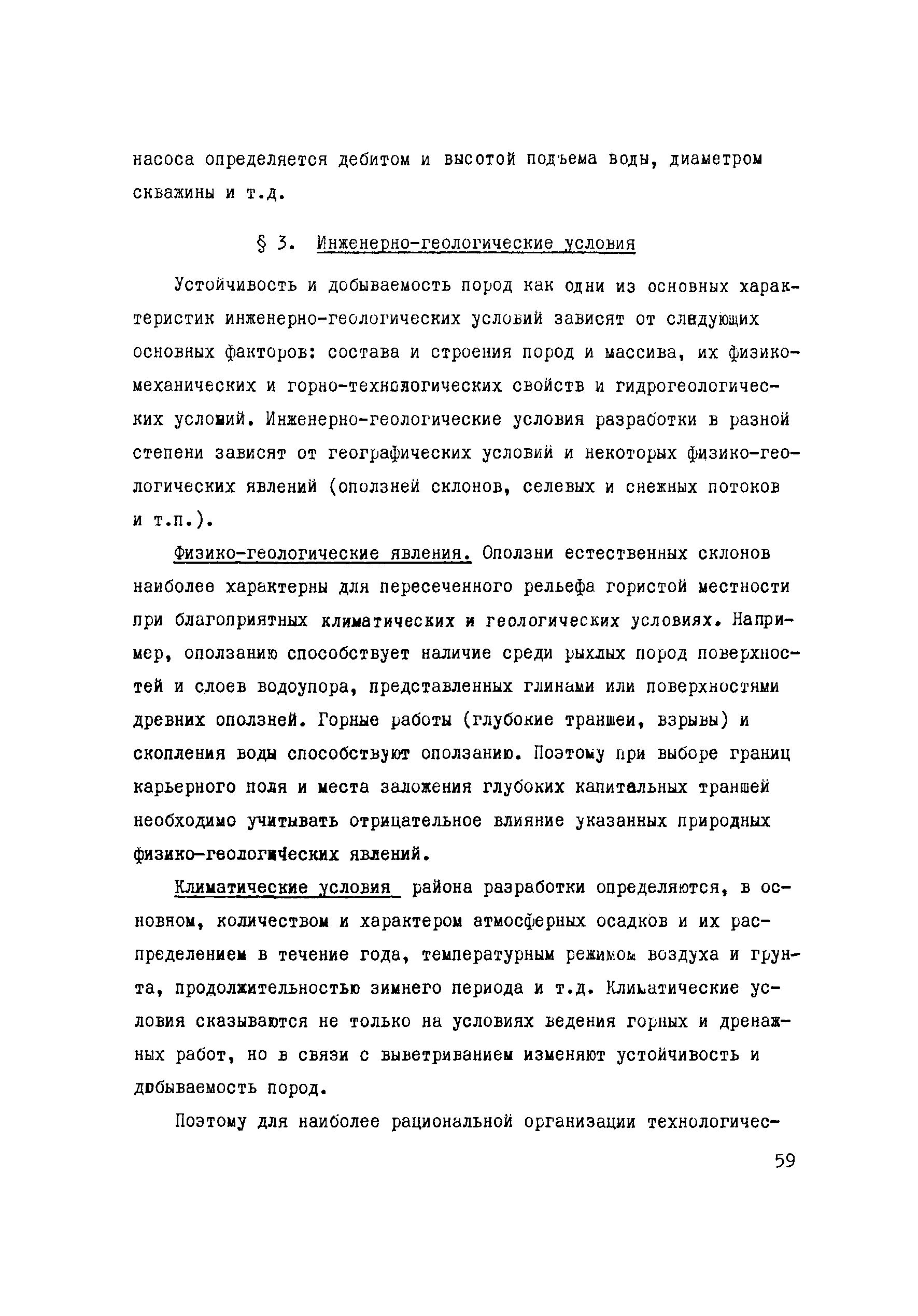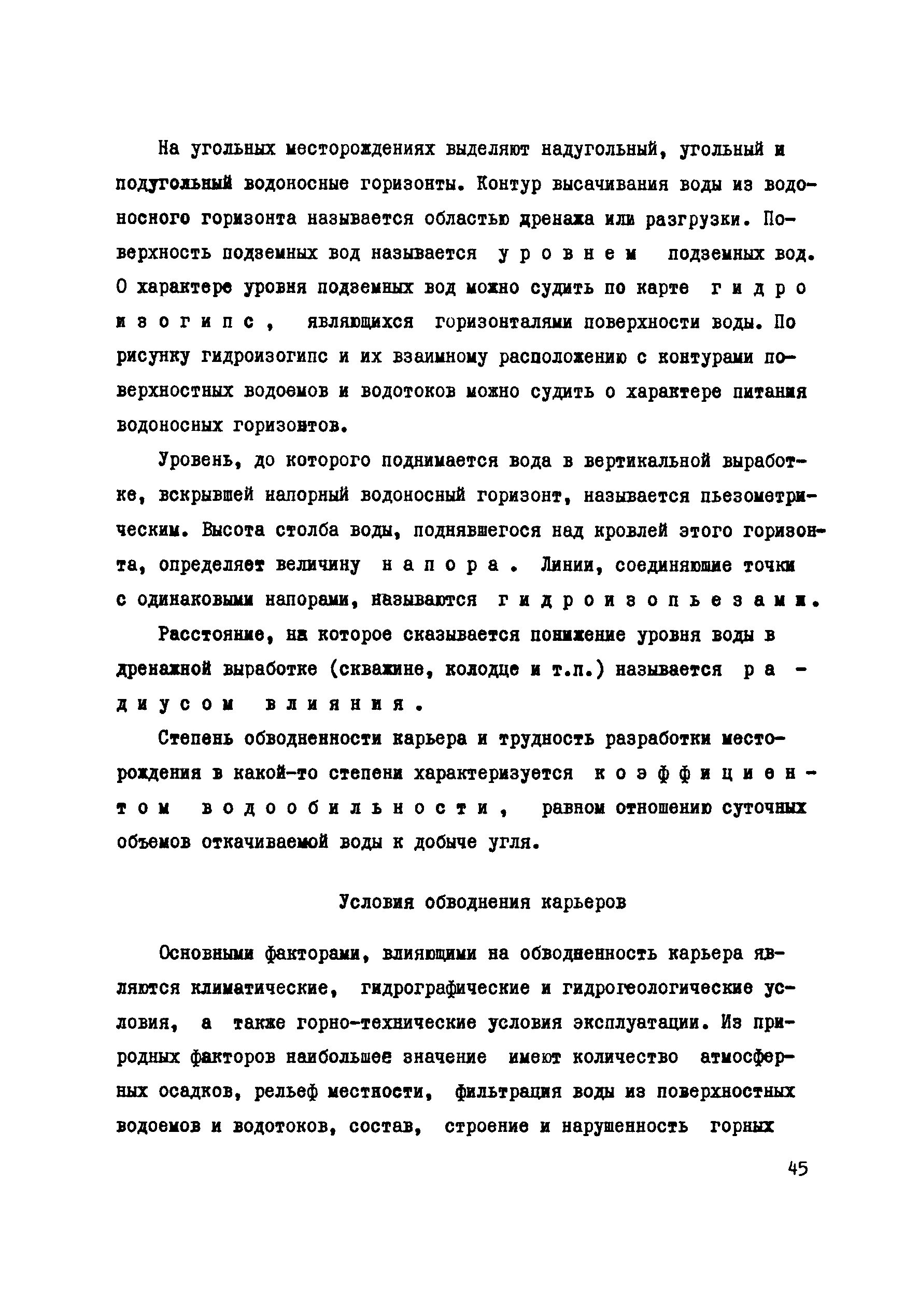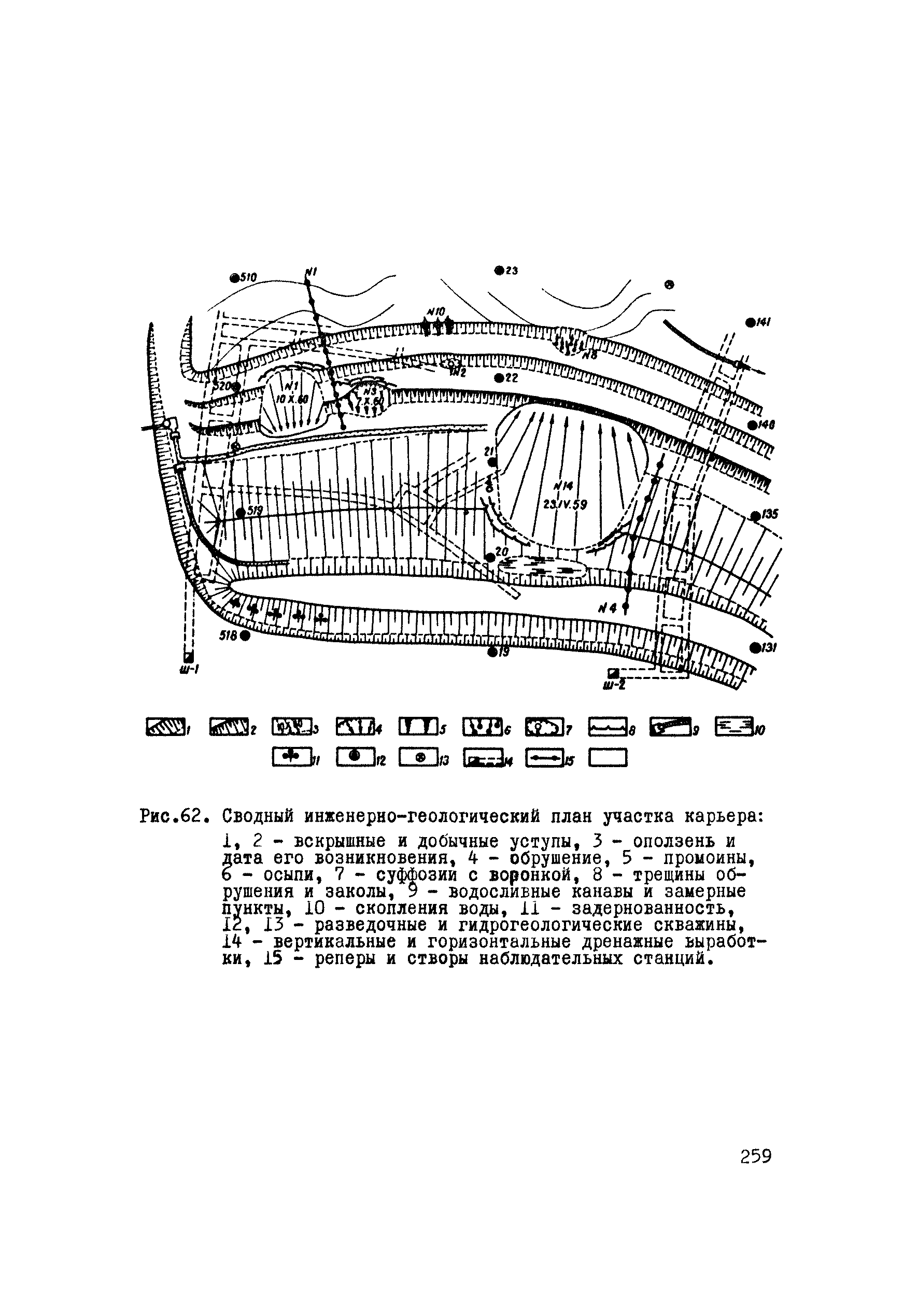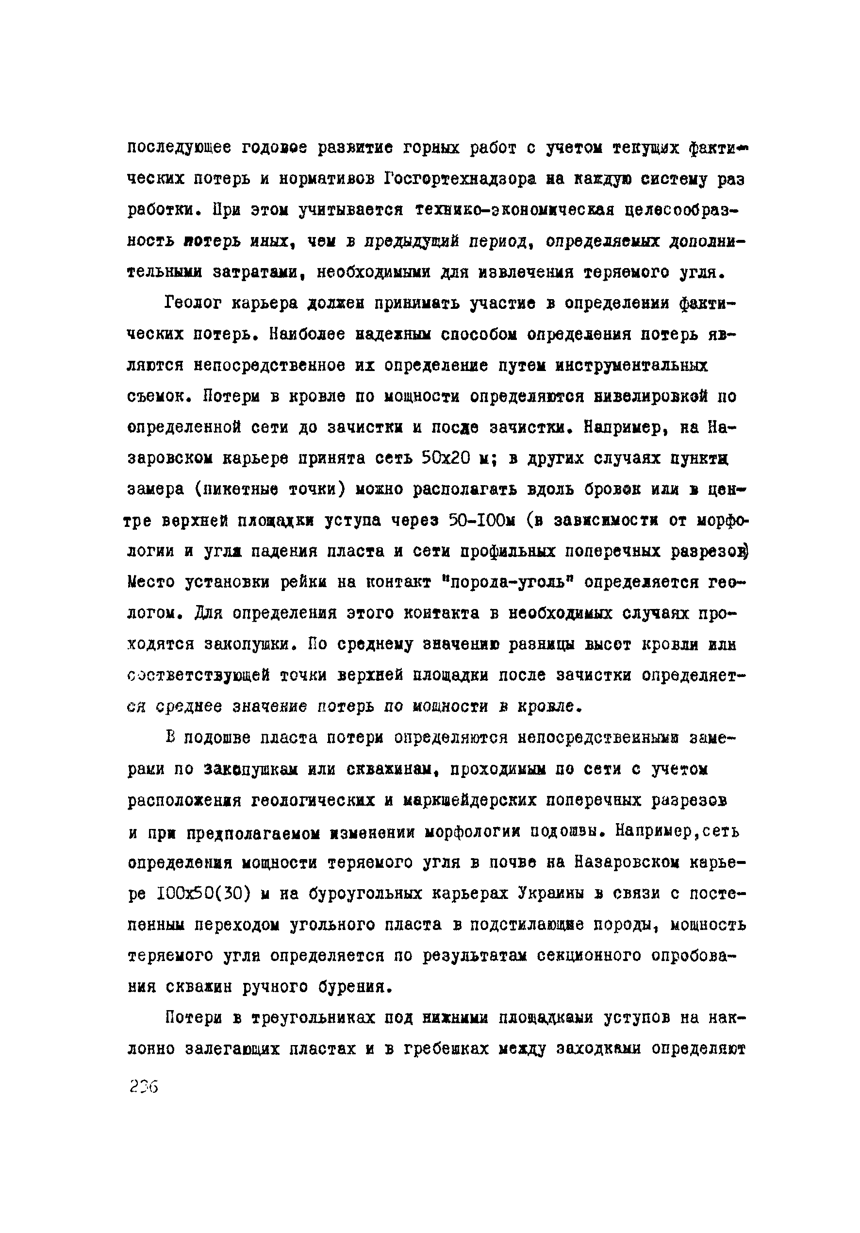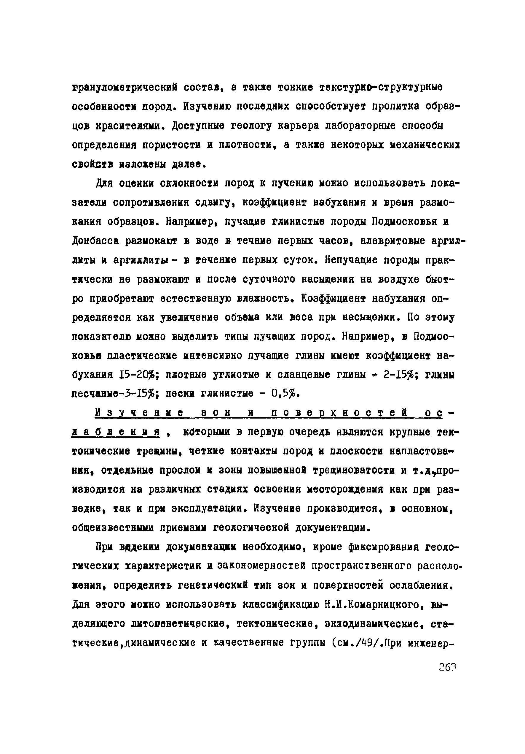 | Оглавление: | Глава 1. Горно-геологические условия открытой разработки угольных месторождений § 1. Геологические условия Состав и строение угленосной толщи Разрывные и складчатые нарушения Трещиноватость Выветривание пород Самовозгорание углей Влияние геологических факторов на открытый способ разработки § 2. Гидрогеологические условия и дренаж Типы подземных вод угольных месторождений Гидрогеологические характеристики Условия обводнения карьеров Прогноз притока воды в карьер Гидрогеологическая классификация карьерных полей Способы осушения § 3. Инженерно-геологические условия Инженерно-геологические характеристики пород Влияние состава и строения пород на их свойства Устойчивость пород § 4. Горно-геологическая классификация угольных месторождений, разрабатываемых открытым способом Глава 2. Геологическая документация на угольных карьерах § 1. Задачи геологической документации § 2. Методика геологической документации Объекты геологической документации Приемы и средства документации Изучение вмещающих пород Изучение угольного пласта Изучение разрывных нарушений Изучение трещиноватости § 3. Геологическая съемка на карьерах Геологическая съемка на карьерах с простыми горно-геологическими условиями Геологическая съемка на карьерах с горно-геологическими условиями средней сложностей Геологическая съемка на карьерах со сложными горно-геологическими условиями § 4. Усовершенствование геологической документации Геологическая документация с помощью «Телетопа» Геологическая документация с помощью рисовального прибора Геологическая фотодокументация § 5. Геологическая документация скважин Документация колонковых скважин Документация скважин ручного бурения § 6. Прогнозирование элементов геологического строения Глава 3. Изучение качества угля § 1. Опробование угля Задачи и виды опробования Способы отбора проб Сеть опробования и изменчивость основных показателей качества угля Документация при опробовании Контроль опробования § 2. Усовершенствование опробования Геофизические методы опробования Определение зольности по объемному (удельному) весу угля Механизированный отбор проб § 3. Определение зоны окисленных углей § 4. Изучение самовозгорания угля § 5. Контроль за полнотой выемки Глава 4. Гидрогеологические наблюдения § 1. Методика гидрогеологических наблюдений Замер притока воды Наблюдения за уровнями подземных вод Пробные откачки Изучение физико-химических свойств воды § 2. Гидрогеологическая документация горных выработок § 3. Гидрогеологическая съемка Глава 5. Изучение инженерно-геологических условий § 1. Изучение устойчивости бортов Инженерно-геологическая документация Натурные изучения массива Полевые методы определения физико-механических свойств пород § 2. Изучение выветривания пород Признаки и свойства выветрелых пород Методика изучения выветривания § 3. Определение показателей добываемости пород § 4. Отбор проб и образцов § 5. Лабораторные исследования Глава 6. Геологические оборудование и документы § 1. Приборы и приспособления для отбора проб, гидрогеологических и инженерно-геологических наблюдений Инструменты и приспособления, используемые при опробовании Приборы и приспособления для гидрогеологических наблюдений Приборы и приспособления для инженерно-геологических иссле