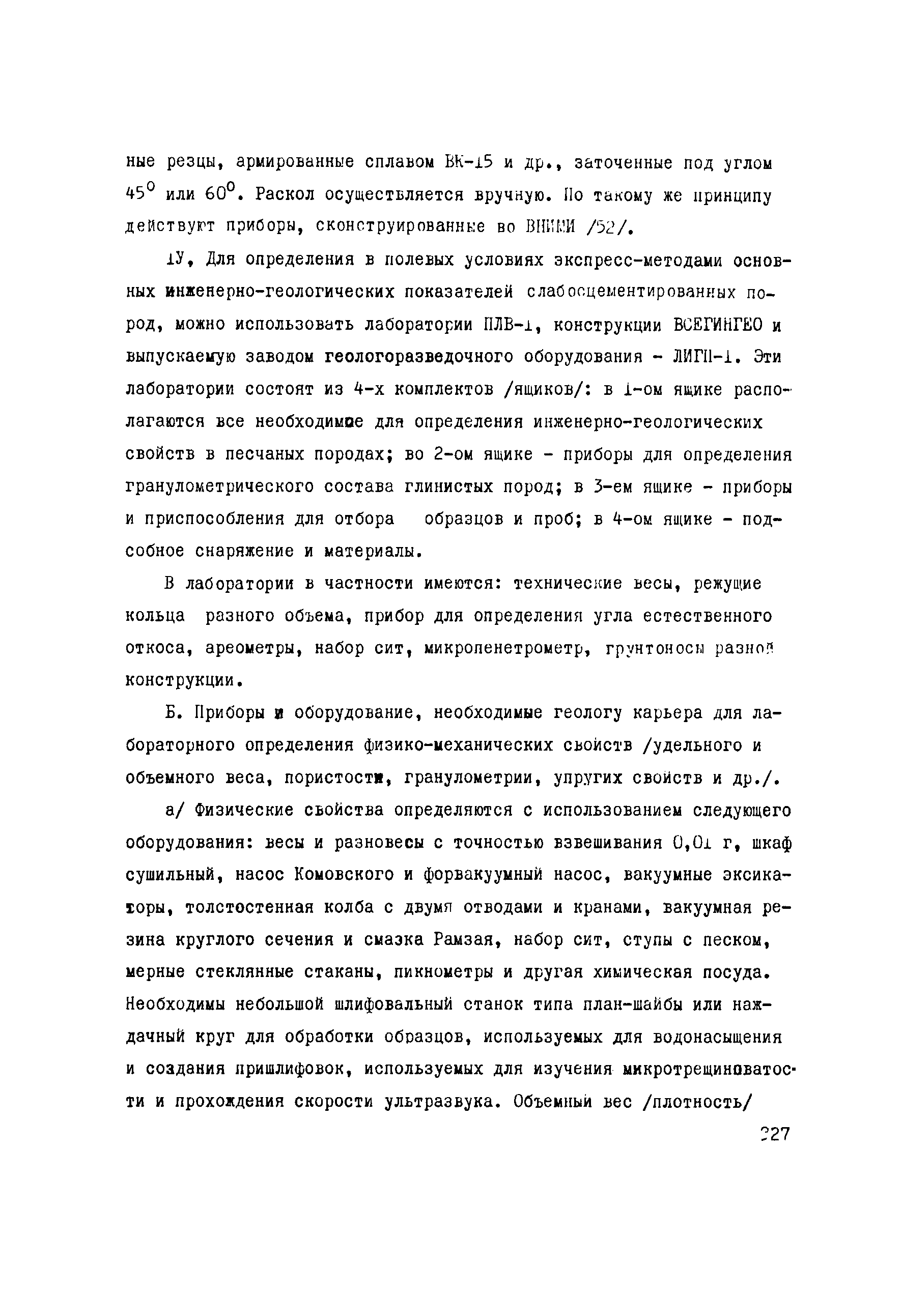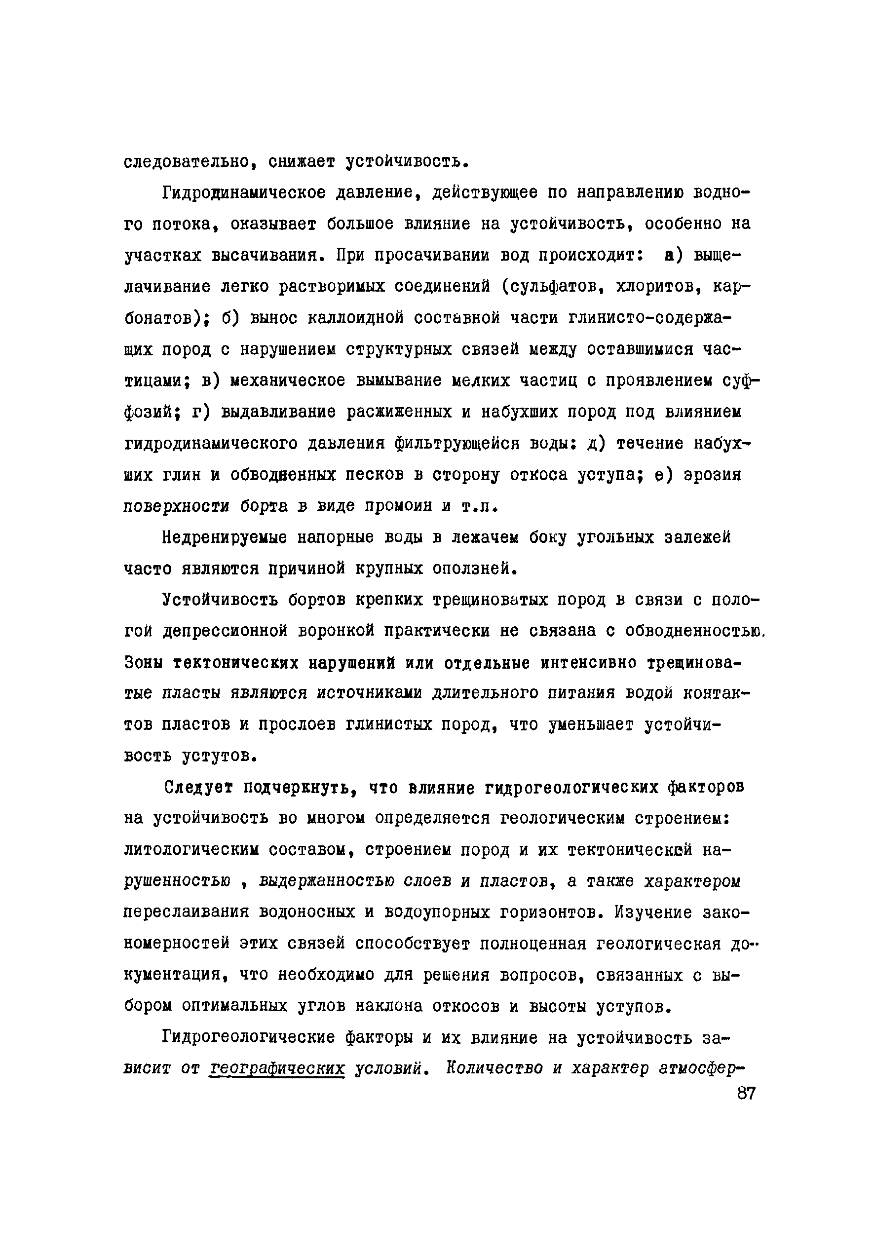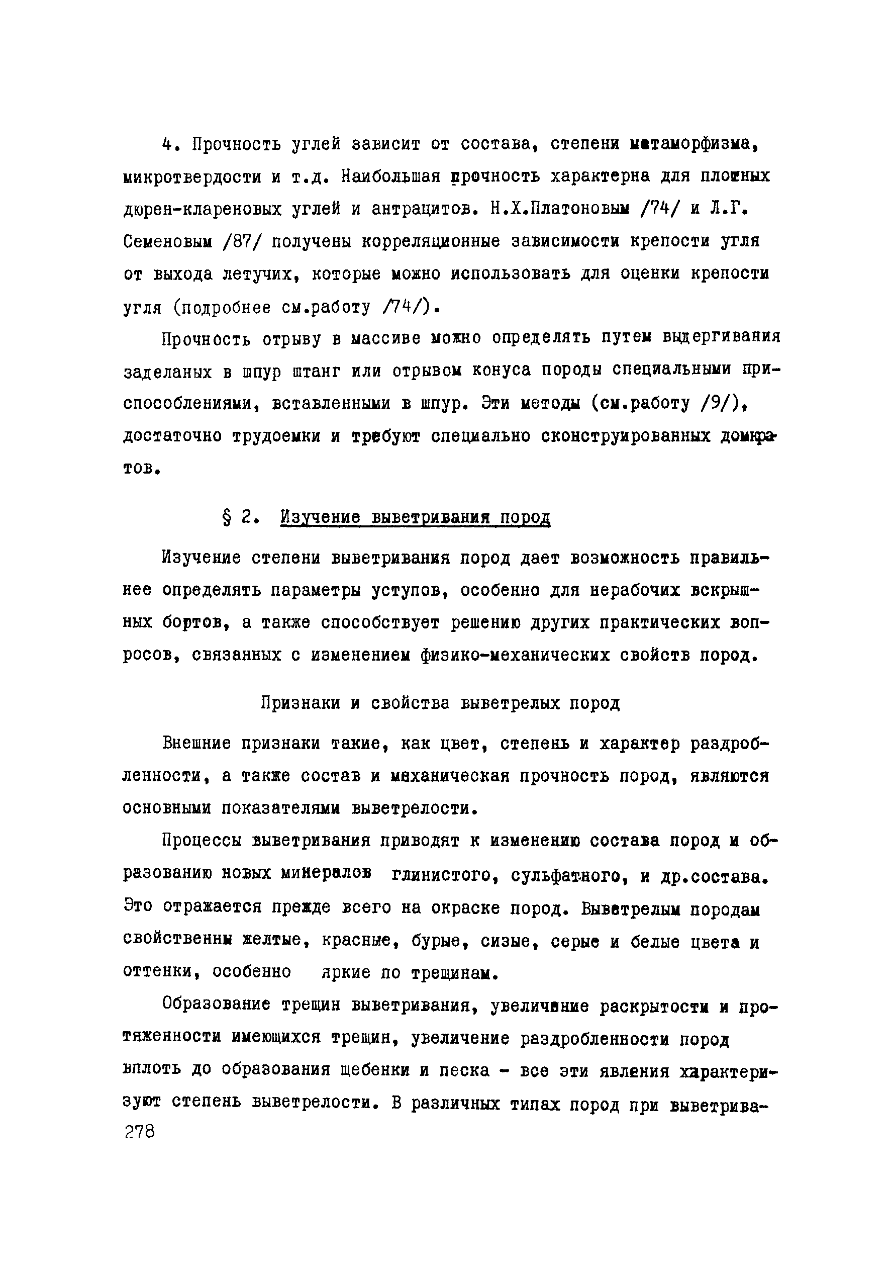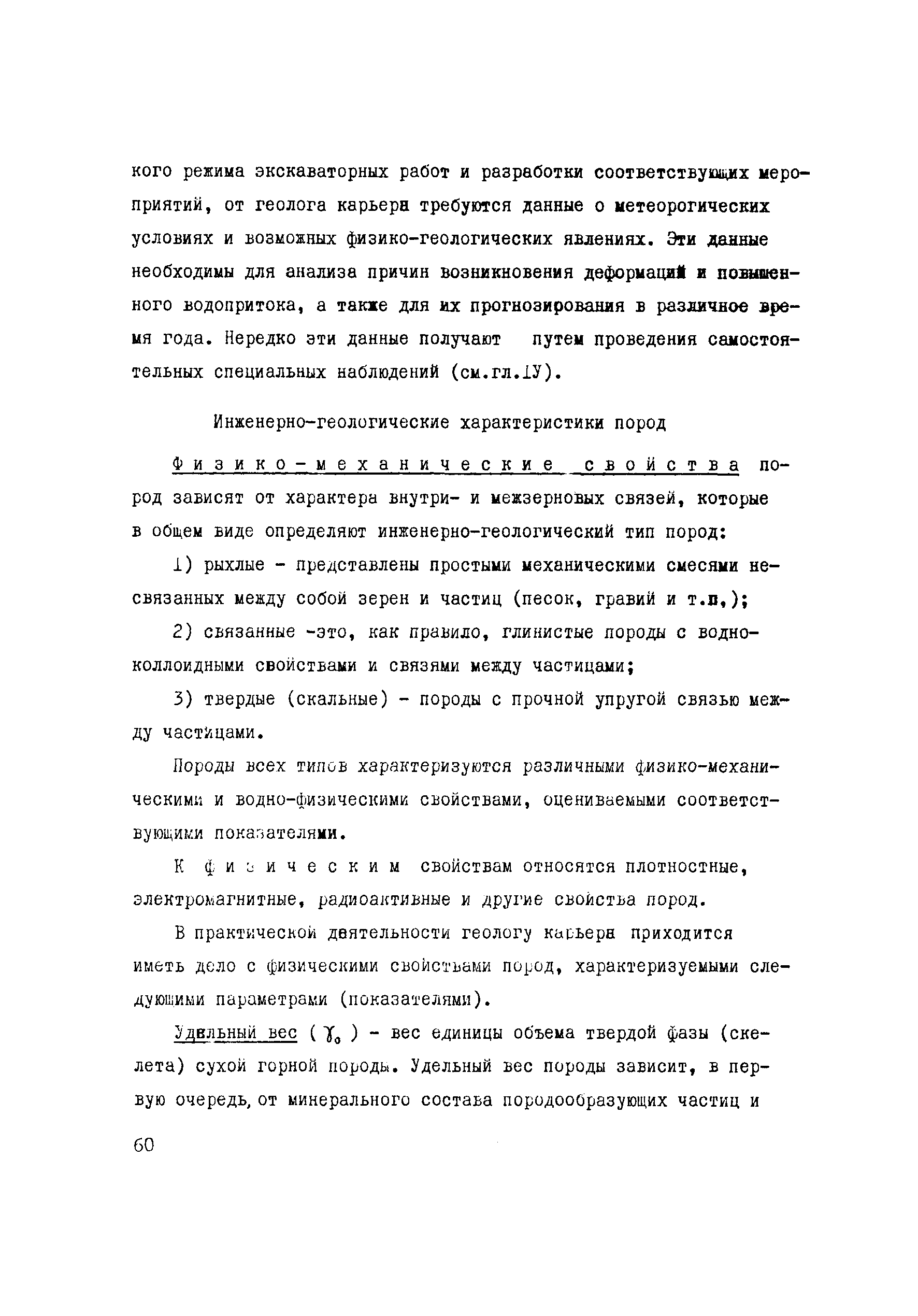 | Оглавление: | Глава 1. Горно-геологические условия открытой разработки угольных месторождений § 1. Геологические условия Состав и строение угленосной толщи Разрывные и складчатые нарушения Трещиноватость Выветривание пород Самовозгорание углей Влияние геологических факторов на открытый способ разработки § 2. Гидрогеологические условия и дренаж Типы подземных вод угольных месторождений Гидрогеологические характеристики Условия обводнения карьеров Прогноз притока воды в карьер Гидрогеологическая классификация карьерных полей Способы осушения § 3. Инженерно-геологические условия Инженерно-геологические характеристики пород Влияние состава и строения пород на их свойства Устойчивость пород § 4. Горно-геологическая классификация угольных месторождений, разрабатываемых открытым способом Глава 2. Геологическая документация на угольных карьерах § 1. Задачи геологической документации § 2. Методика геологической документации Объекты геологической документации Приемы и средства документации Изучение вмещающих пород Изучение угольного пласта Изучение разрывных нарушений Изучение трещиноватости § 3. Геологическая съемка на карьерах Геологическая съемка на карьерах с простыми горно-геологическими условиями Геологическая съемка на карьерах с горно-геологическими условиями средней сложностей Геологическая съемка на карьерах со сложными горно-геологическими условиями § 4. Усовершенствование геологической документации Геологическая документация с помощью «Телетопа» Геологическая документация с помощью рисовального прибора Геологическая фотодокументация § 5. Геологическая документация скважин Документация колонковых скважин Документация скважин ручного бурения § 6. Прогнозирование элементов геологического строения Глава 3. Изучение качества угля § 1. Опробование угля Задачи и виды опробования Способы отбора проб Сеть опробования и изменчивость основных показателей качества угля Документация при опробовании Контроль опробования § 2. Усовершенствование опробования Геофизические методы опробования Определение зольности по объемному (удельному) весу угля Механизированный отбор проб § 3. Определение зоны окисленных углей § 4. Изучение самовозгорания угля § 5. Контроль за полнотой выемки Глава 4. Гидрогеологические наблюдения § 1. Методика гидрогеологических наблюдений Замер притока воды Наблюдения за уровнями подземных вод Пробные откачки Изучение физико-химических свойств воды § 2. Гидрогеологическая документация горных выработок § 3. Гидрогеологическая съемка Глава 5. Изучение инженерно-геологических условий § 1. Изучение устойчивости бортов Инженерно-геологическая документация Натурные изучения массива Полевые методы определения физико-механических свойств пород § 2. Изучение выветривания пород Признаки и свойства выветрелых пород Методика изучения выветривания § 3. Определение показателей добываемости пород § 4. Отбор проб и образцов § 5. Лабораторные исследования Глава 6. Геологические оборудование и документы § 1. Приборы и приспособления для отбора проб, гидрогеологических и инженерно-геологических наблюдений Инструменты и приспособления, используемые при опробовании Приборы и приспособления для гидрогеологических наблюдений Приборы и приспособления для инженерно-геологических иссле