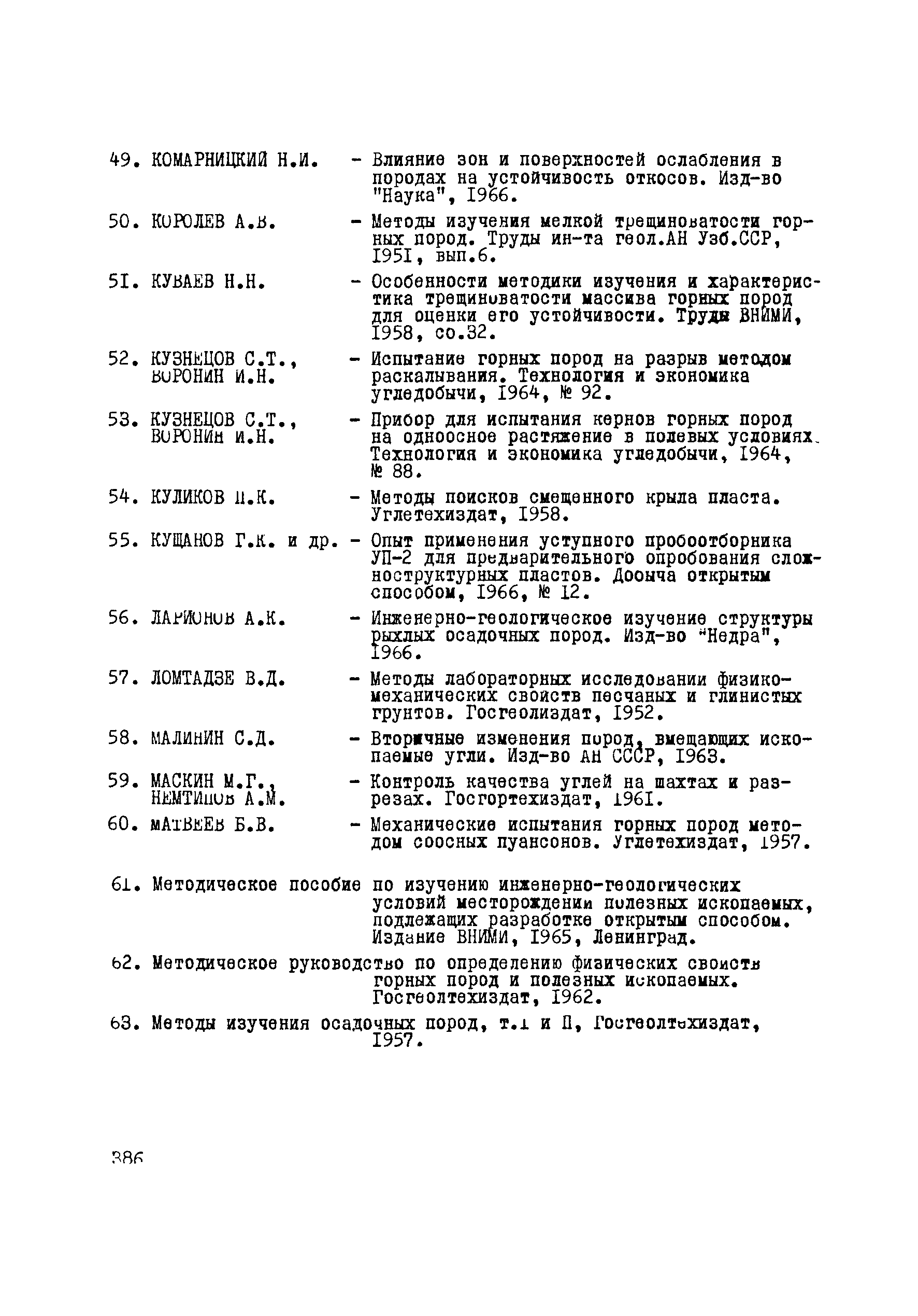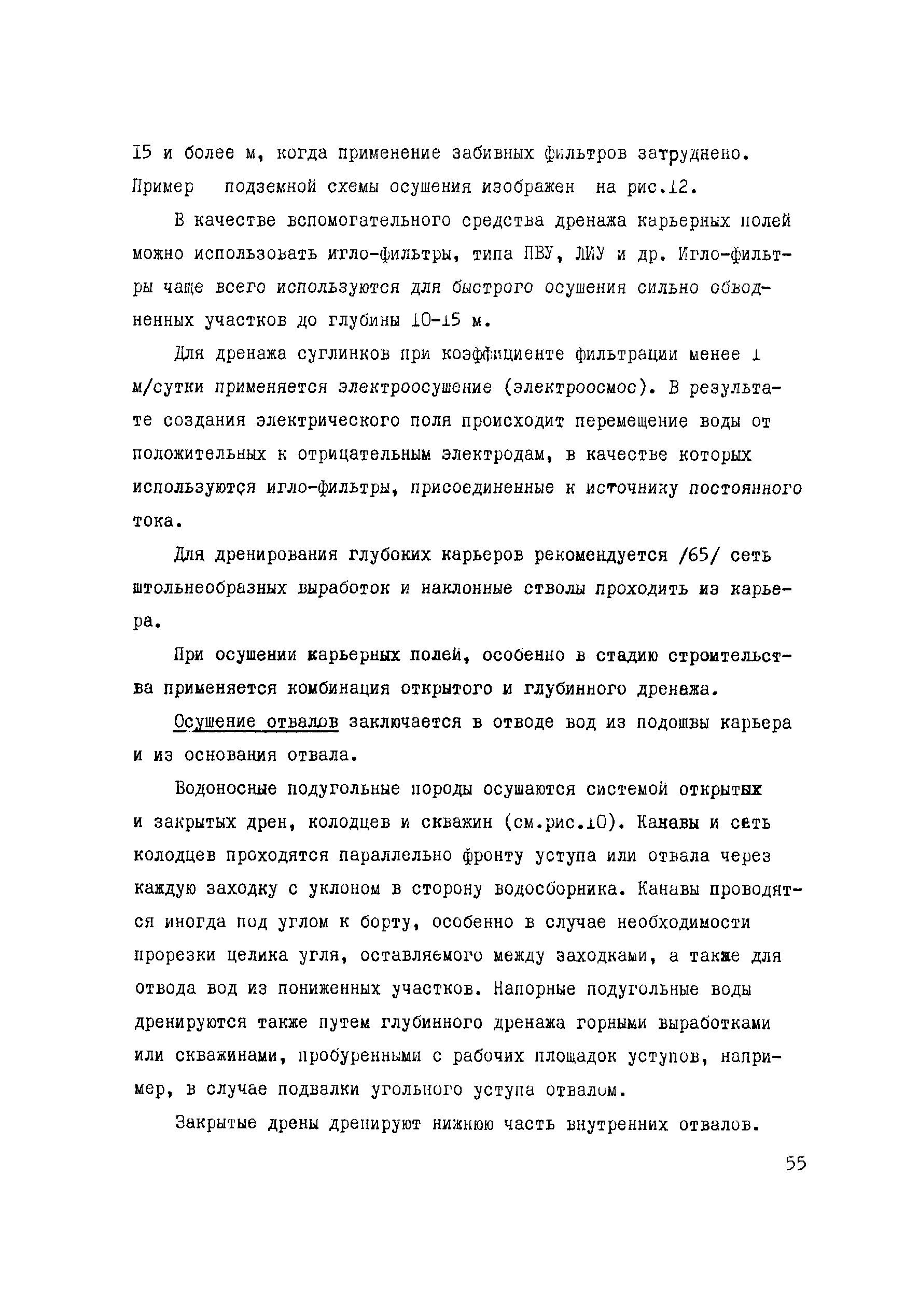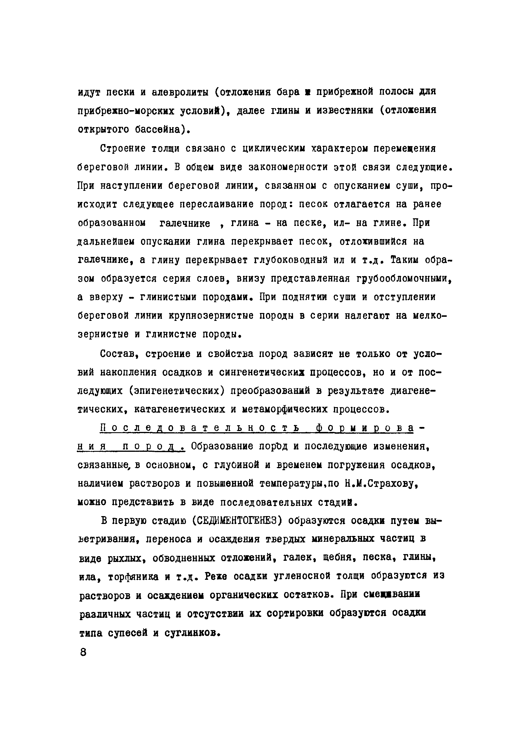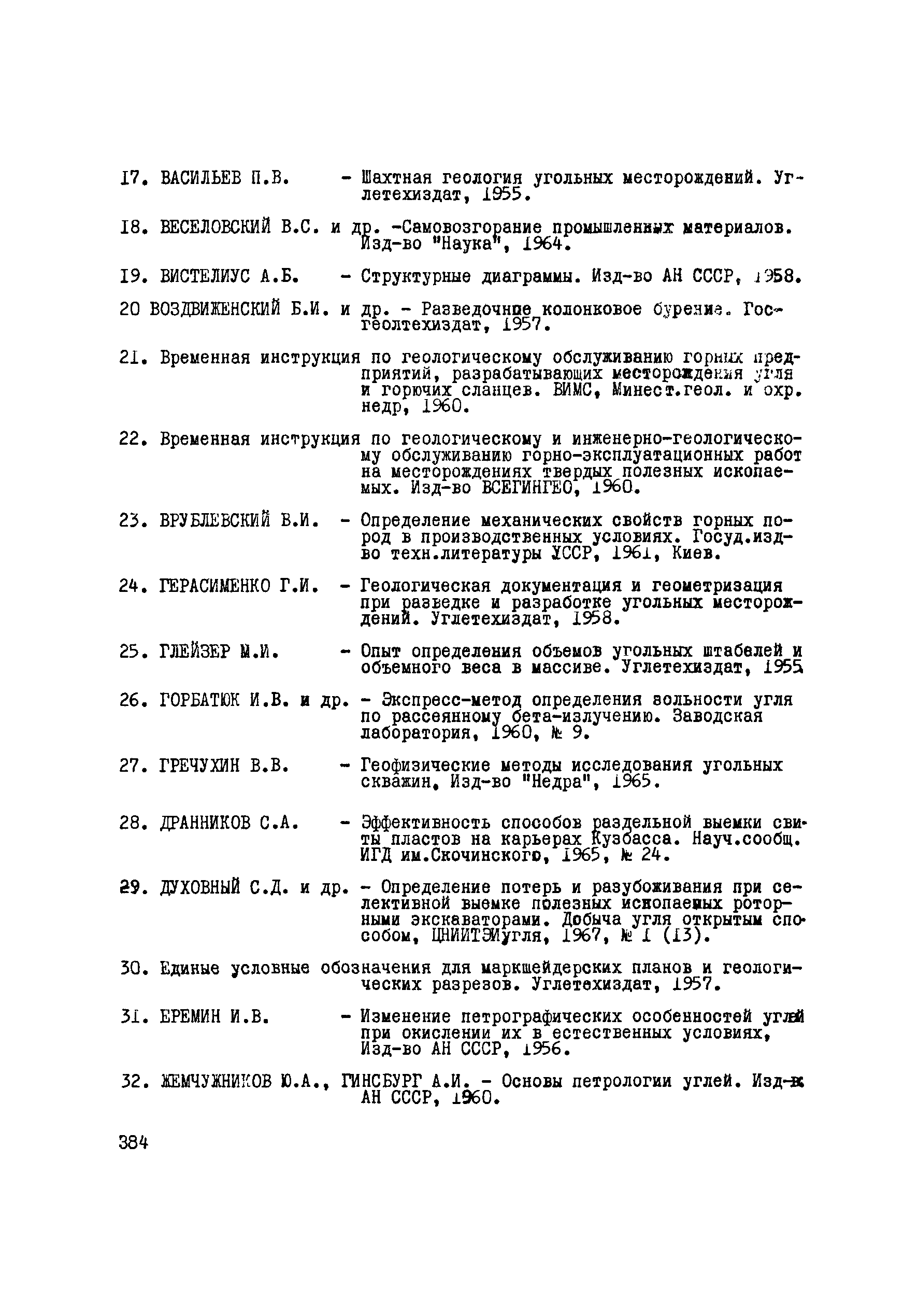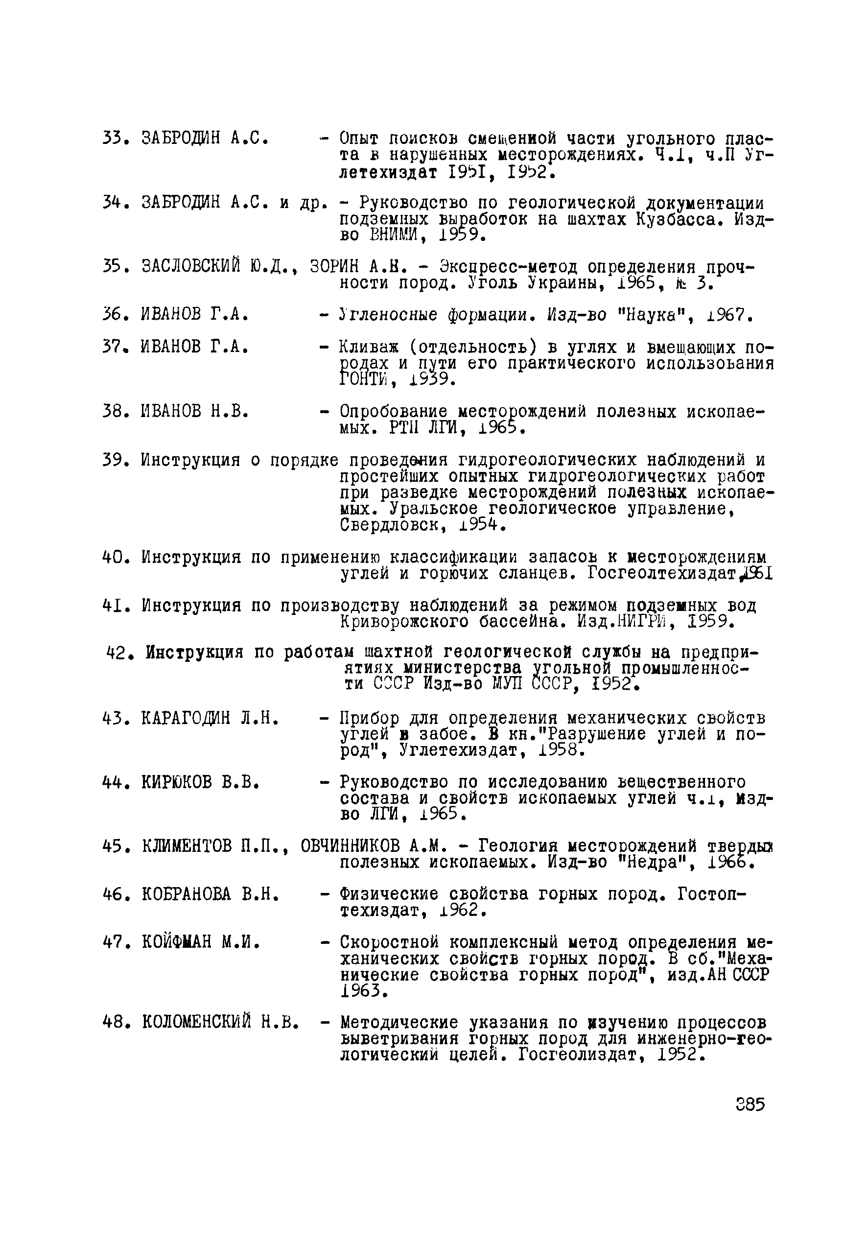 | Оглавление: | Глава 1. Горно-геологические условия открытой разработки угольных месторождений § 1. Геологические условия Состав и строение угленосной толщи Разрывные и складчатые нарушения Трещиноватость Выветривание пород Самовозгорание углей Влияние геологических факторов на открытый способ разработки § 2. Гидрогеологические условия и дренаж Типы подземных вод угольных месторождений Гидрогеологические характеристики Условия обводнения карьеров Прогноз притока воды в карьер Гидрогеологическая классификация карьерных полей Способы осушения § 3. Инженерно-геологические условия Инженерно-геологические характеристики пород Влияние состава и строения пород на их свойства Устойчивость пород § 4. Горно-геологическая классификация угольных месторождений, разрабатываемых открытым способом Глава 2. Геологическая документация на угольных карьерах § 1. Задачи геологической документации § 2. Методика геологической документации Объекты геологической документации Приемы и средства документации Изучение вмещающих пород Изучение угольного пласта Изучение разрывных нарушений Изучение трещиноватости § 3. Геологическая съемка на карьерах Геологическая съемка на карьерах с простыми горно-геологическими условиями Геологическая съемка на карьерах с горно-геологическими условиями средней сложностей Геологическая съемка на карьерах со сложными горно-геологическими условиями § 4. Усовершенствование геологической документации Геологическая документация с помощью «Телетопа» Геологическая документация с помощью рисовального прибора Геологическая фотодокументация § 5. Геологическая документация скважин Документация колонковых скважин Документация скважин ручного бурения § 6. Прогнозирование элементов геологического строения Глава 3. Изучение качества угля § 1. Опробование угля Задачи и виды опробования Способы отбора проб Сеть опробования и изменчивость основных показателей качества угля Документация при опробовании Контроль опробования § 2. Усовершенствование опробования Геофизические методы опробования Определение зольности по объемному (удельному) весу угля Механизированный отбор проб § 3. Определение зоны окисленных углей § 4. Изучение самовозгорания угля § 5. Контроль за полнотой выемки Глава 4. Гидрогеологические наблюдения § 1. Методика гидрогеологических наблюдений Замер притока воды Наблюдения за уровнями подземных вод Пробные откачки Изучение физико-химических свойств воды § 2. Гидрогеологическая документация горных выработок § 3. Гидрогеологическая съемка Глава 5. Изучение инженерно-геологических условий § 1. Изучение устойчивости бортов Инженерно-геологическая документация Натурные изучения массива Полевые методы определения физико-механических свойств пород § 2. Изучение выветривания пород Признаки и свойства выветрелых пород Методика изучения выветривания § 3. Определение показателей добываемости пород § 4. Отбор проб и образцов § 5. Лабораторные исследования Глава 6. Геологические оборудование и документы § 1. Приборы и приспособления для отбора проб, гидрогеологических и инженерно-геологических наблюдений Инструменты и приспособления, используемые при опробовании Приборы и приспособления для гидрогеологических наблюдений Приборы и приспособления для инженерно-геологических иссле