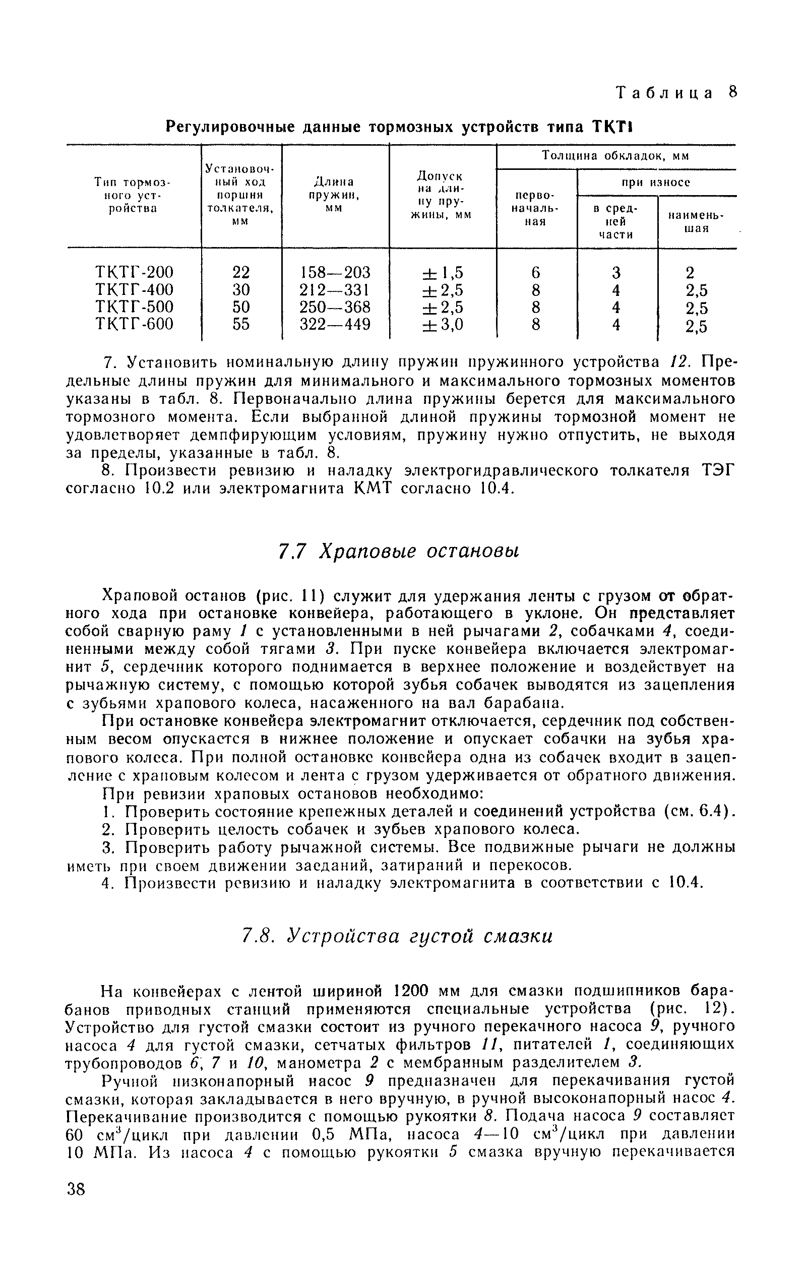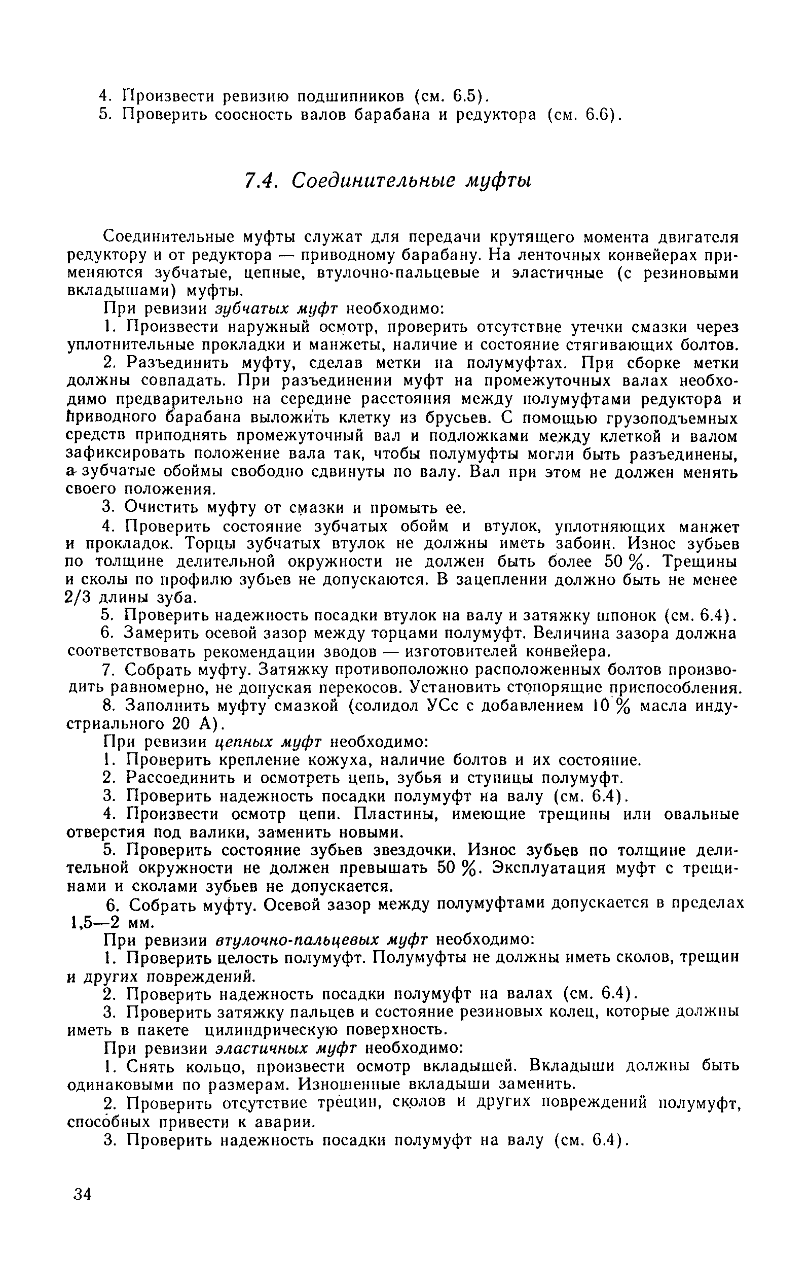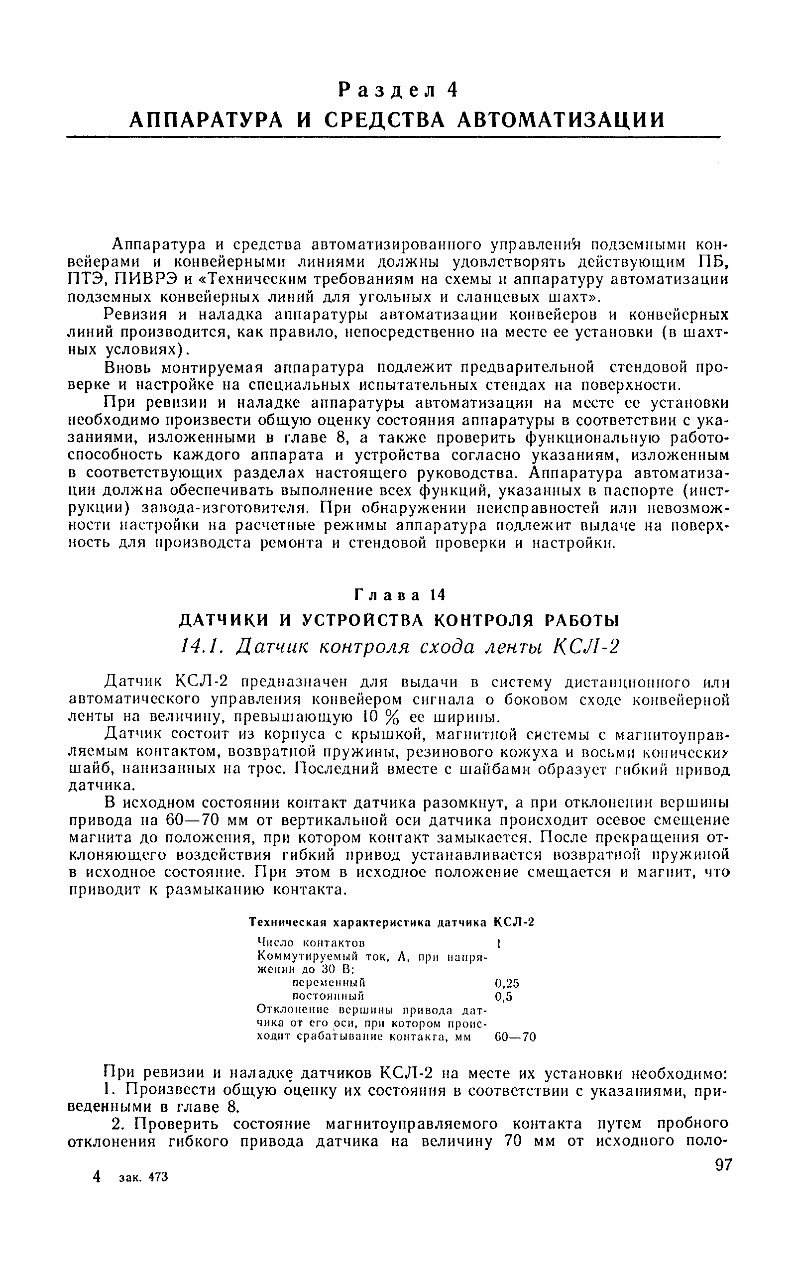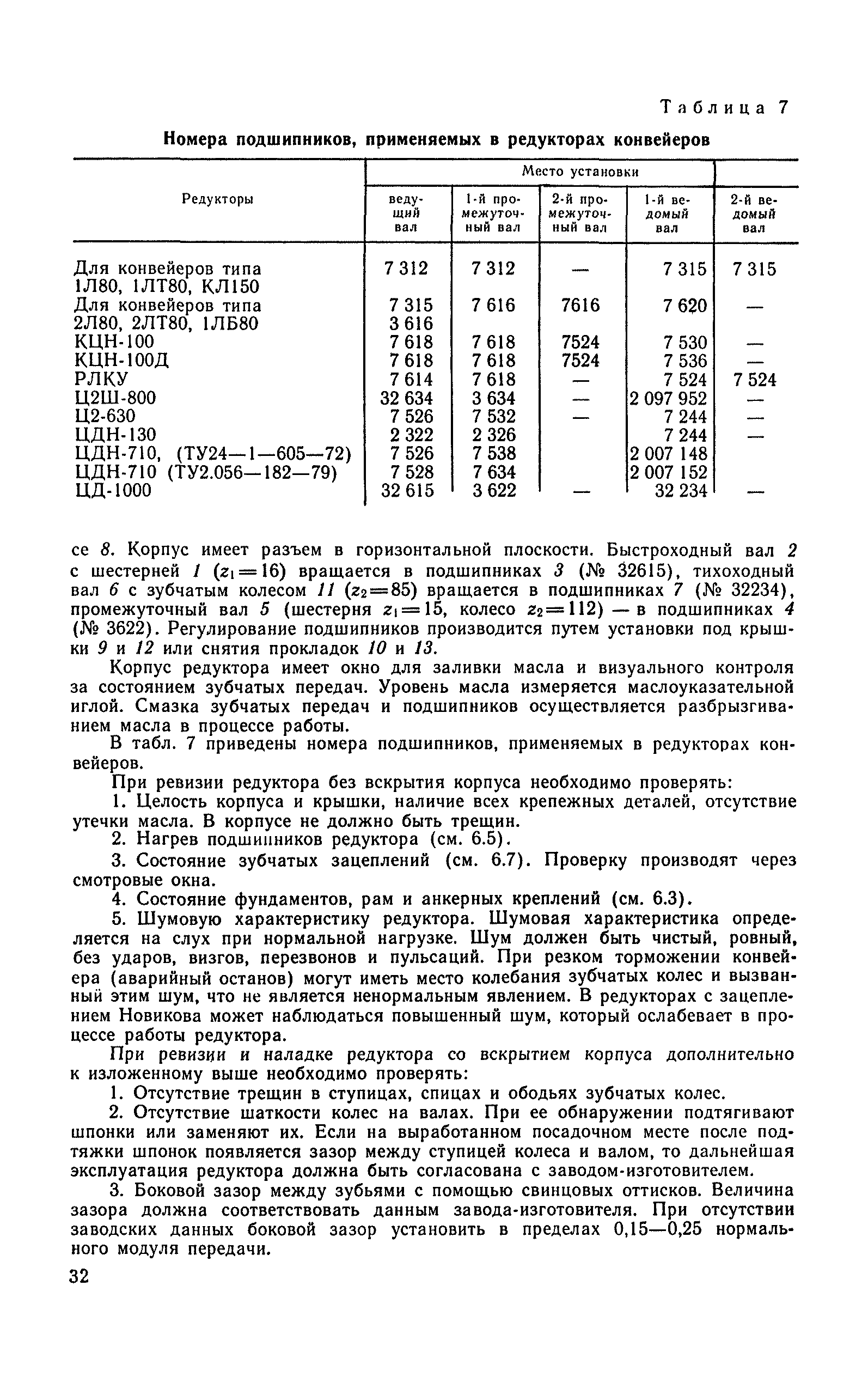 Руководство по ревизии, наладке и испытанию ленточных конвейеров и конвейерных линий угольных и сланцевых шахт| Статус: | справочные материалы, мп, тпр | | Название рус.: | Руководство по ревизии, наладке и испытанию ленточных конвейеров и конвейерных линий угольных и сланцевых шахт | | Дата добавления в базу: | 01.01.2019 | | Дата актуализации: | 01.01.2021 | | Область применения: | В документе приведены периодичность, объем и технология работ по ревизии, наладке и испытанию шахтных ленточных конвейеров и конвейерных линий, описаны принципы действия и даны краткие технические характеристики, конструктивные особенности механического и электрического оборудования. Изложены необходимые при наладке справочные данные. Освещены вопросы организации работ и техники безопасности. Предназначен для специализированных наладочных бригад, занимающихся вопросами ревизии, наладки и испытания шахтных ленточных конвейеров и конвейерных линий, а также для работников энергомеханических служб, выполняющих техническое обслуживание и ремонт конвейерных линий шахт | | Оглавление: | Раздел 1. Общие положения Глава 1. Цель ревизии, наладки и испытаний Глава 2. Объем и периодичность ревизии, наладки и испытаний Глава 3. Организация работ по ревизии, наладке и испытаниям 3.1. Состав и обязанности наладочных бригад 3.2. Подготовительные работы 3.3. Производство наладочных работ 3.4. Заключительные работы Глава 4. Общие вопросы техники безопасности при производстве наладочных работ Раздел 2. Механическая часть ленточных конвейеров Глава 5. Назначение, типы и технические характеристики Глава 6. Общие методы оценки состояния механического оборудования конвейеров 6.1. Проверка соответствия технологических характеристик конвейера фактическим условиям эксплуатации 6.2. Проверка правильности монтажа механического оборудования 6.3. Проверка состояния фундаментов и рам под оборудование 6.4. Проверка разъемных и неразъемных соединений 6.5. Ревизия и наладка подшипников качения 6.6. Проверка соосности и центровка валов 6.6.1. Проверка соосности и центровка двухопорных валов 6.6.2. Проверка соосности и центровка привода с промежуточным валом 6.7. Проверка состояния зубчатых зацеплений Глава 7. Устройство, ревизия и наладка сборочных единиц механического оборудования конвейеров 7.1. Приводные станции 7.2. Редукторы 7.3. Барабаны 7.4. Соединительные муфты 7.5. Гидромуфты 7.6. Тормозные устройства 7.7. Храповые остановы 7.8. Устройства густой смазки 7.9. Натяжные станции 7.10. Ловители ленты 7.11. Очистные устройства 7.12. Став 7.13. Загрузочные и перегрузочные устройства Раздел 3. Электрическое оборудование конвейеров и конвейерных линий Глава 8. Общие методы оценки состояния электрооборудования 8.1. Проверка правильности применения й монтажа электрооборудования 8.2. Проверка состояния корпусов, оболочек и кабельных вводов 8.3. Проверка знаков исполнения и взрывозащитных щелей 8.4. Измерение величины сопротивления изоляции 8.5. Проверка электрических цепей Глава 9. Общие методы ревизии и наладки контакторно-релейной аппаратуры 9.1. Ревизия и наладка магнитных систем КРА 9.2. Ревизия и наладка контактных систем КРА Глава 10. Электросиловое оборудование 10.1. Электродвигатели 10.2. Электрогидроприводы 10.3. Жидкостные реостаты 10.4. Тормозные электромагниты Глава 11. Станции управления СУВ1Л-100 и СУВ2Л-120 Глава 12. Указания п