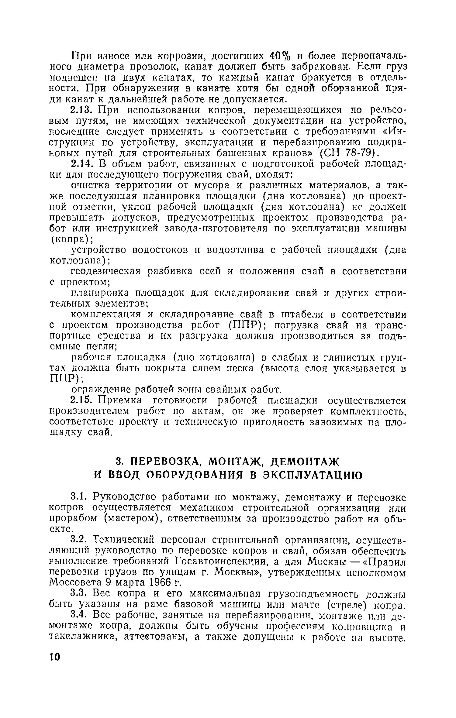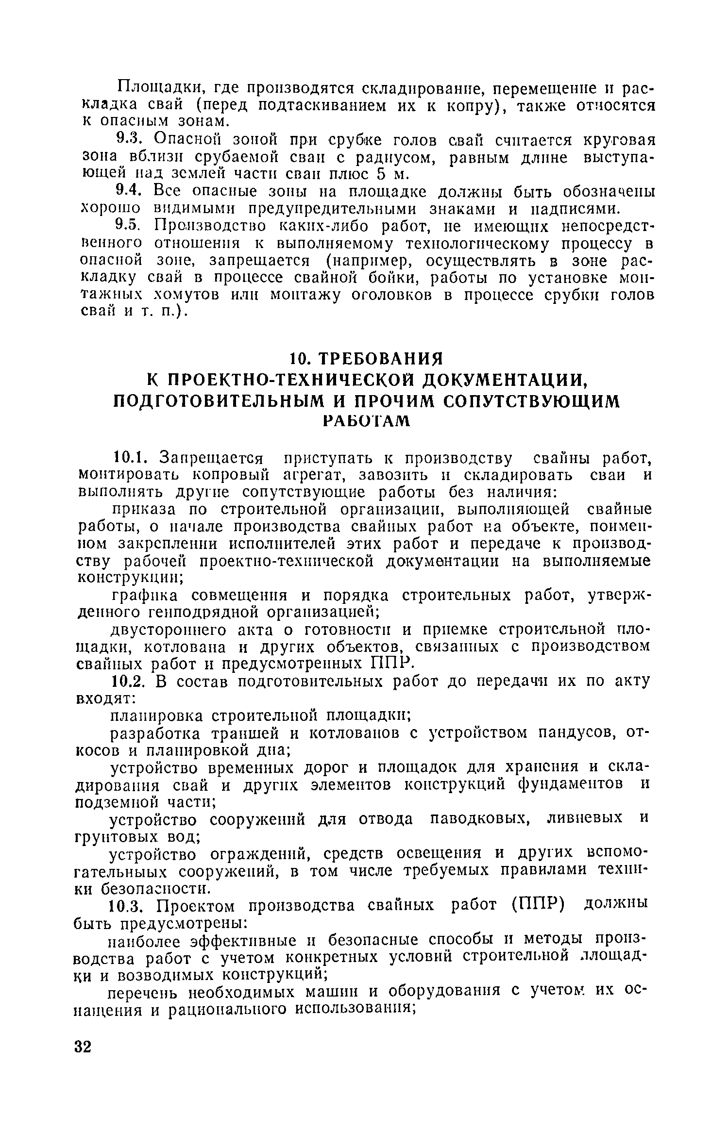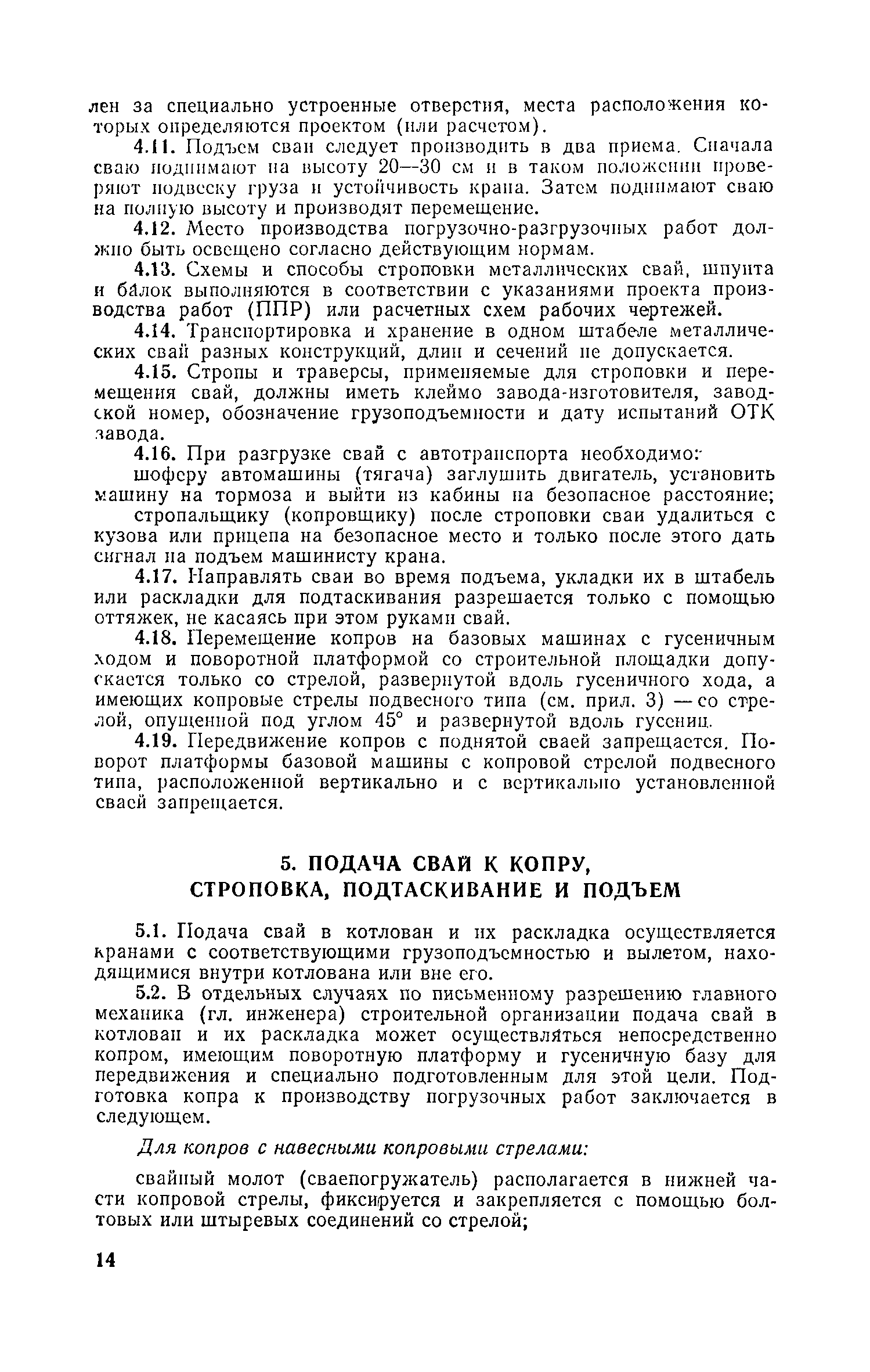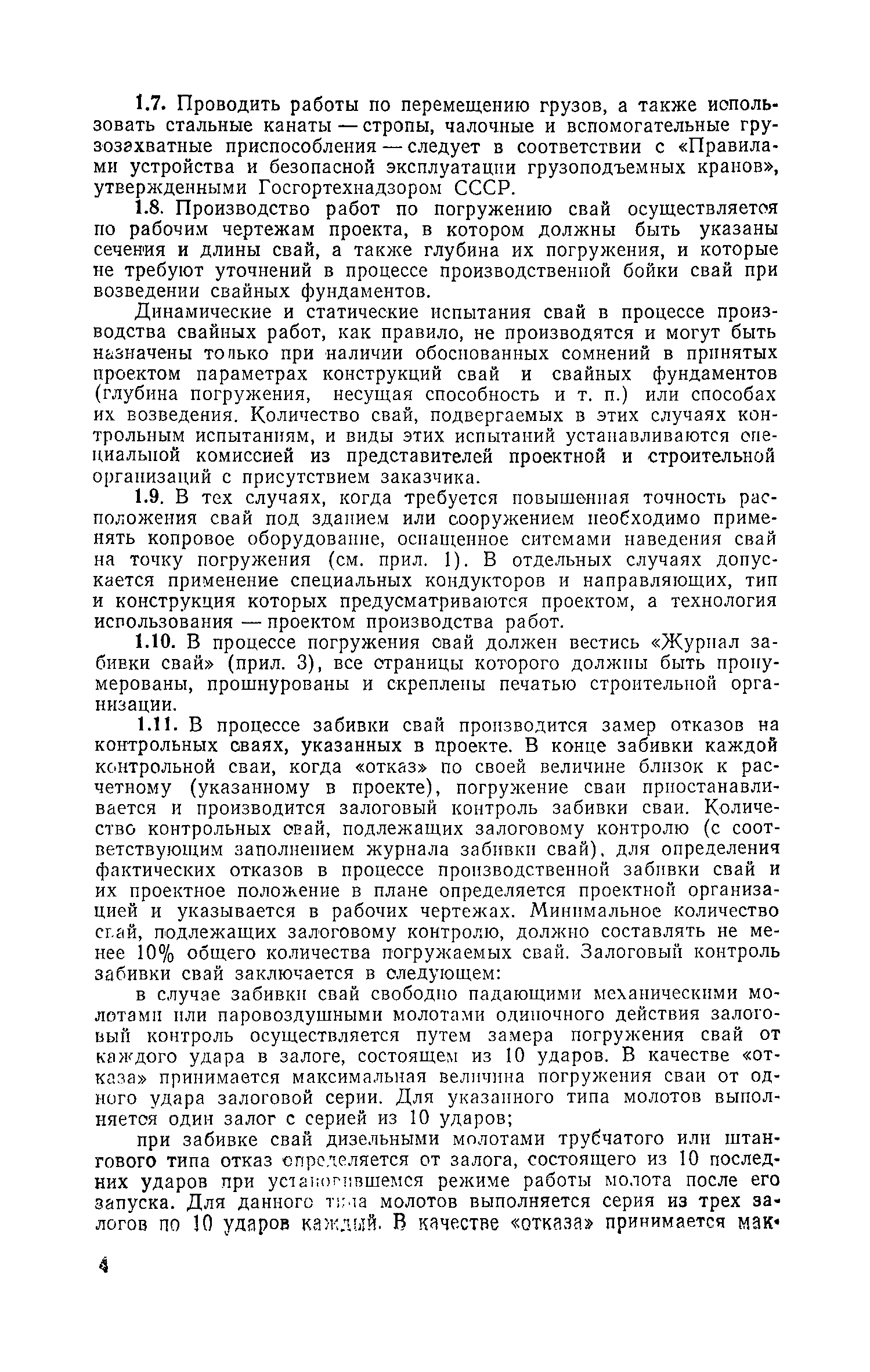 Руководство по производству свайных работ, эксплуатации копров и копрового оборудования и технике безопасности при устройстве свайных фундаментов| Статус: | справочные материалы, мп, тпр | | Название рус.: | Руководство по производству свайных работ, эксплуатации копров и копрового оборудования и технике безопасности при устройстве свайных фундаментов | | Дата добавления в базу: | 01.01.2019 | | Дата актуализации: | 01.01.2021 | | Область применения: | В документе рассмотрены способы производства свайных работ, технология, механизация и техника безопасности выполнения основных и вспомогательных процессов, связанных с погружением забивных свай копрами и копровым оборудованием. Для инженерно-технических работников проектных и строительных организаций. | | Оглавление: | 1 Общие положения 2 Организация строительной площадки, требования к оборудованию, инвентарю и оснастке 3 Перевозка, монтаж, демонтаж и ввод оборудования в эксплуатацию 4 Погрузочно-разгрузочные работы, транспортирование и хранение свай 5 Подача свай к копру, строповка, подтаскивание и подъем 6 Забивка свай 7 Срубка голов свай 8 Обязанности и ответственность должностных лиц и обслуживающего персонала. Составы рабочих звеньев и бригад. Организация труда 9 Требования по технике безопасности 10 Требования к проектно-технической документации, подготовительным и прочим сопутствующим работам Приложение 1. Номенклатура типоразмеров и области применения копров и копрового оборудования Приложение 2. Номенклатура типоразмеров и области применения копров и копрового оборудования Приложение 3. Журнал забивки свай Приложение 4. Технико-эксплуатационные показатели и характеристики копров и копрового оборудования Приложение 5. Конструктивные особенности сваепогружающих машин и их систем по наведению погружаемых свай | | Разработан: | ЦНИИОМТП Госстроя СССР