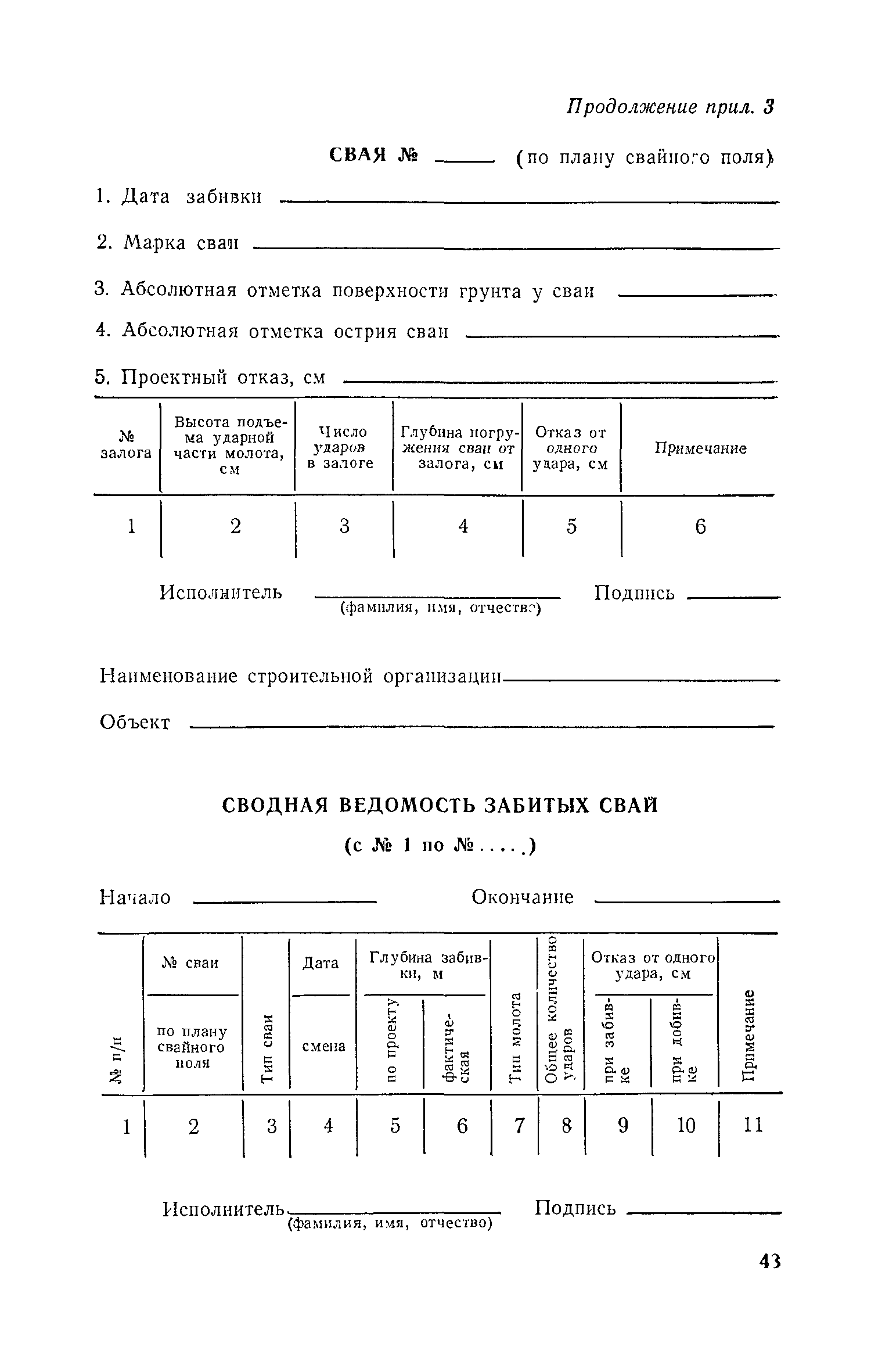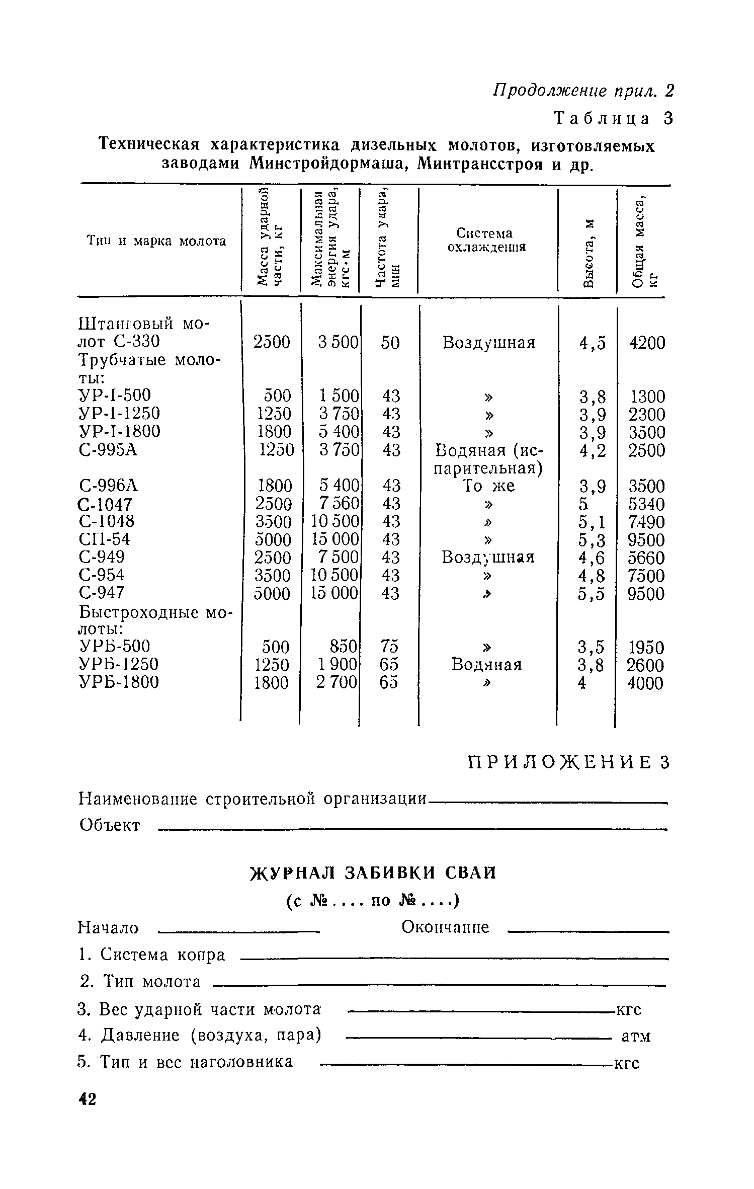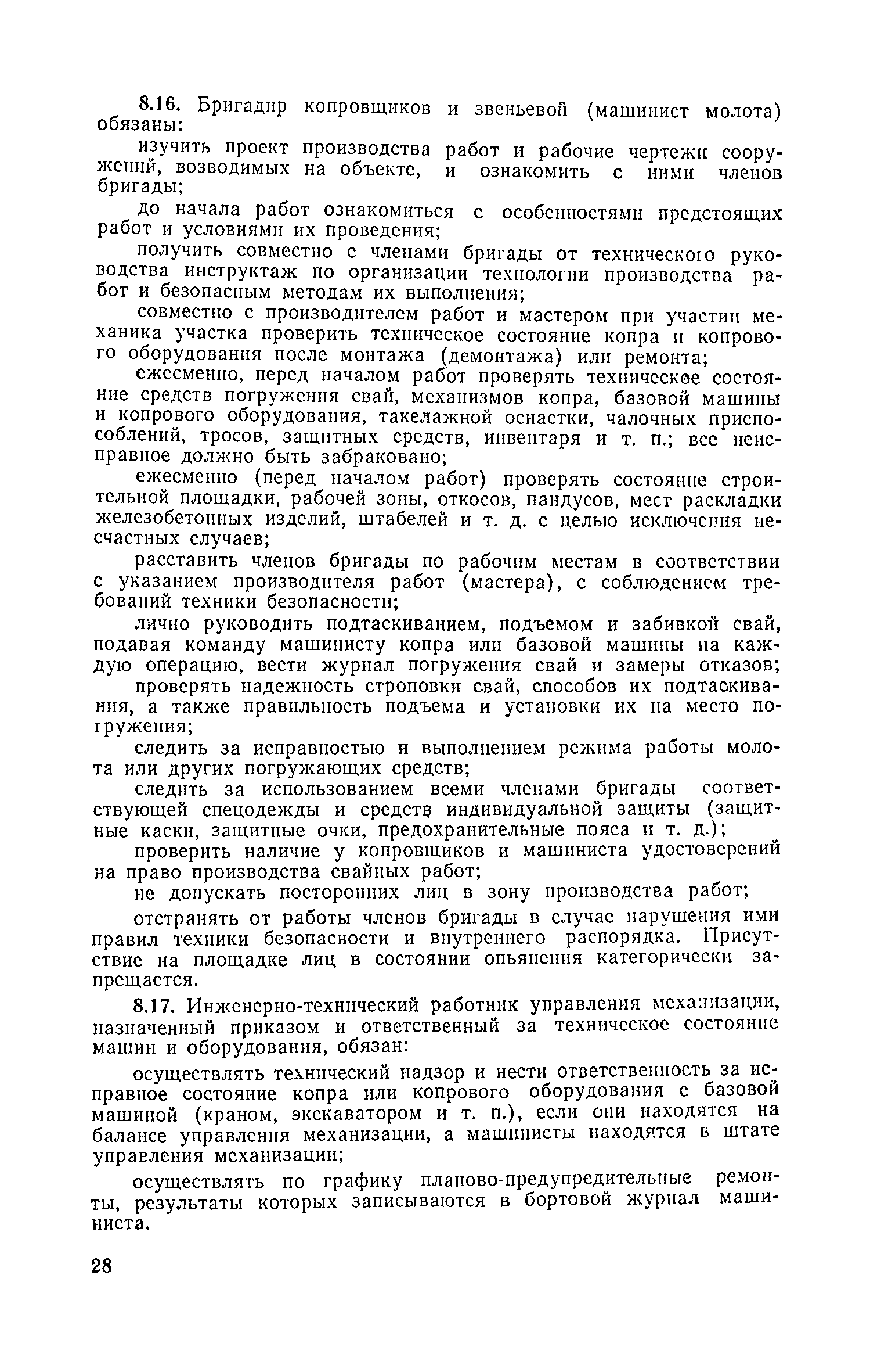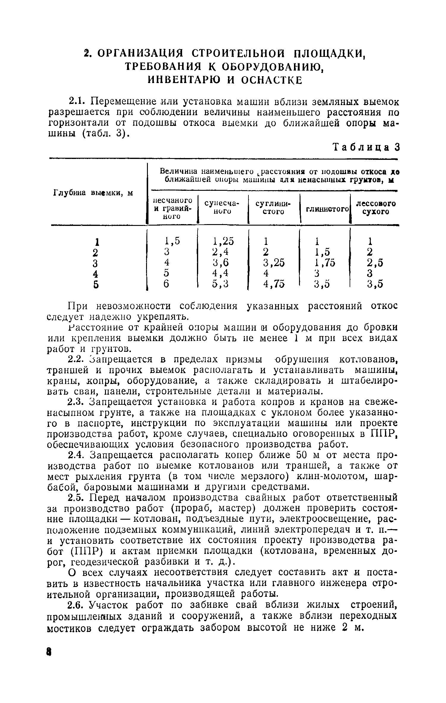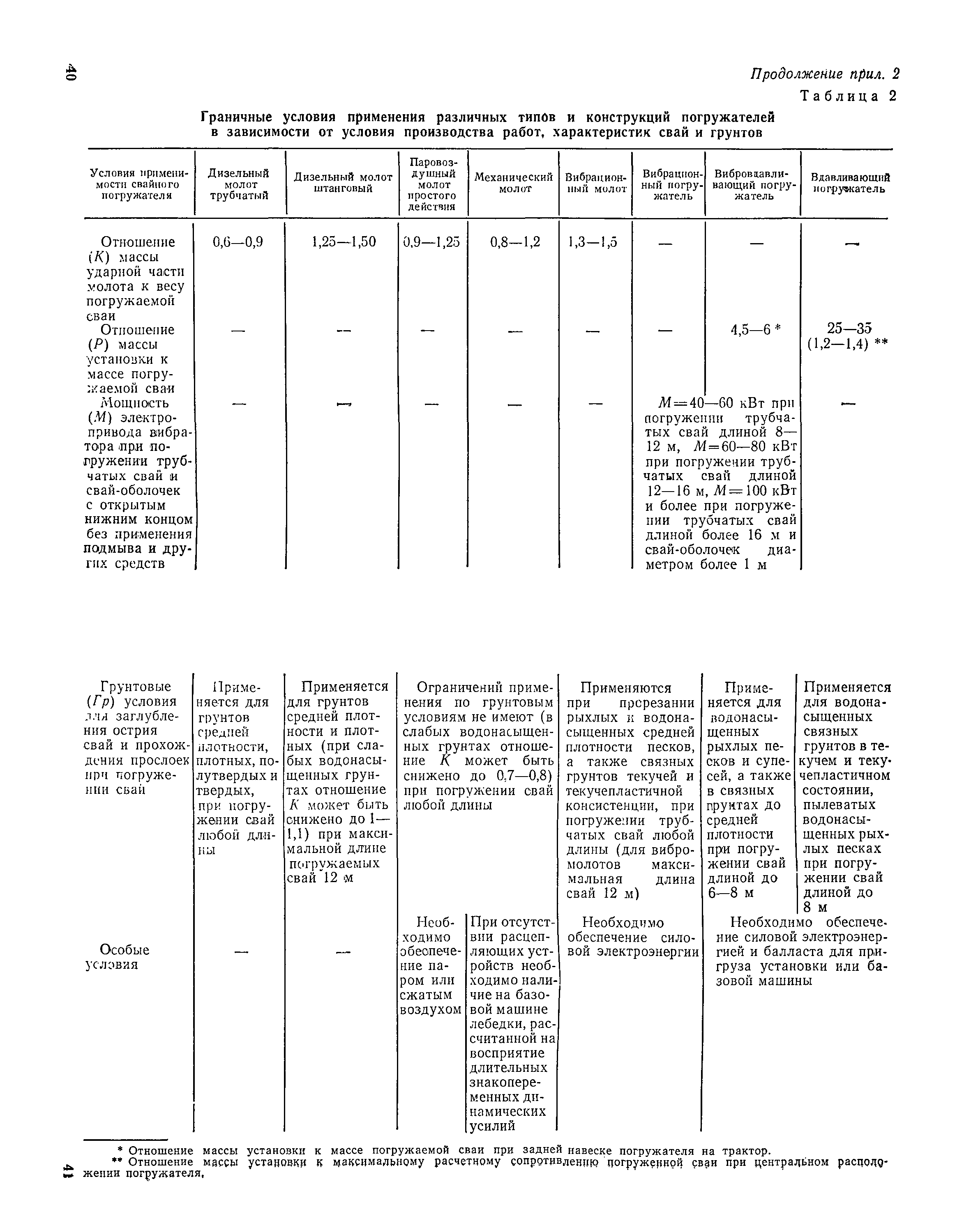 Руководство по производству свайных работ, эксплуатации копров и копрового оборудования и технике безопасности при устройстве свайных фундаментов| Статус: | справочные материалы, мп, тпр | | Название рус.: | Руководство по производству свайных работ, эксплуатации копров и копрового оборудования и технике безопасности при устройстве свайных фундаментов | | Дата добавления в базу: | 01.01.2019 | | Дата актуализации: | 01.01.2021 | | Область применения: | В документе рассмотрены способы производства свайных работ, технология, механизация и техника безопасности выполнения основных и вспомогательных процессов, связанных с погружением забивных свай копрами и копровым оборудованием. Для инженерно-технических работников проектных и строительных организаций. | | Оглавление: | 1 Общие положения 2 Организация строительной площадки, требования к оборудованию, инвентарю и оснастке 3 Перевозка, монтаж, демонтаж и ввод оборудования в эксплуатацию 4 Погрузочно-разгрузочные работы, транспортирование и хранение свай 5 Подача свай к копру, строповка, подтаскивание и подъем 6 Забивка свай 7 Срубка голов свай 8 Обязанности и ответственность должностных лиц и обслуживающего персонала. Составы рабочих звеньев и бригад. Организация труда 9 Требования по технике безопасности 10 Требования к проектно-технической документации, подготовительным и прочим сопутствующим работам Приложение 1. Номенклатура типоразмеров и области применения копров и копрового оборудования Приложение 2. Номенклатура типоразмеров и области применения копров и копрового оборудования Приложение 3. Журнал забивки свай Приложение 4. Технико-эксплуатационные показатели и характеристики копров и копрового оборудования Приложение 5. Конструктивные особенности сваепогружающих машин и их систем по наведению погружаемых свай | | Разработан: | ЦНИИОМТП Госстроя СССР