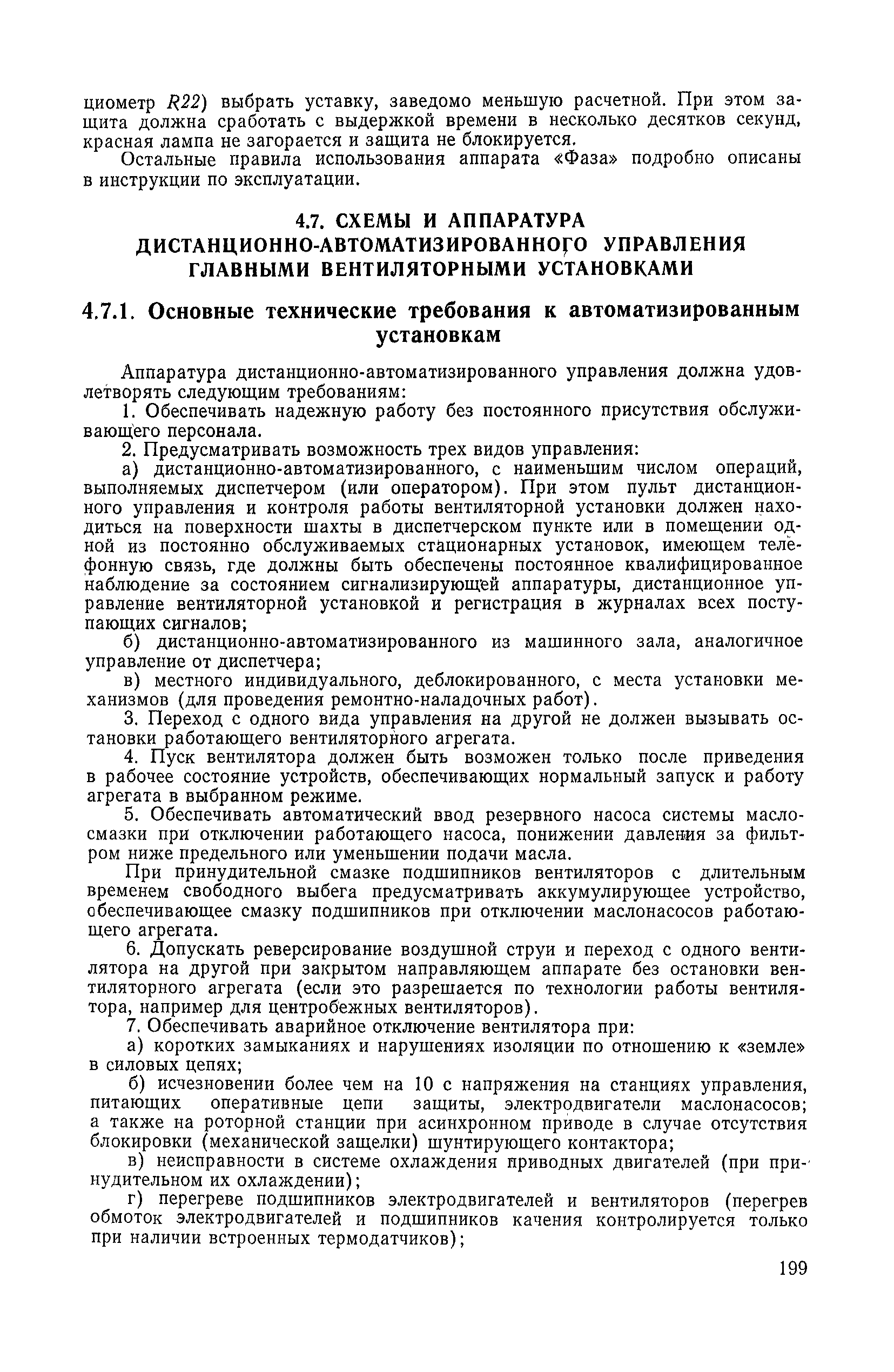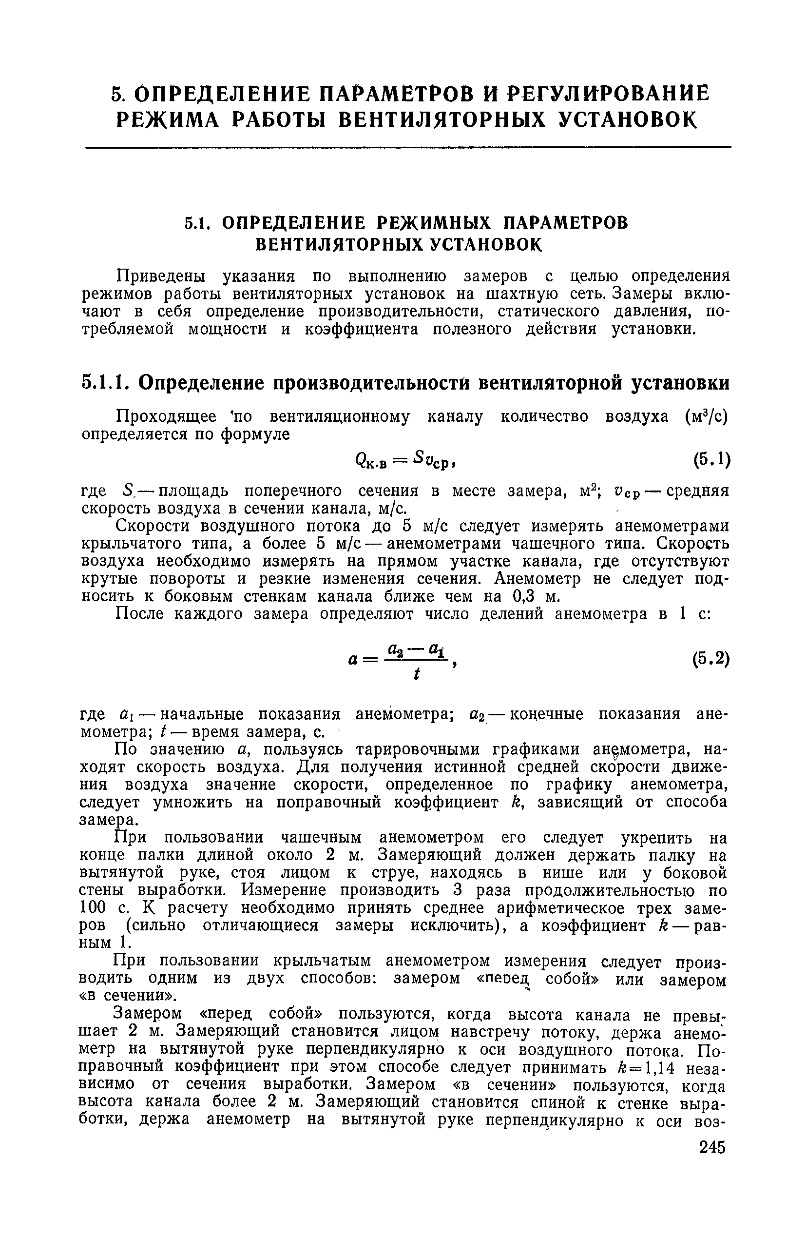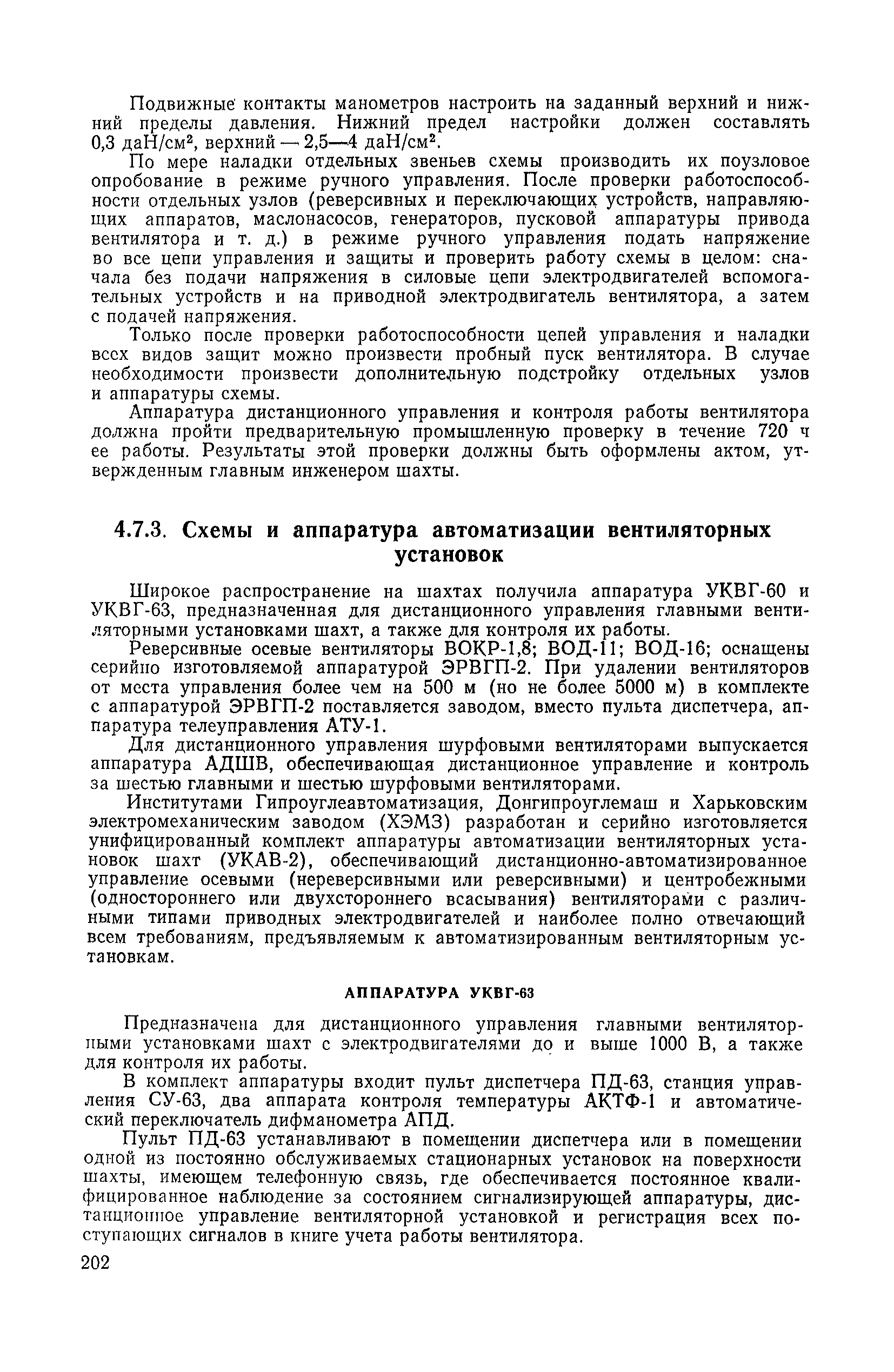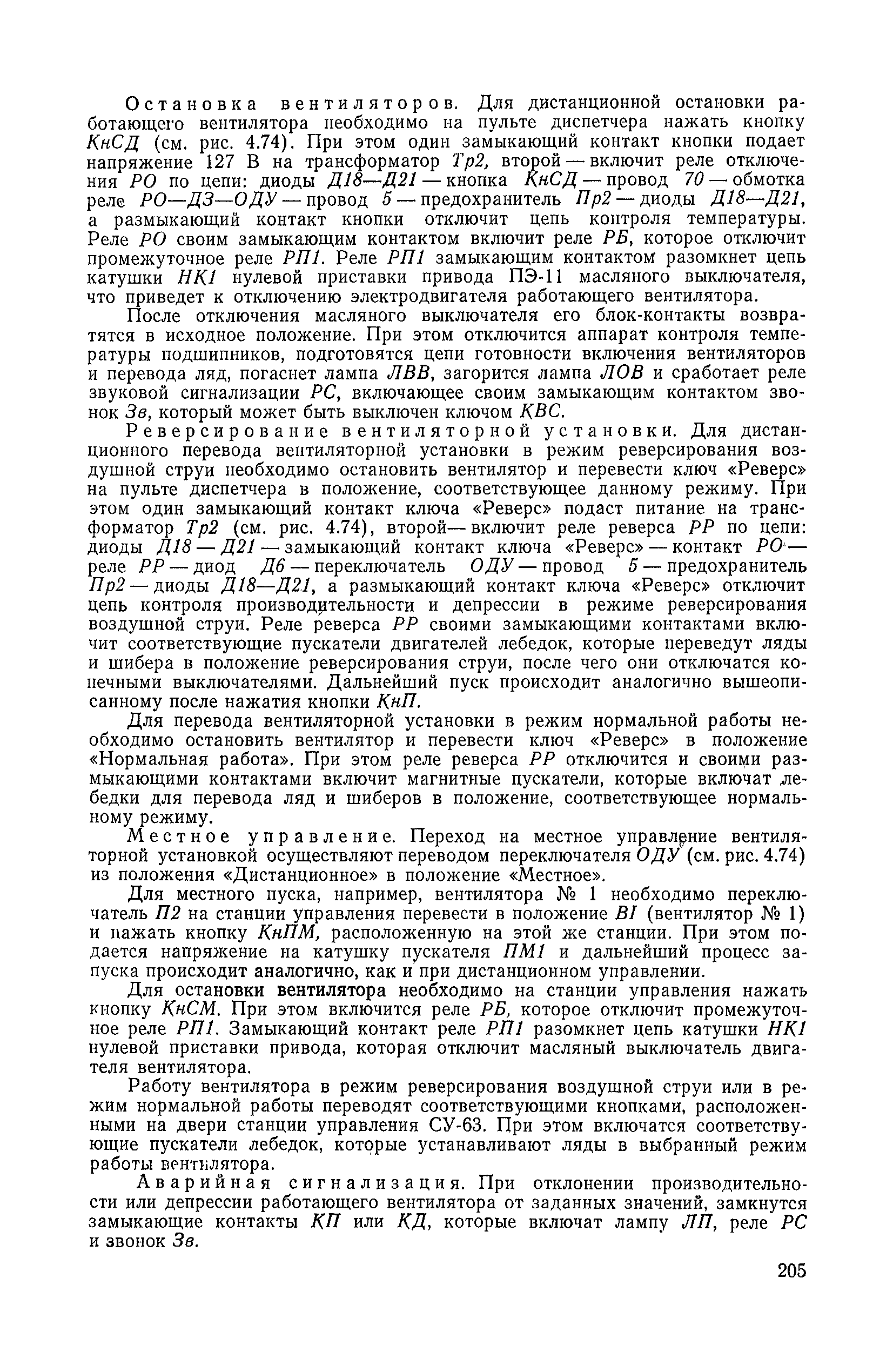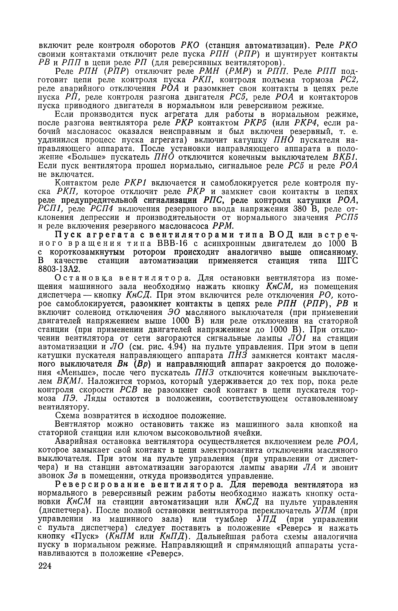 | Оглавление: | 1. Общие положения 1.1. Цель ревизии и наладки главных вентиляторных установок 1.2. Объем работ по ревизии и наладке главных вентиляторных установок 1.3. Организация и проведение работ по ревизии и наладке главных вентиляторных установок 1.3.1. Подготовительные работы 1.3.2, Порядок проведения наладочных работ 1.3.3. Определение режимных параметров главной вентиляторной установки 1.3.4. Оформление отчетно-технической документации 2. Конструкции и параметры вентиляторных установок 2.1. Элементы главной вентиляторной установки шахты 2.2. Осевые вентиляторы 2.3. Центробежные вентиляторы 3. Ревизия и наладка механической части главных вентиляторных установок 3.1. Ревизия и наладка отдельных узлов механической части вентиляторов и пробный пуск 3.1.1. Проверка состояния фундамента, рамы, кожуха, диффузора, коллектора, обтекателя, подшипниковых узлов 3.1.2. Рабочие колеса осевых вентиляторов 3.1.3. Рабочие колеса центробежных вентиляторов 3.1.4. Направляющие и спрямляющие аппараты 3.1.5. Подшипники качения. валы 3.1.6. Подшипники скольжения. Валы 3.1.7. Системы циркуляционной смазки подшипников 3.1.8. Соединительные муфты 3.1.9. Центровка опорных валов 3.1.10. Центровка подвесных валов 3.1.11. Тормозные устройства вентиляторов 3.1.12. Пробный пуск вентиляторов 3.2. Балансировка роторов шахтных вентиляторов 3.2.1. Причины и допустимые величины вибраций 3.2.2. Виброизмерительная аппаратура 3.2.3.. Статическая балансировка 3.2.4. динамическая балансировка 3.3. Ревизия и наладка реверсивных и переключающих устройств 3.3.1. Способы реверсирования воздушной струи и перестановки переключающих устройств 3.3.2. Типовые схемы реверсирования и переключения воздушной струи 3.3.3. Ревизия, наладка и опробование реверсивных и переключающих устройств 4. Ревизия, наладка и испытание электрической части главных вентиляторных установок 4.1. Распределительные устройства напряжением выше 1000 В 4.1.1. Разъединители 4.1.2. Масляные выключатели 4.1.3. Приводы к масляным выключателям 4.1.4. Трансформаторы тока (ТТ) 4.1.5. Трансформаторы напряжения (ТН) 4.2. Распределительные устройства напряжением до 1000 В 4.3. Кабельные линии 4.4. Электрические машины 4.4.1. Внешний осмотр машины и проверка ее состояния 4.4.2. Проверка механической части электрических машин 4.4.3. Измерение сопротивления изоляции обмоток 4.4.4. Измерение сопротивления обмоток постоянному току 4.4.5. Статические преобразователи 4.4.6. Ревизия и испытание электрических машин после монтажа 4.5. Аппаратура управления, защиты и контроля 4.5.1. Высоковольтные реверсоры 4.5.2. Контакторы переменного тока КТ (КТВ) 4 5.3. Автоматические выключатели серий А3100 и АП-50 4.5.4. Реле постоянного и переменного тока 4.5.5. Тормозные электромагниты 4.5.6. Роторные сопротивления и реостаты 4.5.7. Конечные выключатели 4.5.8. Полупроводниковые выпрямительные элементы 4.5.9. Контроль температуры 4.5.10. Электроконтактные манометры 4.6. Схемы управления, защиты н контроля 4.6.1. Вторичные цени 4.6.2. Схемы управления асинхронным приводом 4.6.3. Схемы управления синхронным приводом 4.6.4. Контроль вращения 4.6.5. Контроль температуры подшипников электродвигателей и вентиляторов 4.6.6. Защита приводных электродвигателей 4.7. Схемы и аппаратура дистанционно-автоматизированного управления главными вентиляторными установками 4.7.1. Основные технические требования к автоматизированным установкам 4.7.2. Порядок проведе