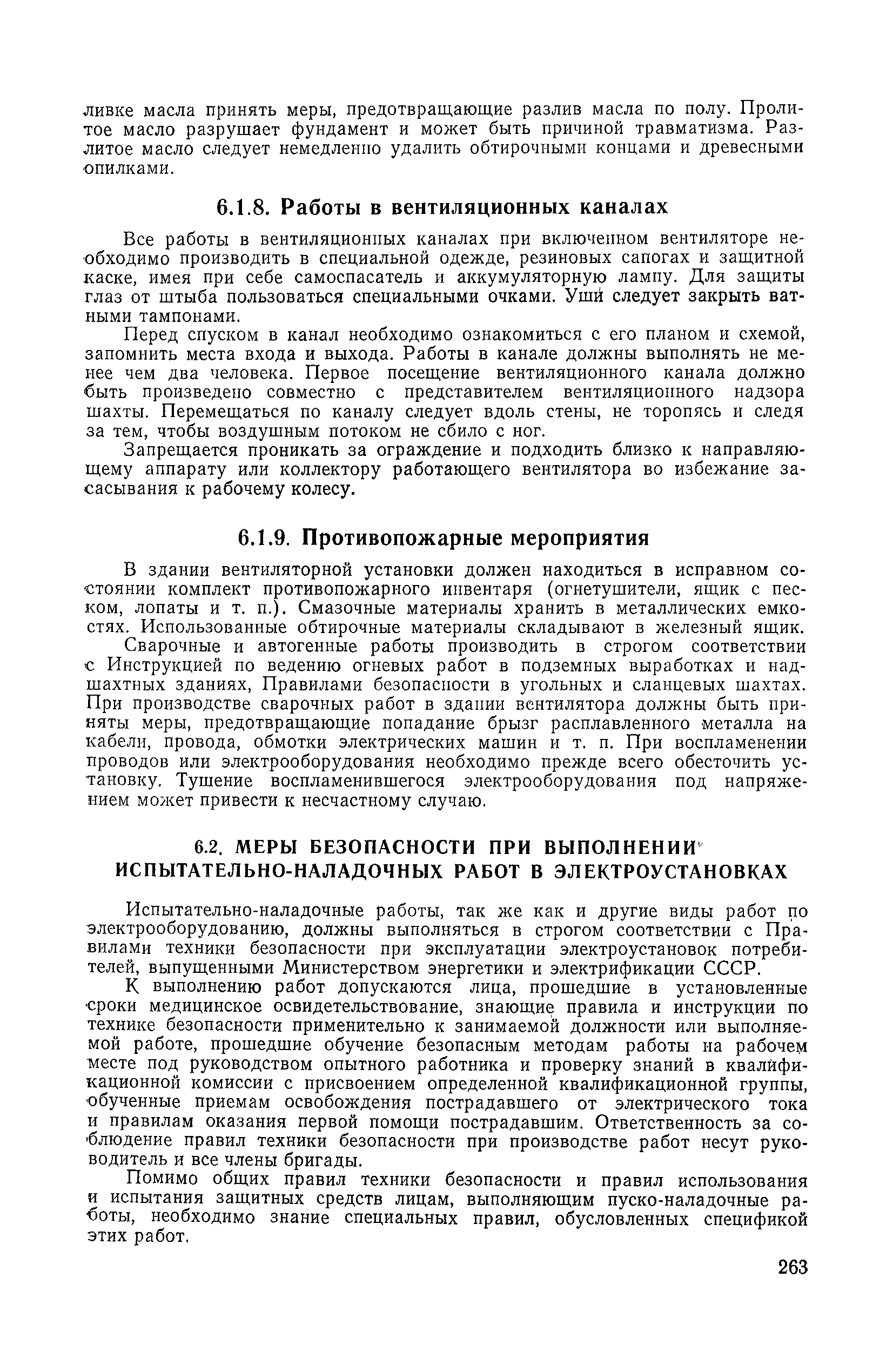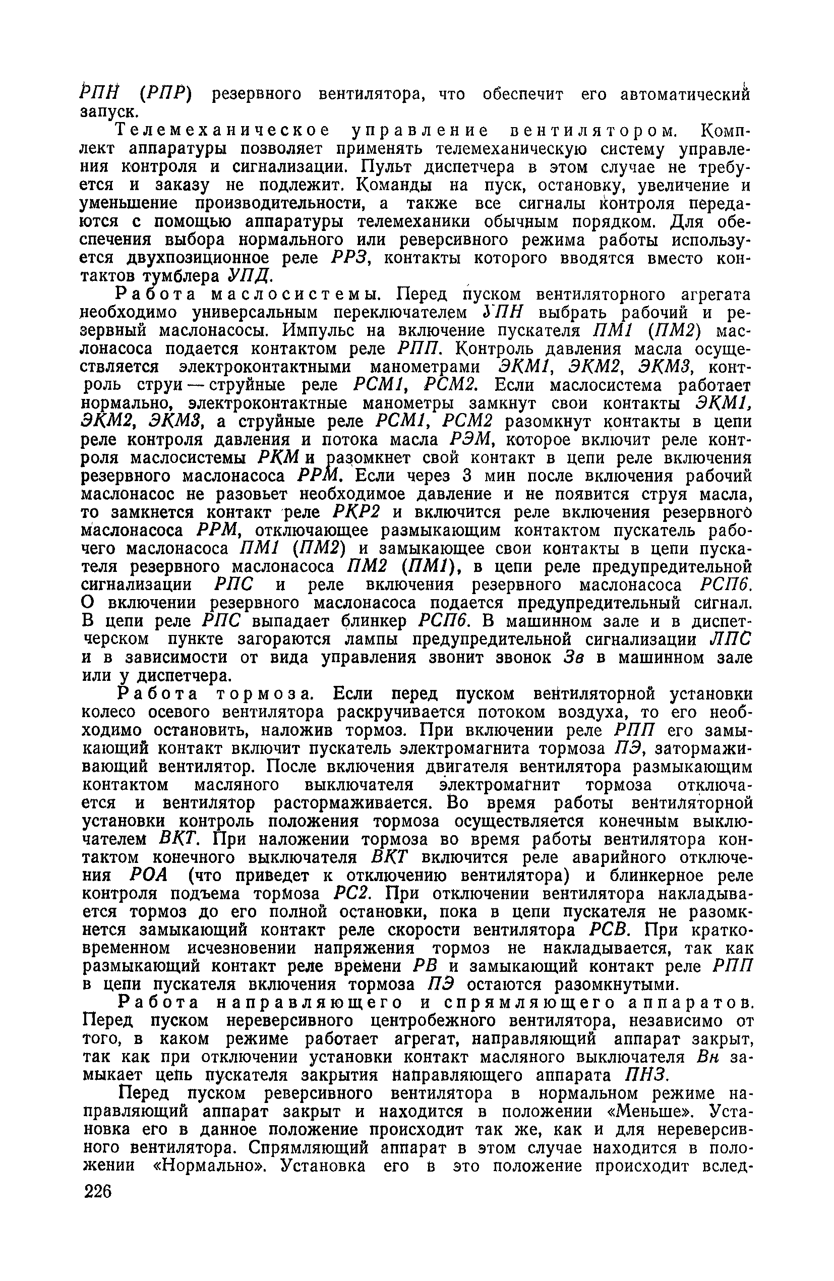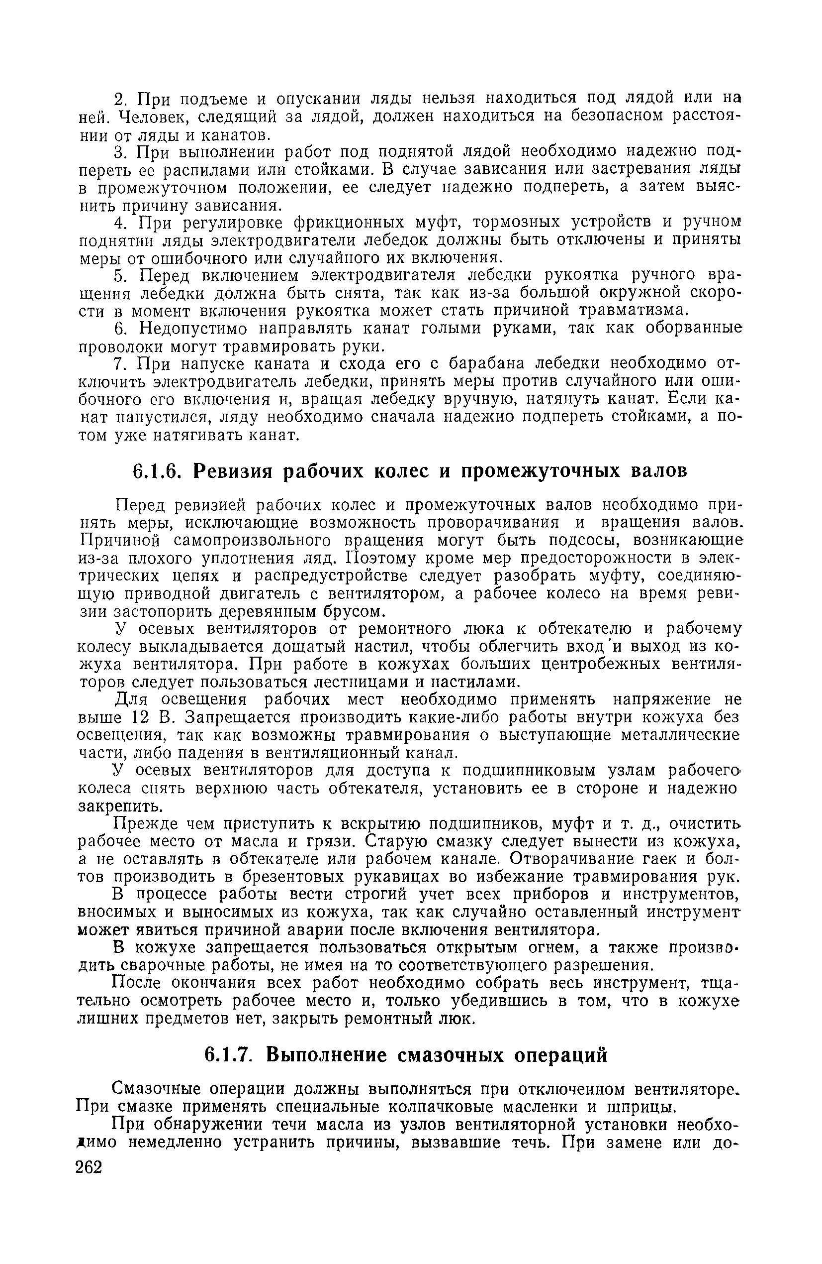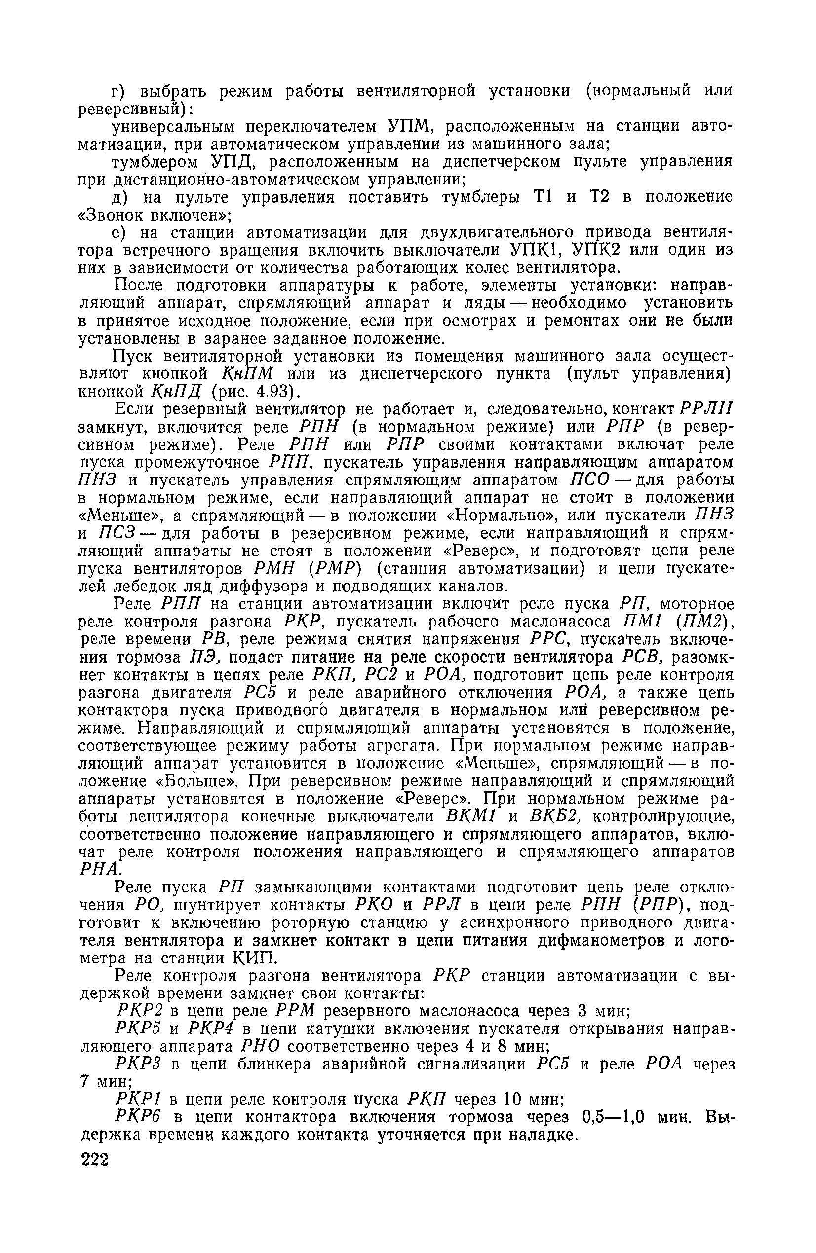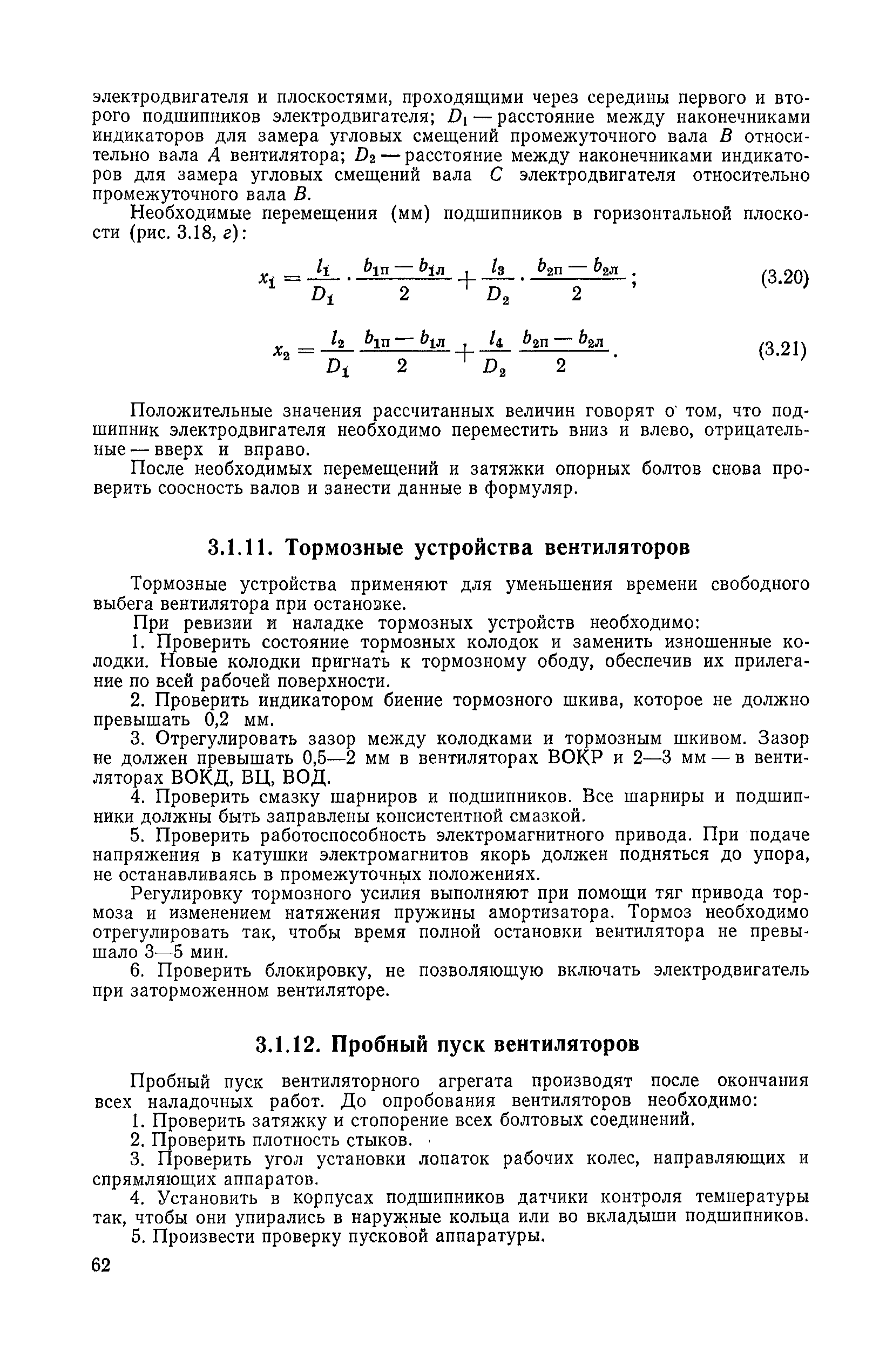 | Оглавление: | 1. Общие положения 1.1. Цель ревизии и наладки главных вентиляторных установок 1.2. Объем работ по ревизии и наладке главных вентиляторных установок 1.3. Организация и проведение работ по ревизии и наладке главных вентиляторных установок 1.3.1. Подготовительные работы 1.3.2, Порядок проведения наладочных работ 1.3.3. Определение режимных параметров главной вентиляторной установки 1.3.4. Оформление отчетно-технической документации 2. Конструкции и параметры вентиляторных установок 2.1. Элементы главной вентиляторной установки шахты 2.2. Осевые вентиляторы 2.3. Центробежные вентиляторы 3. Ревизия и наладка механической части главных вентиляторных установок 3.1. Ревизия и наладка отдельных узлов механической части вентиляторов и пробный пуск 3.1.1. Проверка состояния фундамента, рамы, кожуха, диффузора, коллектора, обтекателя, подшипниковых узлов 3.1.2. Рабочие колеса осевых вентиляторов 3.1.3. Рабочие колеса центробежных вентиляторов 3.1.4. Направляющие и спрямляющие аппараты 3.1.5. Подшипники качения. валы 3.1.6. Подшипники скольжения. Валы 3.1.7. Системы циркуляционной смазки подшипников 3.1.8. Соединительные муфты 3.1.9. Центровка опорных валов 3.1.10. Центровка подвесных валов 3.1.11. Тормозные устройства вентиляторов 3.1.12. Пробный пуск вентиляторов 3.2. Балансировка роторов шахтных вентиляторов 3.2.1. Причины и допустимые величины вибраций 3.2.2. Виброизмерительная аппаратура 3.2.3.. Статическая балансировка 3.2.4. динамическая балансировка 3.3. Ревизия и наладка реверсивных и переключающих устройств 3.3.1. Способы реверсирования воздушной струи и перестановки переключающих устройств 3.3.2. Типовые схемы реверсирования и переключения воздушной струи 3.3.3. Ревизия, наладка и опробование реверсивных и переключающих устройств 4. Ревизия, наладка и испытание электрической части главных вентиляторных установок 4.1. Распределительные устройства напряжением выше 1000 В 4.1.1. Разъединители 4.1.2. Масляные выключатели 4.1.3. Приводы к масляным выключателям 4.1.4. Трансформаторы тока (ТТ) 4.1.5. Трансформаторы напряжения (ТН) 4.2. Распределительные устройства напряжением до 1000 В 4.3. Кабельные линии 4.4. Электрические машины 4.4.1. Внешний осмотр машины и проверка ее состояния 4.4.2. Проверка механической части электрических машин 4.4.3. Измерение сопротивления изоляции обмоток 4.4.4. Измерение сопротивления обмоток постоянному току 4.4.5. Статические преобразователи 4.4.6. Ревизия и испытание электрических машин после монтажа 4.5. Аппаратура управления, защиты и контроля 4.5.1. Высоковольтные реверсоры 4.5.2. Контакторы переменного тока КТ (КТВ) 4 5.3. Автоматические выключатели серий А3100 и АП-50 4.5.4. Реле постоянного и переменного тока 4.5.5. Тормозные электромагниты 4.5.6. Роторные сопротивления и реостаты 4.5.7. Конечные выключатели 4.5.8. Полупроводниковые выпрямительные элементы 4.5.9. Контроль температуры 4.5.10. Электроконтактные манометры 4.6. Схемы управления, защиты н контроля 4.6.1. Вторичные цени 4.6.2. Схемы управления асинхронным приводом 4.6.3. Схемы управления синхронным приводом 4.6.4. Контроль вращения 4.6.5. Контроль температуры подшипников электродвигателей и вентиляторов 4.6.6. Защита приводных электродвигателей 4.7. Схемы и аппаратура дистанционно-автоматизированного управления главными вентиляторными установками 4.7.1. Основные технические требования к автоматизированным установкам 4.7.2. Порядок проведе