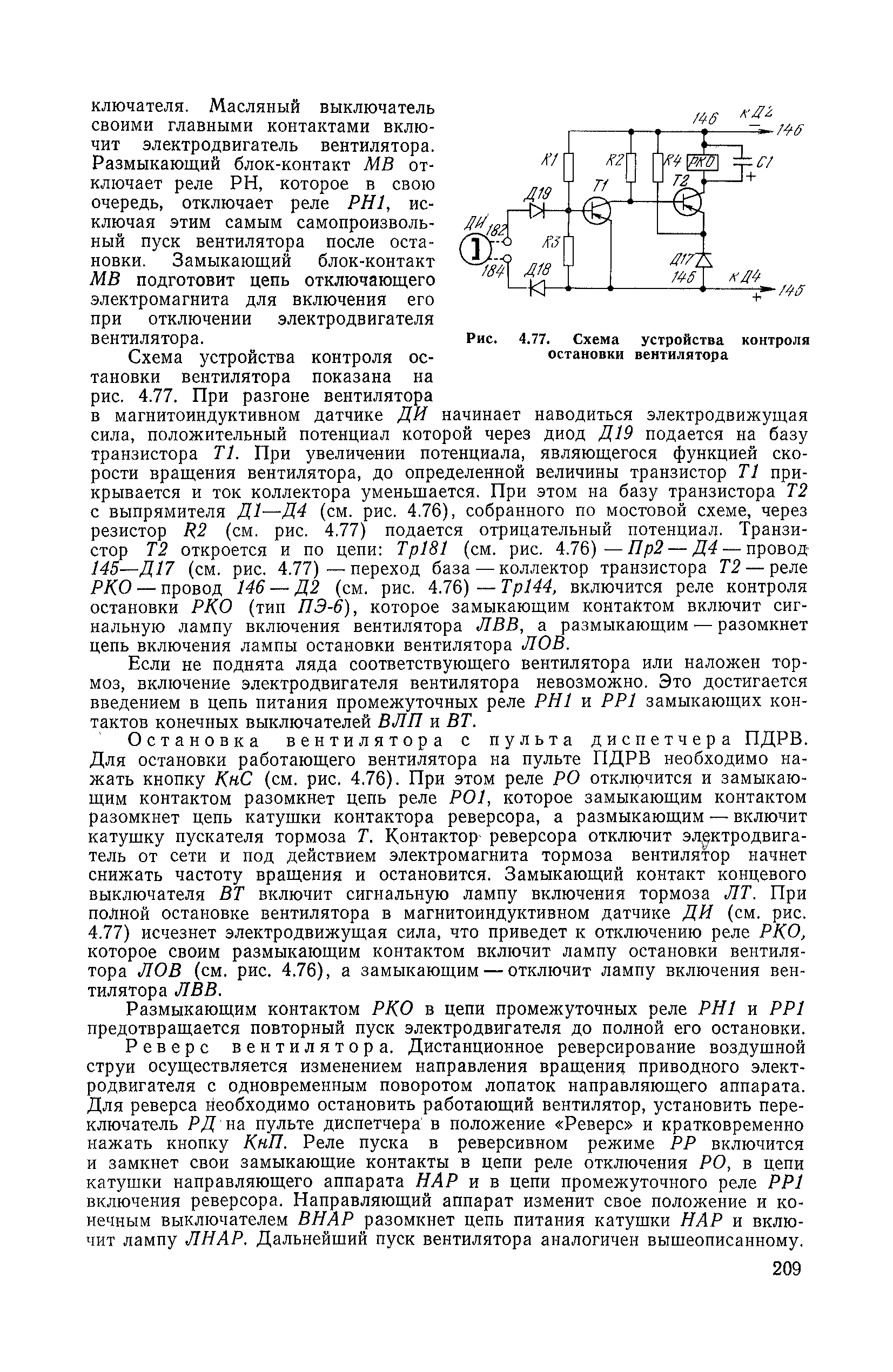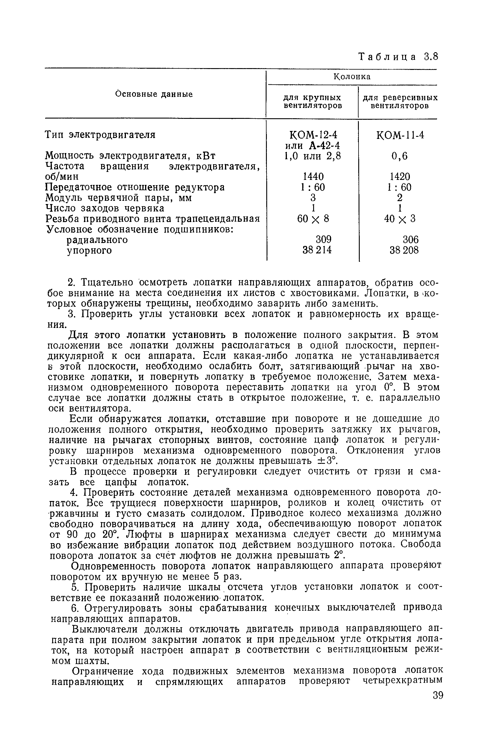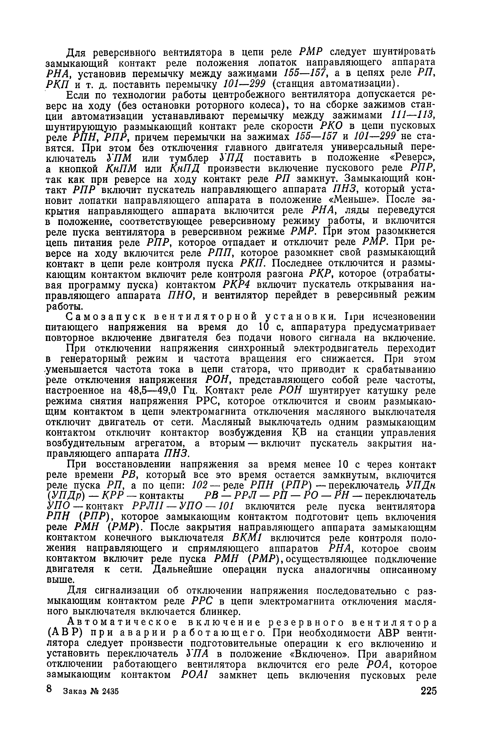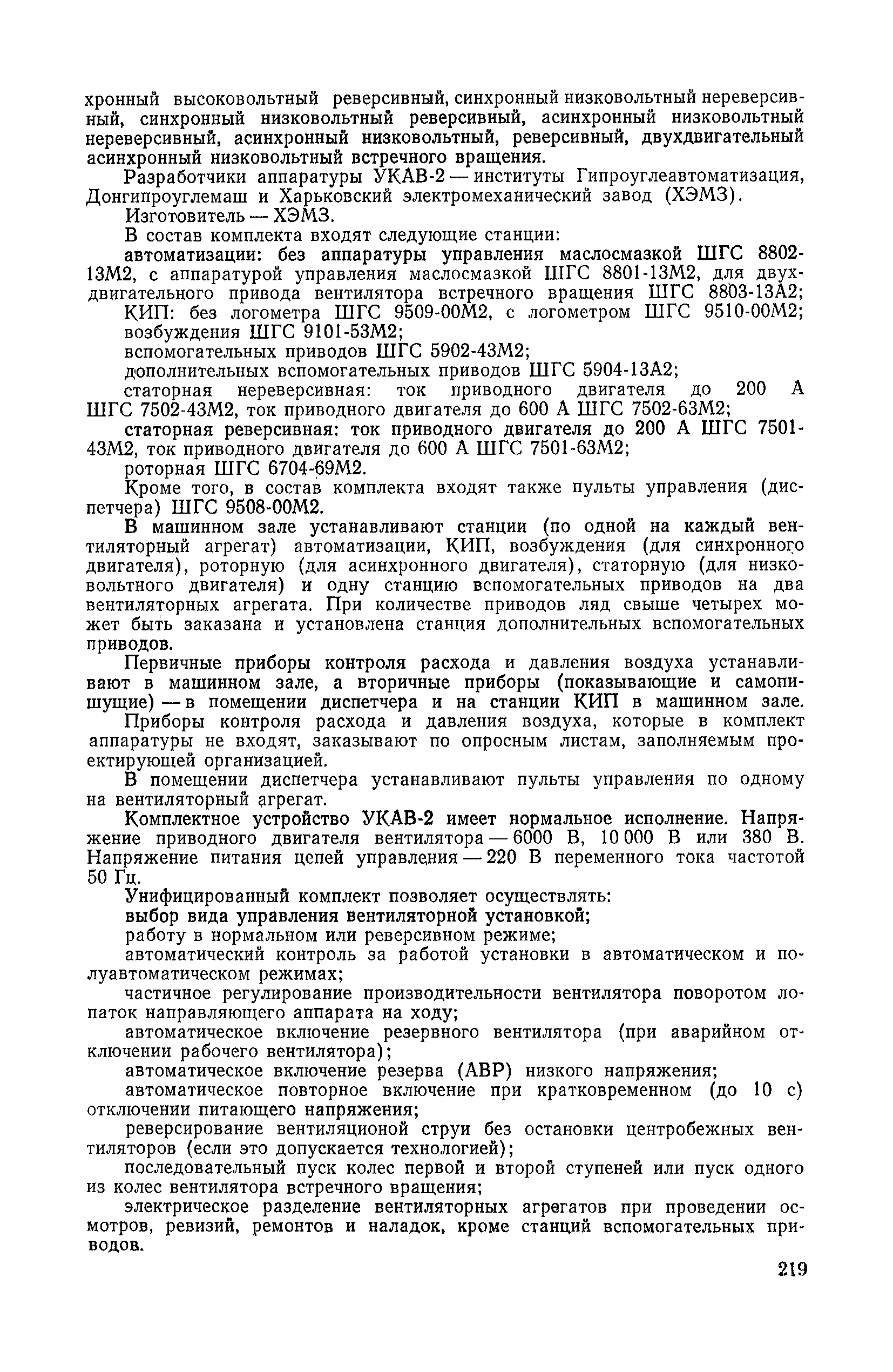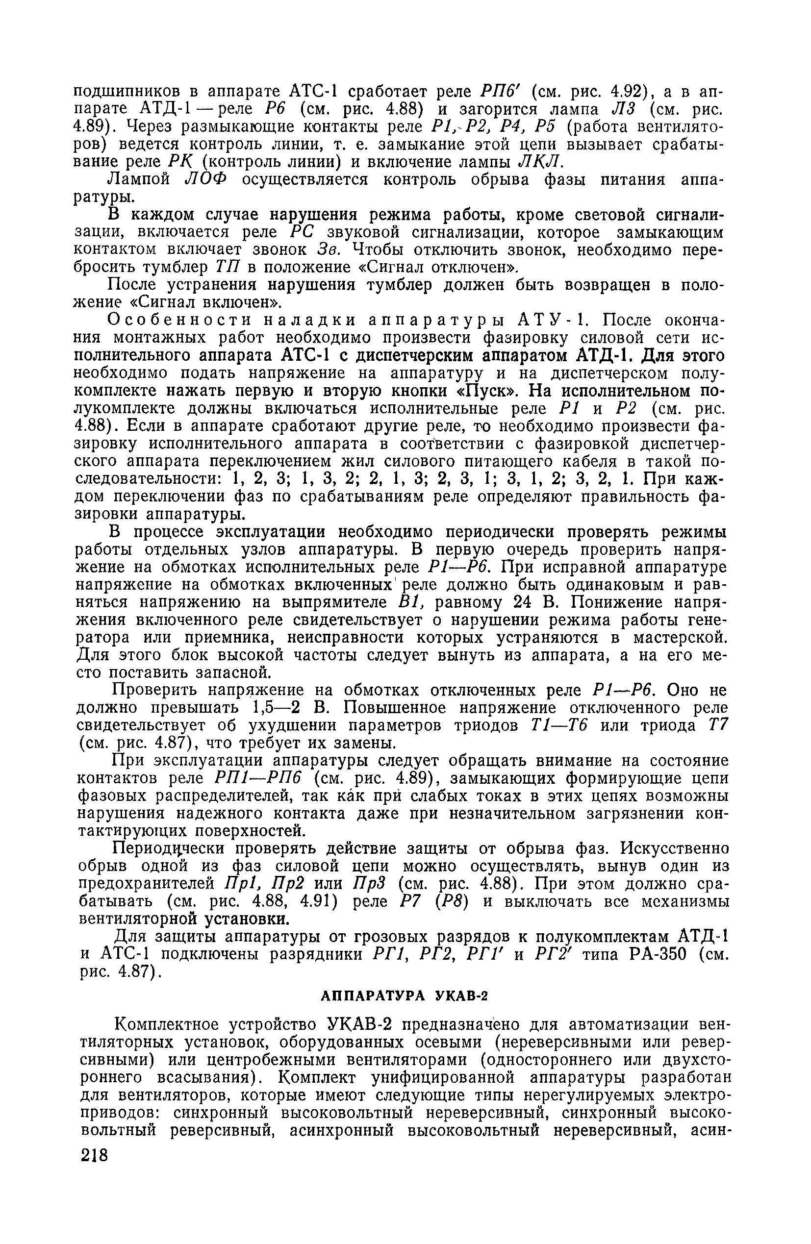 | Оглавление: | 1. Общие положения 1.1. Цель ревизии и наладки главных вентиляторных установок 1.2. Объем работ по ревизии и наладке главных вентиляторных установок 1.3. Организация и проведение работ по ревизии и наладке главных вентиляторных установок 1.3.1. Подготовительные работы 1.3.2, Порядок проведения наладочных работ 1.3.3. Определение режимных параметров главной вентиляторной установки 1.3.4. Оформление отчетно-технической документации 2. Конструкции и параметры вентиляторных установок 2.1. Элементы главной вентиляторной установки шахты 2.2. Осевые вентиляторы 2.3. Центробежные вентиляторы 3. Ревизия и наладка механической части главных вентиляторных установок 3.1. Ревизия и наладка отдельных узлов механической части вентиляторов и пробный пуск 3.1.1. Проверка состояния фундамента, рамы, кожуха, диффузора, коллектора, обтекателя, подшипниковых узлов 3.1.2. Рабочие колеса осевых вентиляторов 3.1.3. Рабочие колеса центробежных вентиляторов 3.1.4. Направляющие и спрямляющие аппараты 3.1.5. Подшипники качения. валы 3.1.6. Подшипники скольжения. Валы 3.1.7. Системы циркуляционной смазки подшипников 3.1.8. Соединительные муфты 3.1.9. Центровка опорных валов 3.1.10. Центровка подвесных валов 3.1.11. Тормозные устройства вентиляторов 3.1.12. Пробный пуск вентиляторов 3.2. Балансировка роторов шахтных вентиляторов 3.2.1. Причины и допустимые величины вибраций 3.2.2. Виброизмерительная аппаратура 3.2.3.. Статическая балансировка 3.2.4. динамическая балансировка 3.3. Ревизия и наладка реверсивных и переключающих устройств 3.3.1. Способы реверсирования воздушной струи и перестановки переключающих устройств 3.3.2. Типовые схемы реверсирования и переключения воздушной струи 3.3.3. Ревизия, наладка и опробование реверсивных и переключающих устройств 4. Ревизия, наладка и испытание электрической части главных вентиляторных установок 4.1. Распределительные устройства напряжением выше 1000 В 4.1.1. Разъединители 4.1.2. Масляные выключатели 4.1.3. Приводы к масляным выключателям 4.1.4. Трансформаторы тока (ТТ) 4.1.5. Трансформаторы напряжения (ТН) 4.2. Распределительные устройства напряжением до 1000 В 4.3. Кабельные линии 4.4. Электрические машины 4.4.1. Внешний осмотр машины и проверка ее состояния 4.4.2. Проверка механической части электрических машин 4.4.3. Измерение сопротивления изоляции обмоток 4.4.4. Измерение сопротивления обмоток постоянному току 4.4.5. Статические преобразователи 4.4.6. Ревизия и испытание электрических машин после монтажа 4.5. Аппаратура управления, защиты и контроля 4.5.1. Высоковольтные реверсоры 4.5.2. Контакторы переменного тока КТ (КТВ) 4 5.3. Автоматические выключатели серий А3100 и АП-50 4.5.4. Реле постоянного и переменного тока 4.5.5. Тормозные электромагниты 4.5.6. Роторные сопротивления и реостаты 4.5.7. Конечные выключатели 4.5.8. Полупроводниковые выпрямительные элементы 4.5.9. Контроль температуры 4.5.10. Электроконтактные манометры 4.6. Схемы управления, защиты н контроля 4.6.1. Вторичные цени 4.6.2. Схемы управления асинхронным приводом 4.6.3. Схемы управления синхронным приводом 4.6.4. Контроль вращения 4.6.5. Контроль температуры подшипников электродвигателей и вентиляторов 4.6.6. Защита приводных электродвигателей 4.7. Схемы и аппаратура дистанционно-автоматизированного управления главными вентиляторными установками 4.7.1. Основные технические требования к автоматизированным установкам 4.7.2. Порядок проведе