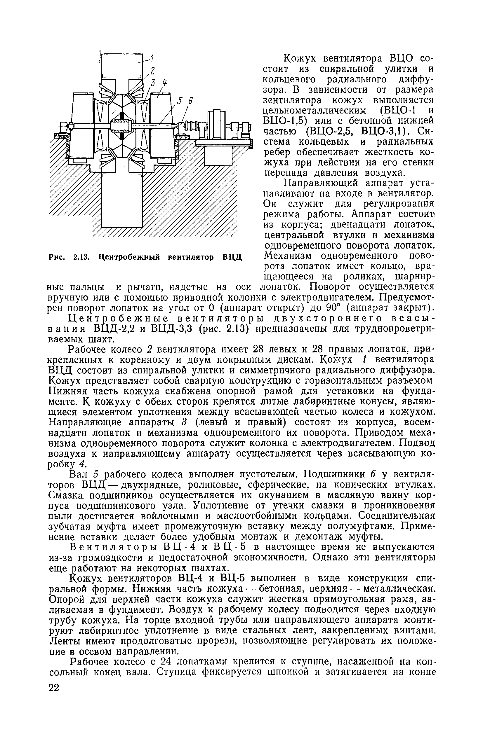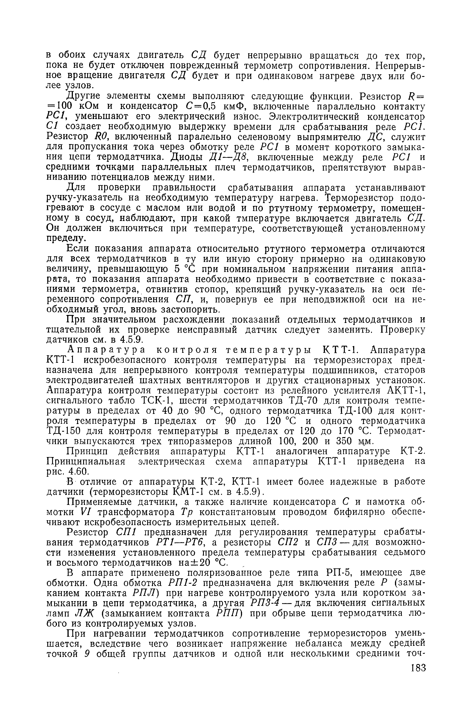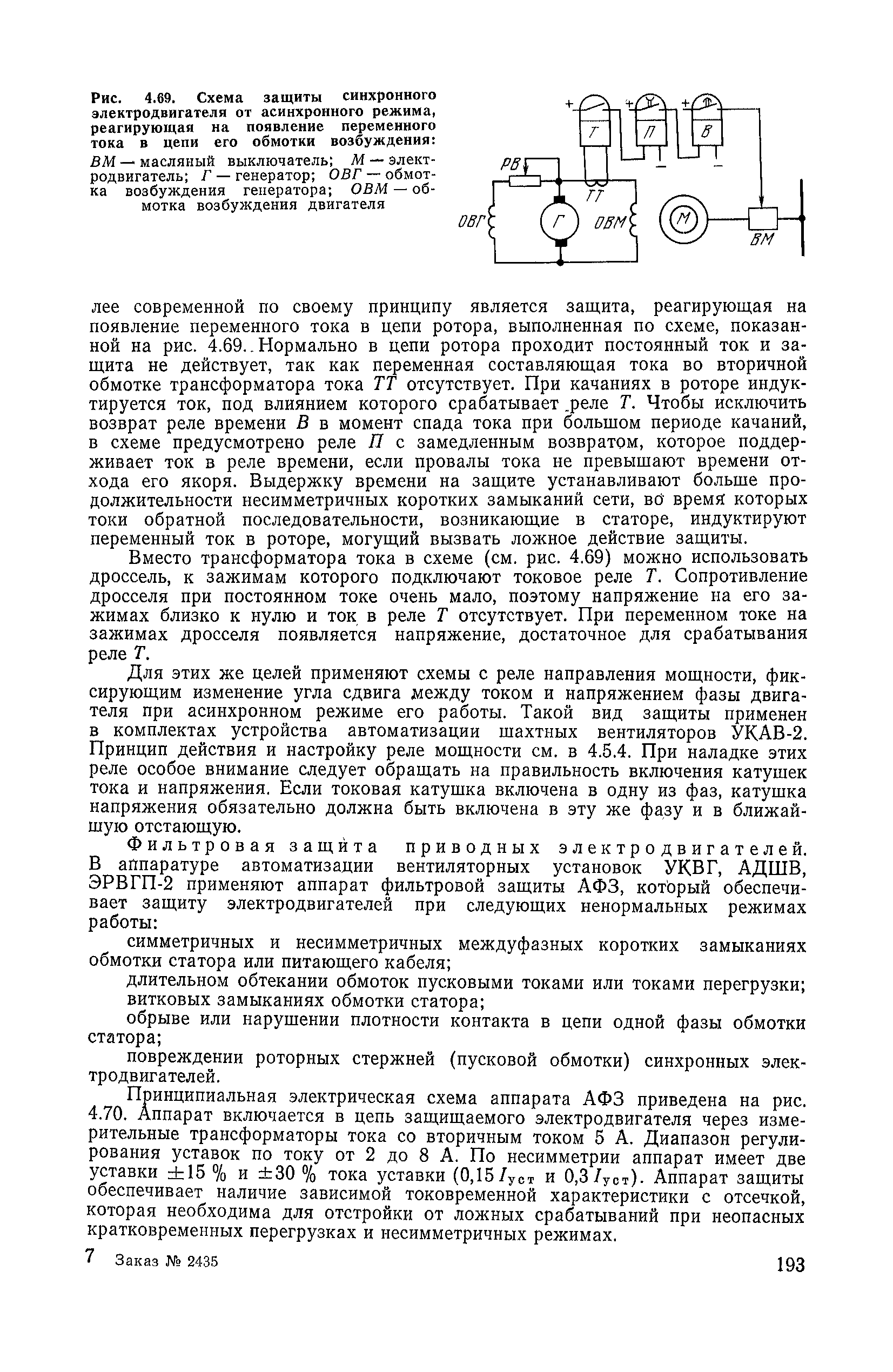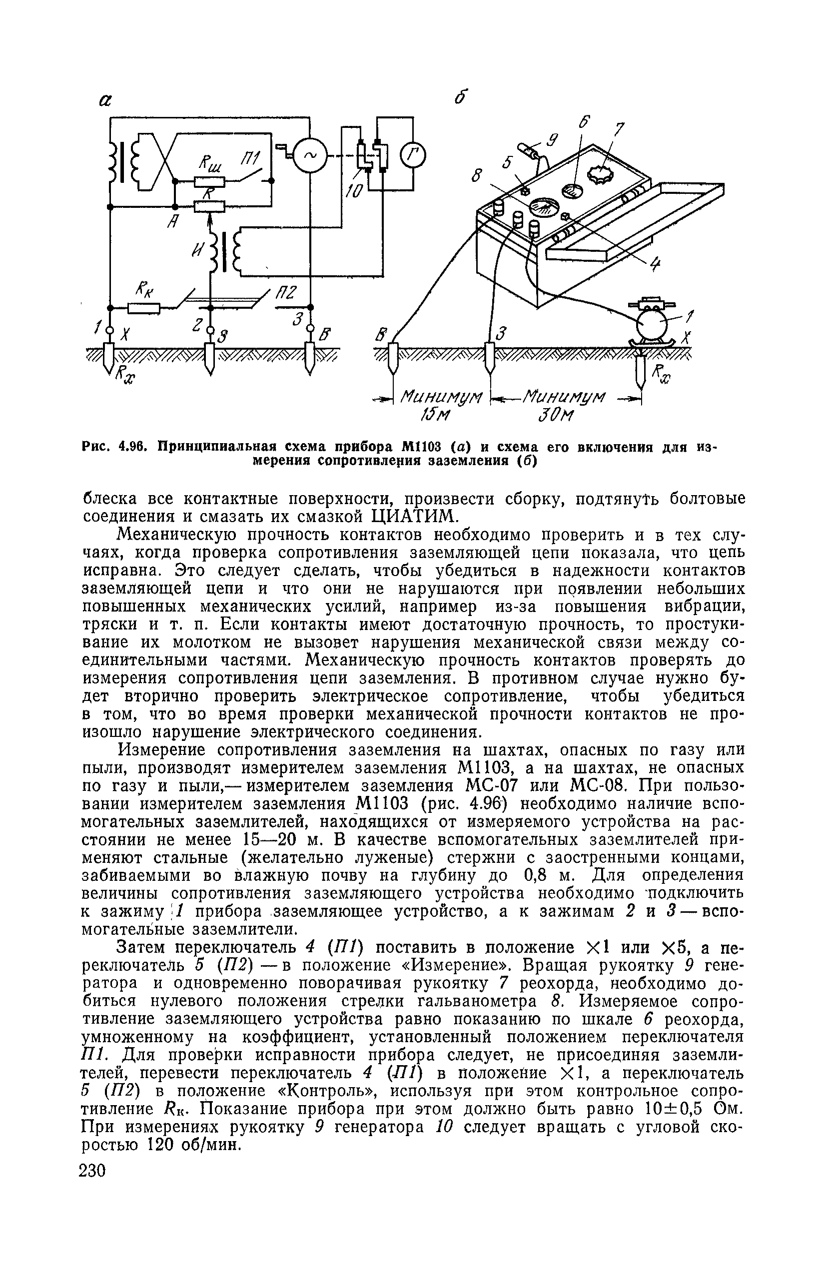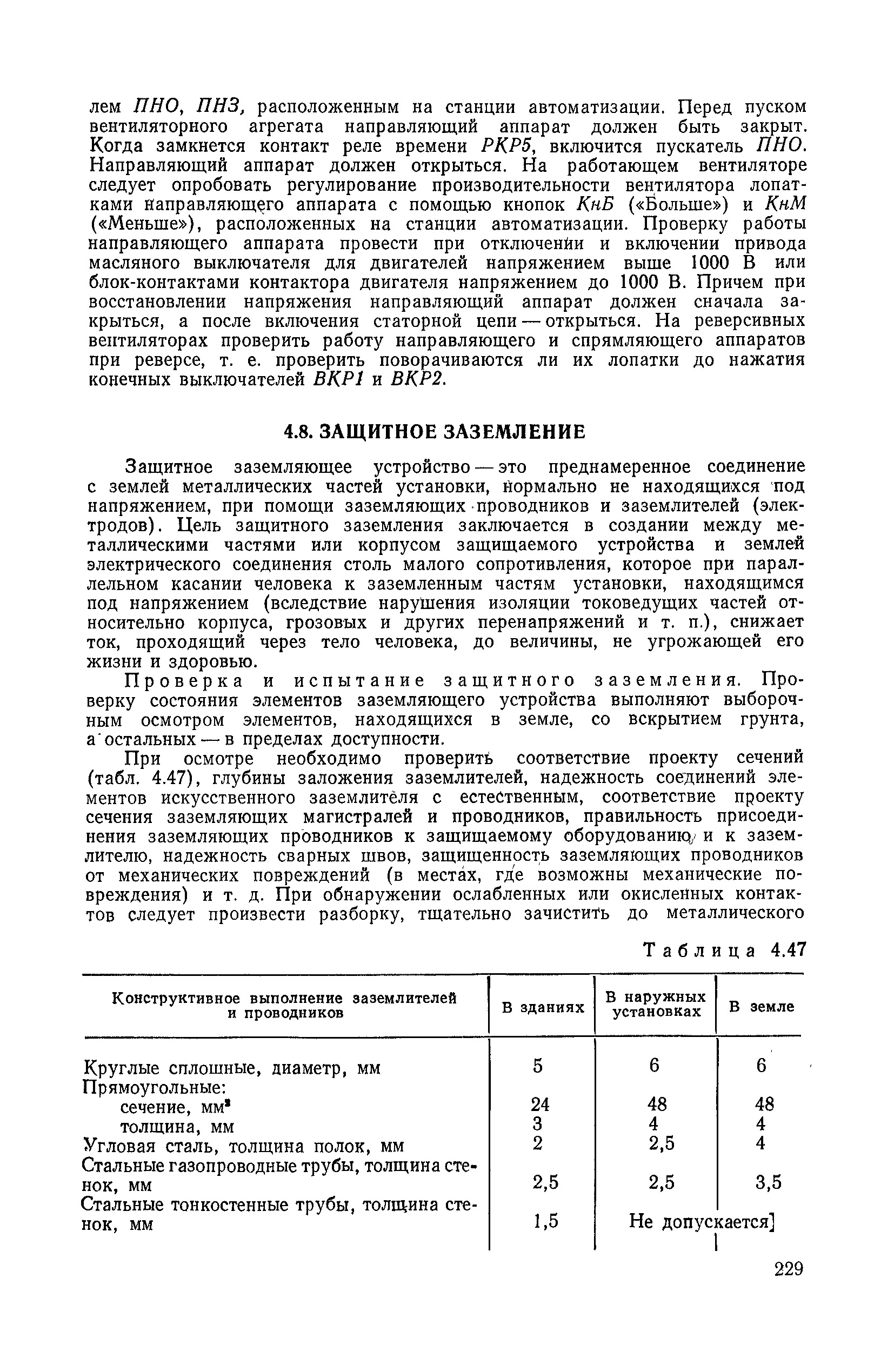 | Оглавление: | 1. Общие положения 1.1. Цель ревизии и наладки главных вентиляторных установок 1.2. Объем работ по ревизии и наладке главных вентиляторных установок 1.3. Организация и проведение работ по ревизии и наладке главных вентиляторных установок 1.3.1. Подготовительные работы 1.3.2, Порядок проведения наладочных работ 1.3.3. Определение режимных параметров главной вентиляторной установки 1.3.4. Оформление отчетно-технической документации 2. Конструкции и параметры вентиляторных установок 2.1. Элементы главной вентиляторной установки шахты 2.2. Осевые вентиляторы 2.3. Центробежные вентиляторы 3. Ревизия и наладка механической части главных вентиляторных установок 3.1. Ревизия и наладка отдельных узлов механической части вентиляторов и пробный пуск 3.1.1. Проверка состояния фундамента, рамы, кожуха, диффузора, коллектора, обтекателя, подшипниковых узлов 3.1.2. Рабочие колеса осевых вентиляторов 3.1.3. Рабочие колеса центробежных вентиляторов 3.1.4. Направляющие и спрямляющие аппараты 3.1.5. Подшипники качения. валы 3.1.6. Подшипники скольжения. Валы 3.1.7. Системы циркуляционной смазки подшипников 3.1.8. Соединительные муфты 3.1.9. Центровка опорных валов 3.1.10. Центровка подвесных валов 3.1.11. Тормозные устройства вентиляторов 3.1.12. Пробный пуск вентиляторов 3.2. Балансировка роторов шахтных вентиляторов 3.2.1. Причины и допустимые величины вибраций 3.2.2. Виброизмерительная аппаратура 3.2.3.. Статическая балансировка 3.2.4. динамическая балансировка 3.3. Ревизия и наладка реверсивных и переключающих устройств 3.3.1. Способы реверсирования воздушной струи и перестановки переключающих устройств 3.3.2. Типовые схемы реверсирования и переключения воздушной струи 3.3.3. Ревизия, наладка и опробование реверсивных и переключающих устройств 4. Ревизия, наладка и испытание электрической части главных вентиляторных установок 4.1. Распределительные устройства напряжением выше 1000 В 4.1.1. Разъединители 4.1.2. Масляные выключатели 4.1.3. Приводы к масляным выключателям 4.1.4. Трансформаторы тока (ТТ) 4.1.5. Трансформаторы напряжения (ТН) 4.2. Распределительные устройства напряжением до 1000 В 4.3. Кабельные линии 4.4. Электрические машины 4.4.1. Внешний осмотр машины и проверка ее состояния 4.4.2. Проверка механической части электрических машин 4.4.3. Измерение сопротивления изоляции обмоток 4.4.4. Измерение сопротивления обмоток постоянному току 4.4.5. Статические преобразователи 4.4.6. Ревизия и испытание электрических машин после монтажа 4.5. Аппаратура управления, защиты и контроля 4.5.1. Высоковольтные реверсоры 4.5.2. Контакторы переменного тока КТ (КТВ) 4 5.3. Автоматические выключатели серий А3100 и АП-50 4.5.4. Реле постоянного и переменного тока 4.5.5. Тормозные электромагниты 4.5.6. Роторные сопротивления и реостаты 4.5.7. Конечные выключатели 4.5.8. Полупроводниковые выпрямительные элементы 4.5.9. Контроль температуры 4.5.10. Электроконтактные манометры 4.6. Схемы управления, защиты н контроля 4.6.1. Вторичные цени 4.6.2. Схемы управления асинхронным приводом 4.6.3. Схемы управления синхронным приводом 4.6.4. Контроль вращения 4.6.5. Контроль температуры подшипников электродвигателей и вентиляторов 4.6.6. Защита приводных электродвигателей 4.7. Схемы и аппаратура дистанционно-автоматизированного управления главными вентиляторными установками 4.7.1. Основные технические требования к автоматизированным установкам 4.7.2. Порядок проведе