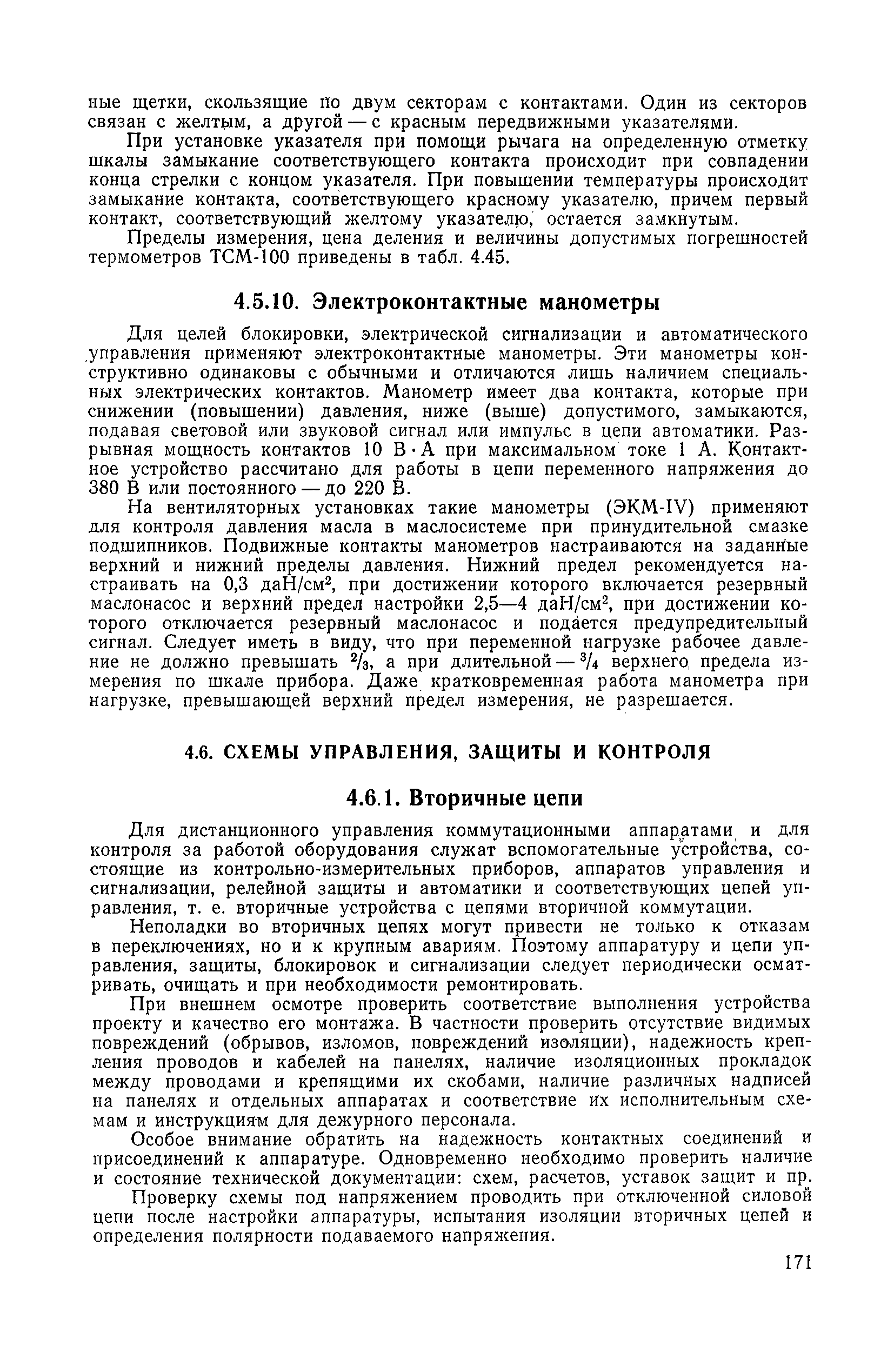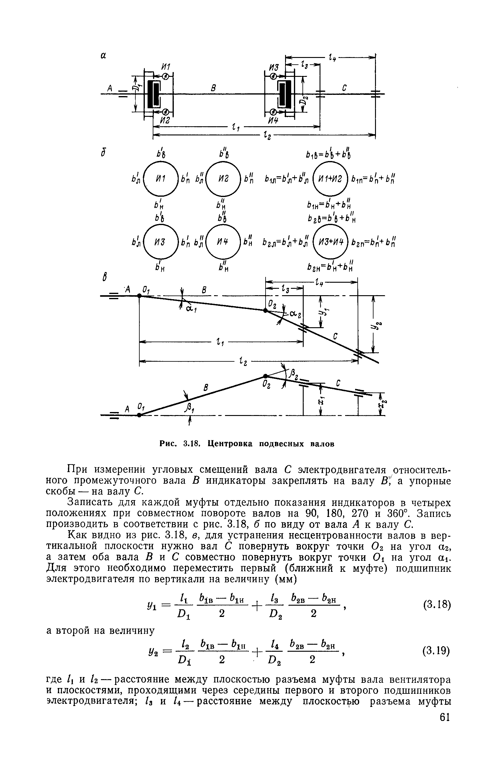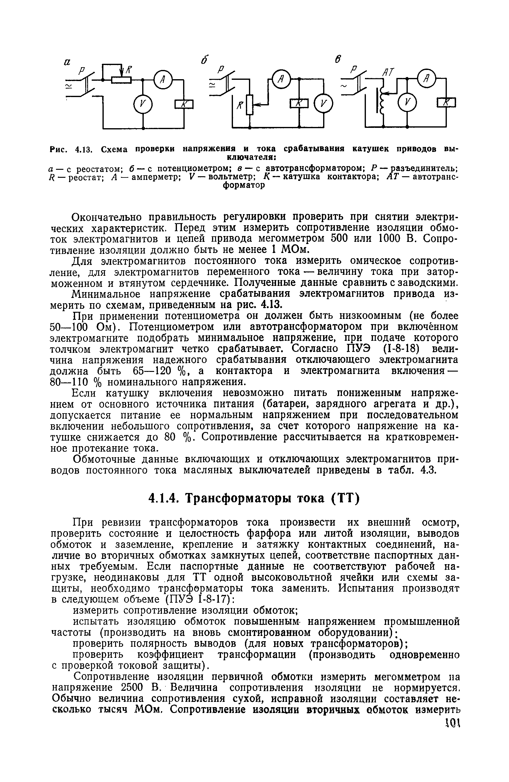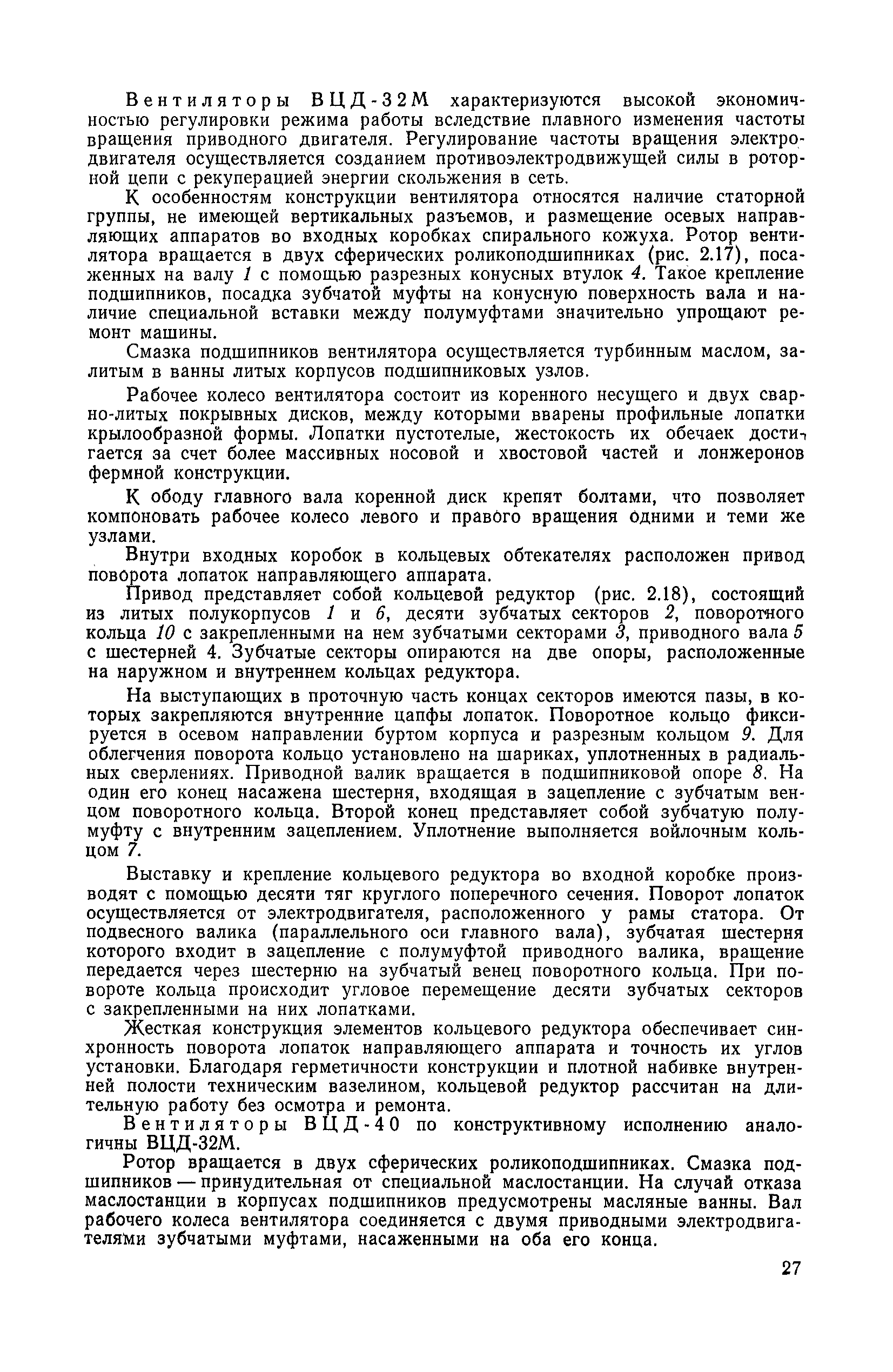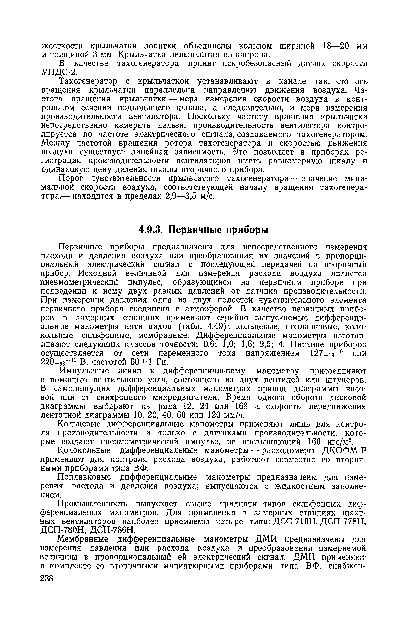| Оглавление: | 1. Общие положения 1.1. Цель ревизии и наладки главных вентиляторных установок 1.2. Объем работ по ревизии и наладке главных вентиляторных установок 1.3. Организация и проведение работ по ревизии и наладке главных вентиляторных установок 1.3.1. Подготовительные работы 1.3.2, Порядок проведения наладочных работ 1.3.3. Определение режимных параметров главной вентиляторной установки 1.3.4. Оформление отчетно-технической документации 2. Конструкции и параметры вентиляторных установок 2.1. Элементы главной вентиляторной установки шахты 2.2. Осевые вентиляторы 2.3. Центробежные вентиляторы 3. Ревизия и наладка механической части главных вентиляторных установок 3.1. Ревизия и наладка отдельных узлов механической части вентиляторов и пробный пуск 3.1.1. Проверка состояния фундамента, рамы, кожуха, диффузора, коллектора, обтекателя, подшипниковых узлов 3.1.2. Рабочие колеса осевых вентиляторов 3.1.3. Рабочие колеса центробежных вентиляторов 3.1.4. Направляющие и спрямляющие аппараты 3.1.5. Подшипники качения. валы 3.1.6. Подшипники скольжения. Валы 3.1.7. Системы циркуляционной смазки подшипников 3.1.8. Соединительные муфты 3.1.9. Центровка опорных валов 3.1.10. Центровка подвесных валов 3.1.11. Тормозные устройства вентиляторов 3.1.12. Пробный пуск вентиляторов 3.2. Балансировка роторов шахтных вентиляторов 3.2.1. Причины и допустимые величины вибраций 3.2.2. Виброизмерительная аппаратура 3.2.3.. Статическая балансировка 3.2.4. динамическая балансировка 3.3. Ревизия и наладка реверсивных и переключающих устройств 3.3.1. Способы реверсирования воздушной струи и перестановки переключающих устройств 3.3.2. Типовые схемы реверсирования и переключения воздушной струи 3.3.3. Ревизия, наладка и опробование реверсивных и переключающих устройств 4. Ревизия, наладка и испытание электрической части главных вентиляторных установок 4.1. Распределительные устройства напряжением выше 1000 В 4.1.1. Разъединители 4.1.2. Масляные выключатели 4.1.3. Приводы к масляным выключателям 4.1.4. Трансформаторы тока (ТТ) 4.1.5. Трансформаторы напряжения (ТН) 4.2. Распределительные устройства напряжением до 1000 В 4.3. Кабельные линии 4.4. Электрические машины 4.4.1. Внешний осмотр машины и проверка ее состояния 4.4.2. Проверка механической части электрических машин 4.4.3. Измерение сопротивления изоляции обмоток 4.4.4. Измерение сопротивления обмоток постоянному току 4.4.5. Статические преобразователи 4.4.6. Ревизия и испытание электрических машин после монтажа 4.5. Аппаратура управления, защиты и контроля 4.5.1. Высоковольтные реверсоры 4.5.2. Контакторы переменного тока КТ (КТВ) 4 5.3. Автоматические выключатели серий А3100 и АП-50 4.5.4. Реле постоянного и переменного тока 4.5.5. Тормозные электромагниты 4.5.6. Роторные сопротивления и реостаты 4.5.7. Конечные выключатели 4.5.8. Полупроводниковые выпрямительные элементы 4.5.9. Контроль температуры 4.5.10. Электроконтактные манометры 4.6. Схемы управления, защиты н контроля 4.6.1. Вторичные цени 4.6.2. Схемы управления асинхронным приводом 4.6.3. Схемы управления синхронным приводом 4.6.4. Контроль вращения 4.6.5. Контроль температуры подшипников электродвигателей и вентиляторов 4.6.6. Защита приводных электродвигателей 4.7. Схемы и аппаратура дистанционно-автоматизированного управления главными вентиляторными установками 4.7.1. Основные технические требования к автоматизированным установкам 4.7.2. Порядок проведе
