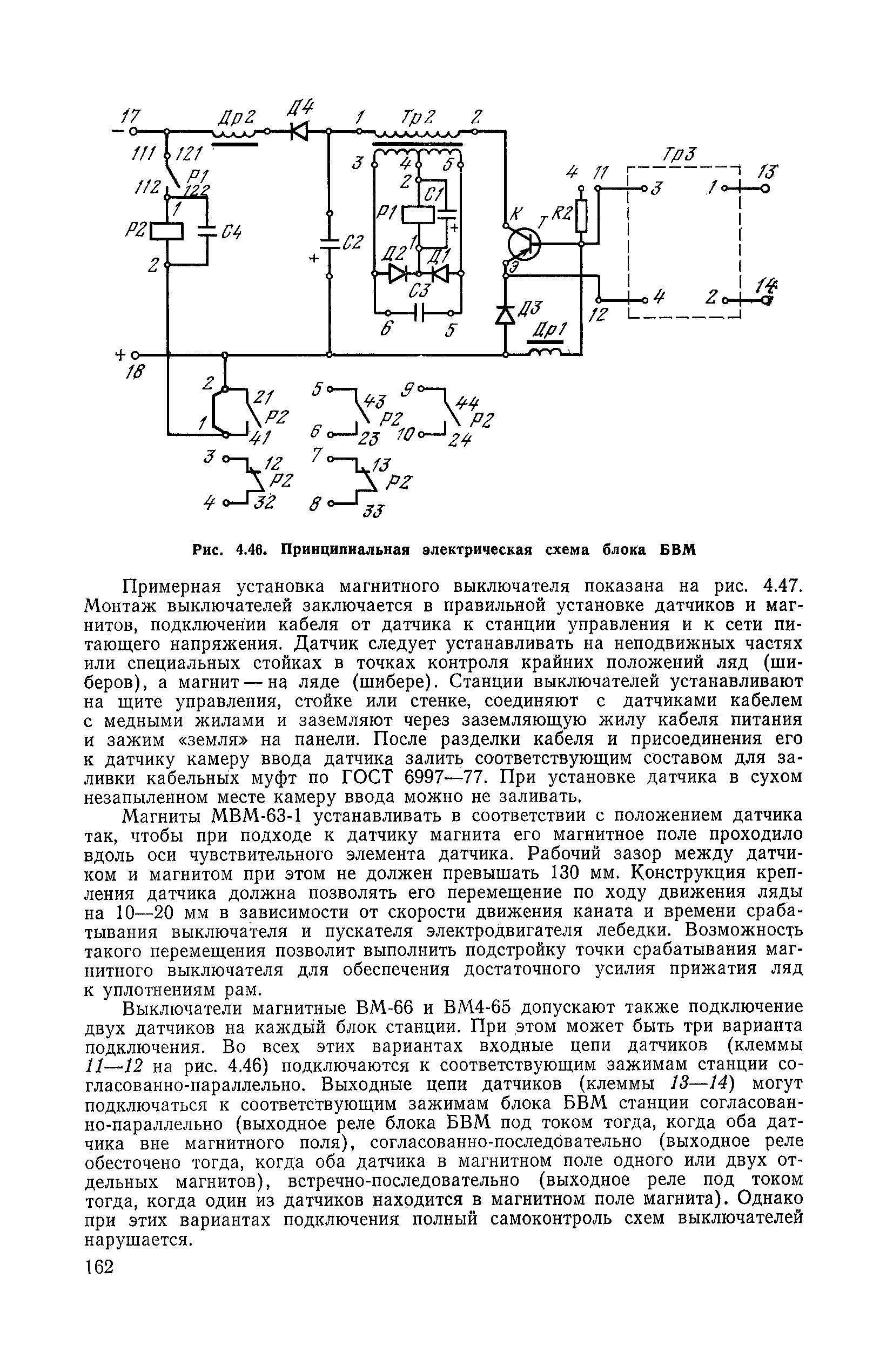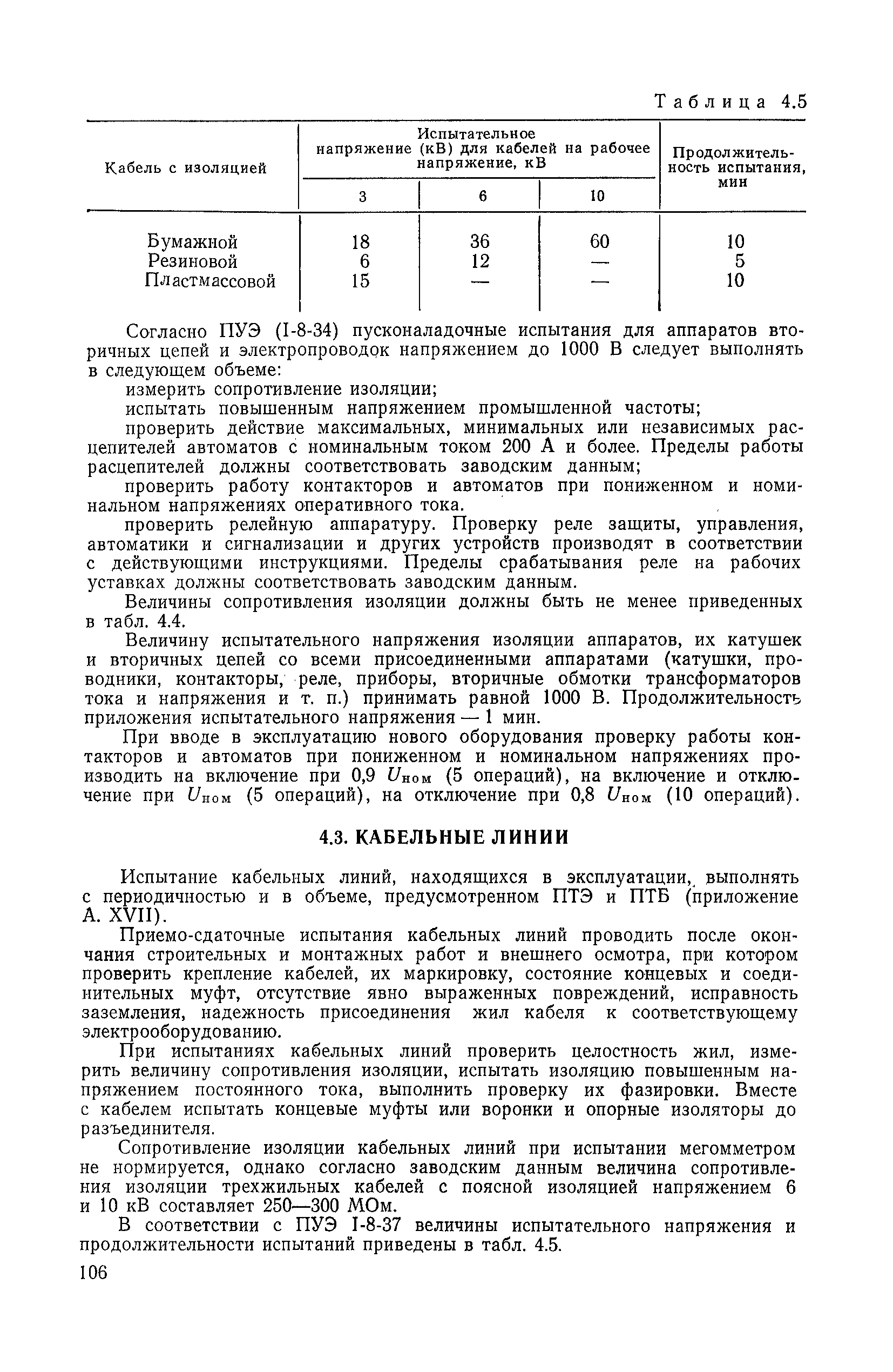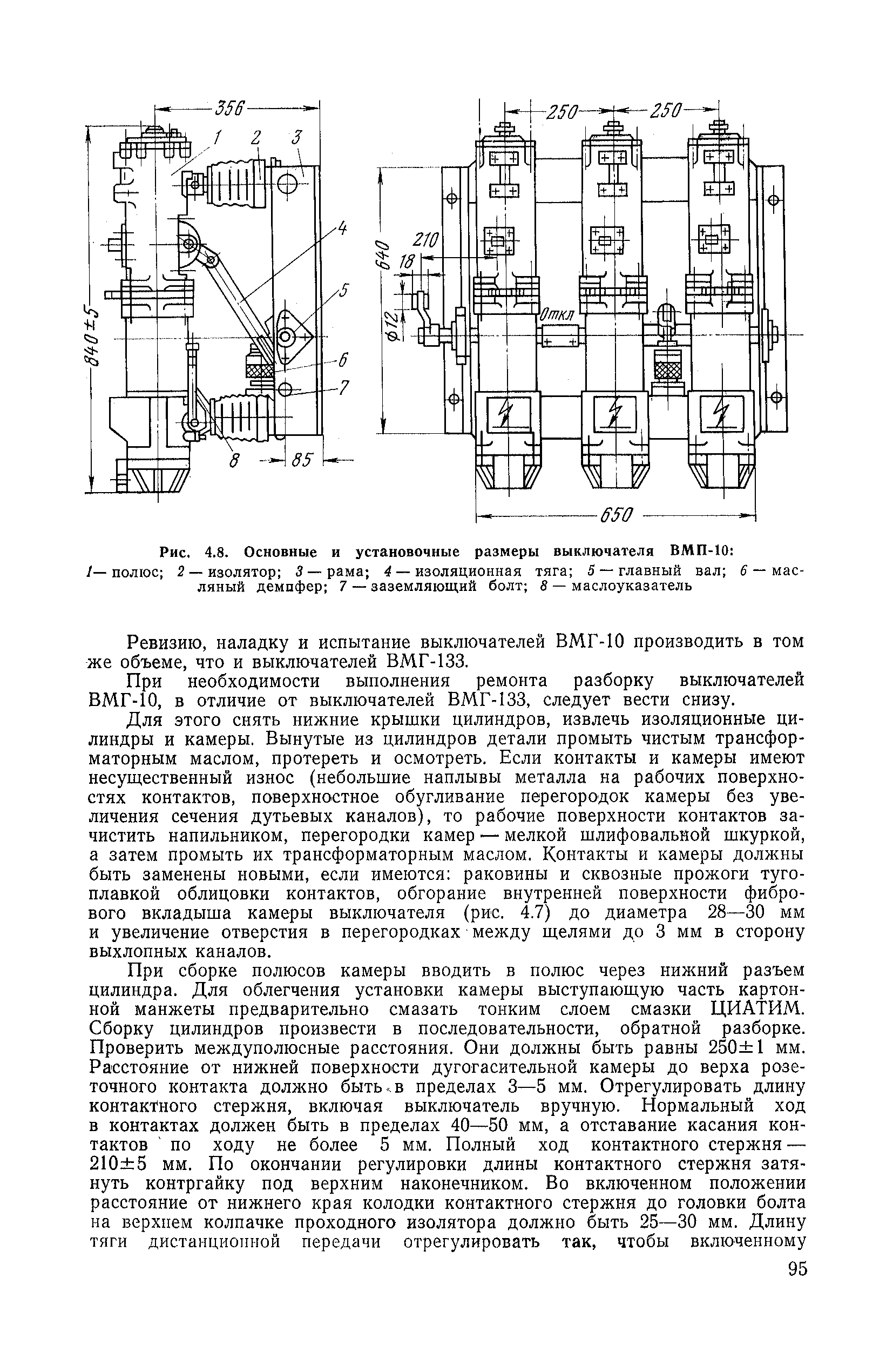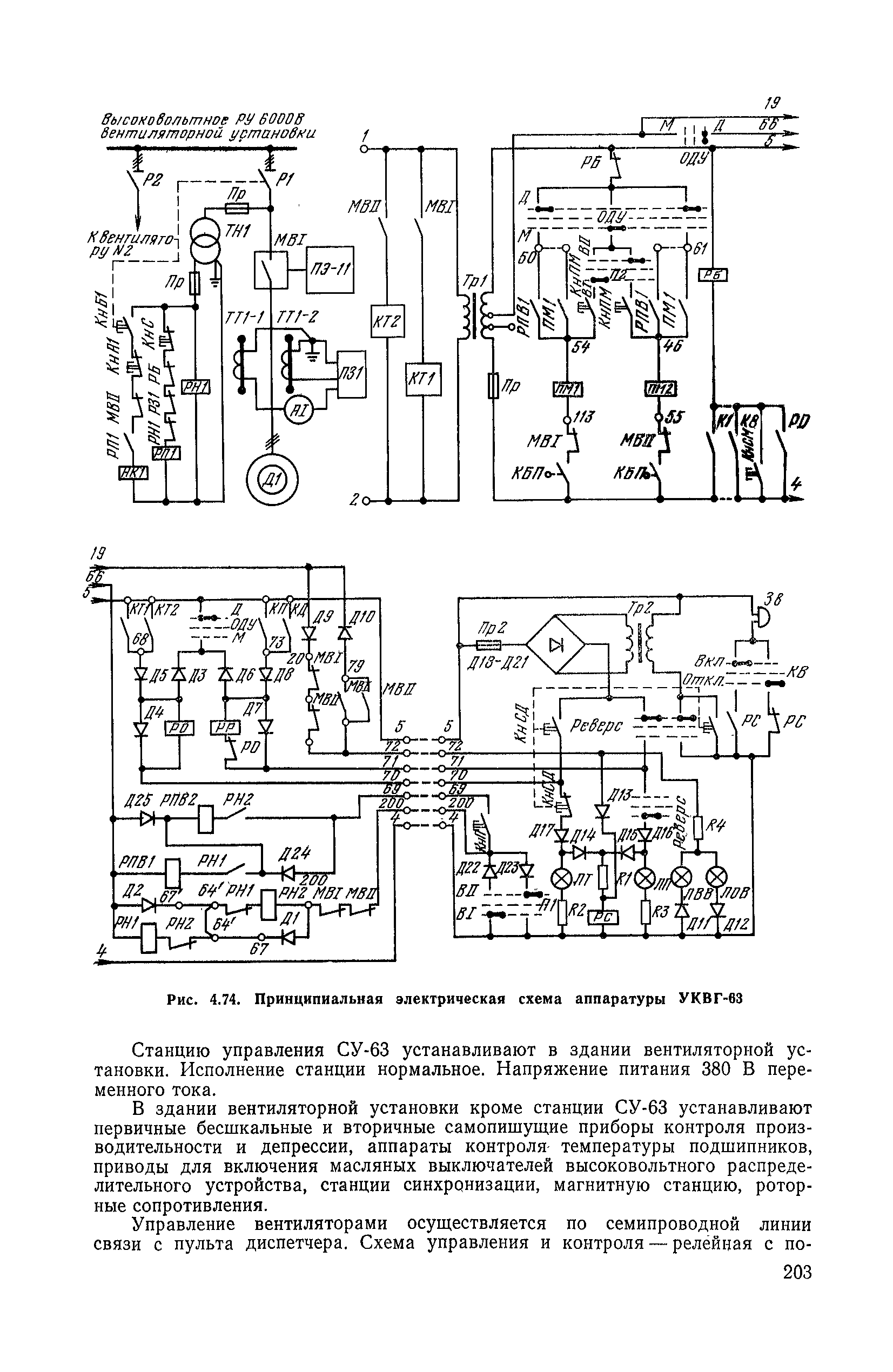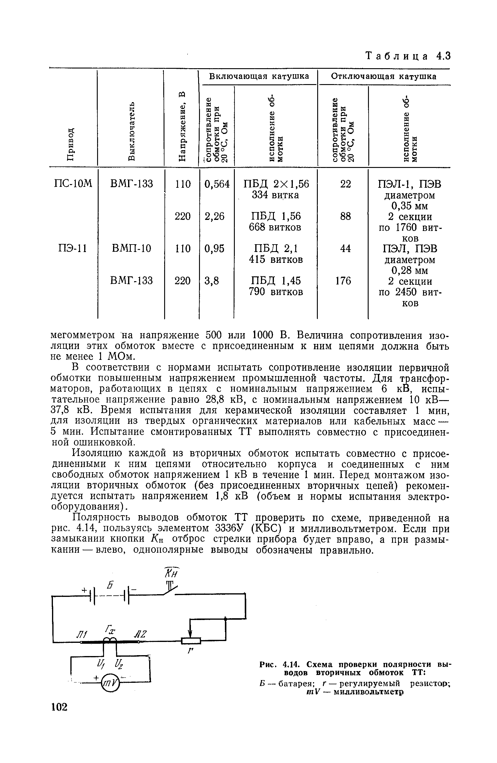 | Оглавление: | 1. Общие положения 1.1. Цель ревизии и наладки главных вентиляторных установок 1.2. Объем работ по ревизии и наладке главных вентиляторных установок 1.3. Организация и проведение работ по ревизии и наладке главных вентиляторных установок 1.3.1. Подготовительные работы 1.3.2, Порядок проведения наладочных работ 1.3.3. Определение режимных параметров главной вентиляторной установки 1.3.4. Оформление отчетно-технической документации 2. Конструкции и параметры вентиляторных установок 2.1. Элементы главной вентиляторной установки шахты 2.2. Осевые вентиляторы 2.3. Центробежные вентиляторы 3. Ревизия и наладка механической части главных вентиляторных установок 3.1. Ревизия и наладка отдельных узлов механической части вентиляторов и пробный пуск 3.1.1. Проверка состояния фундамента, рамы, кожуха, диффузора, коллектора, обтекателя, подшипниковых узлов 3.1.2. Рабочие колеса осевых вентиляторов 3.1.3. Рабочие колеса центробежных вентиляторов 3.1.4. Направляющие и спрямляющие аппараты 3.1.5. Подшипники качения. валы 3.1.6. Подшипники скольжения. Валы 3.1.7. Системы циркуляционной смазки подшипников 3.1.8. Соединительные муфты 3.1.9. Центровка опорных валов 3.1.10. Центровка подвесных валов 3.1.11. Тормозные устройства вентиляторов 3.1.12. Пробный пуск вентиляторов 3.2. Балансировка роторов шахтных вентиляторов 3.2.1. Причины и допустимые величины вибраций 3.2.2. Виброизмерительная аппаратура 3.2.3.. Статическая балансировка 3.2.4. динамическая балансировка 3.3. Ревизия и наладка реверсивных и переключающих устройств 3.3.1. Способы реверсирования воздушной струи и перестановки переключающих устройств 3.3.2. Типовые схемы реверсирования и переключения воздушной струи 3.3.3. Ревизия, наладка и опробование реверсивных и переключающих устройств 4. Ревизия, наладка и испытание электрической части главных вентиляторных установок 4.1. Распределительные устройства напряжением выше 1000 В 4.1.1. Разъединители 4.1.2. Масляные выключатели 4.1.3. Приводы к масляным выключателям 4.1.4. Трансформаторы тока (ТТ) 4.1.5. Трансформаторы напряжения (ТН) 4.2. Распределительные устройства напряжением до 1000 В 4.3. Кабельные линии 4.4. Электрические машины 4.4.1. Внешний осмотр машины и проверка ее состояния 4.4.2. Проверка механической части электрических машин 4.4.3. Измерение сопротивления изоляции обмоток 4.4.4. Измерение сопротивления обмоток постоянному току 4.4.5. Статические преобразователи 4.4.6. Ревизия и испытание электрических машин после монтажа 4.5. Аппаратура управления, защиты и контроля 4.5.1. Высоковольтные реверсоры 4.5.2. Контакторы переменного тока КТ (КТВ) 4 5.3. Автоматические выключатели серий А3100 и АП-50 4.5.4. Реле постоянного и переменного тока 4.5.5. Тормозные электромагниты 4.5.6. Роторные сопротивления и реостаты 4.5.7. Конечные выключатели 4.5.8. Полупроводниковые выпрямительные элементы 4.5.9. Контроль температуры 4.5.10. Электроконтактные манометры 4.6. Схемы управления, защиты н контроля 4.6.1. Вторичные цени 4.6.2. Схемы управления асинхронным приводом 4.6.3. Схемы управления синхронным приводом 4.6.4. Контроль вращения 4.6.5. Контроль температуры подшипников электродвигателей и вентиляторов 4.6.6. Защита приводных электродвигателей 4.7. Схемы и аппаратура дистанционно-автоматизированного управления главными вентиляторными установками 4.7.1. Основные технические требования к автоматизированным установкам 4.7.2. Порядок проведе