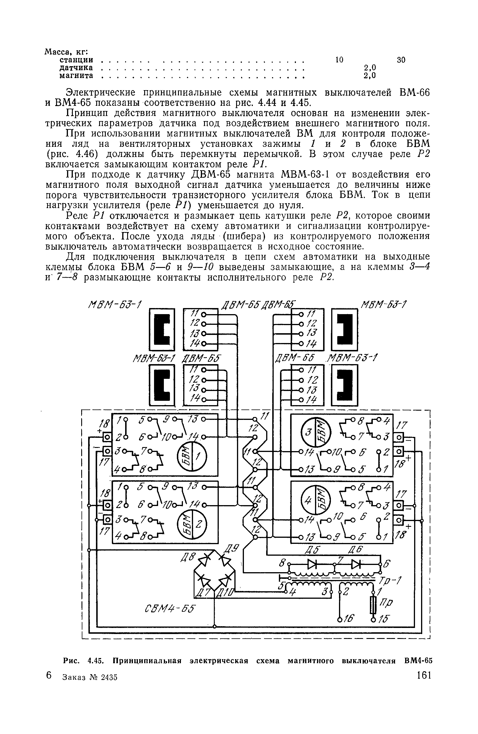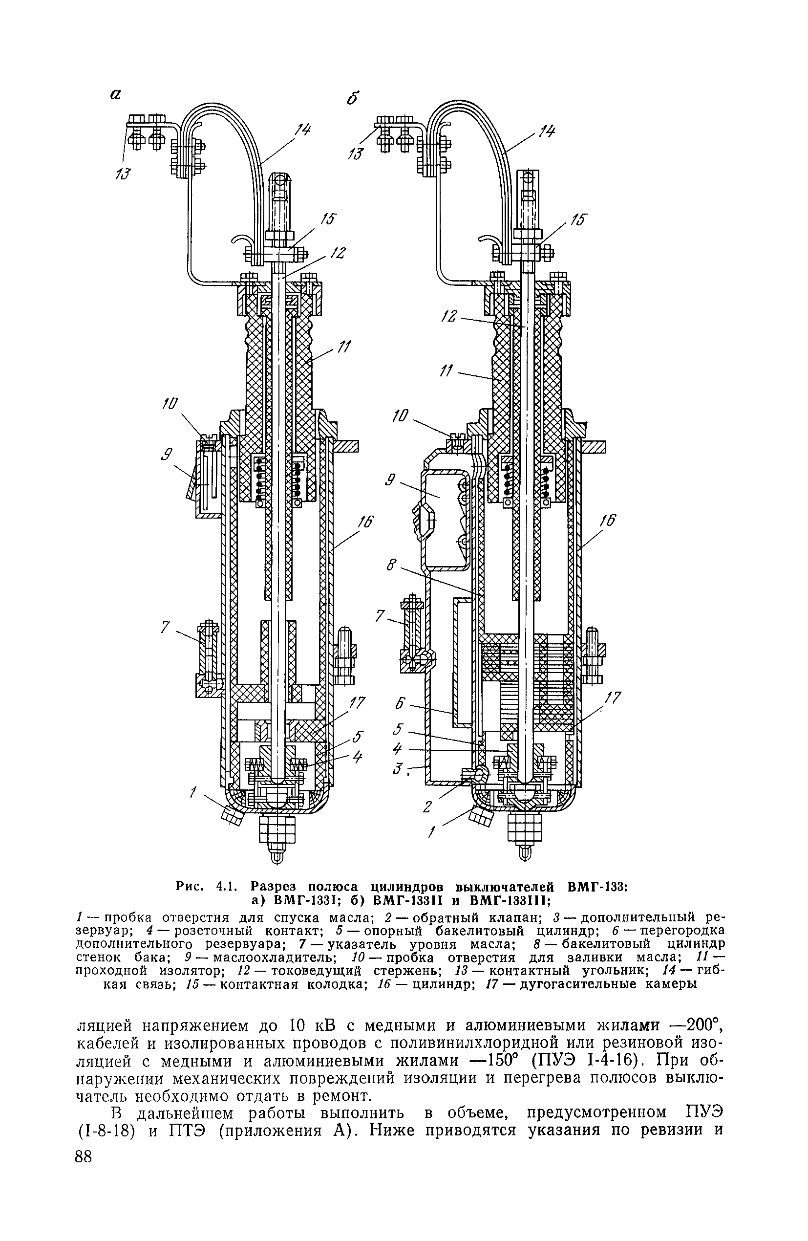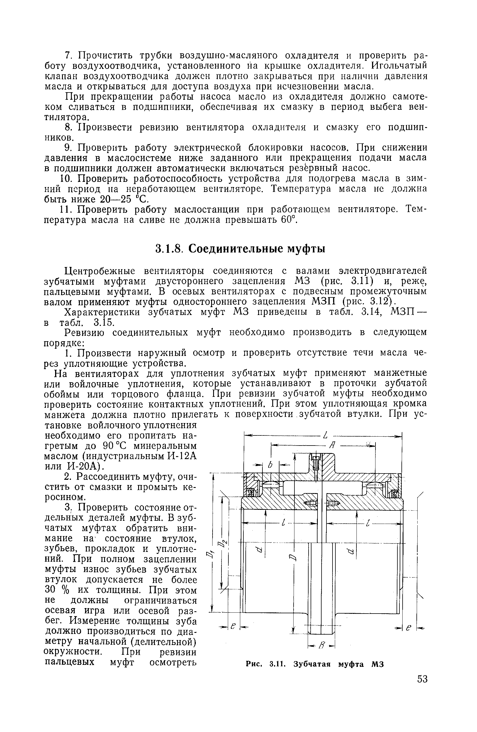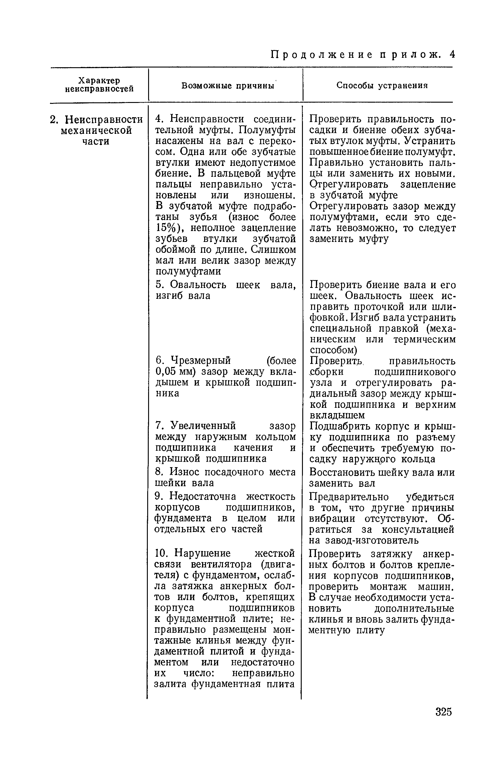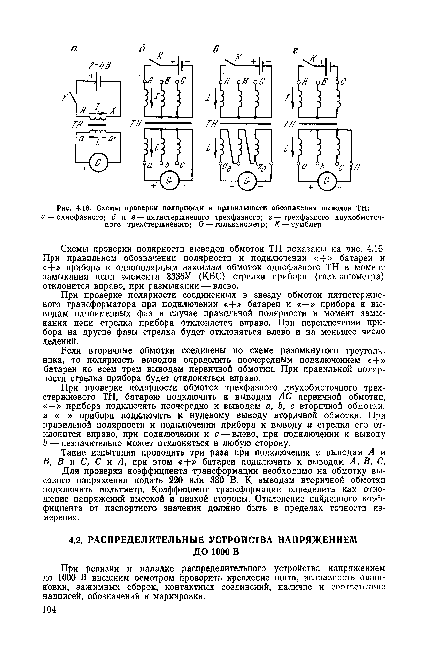 | Оглавление: | 1. Общие положения 1.1. Цель ревизии и наладки главных вентиляторных установок 1.2. Объем работ по ревизии и наладке главных вентиляторных установок 1.3. Организация и проведение работ по ревизии и наладке главных вентиляторных установок 1.3.1. Подготовительные работы 1.3.2, Порядок проведения наладочных работ 1.3.3. Определение режимных параметров главной вентиляторной установки 1.3.4. Оформление отчетно-технической документации 2. Конструкции и параметры вентиляторных установок 2.1. Элементы главной вентиляторной установки шахты 2.2. Осевые вентиляторы 2.3. Центробежные вентиляторы 3. Ревизия и наладка механической части главных вентиляторных установок 3.1. Ревизия и наладка отдельных узлов механической части вентиляторов и пробный пуск 3.1.1. Проверка состояния фундамента, рамы, кожуха, диффузора, коллектора, обтекателя, подшипниковых узлов 3.1.2. Рабочие колеса осевых вентиляторов 3.1.3. Рабочие колеса центробежных вентиляторов 3.1.4. Направляющие и спрямляющие аппараты 3.1.5. Подшипники качения. валы 3.1.6. Подшипники скольжения. Валы 3.1.7. Системы циркуляционной смазки подшипников 3.1.8. Соединительные муфты 3.1.9. Центровка опорных валов 3.1.10. Центровка подвесных валов 3.1.11. Тормозные устройства вентиляторов 3.1.12. Пробный пуск вентиляторов 3.2. Балансировка роторов шахтных вентиляторов 3.2.1. Причины и допустимые величины вибраций 3.2.2. Виброизмерительная аппаратура 3.2.3.. Статическая балансировка 3.2.4. динамическая балансировка 3.3. Ревизия и наладка реверсивных и переключающих устройств 3.3.1. Способы реверсирования воздушной струи и перестановки переключающих устройств 3.3.2. Типовые схемы реверсирования и переключения воздушной струи 3.3.3. Ревизия, наладка и опробование реверсивных и переключающих устройств 4. Ревизия, наладка и испытание электрической части главных вентиляторных установок 4.1. Распределительные устройства напряжением выше 1000 В 4.1.1. Разъединители 4.1.2. Масляные выключатели 4.1.3. Приводы к масляным выключателям 4.1.4. Трансформаторы тока (ТТ) 4.1.5. Трансформаторы напряжения (ТН) 4.2. Распределительные устройства напряжением до 1000 В 4.3. Кабельные линии 4.4. Электрические машины 4.4.1. Внешний осмотр машины и проверка ее состояния 4.4.2. Проверка механической части электрических машин 4.4.3. Измерение сопротивления изоляции обмоток 4.4.4. Измерение сопротивления обмоток постоянному току 4.4.5. Статические преобразователи 4.4.6. Ревизия и испытание электрических машин после монтажа 4.5. Аппаратура управления, защиты и контроля 4.5.1. Высоковольтные реверсоры 4.5.2. Контакторы переменного тока КТ (КТВ) 4 5.3. Автоматические выключатели серий А3100 и АП-50 4.5.4. Реле постоянного и переменного тока 4.5.5. Тормозные электромагниты 4.5.6. Роторные сопротивления и реостаты 4.5.7. Конечные выключатели 4.5.8. Полупроводниковые выпрямительные элементы 4.5.9. Контроль температуры 4.5.10. Электроконтактные манометры 4.6. Схемы управления, защиты н контроля 4.6.1. Вторичные цени 4.6.2. Схемы управления асинхронным приводом 4.6.3. Схемы управления синхронным приводом 4.6.4. Контроль вращения 4.6.5. Контроль температуры подшипников электродвигателей и вентиляторов 4.6.6. Защита приводных электродвигателей 4.7. Схемы и аппаратура дистанционно-автоматизированного управления главными вентиляторными установками 4.7.1. Основные технические требования к автоматизированным установкам 4.7.2. Порядок проведе