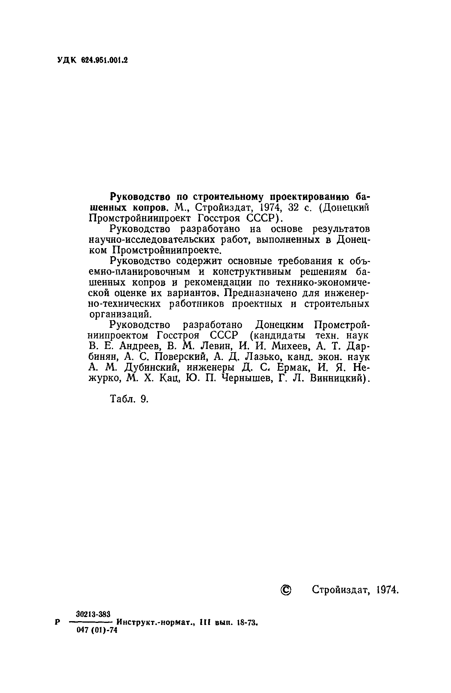 | Утверждён: | 04.06.1974 Донецкий ПромстройНИИпроект Госстроя СССР |