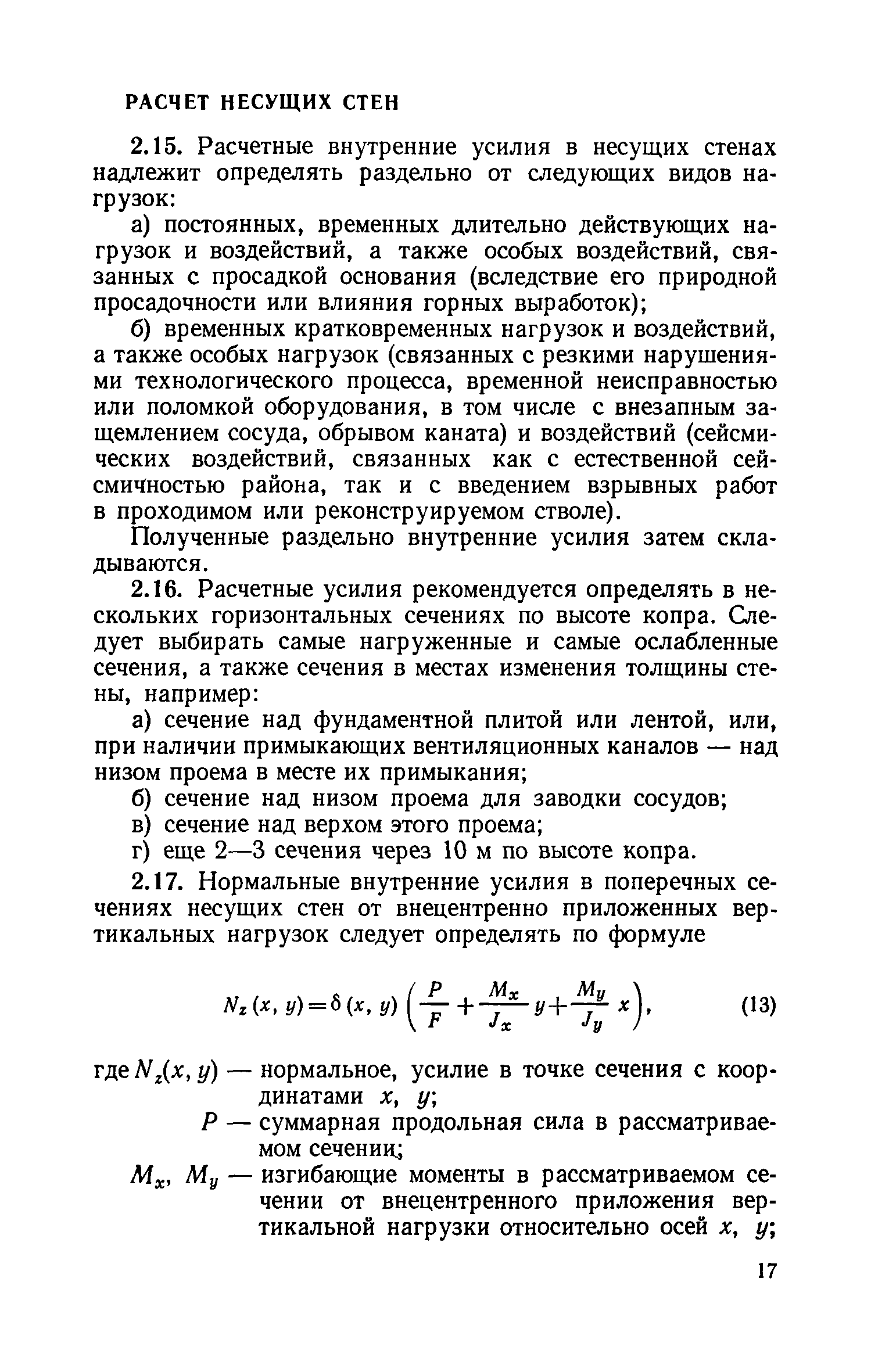 | Оглавление: | 1 Общие положения 2 Расчет конструкций башенных копров Статический расчет Общие указания Нагрузки и воздействия Расчетные схемы Расчет перекрытий Расчет несущих стен Расчет элементов каркаса Динамический расчет Общие указания Динамические нагрузки Расчетные схемы, частоты и формы собственных колебаний Перемещения и внутренние усилия 3 Расчет оснований башенных копров Выбор глубины заложения фундамента Определение размеров подошвы фундамента в плане Определение нормативного давления на грунт Определение крена башенного копра Определение деформационных характеристик основания Определение осадки башенного копра Определение отпора грунта основания 4 Расчет теплопотерь помещений башенных копров Приложение I. Программа "Ползучесть" Приложение II. Программа "Предел" |