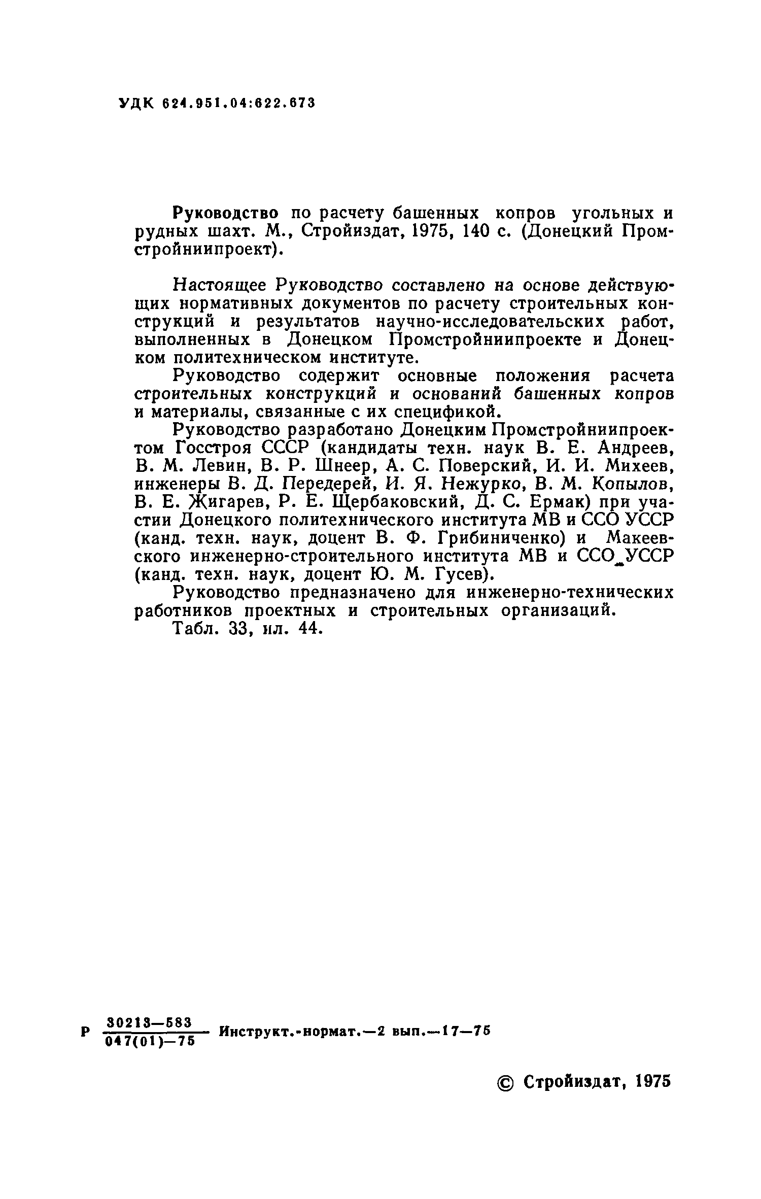 | Название рус.: | Руководство по расчету башенных копров угольных и рудных шахт |