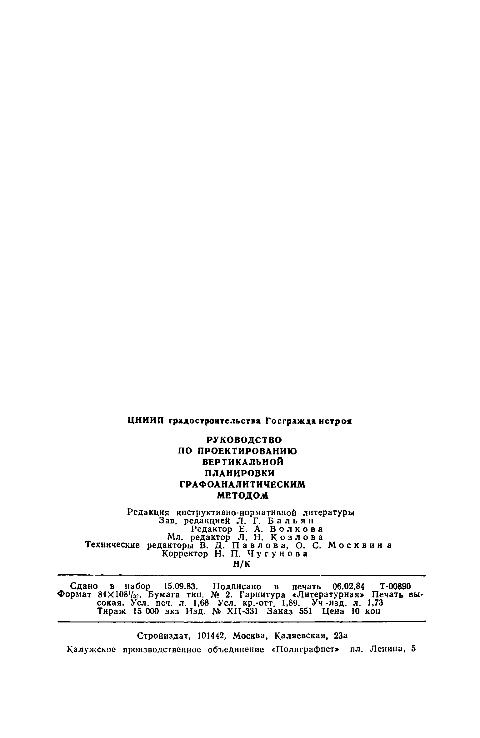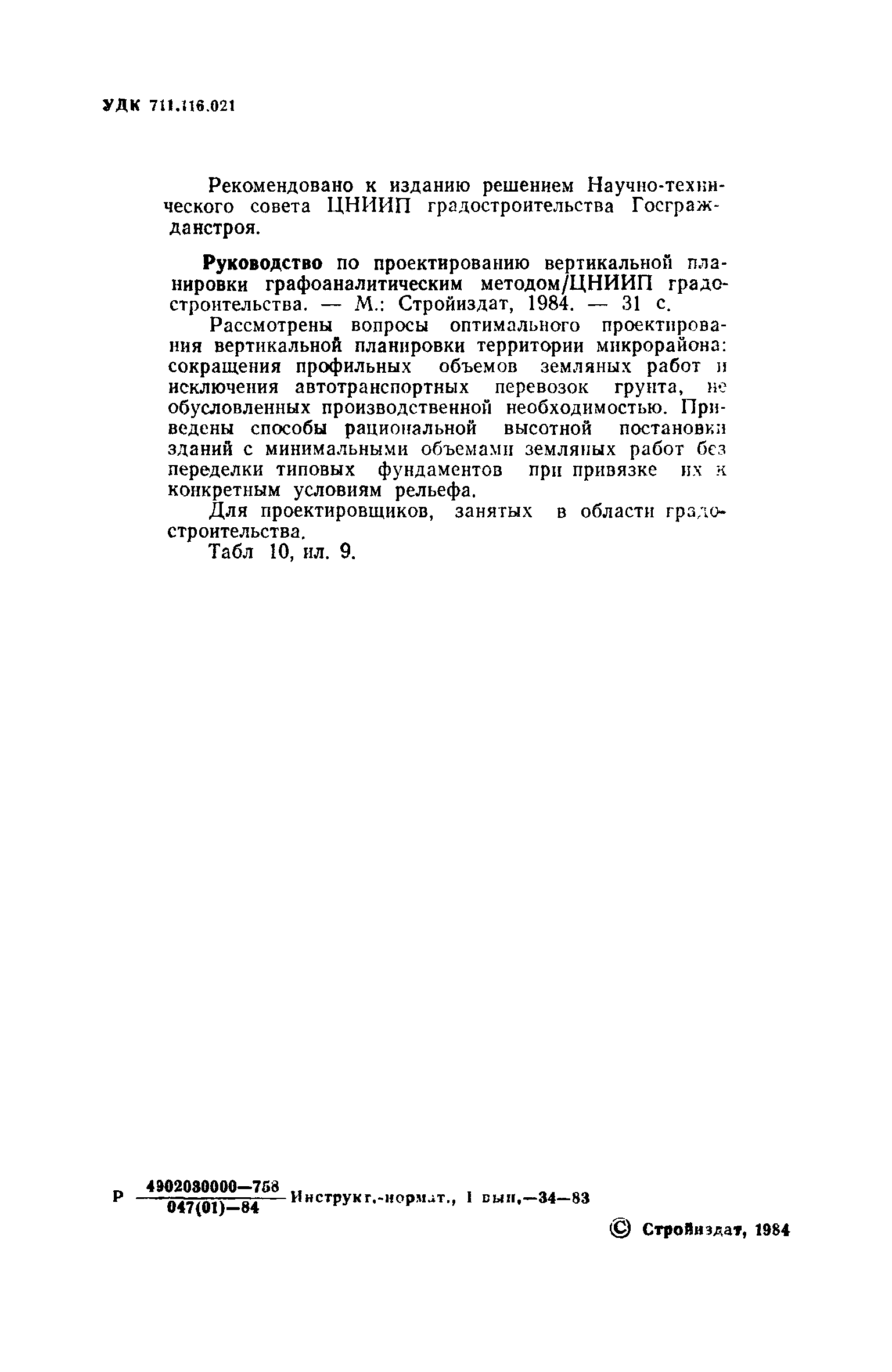 | Название рус.: | Руководство по проектированию вертикальной планировки графоаналитическим методом |