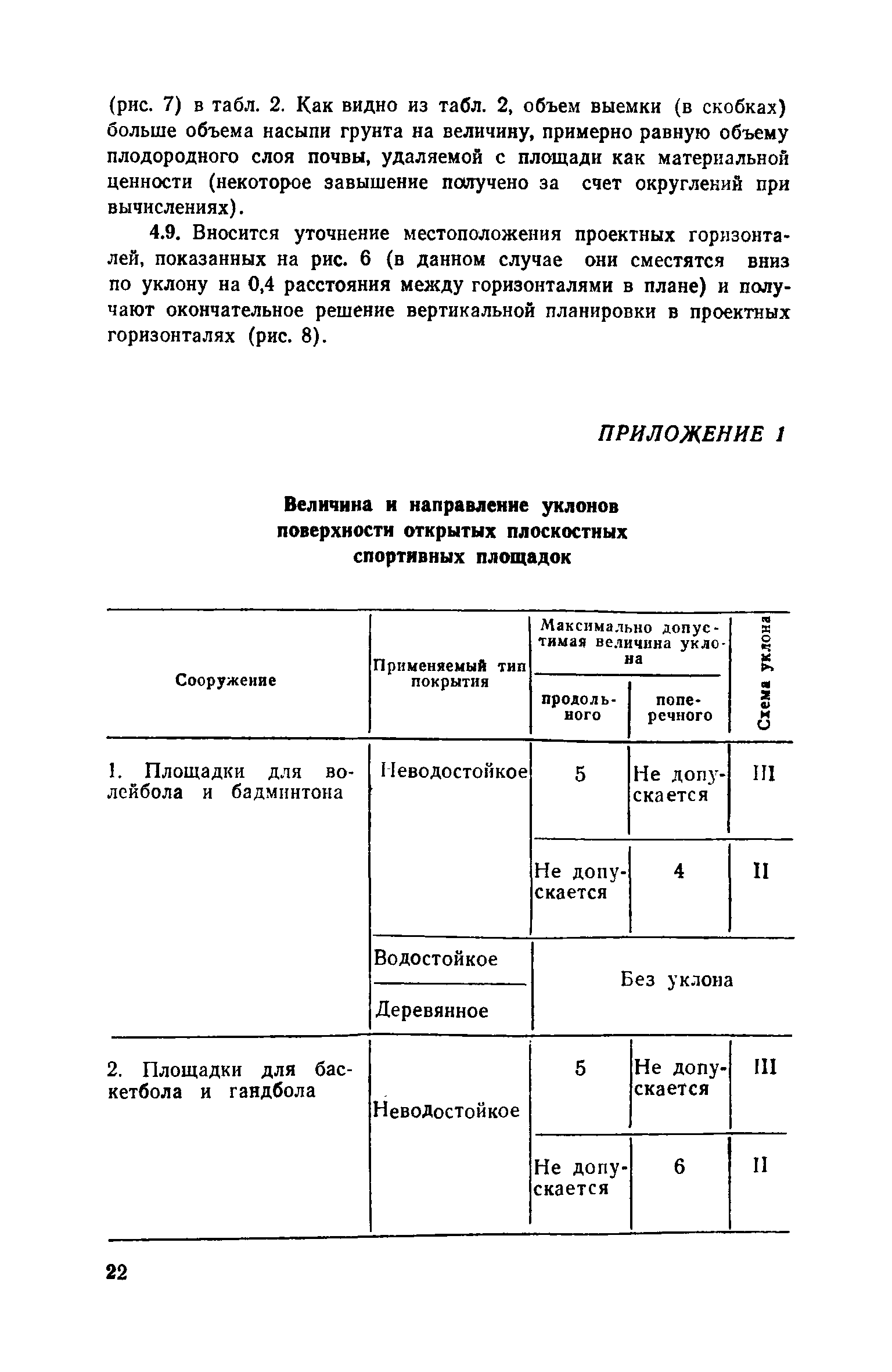 | Оглавление: | Предисловие 1. Общие положения 2. Состав проектной документации 3. Основные требования к высотному положению застройки и элементов благоустройства микрорайона 4. Последовательность (технология) проектирования вертикальной планировки графоаналитическим методом (пример расчета) Приложение 1. Величина и направление уклонов поверхности открытых плоскостных спортивных площадок Приложение 2. Некоторые сведения о грунтах и допустимых скоростях течения воды Приложение 3. Вспомогательное таблицы для сокращения времени вычислительных работ |