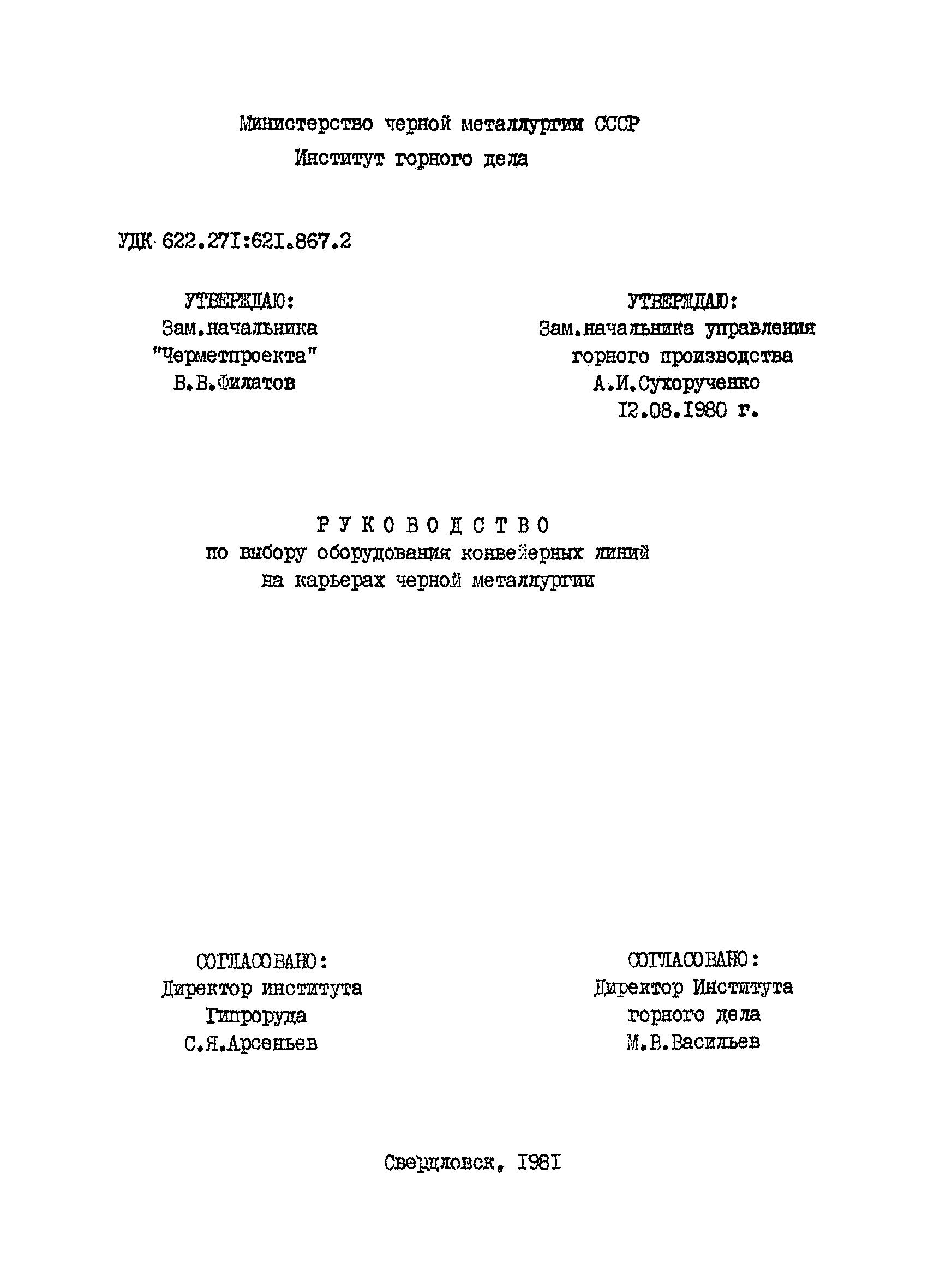 | Название рус.: | Руководство по выбору оборудования конвейерных линий на карьерах черной металлургии |