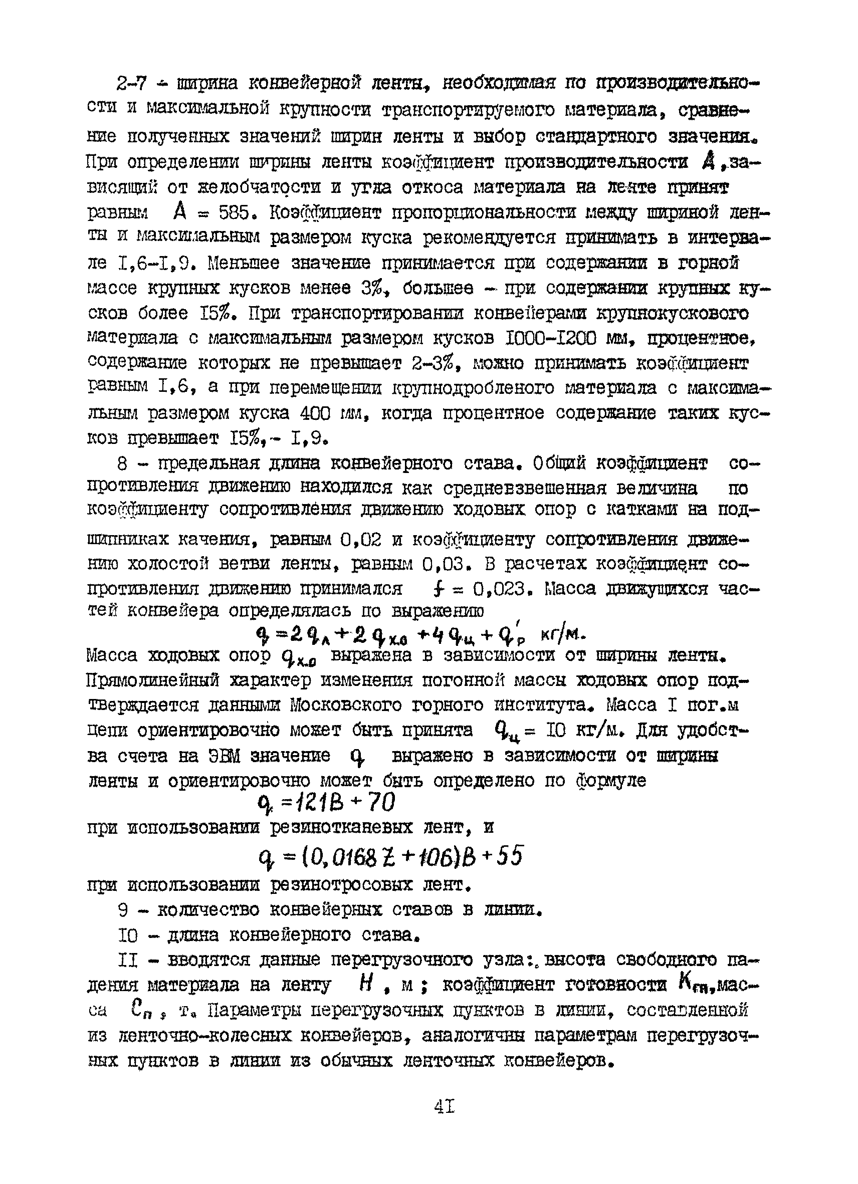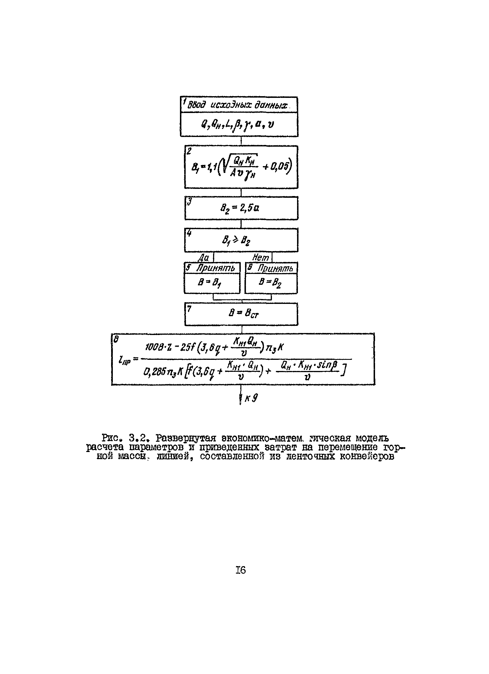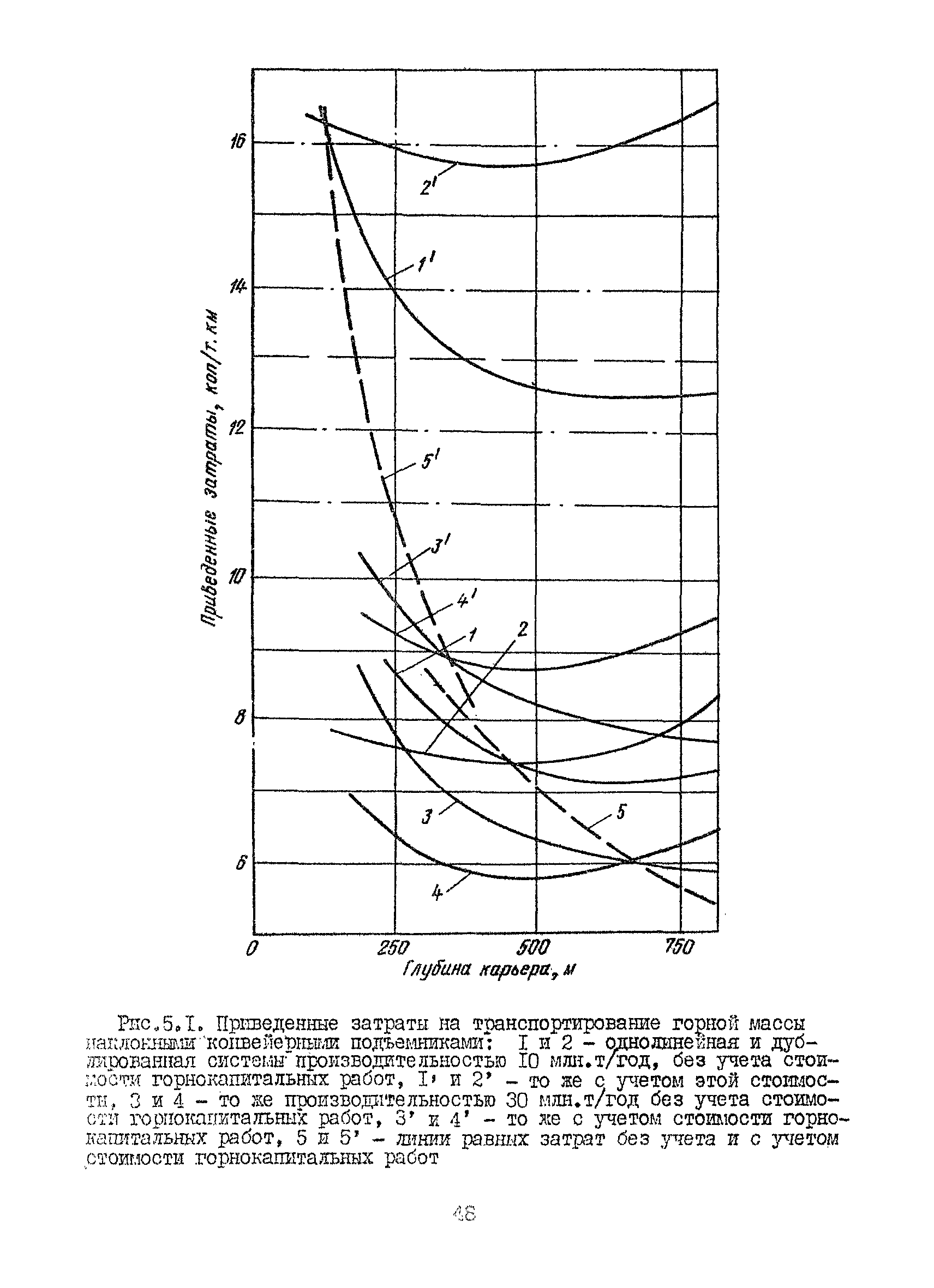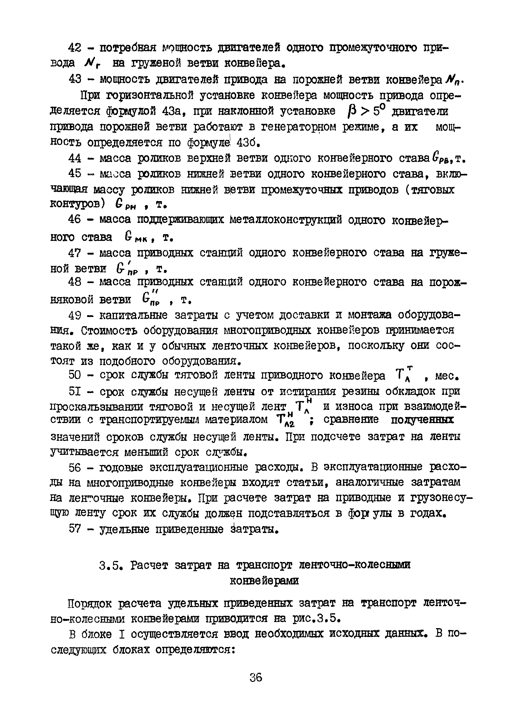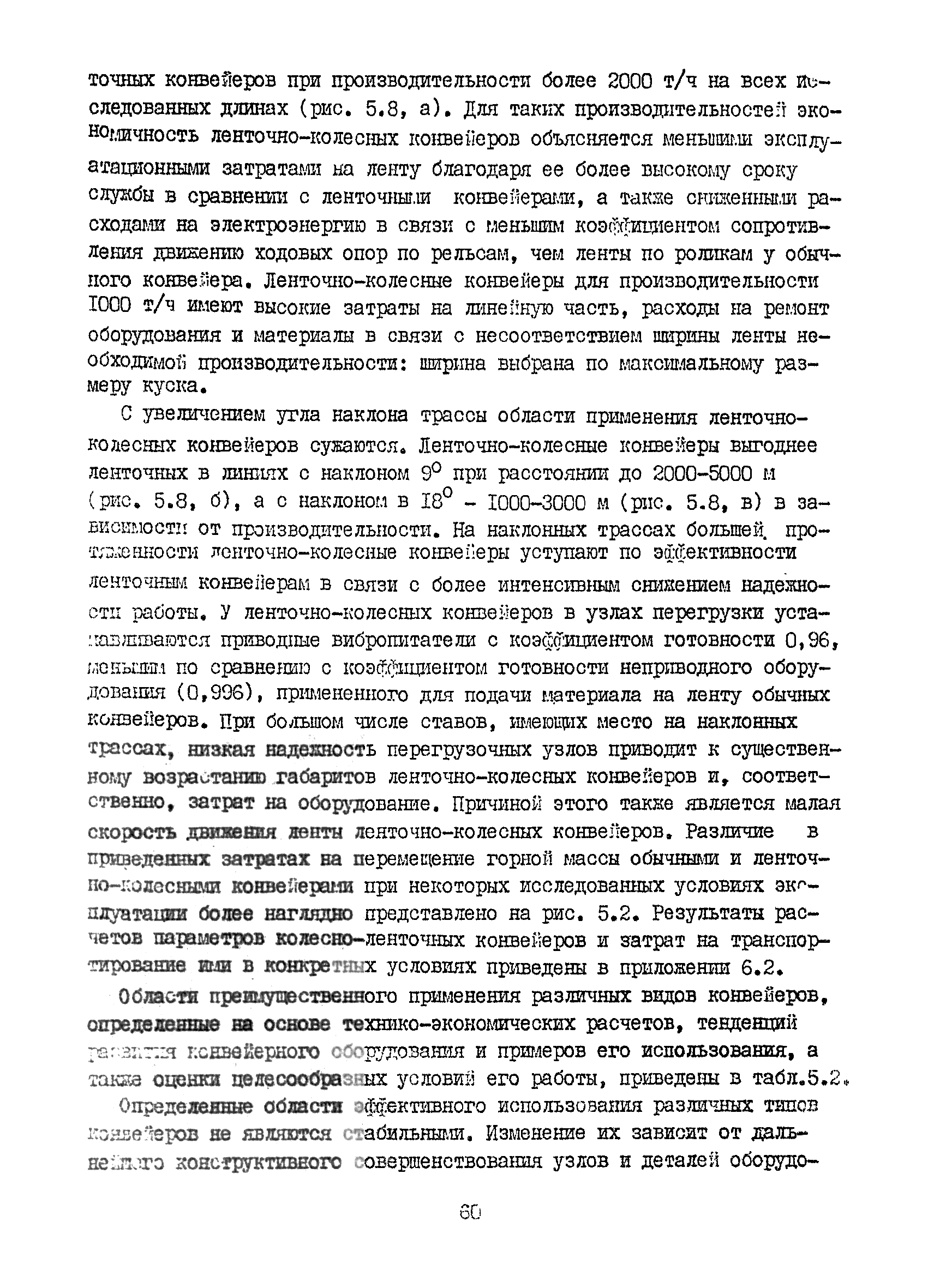 | Оглавление: | 1. Введение 2. Методика выбора вида оборудования конвейерных линий Основные положения при выборе оборудования 3. Экономико-математические модели расчета, параметров конвейеров и приведенных затрат на транспортирование горной массы конвейерными линиями 3.1. Принципиальная блок-схема расчета параметров конвейеров и приведенных затрат на транспортирование горной массы конвейерными линиями 3.2. Расчет затрат на транспорт ленточными конвейерами 3.3. Расчет затрат на транспорт ленточно-канатными конвейерами 3.4. Расчет затрат на транспорт многоприводными ленточными конвейерами 3.5. Расчет затрат на транспорт ленточно-колесными конвейерами 4. Определение целесообразности резервирования конвейерных линий 5. Предпочтительные области применения различного конвейерного оборудования 5.1. Однолинейные и дублированные системы 5.2. Ленточные, ленточно-канатные, многоприводные и ленточно-колесные конвейер 6. Приложения 6.1. Результаты расчетов параметров конвейерного оборудования для протяжения трассы 6.2. Результаты расчетов параметров колесно-ленточных конвейеров и затрат на транспортирование 6.3. Результаты сопоставления проектных и рассчитанных по методике показателей конвейерных линий |
