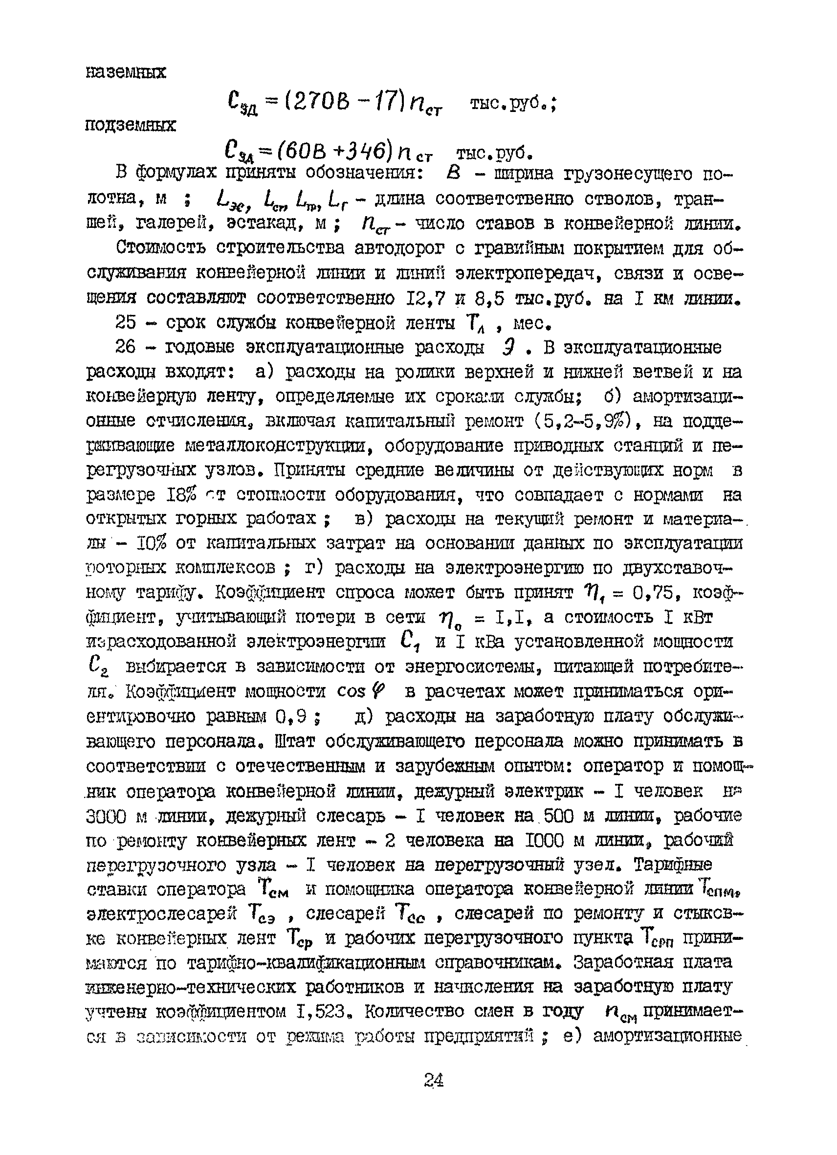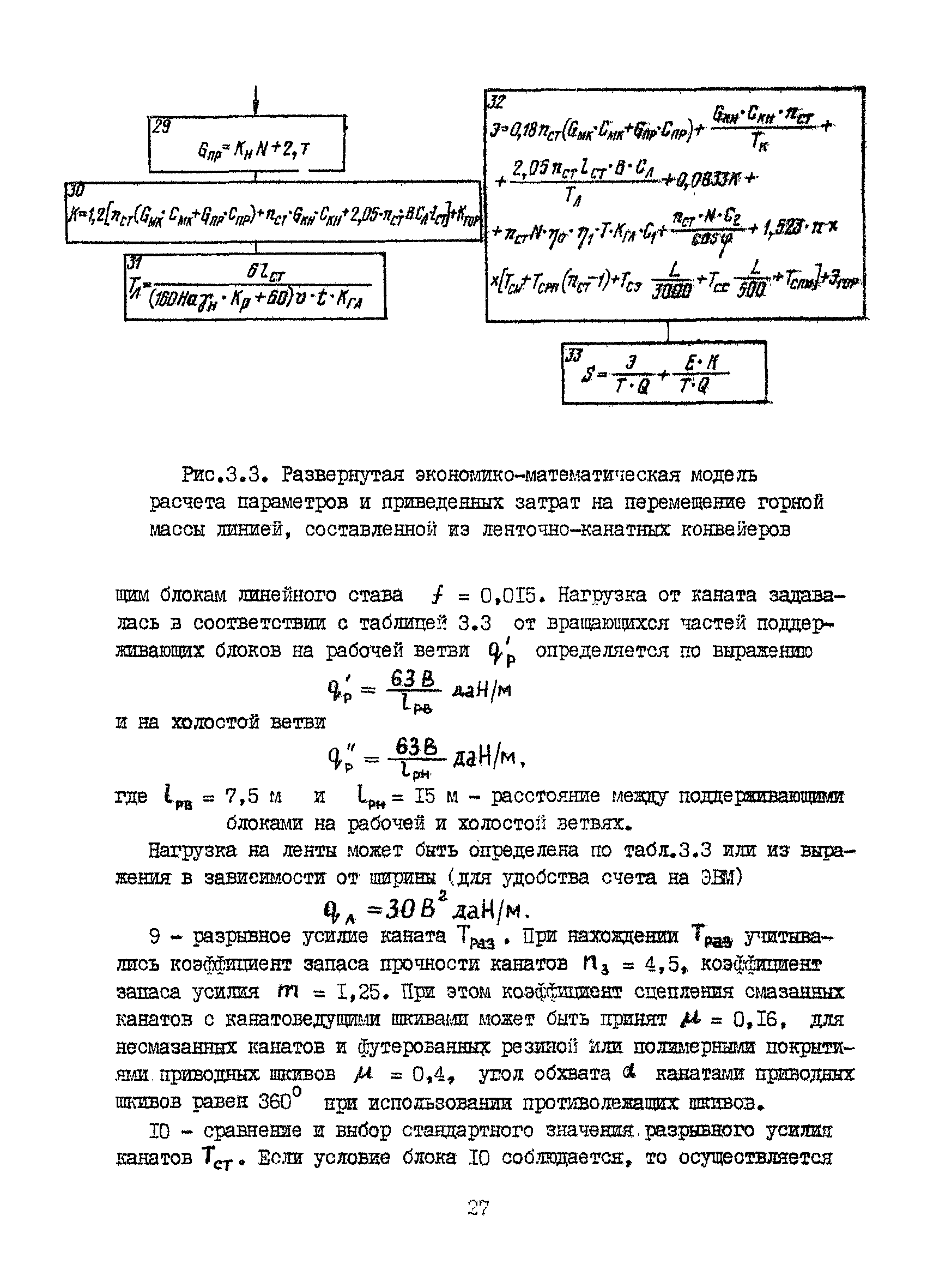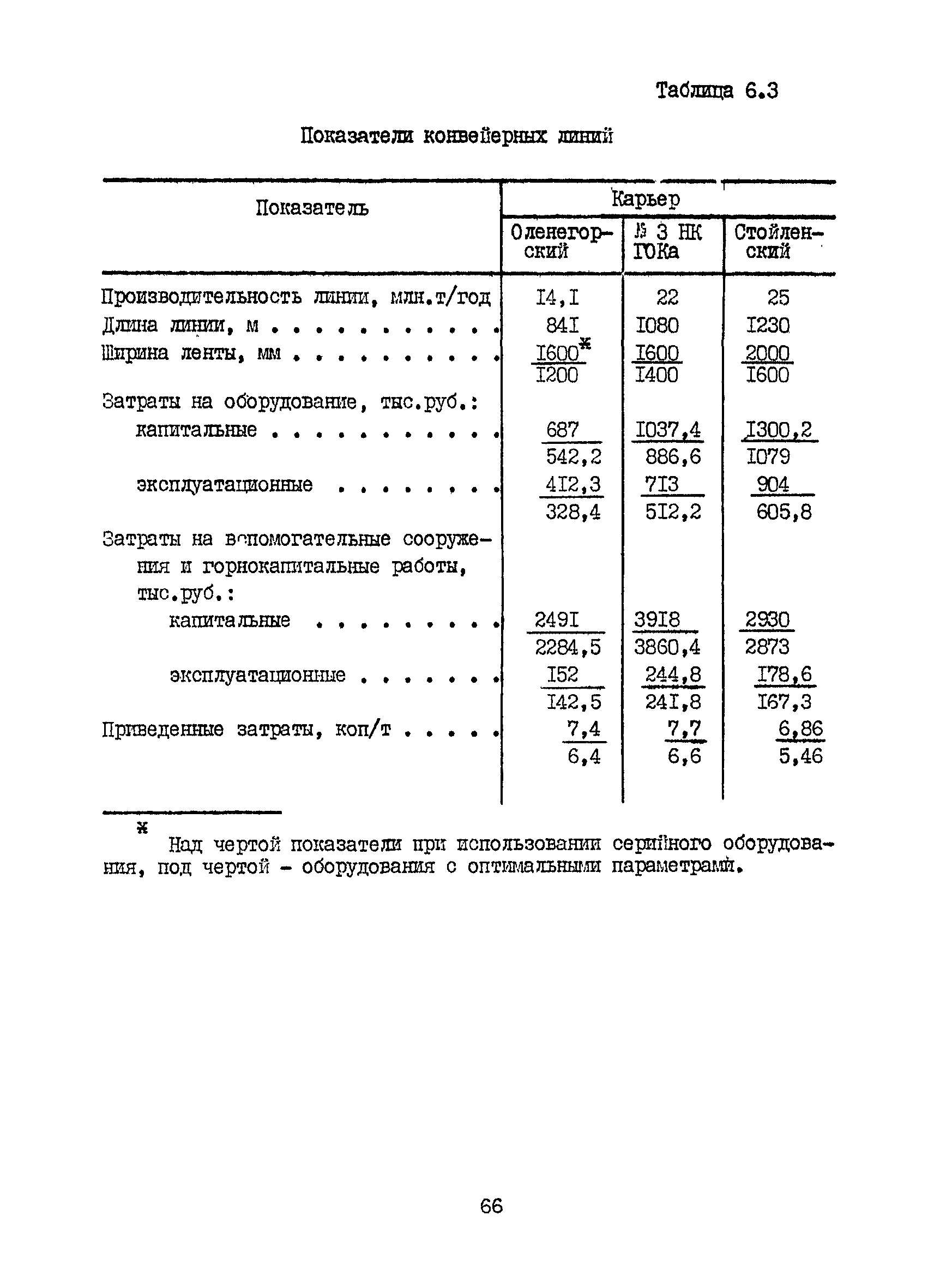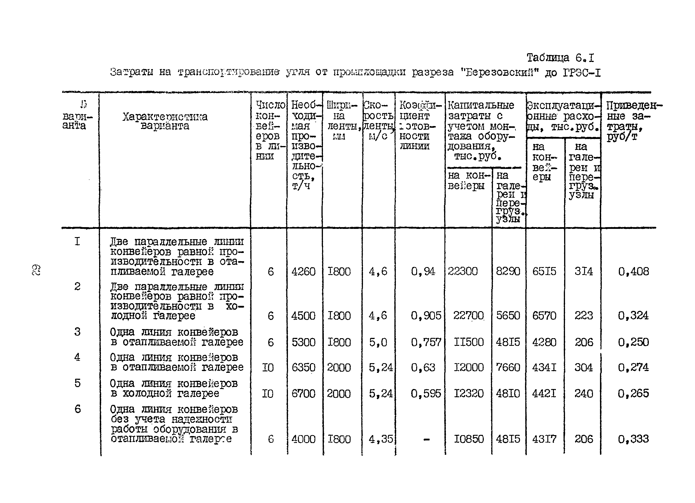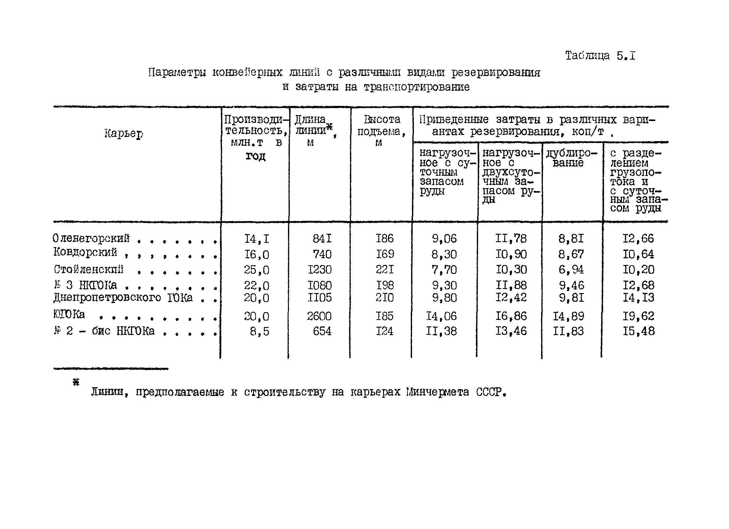 | Оглавление: | 1. Введение 2. Методика выбора вида оборудования конвейерных линий Основные положения при выборе оборудования 3. Экономико-математические модели расчета, параметров конвейеров и приведенных затрат на транспортирование горной массы конвейерными линиями 3.1. Принципиальная блок-схема расчета параметров конвейеров и приведенных затрат на транспортирование горной массы конвейерными линиями 3.2. Расчет затрат на транспорт ленточными конвейерами 3.3. Расчет затрат на транспорт ленточно-канатными конвейерами 3.4. Расчет затрат на транспорт многоприводными ленточными конвейерами 3.5. Расчет затрат на транспорт ленточно-колесными конвейерами 4. Определение целесообразности резервирования конвейерных линий 5. Предпочтительные области применения различного конвейерного оборудования 5.1. Однолинейные и дублированные системы 5.2. Ленточные, ленточно-канатные, многоприводные и ленточно-колесные конвейер 6. Приложения 6.1. Результаты расчетов параметров конвейерного оборудования для протяжения трассы 6.2. Результаты расчетов параметров колесно-ленточных конвейеров и затрат на транспортирование 6.3. Результаты сопоставления проектных и рассчитанных по методике показателей конвейерных линий |