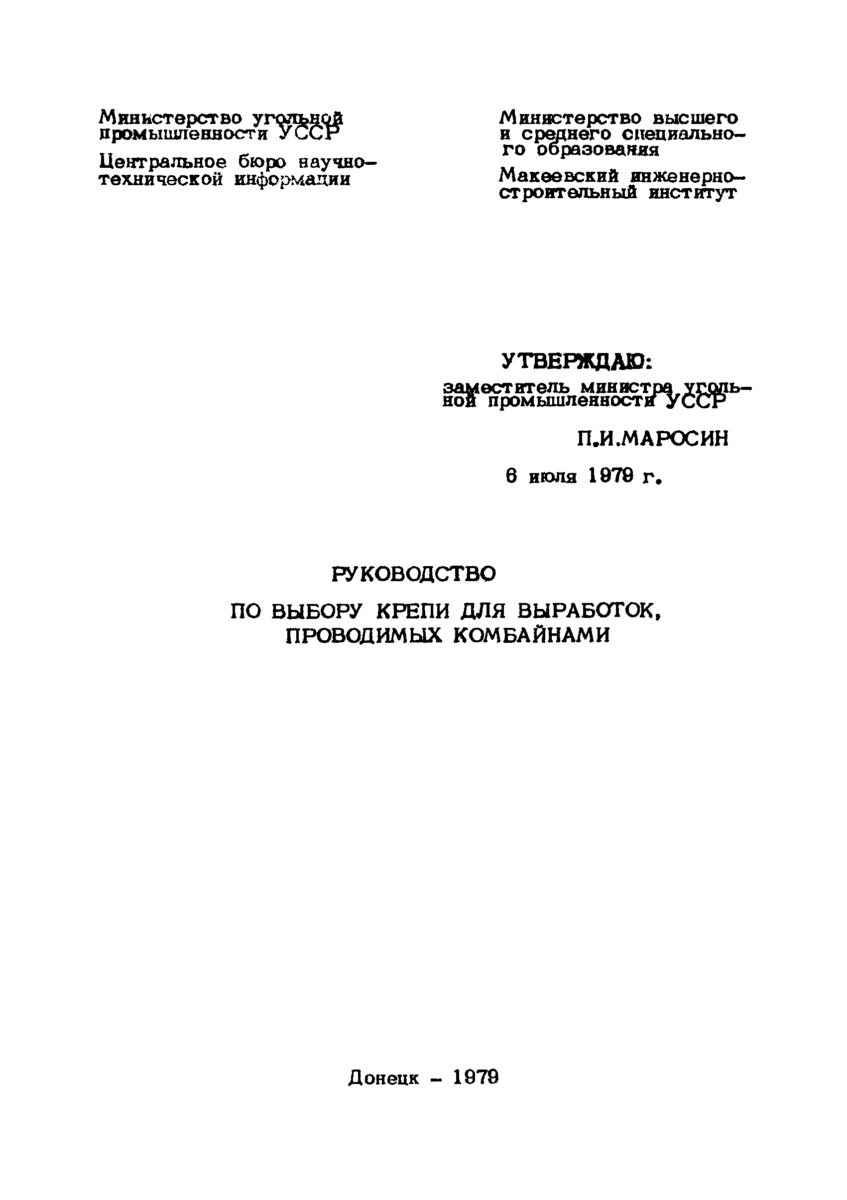 | Утверждён: | 06.07.1979 Министерство угольной промышленности СССР (USSR Ministry of the Coal Industry )