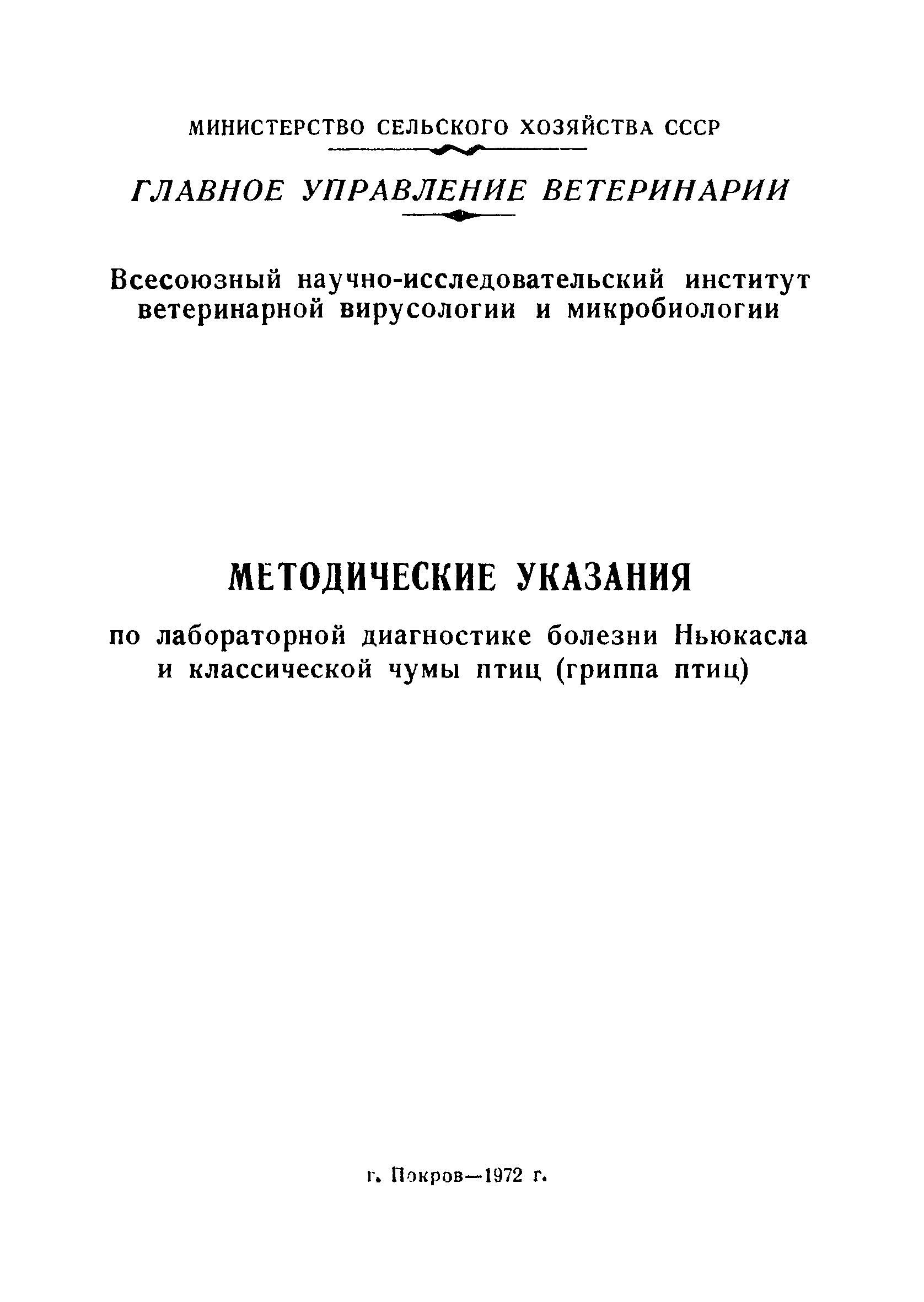 | | Утверждён: | 01.02.1972 Главное управление ветеринарии Министерства сельского хозяйства СССР
