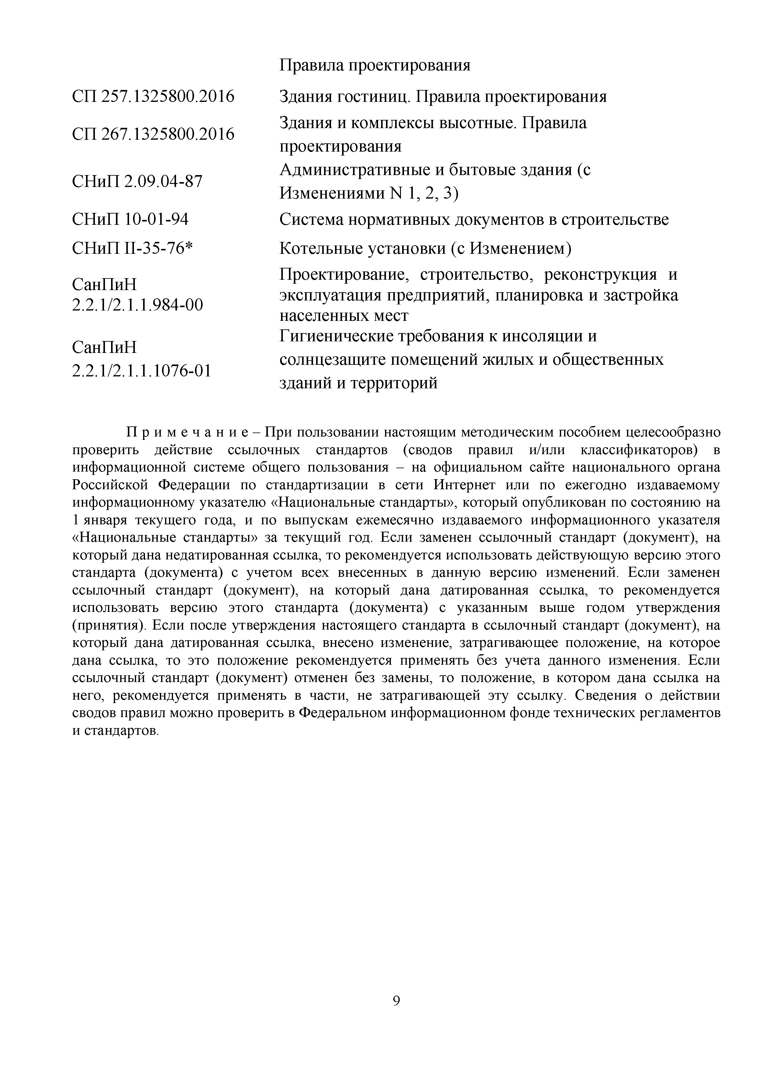 Документ применяется при проектировании и строительстве жилых, общественных и производственных зданий, и планировочной организации участков их строительства. Методическое пособие не распространяется на другие области деятельности.