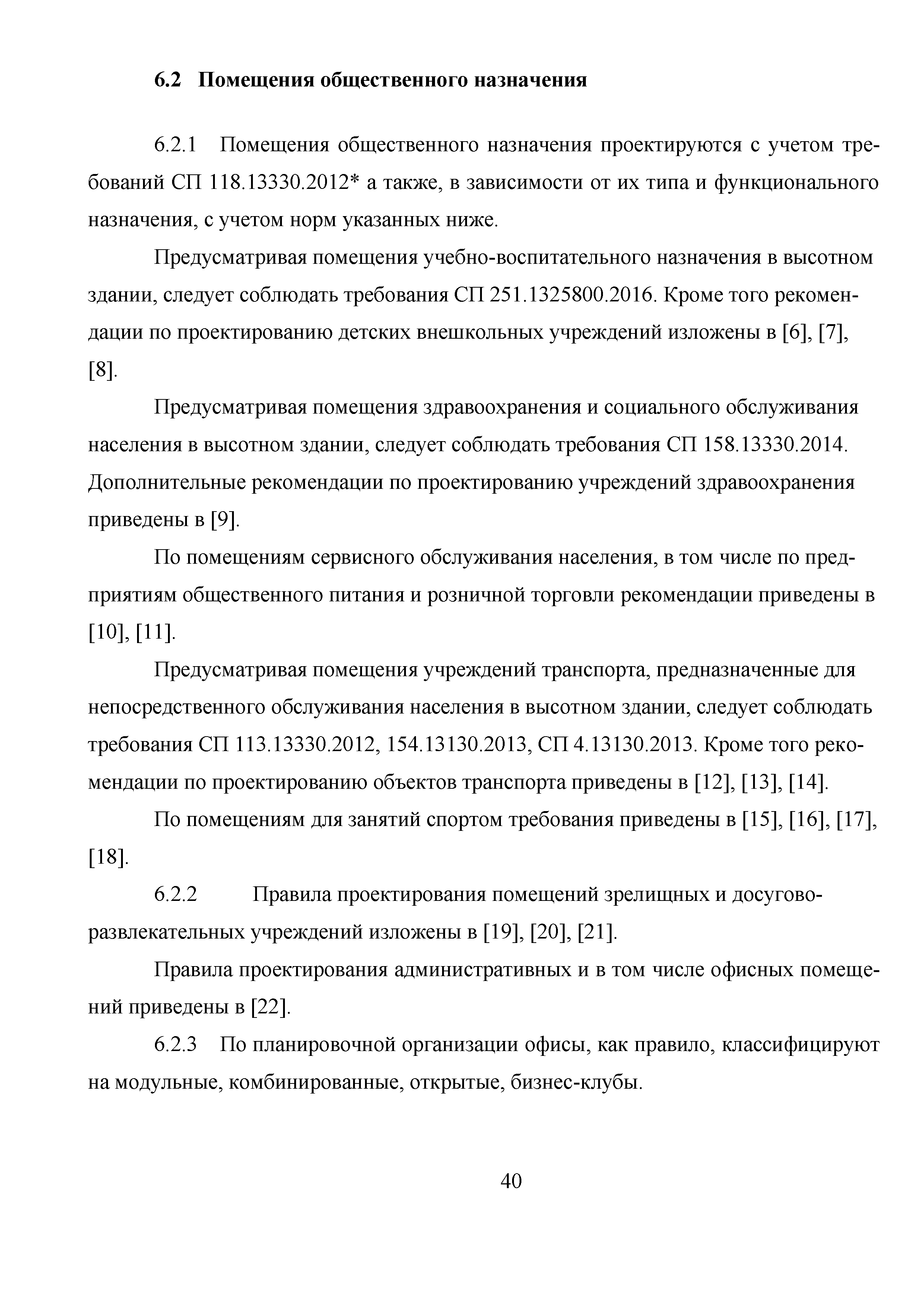| Область применения: | Методическое пособие предназначено для специалистов и руководителей проектно-изыскательских и строительных организаций, учреждений и служб заказчика (инвестора) и других заинтересованных организаций, с целью обеспечения их организационно-техническими материалами, которые позволяют разрабатывать и применять высокоэффективные проектные решения зданий, обеспечивающие качество и конкурентоспособность этих объектов. Методическое пособие включает рекомендации и разъяснения по применению возможных архитектурно-планировочных решений высотных зданий и комплексов. |