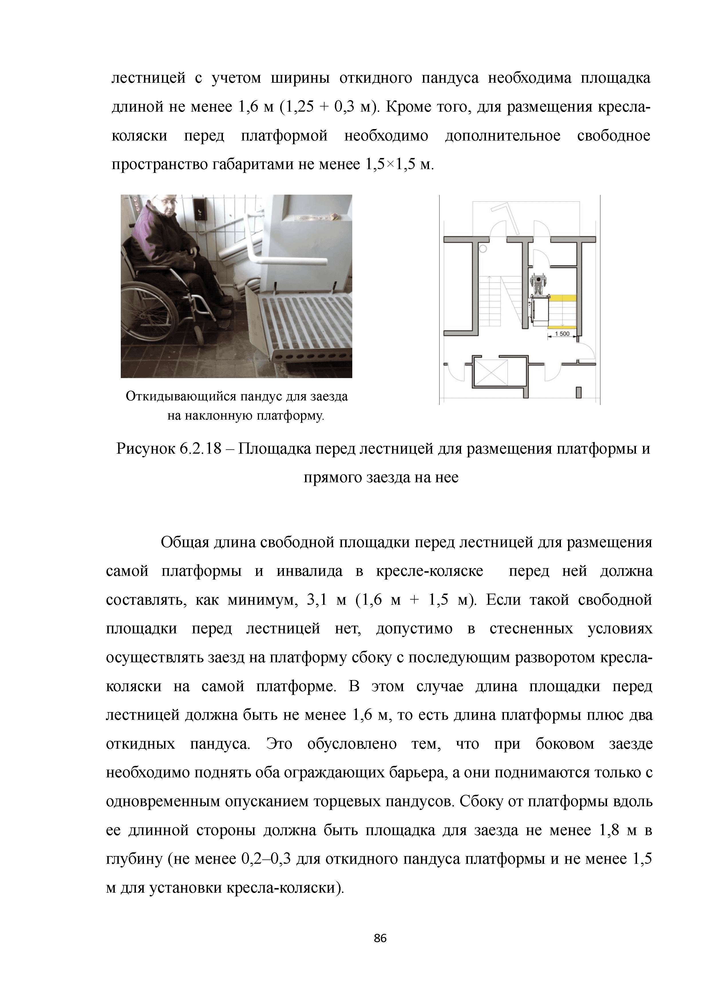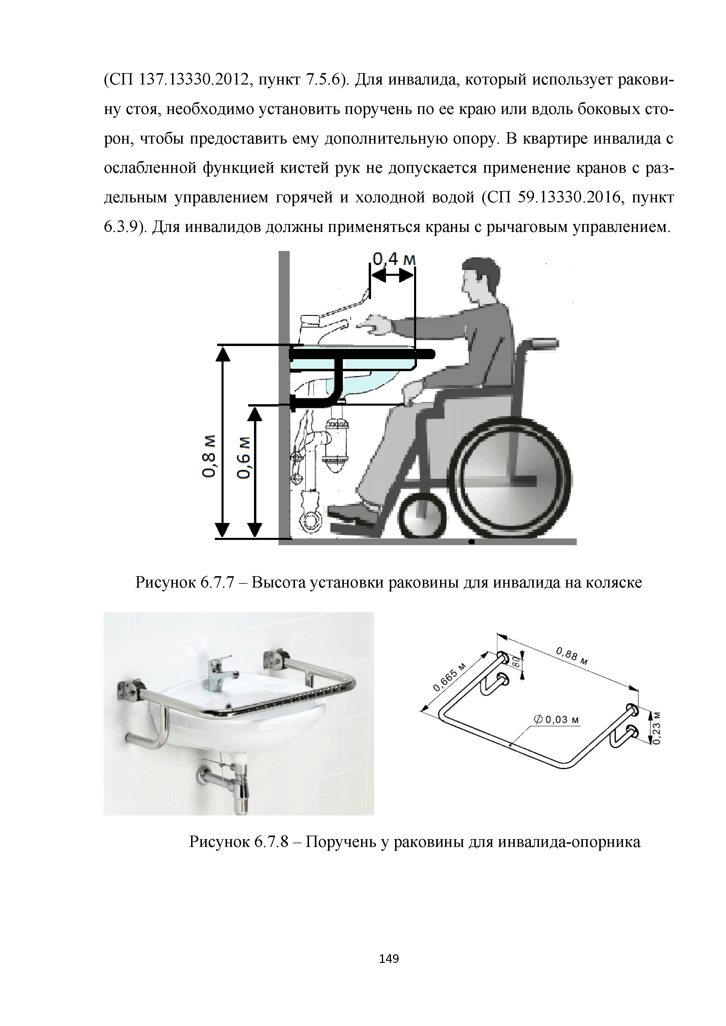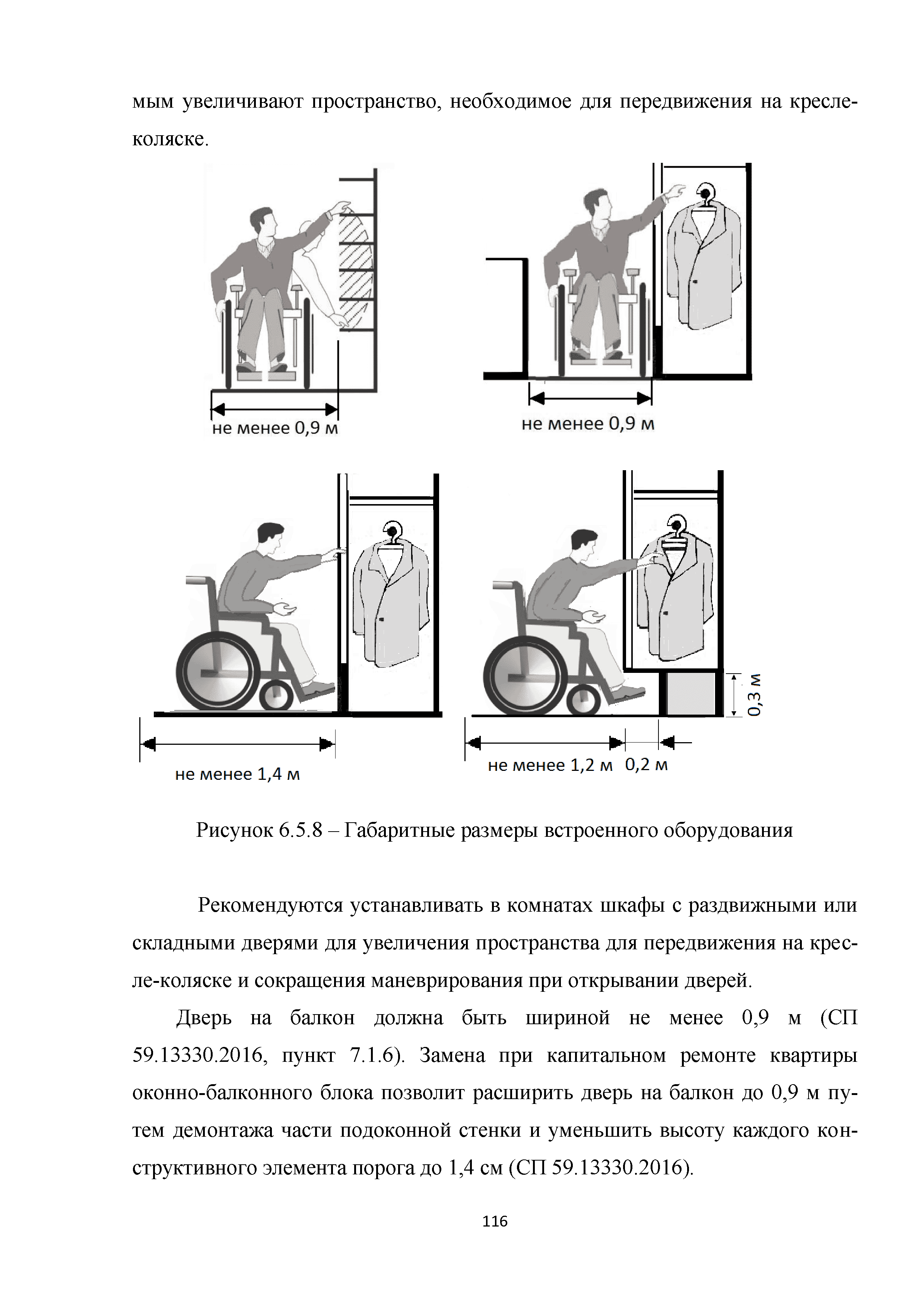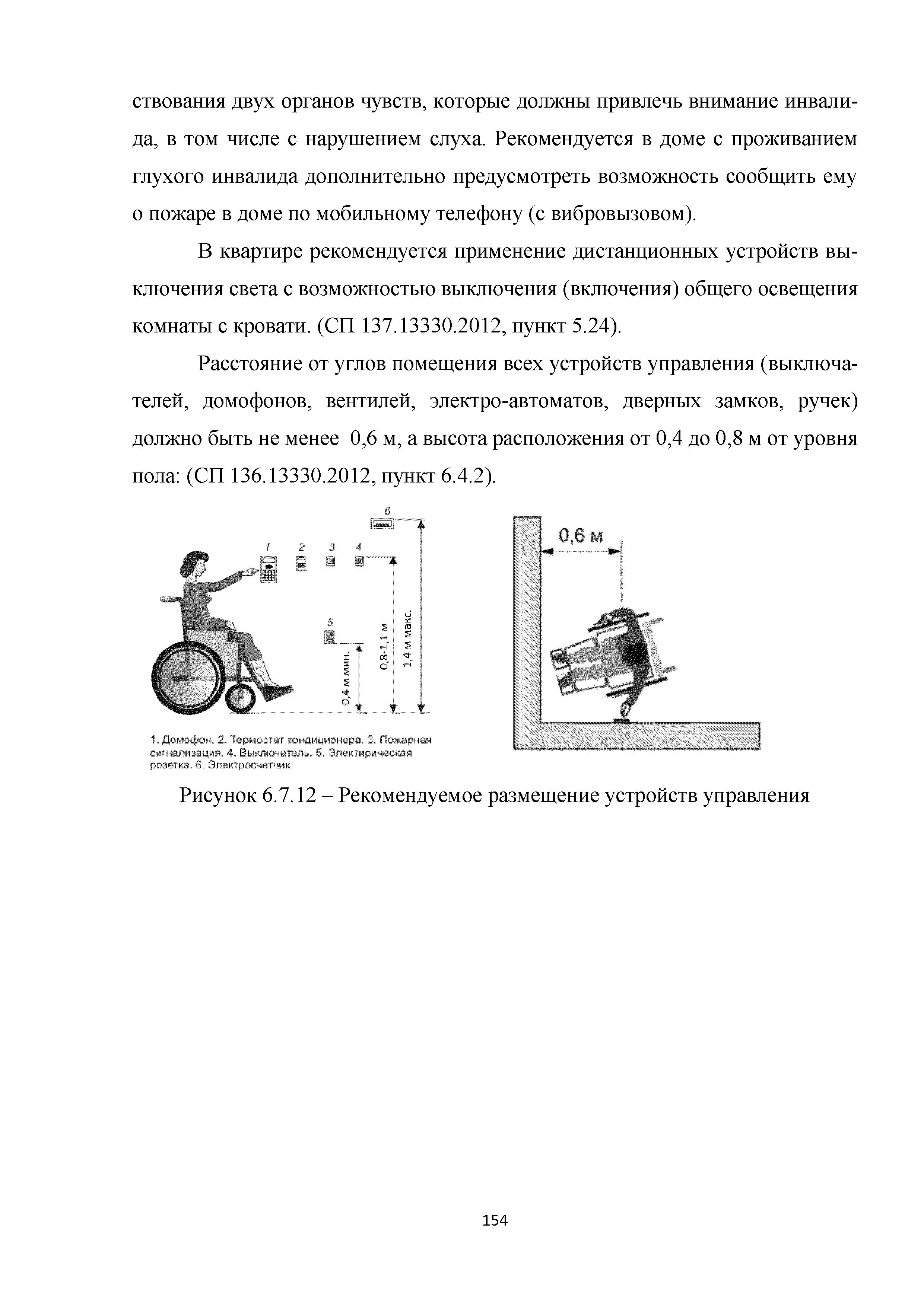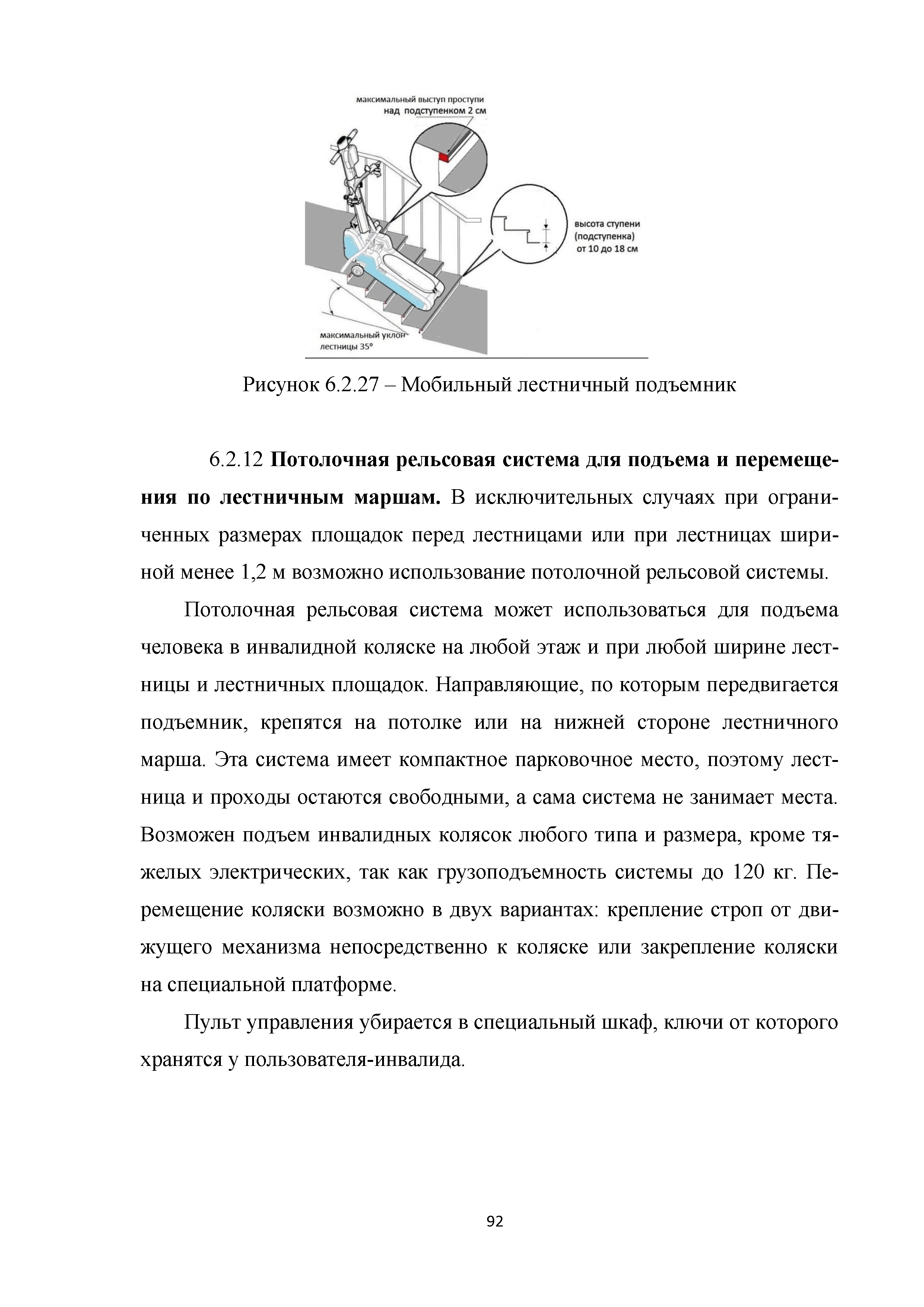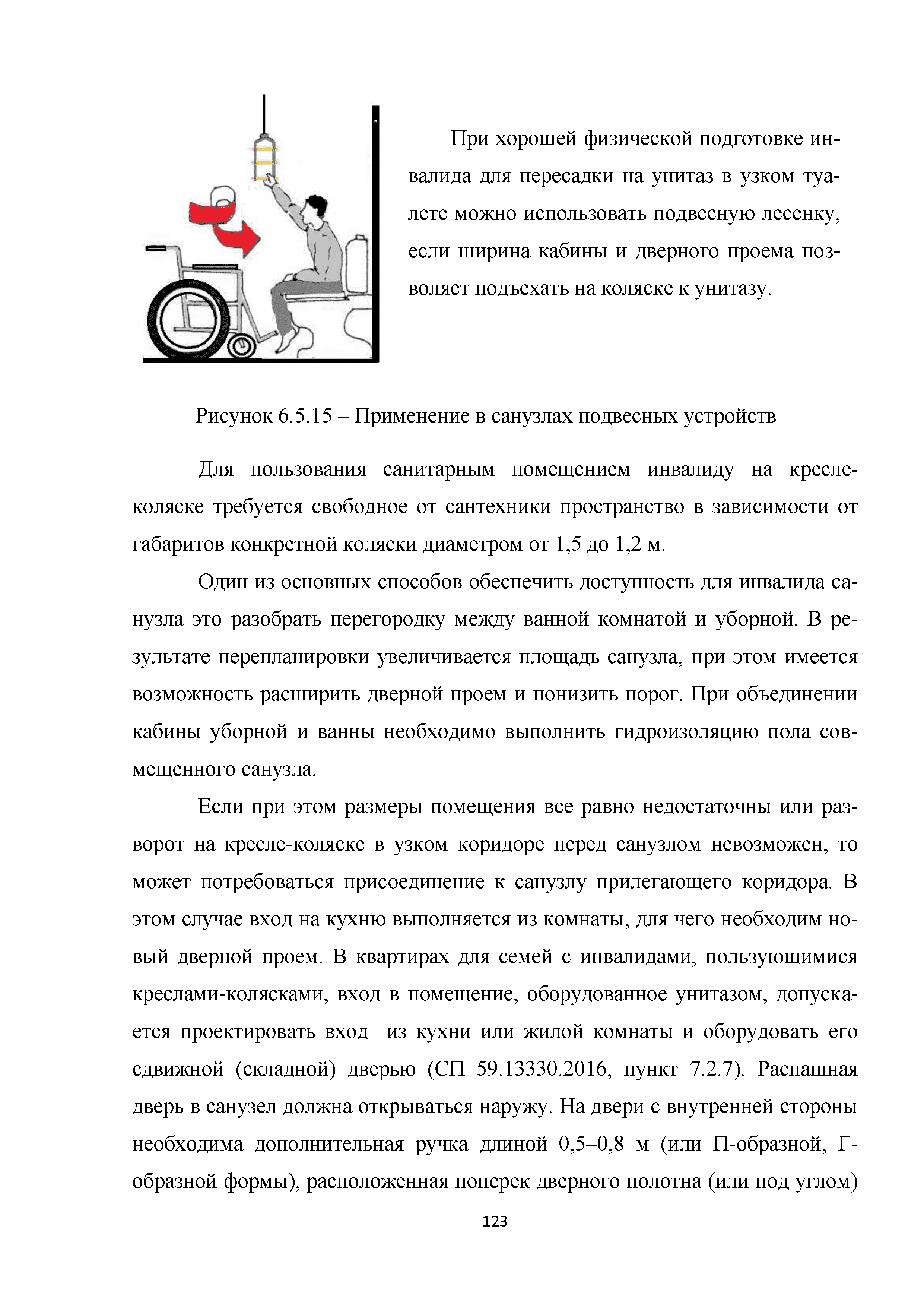 | | Нормативные ссылки: |   МДС 35-3.2000 «Рекомендации по проектированию окружающей среды, зданий и сооружений с учетом потребностей инвалидов и других маломобильных групп населения. Вып. 3. "Жилые здания и комплексы"»  Федеральный закон 181-ФЗ «О социальной защите инвалидов в Российской Федерации» ГОСТ Р 51633-2000 «Устройства и приспособления реабилитационные, используемые инвалидами в жилых помещениях. Общие технические требования» Кодекс «Жилищный кодекс Российской Федерации»  ПБ 10-403-01 «Правила устройства и безопасной эксплуатации платформ подъемных для инвалидов»  ГОСТ Р 52289-2004 «Технические средства организации дорожного движения. Правила применения дорожных знаков, разметки, светофоров, дорожных ограждений и направляющих устройств»  ГОСТ Р 52290-2004 «Технические средства организации дорожного движения. Знаки дорожные. Общие технические требования»  ГОСТ Р 52875-2007 «Указатели тактильные наземные для инвалидов по зрению. Технические требования»  Технический регламент «Технический регламент о требованиях пожарной безопасности»  Федеральный закон 102-ФЗ «Об обеспечении единства измерений» Технический регламент «Технический регламент о безопасности зданий и сооружений»  СП 1.13130.2009 «Системы противопожарной защиты. Эвакуационные пути и выходы»  ГОСТ Р 12.2.143-2009 «Система стандартов безопасности труда. Системы фотолюминесцентные эвакуационные. Требования и методы контроля»  СП 137.13330.2012 «Жилая среда с планировочными элементами, доступными инвалидам. Правила проектирования»  СП 136.13330.2012 «Здания и сооружения. Общие положения проектирования с учетом доступности для маломобильных групп населения» ГОСТ Р 55641-2013 «Платформы подъемные для инвалидов и других маломобильных групп населения. Диспетчерский контроль. Общие технические требования» ГОСТ Р 55555-2013 «Платформы подъемные для инвалидов и других маломобильных групп населения. Требования безопасности и доступности. Часть 1. Платформы подъемные с вертикальным перемещением» ГОСТ Р 55556-2013 «Платформы подъемные для инвалидов и других маломобильных групп населения. Требования безопасности и доступности. Часть 2. Платформы подъемные с наклонным перемещением» ГОСТ Р 55642-2013 «Платформы подъемные для инвалидов и других маломобильных групп населения. Правила и методы исследований (испытаний) и измерений. Правила отбора образцов» ГОСТ Р 51671-2015 «Средства связи и информации технические общего пользования, доступные для инвалидов. Классификация. Требования доступности и безопасности»  ГОСТ 33652-2015 «Лифты пассажирские. Технические требования доступности, включая доступность для инвалидов и других маломобильных групп населения»  ГОСТ 12.4.026-2015 «Система стандартов безопасности труда. Цвета сигнальные, знаки безопасности и разметка сигнальная. Назначение и правила применения. Общие технические требования и характеристики. Методы испытаний»  Постановление 649 «О мерах по приспособлению жилых помещений и общего имущества в многоквартирном доме с учетом потребностей инвалидов» Типовые проектные решения «Альбом типовых проектных решений по переоборудованию объектов жилого фонда для проживания инвалидов и семей, имеющих детей-инвалидов»  СП 59.13330.2016 «Доступность зданий и сооружений для маломобильных групп населения»  «Акт обследования жилого помещения инвалида и общего имущества в многоквартир