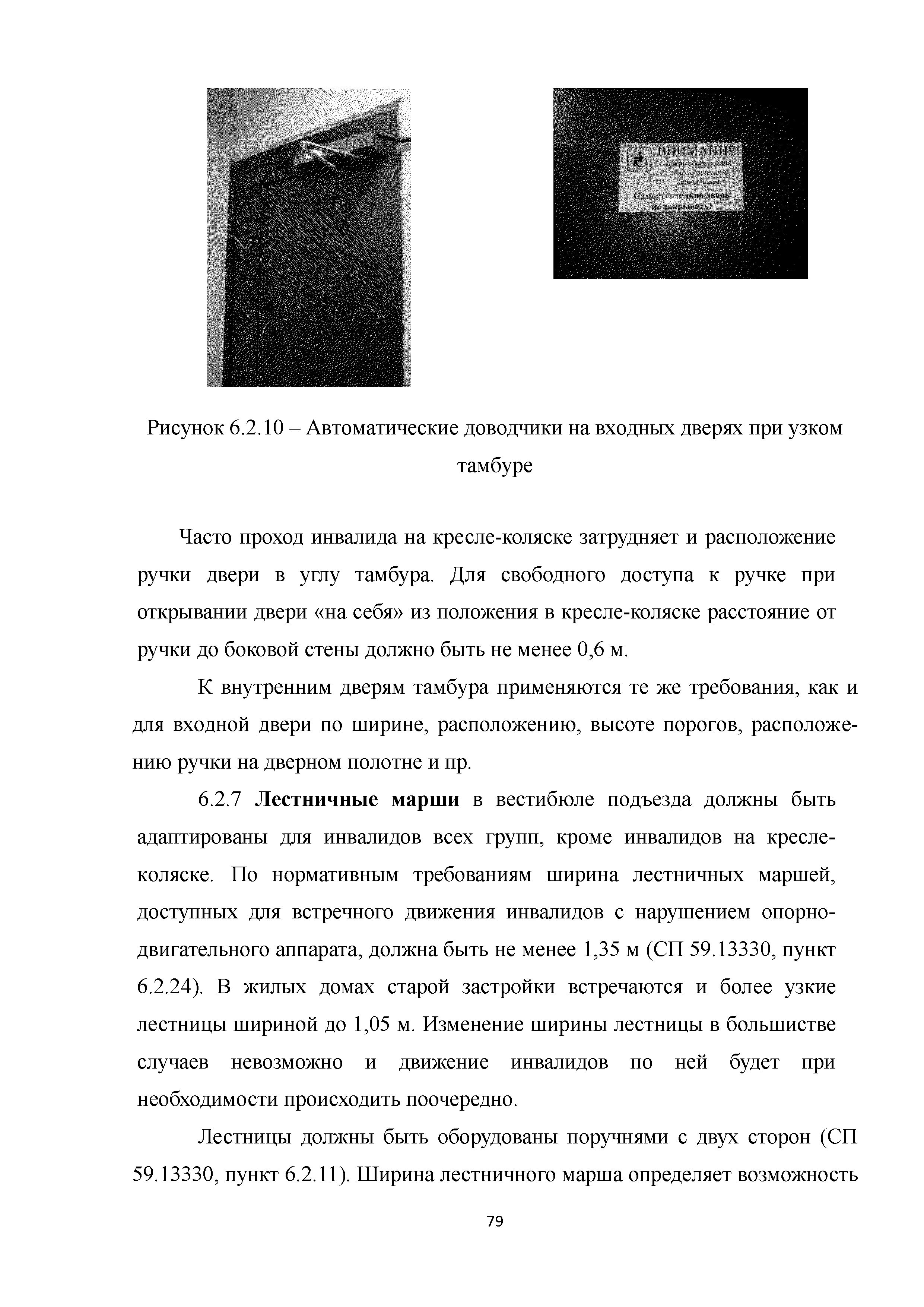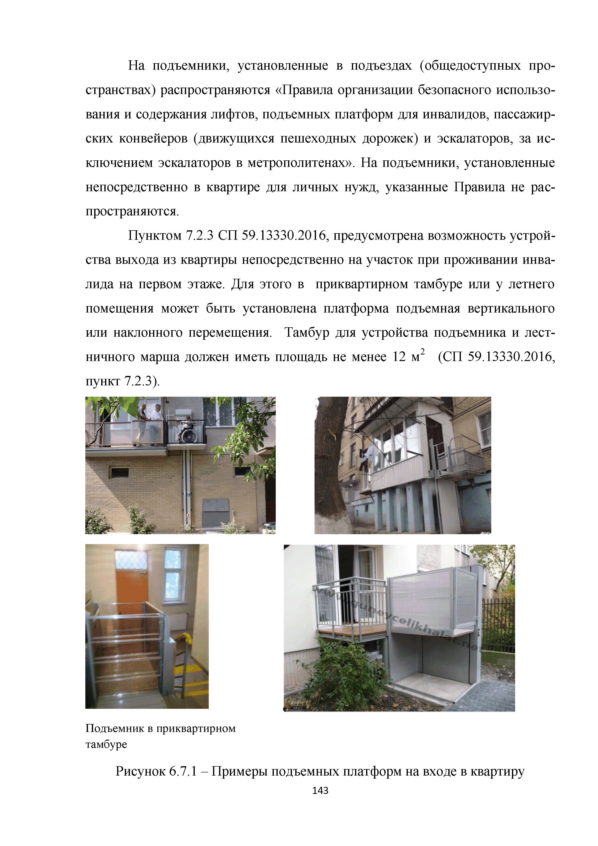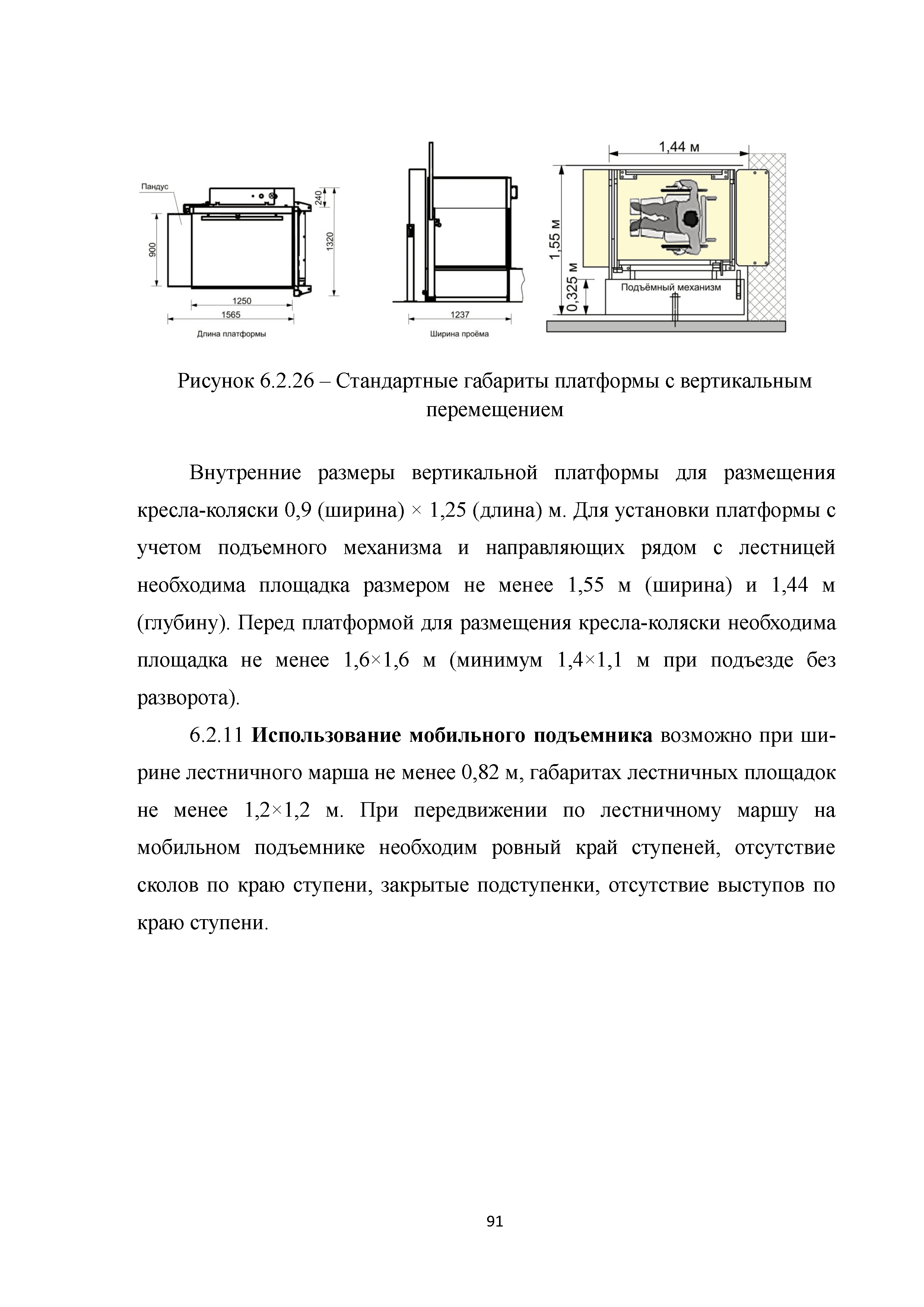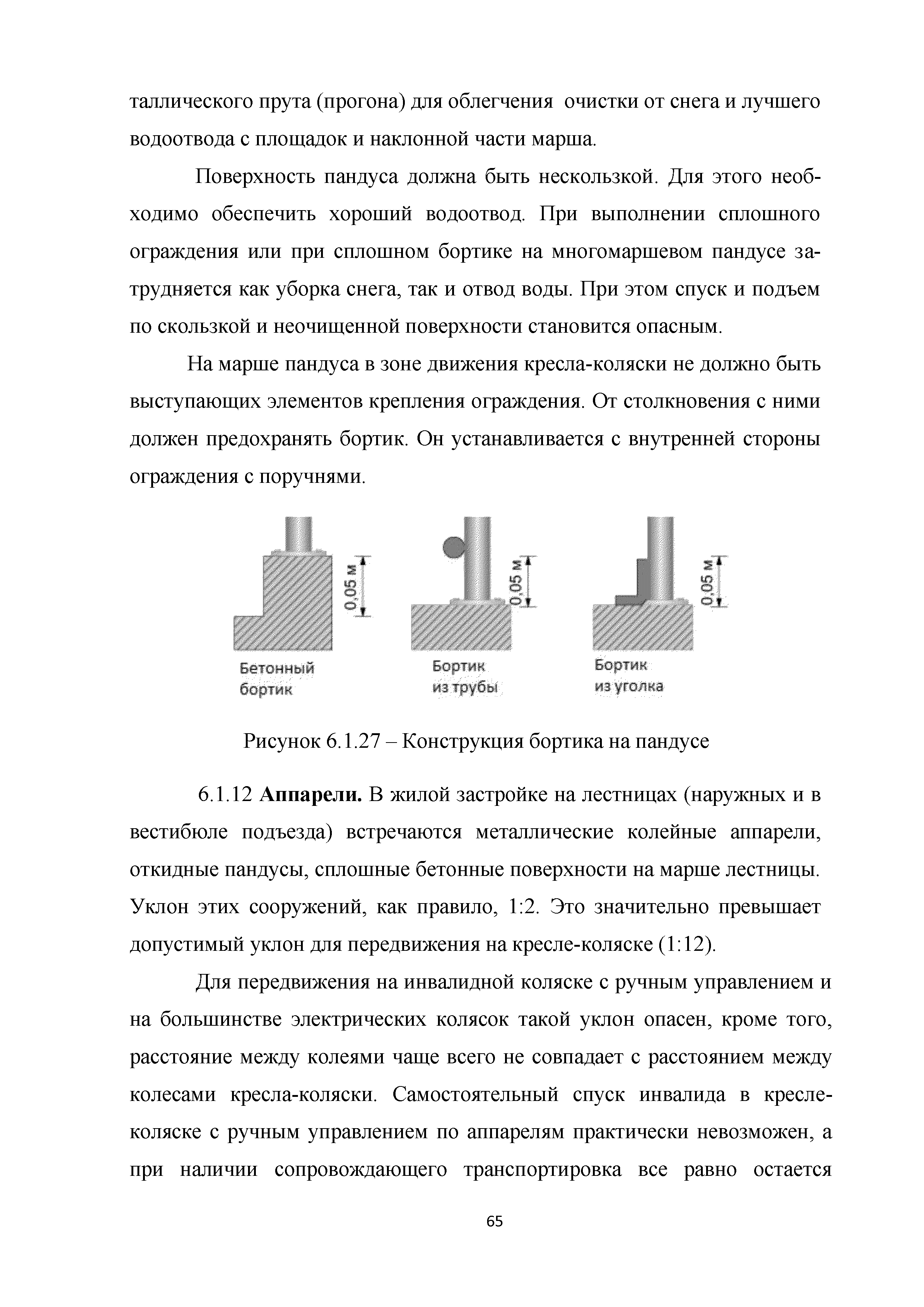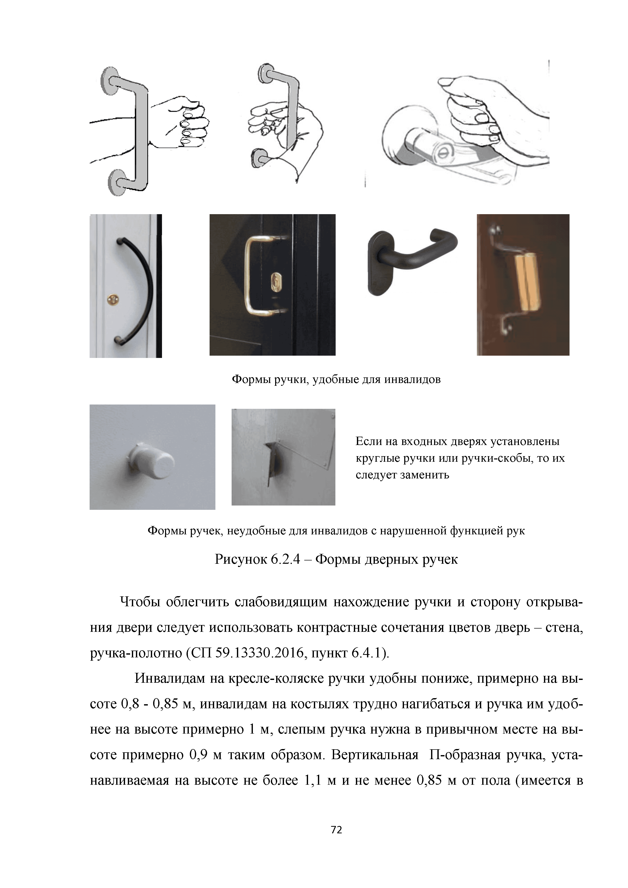 | | Нормативные ссылки: |   МДС 35-3.2000 «Рекомендации по проектированию окружающей среды, зданий и сооружений с учетом потребностей инвалидов и других маломобильных групп населения. Вып. 3. "Жилые здания и комплексы"»  Федеральный закон 181-ФЗ «О социальной защите инвалидов в Российской Федерации» ГОСТ Р 51633-2000 «Устройства и приспособления реабилитационные, используемые инвалидами в жилых помещениях. Общие технические требования» Кодекс «Жилищный кодекс Российской Федерации»  ПБ 10-403-01 «Правила устройства и безопасной эксплуатации платформ подъемных для инвалидов»  ГОСТ Р 52289-2004 «Технические средства организации дорожного движения. Правила применения дорожных знаков, разметки, светофоров, дорожных ограждений и направляющих устройств»  ГОСТ Р 52290-2004 «Технические средства организации дорожного движения. Знаки дорожные. Общие технические требования»  ГОСТ Р 52875-2007 «Указатели тактильные наземные для инвалидов по зрению. Технические требования»  Технический регламент «Технический регламент о требованиях пожарной безопасности»  Федеральный закон 102-ФЗ «Об обеспечении единства измерений» Технический регламент «Технический регламент о безопасности зданий и сооружений»  СП 1.13130.2009 «Системы противопожарной защиты. Эвакуационные пути и выходы»  ГОСТ Р 12.2.143-2009 «Система стандартов безопасности труда. Системы фотолюминесцентные эвакуационные. Требования и методы контроля»  СП 137.13330.2012 «Жилая среда с планировочными элементами, доступными инвалидам. Правила проектирования»  СП 136.13330.2012 «Здания и сооружения. Общие положения проектирования с учетом доступности для маломобильных групп населения» ГОСТ Р 55641-2013 «Платформы подъемные для инвалидов и других маломобильных групп населения. Диспетчерский контроль. Общие технические требования» ГОСТ Р 55555-2013 «Платформы подъемные для инвалидов и других маломобильных групп населения. Требования безопасности и доступности. Часть 1. Платформы подъемные с вертикальным перемещением» ГОСТ Р 55556-2013 «Платформы подъемные для инвалидов и других маломобильных групп населения. Требования безопасности и доступности. Часть 2. Платформы подъемные с наклонным перемещением» ГОСТ Р 55642-2013 «Платформы подъемные для инвалидов и других маломобильных групп населения. Правила и методы исследований (испытаний) и измерений. Правила отбора образцов» ГОСТ Р 51671-2015 «Средства связи и информации технические общего пользования, доступные для инвалидов. Классификация. Требования доступности и безопасности»  ГОСТ 33652-2015 «Лифты пассажирские. Технические требования доступности, включая доступность для инвалидов и других маломобильных групп населения»  ГОСТ 12.4.026-2015 «Система стандартов безопасности труда. Цвета сигнальные, знаки безопасности и разметка сигнальная. Назначение и правила применения. Общие технические требования и характеристики. Методы испытаний»  Постановление 649 «О мерах по приспособлению жилых помещений и общего имущества в многоквартирном доме с учетом потребностей инвалидов» Типовые проектные решения «Альбом типовых проектных решений по переоборудованию объектов жилого фонда для проживания инвалидов и семей, имеющих детей-инвалидов»  СП 59.13330.2016 «Доступность зданий и сооружений для маломобильных групп населения»  «Акт обследования жилого помещения инвалида и общего имущества в многоквартир
