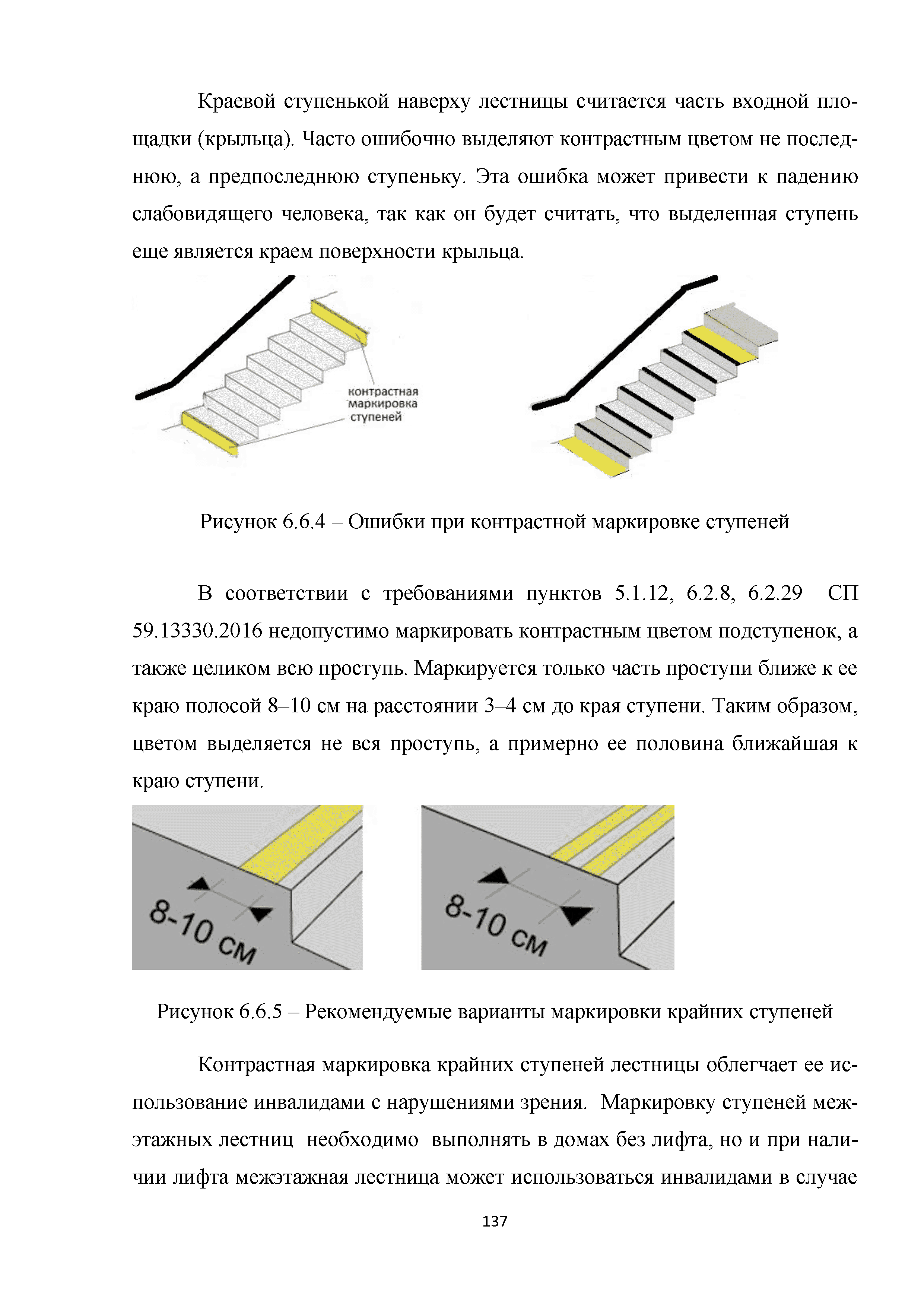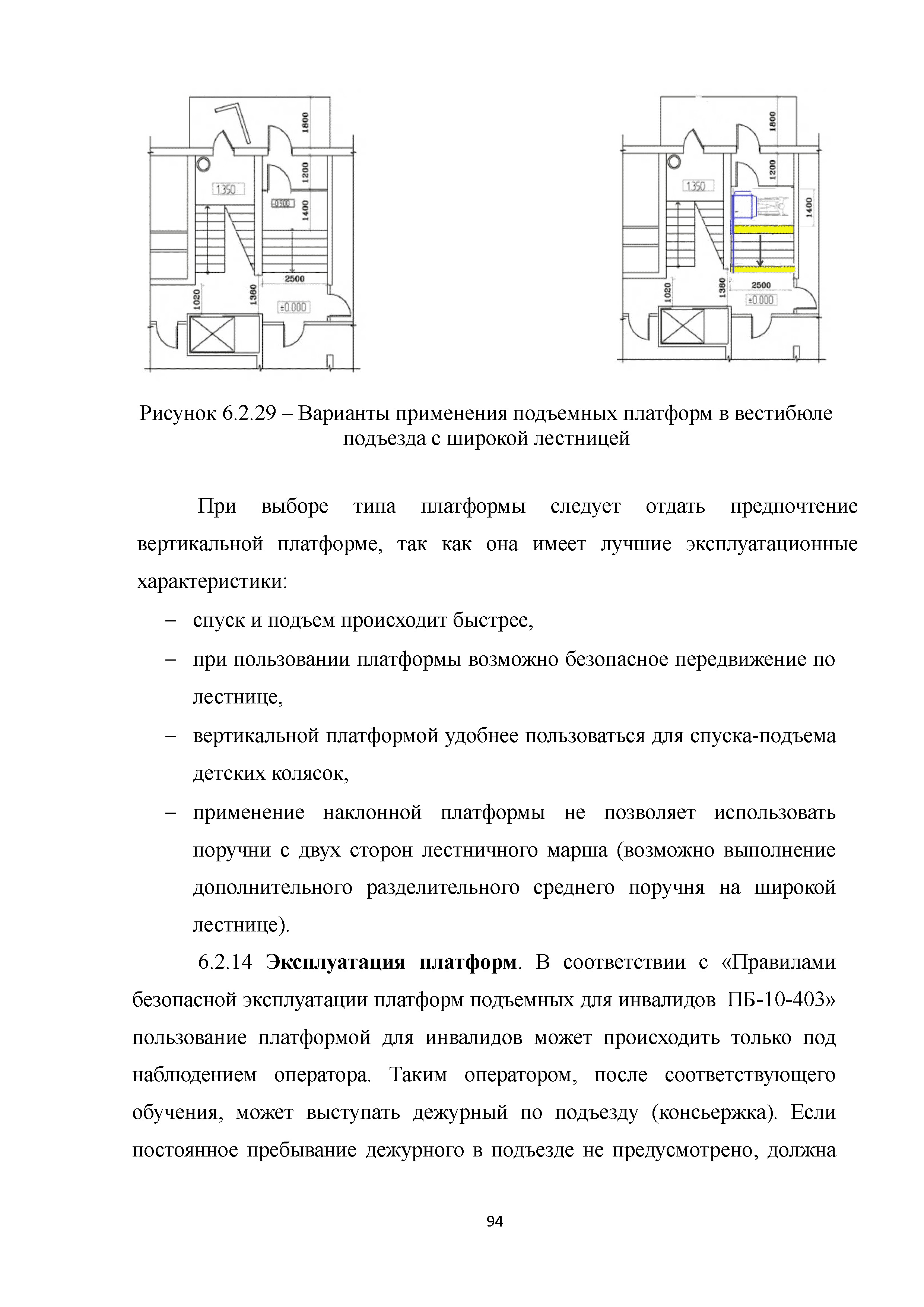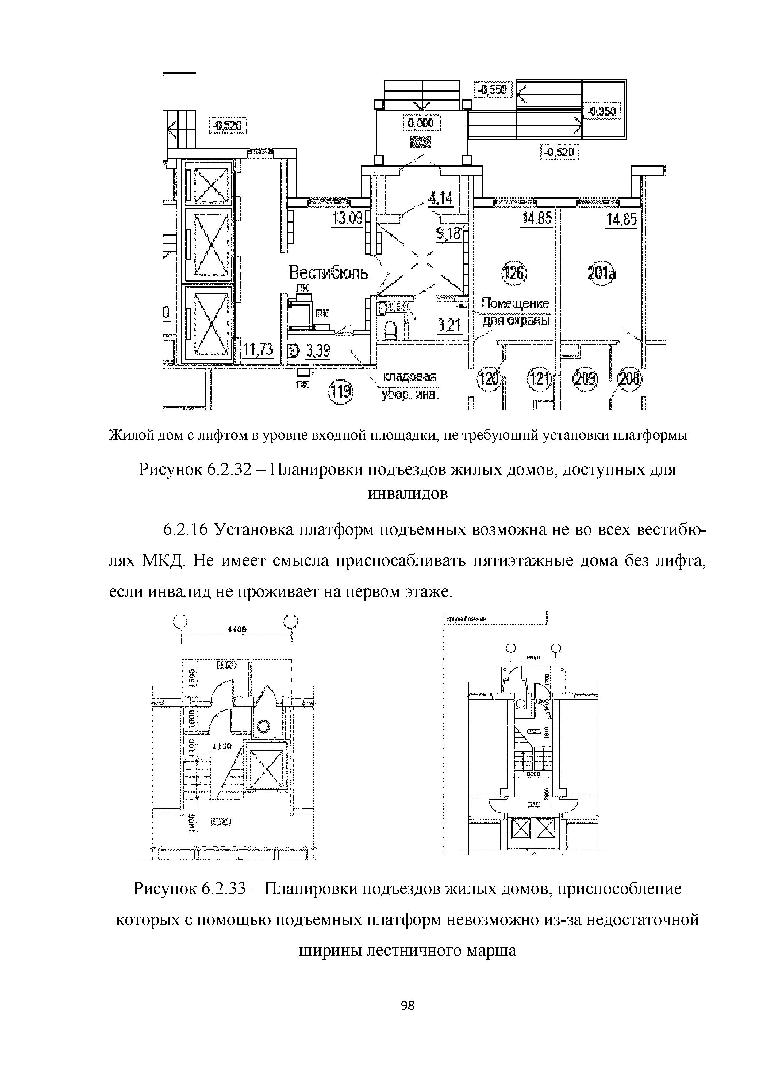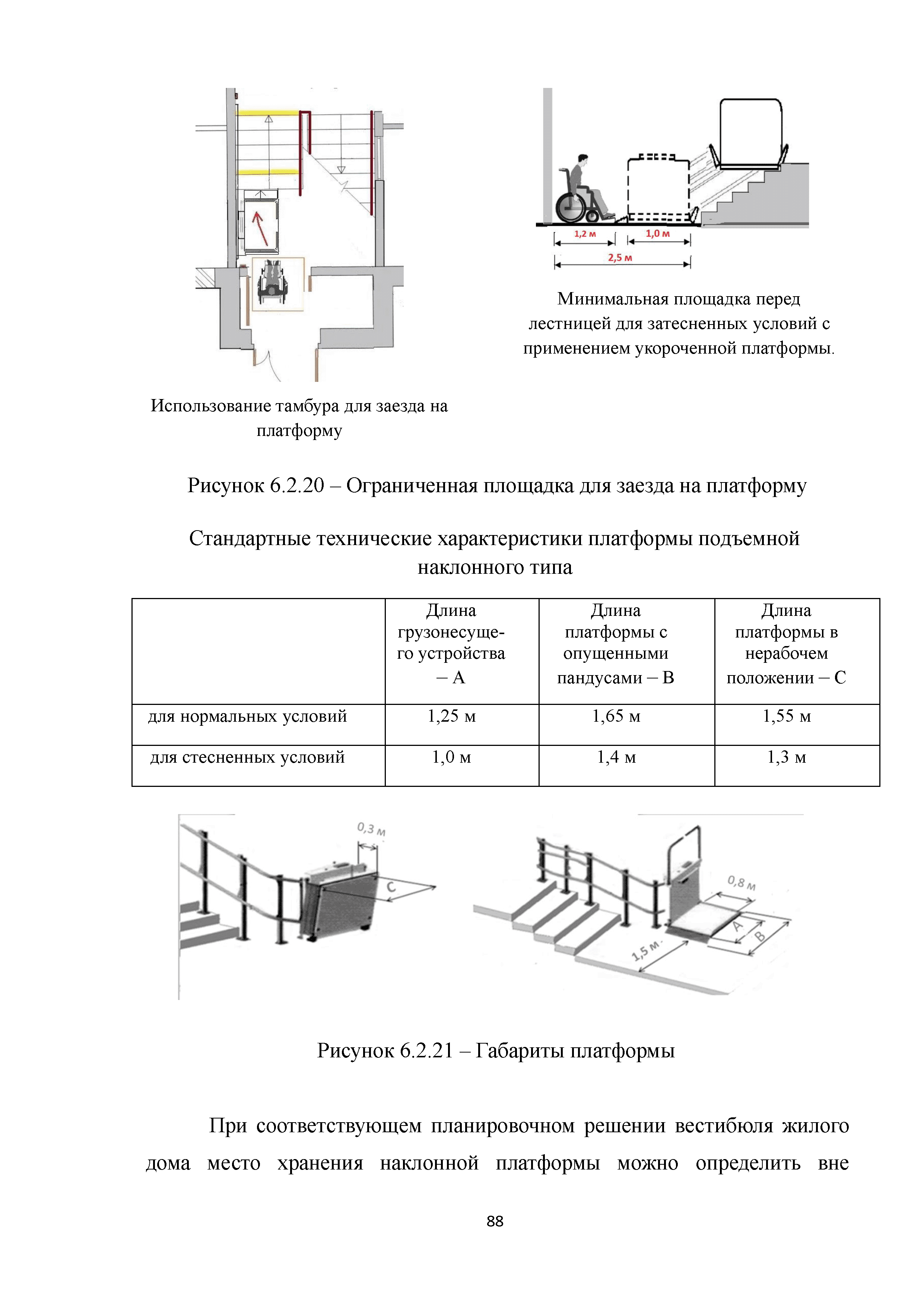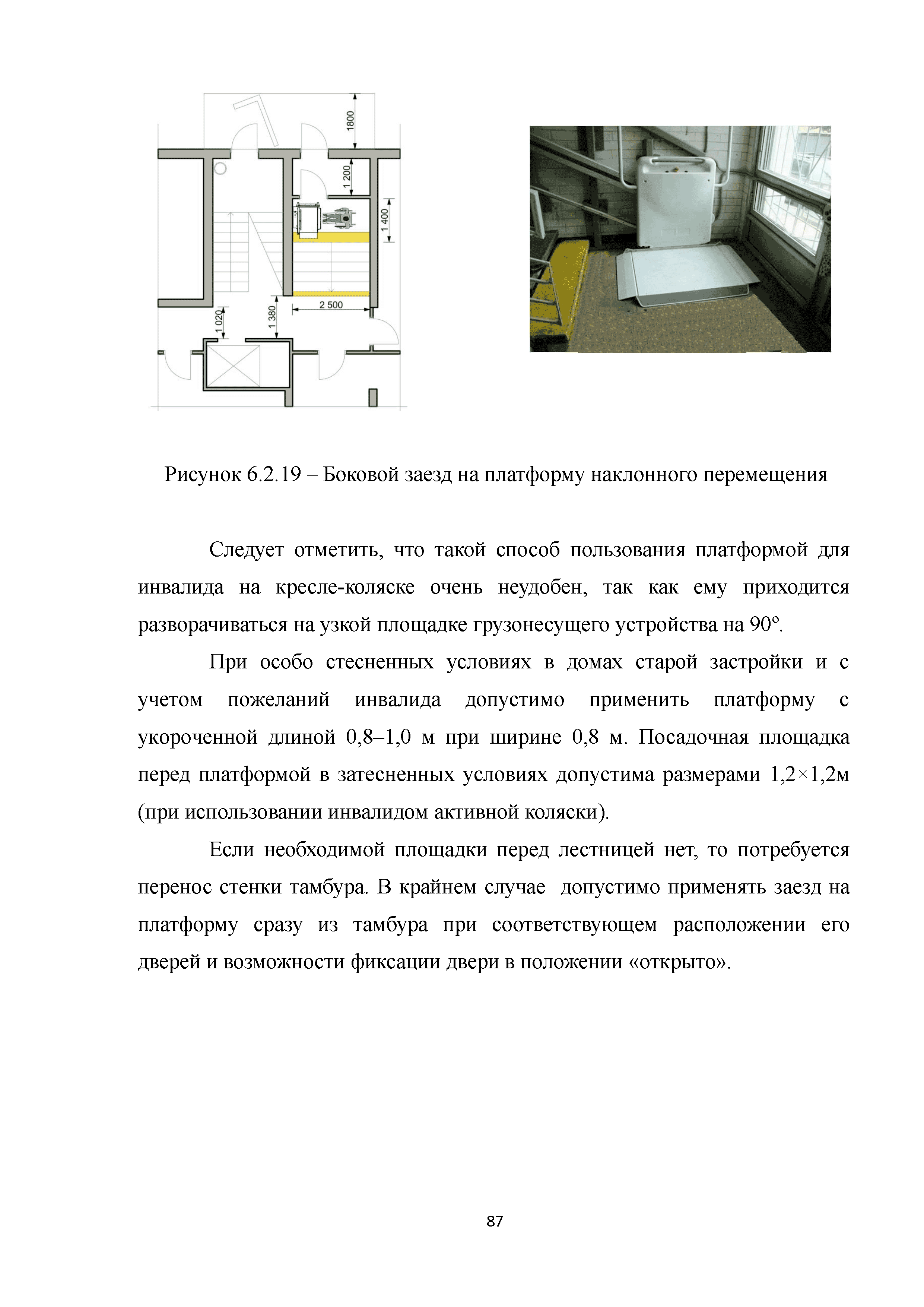| | Нормативные ссылки: |   МДС 35-3.2000 «Рекомендации по проектированию окружающей среды, зданий и сооружений с учетом потребностей инвалидов и других маломобильных групп населения. Вып. 3. "Жилые здания и комплексы"»  Федеральный закон 181-ФЗ «О социальной защите инвалидов в Российской Федерации» ГОСТ Р 51633-2000 «Устройства и приспособления реабилитационные, используемые инвалидами в жилых помещениях. Общие технические требования» Кодекс «Жилищный кодекс Российской Федерации»  ПБ 10-403-01 «Правила устройства и безопасной эксплуатации платформ подъемных для инвалидов»  ГОСТ Р 52289-2004 «Технические средства организации дорожного движения. Правила применения дорожных знаков, разметки, светофоров, дорожных ограждений и направляющих устройств»  ГОСТ Р 52290-2004 «Технические средства организации дорожного движения. Знаки дорожные. Общие технические требования»  ГОСТ Р 52875-2007 «Указатели тактильные наземные для инвалидов по зрению. Технические требования»  Технический регламент «Технический регламент о требованиях пожарной безопасности»  Федеральный закон 102-ФЗ «Об обеспечении единства измерений» Технический регламент «Технический регламент о безопасности зданий и сооружений»  СП 1.13130.2009 «Системы противопожарной защиты. Эвакуационные пути и выходы»  ГОСТ Р 12.2.143-2009 «Система стандартов безопасности труда. Системы фотолюминесцентные эвакуационные. Требования и методы контроля»  СП 137.13330.2012 «Жилая среда с планировочными элементами, доступными инвалидам. Правила проектирования»  СП 136.13330.2012 «Здания и сооружения. Общие положения проектирования с учетом доступности для маломобильных групп населения» ГОСТ Р 55641-2013 «Платформы подъемные для инвалидов и других маломобильных групп населения. Диспетчерский контроль. Общие технические требования» ГОСТ Р 55555-2013 «Платформы подъемные для инвалидов и других маломобильных групп населения. Требования безопасности и доступности. Часть 1. Платформы подъемные с вертикальным перемещением» ГОСТ Р 55556-2013 «Платформы подъемные для инвалидов и других маломобильных групп населения. Требования безопасности и доступности. Часть 2. Платформы подъемные с наклонным перемещением» ГОСТ Р 55642-2013 «Платформы подъемные для инвалидов и других маломобильных групп населения. Правила и методы исследований (испытаний) и измерений. Правила отбора образцов» ГОСТ Р 51671-2015 «Средства связи и информации технические общего пользования, доступные для инвалидов. Классификация. Требования доступности и безопасности»  ГОСТ 33652-2015 «Лифты пассажирские. Технические требования доступности, включая доступность для инвалидов и других маломобильных групп населения»  ГОСТ 12.4.026-2015 «Система стандартов безопасности труда. Цвета сигнальные, знаки безопасности и разметка сигнальная. Назначение и правила применения. Общие технические требования и характеристики. Методы испытаний»  Постановление 649 «О мерах по приспособлению жилых помещений и общего имущества в многоквартирном доме с учетом потребностей инвалидов» Типовые проектные решения «Альбом типовых проектных решений по переоборудованию объектов жилого фонда для проживания инвалидов и семей, имеющих детей-инвалидов»  СП 59.13330.2016 «Доступность зданий и сооружений для маломобильных групп населения»  «Акт обследования жилого помещения инвалида и общего имущества в многоквартир