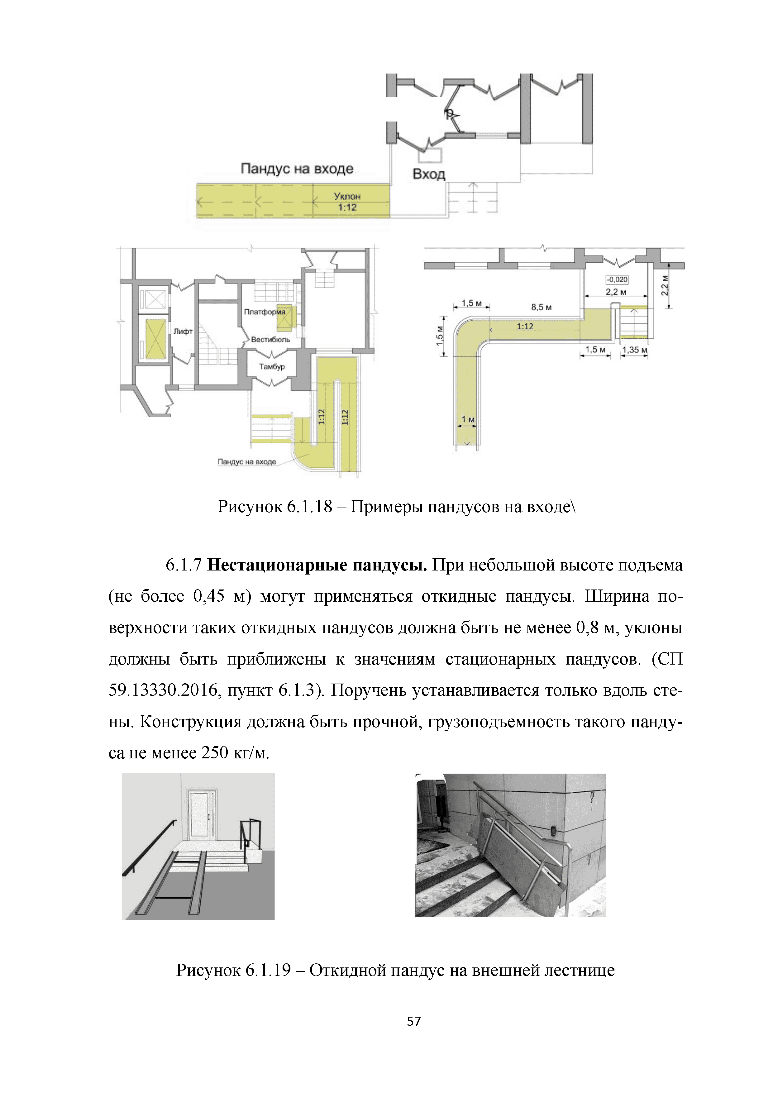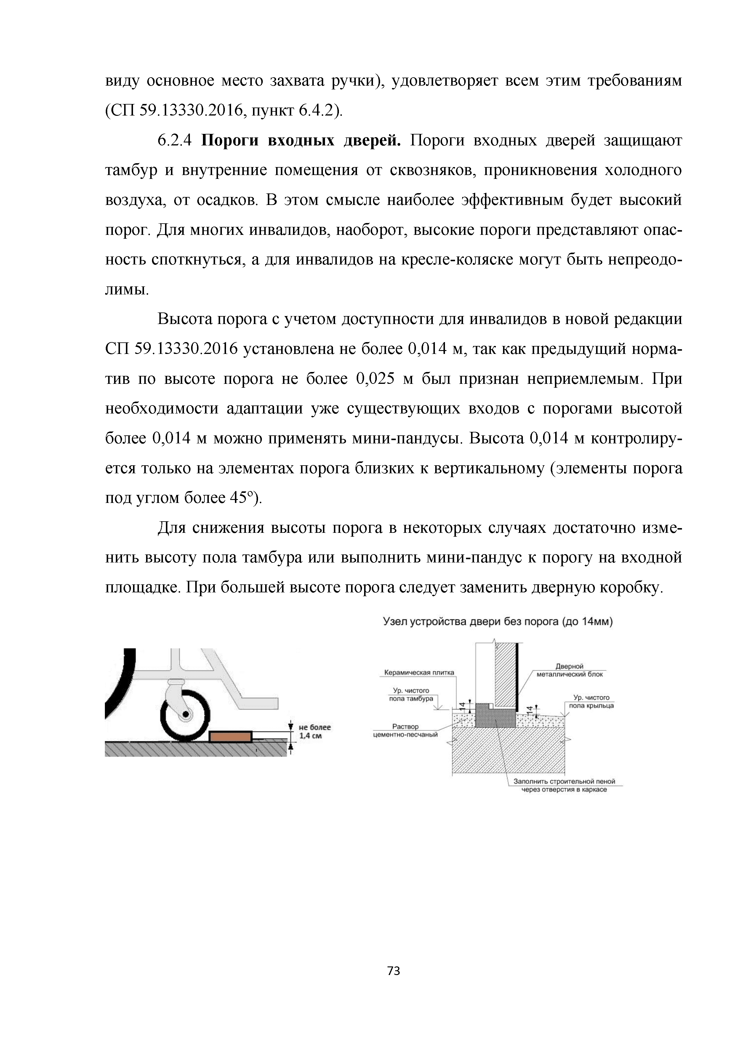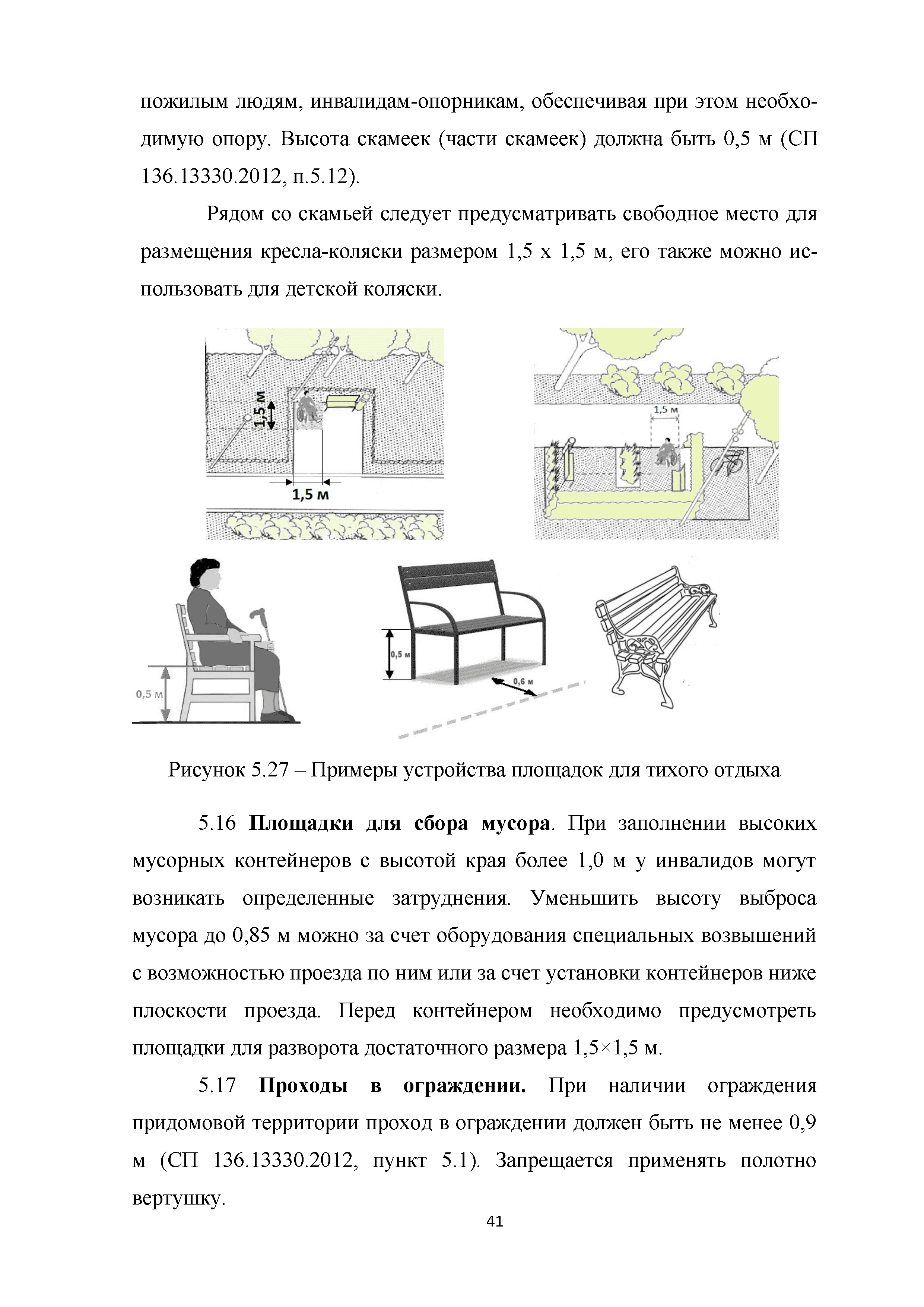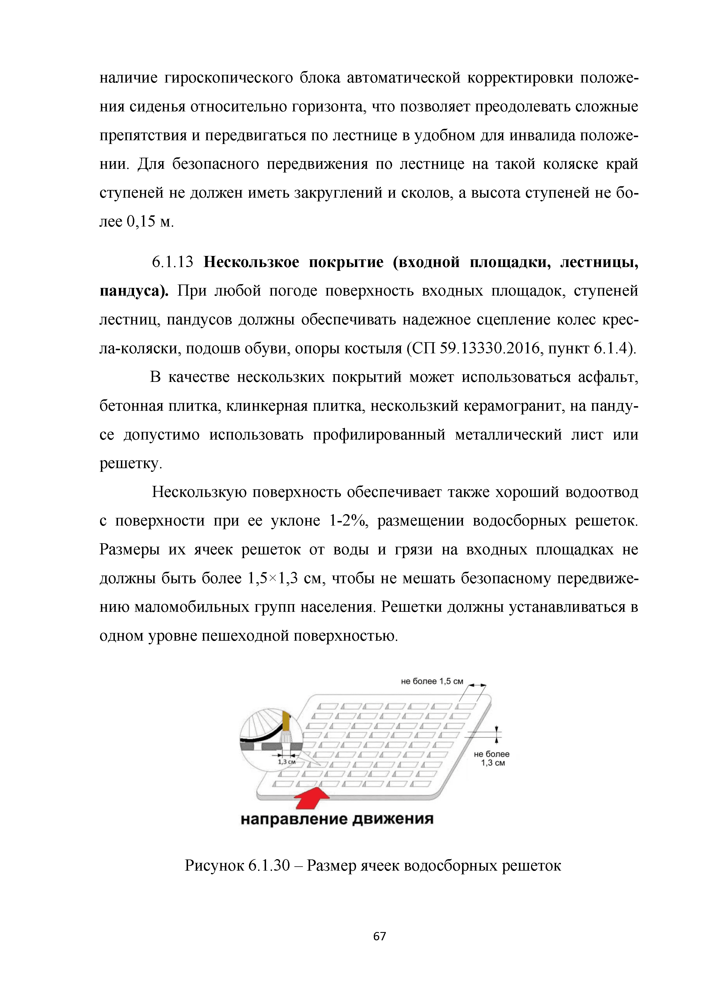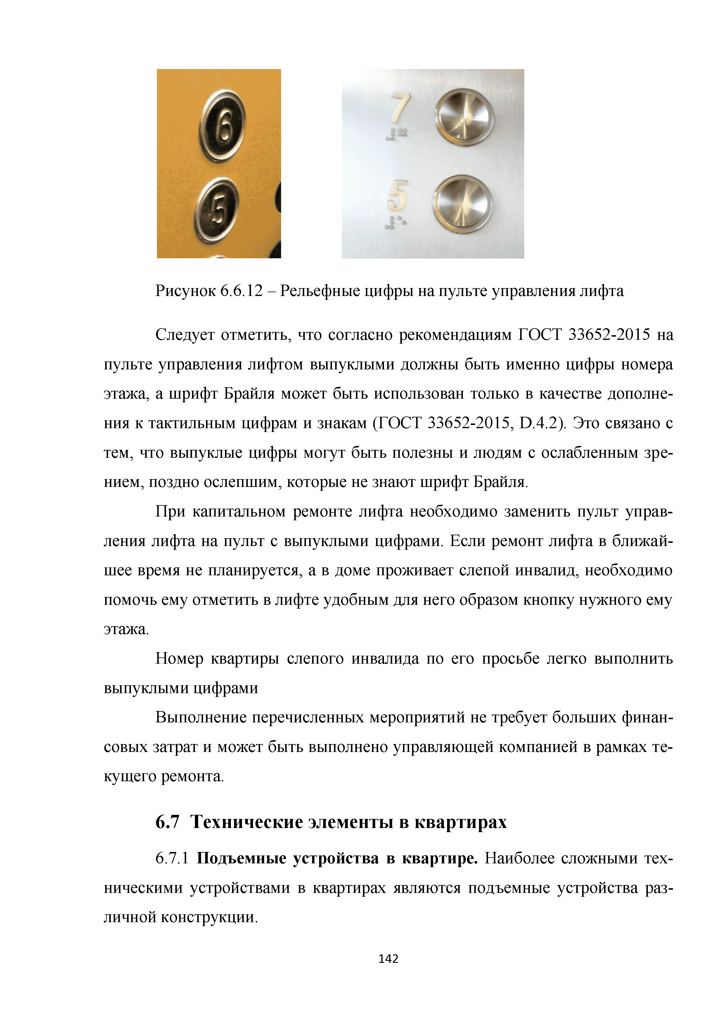 | | Нормативные ссылки: |   МДС 35-3.2000 «Рекомендации по проектированию окружающей среды, зданий и сооружений с учетом потребностей инвалидов и других маломобильных групп населения. Вып. 3. "Жилые здания и комплексы"»  Федеральный закон 181-ФЗ «О социальной защите инвалидов в Российской Федерации» ГОСТ Р 51633-2000 «Устройства и приспособления реабилитационные, используемые инвалидами в жилых помещениях. Общие технические требования» Кодекс «Жилищный кодекс Российской Федерации»  ПБ 10-403-01 «Правила устройства и безопасной эксплуатации платформ подъемных для инвалидов»  ГОСТ Р 52289-2004 «Технические средства организации дорожного движения. Правила применения дорожных знаков, разметки, светофоров, дорожных ограждений и направляющих устройств»  ГОСТ Р 52290-2004 «Технические средства организации дорожного движения. Знаки дорожные. Общие технические требования»  ГОСТ Р 52875-2007 «Указатели тактильные наземные для инвалидов по зрению. Технические требования»  Технический регламент «Технический регламент о требованиях пожарной безопасности»  Федеральный закон 102-ФЗ «Об обеспечении единства измерений» Технический регламент «Технический регламент о безопасности зданий и сооружений»  СП 1.13130.2009 «Системы противопожарной защиты. Эвакуационные пути и выходы»  ГОСТ Р 12.2.143-2009 «Система стандартов безопасности труда. Системы фотолюминесцентные эвакуационные. Требования и методы контроля»  СП 137.13330.2012 «Жилая среда с планировочными элементами, доступными инвалидам. Правила проектирования»  СП 136.13330.2012 «Здания и сооружения. Общие положения проектирования с учетом доступности для маломобильных групп населения» ГОСТ Р 55641-2013 «Платформы подъемные для инвалидов и других маломобильных групп населения. Диспетчерский контроль. Общие технические требования» ГОСТ Р 55555-2013 «Платформы подъемные для инвалидов и других маломобильных групп населения. Требования безопасности и доступности. Часть 1. Платформы подъемные с вертикальным перемещением» ГОСТ Р 55556-2013 «Платформы подъемные для инвалидов и других маломобильных групп населения. Требования безопасности и доступности. Часть 2. Платформы подъемные с наклонным перемещением» ГОСТ Р 55642-2013 «Платформы подъемные для инвалидов и других маломобильных групп населения. Правила и методы исследований (испытаний) и измерений. Правила отбора образцов» ГОСТ Р 51671-2015 «Средства связи и информации технические общего пользования, доступные для инвалидов. Классификация. Требования доступности и безопасности»  ГОСТ 33652-2015 «Лифты пассажирские. Технические требования доступности, включая доступность для инвалидов и других маломобильных групп населения»  ГОСТ 12.4.026-2015 «Система стандартов безопасности труда. Цвета сигнальные, знаки безопасности и разметка сигнальная. Назначение и правила применения. Общие технические требования и характеристики. Методы испытаний»  Постановление 649 «О мерах по приспособлению жилых помещений и общего имущества в многоквартирном доме с учетом потребностей инвалидов» Типовые проектные решения «Альбом типовых проектных решений по переоборудованию объектов жилого фонда для проживания инвалидов и семей, имеющих детей-инвалидов»  СП 59.13330.2016 «Доступность зданий и сооружений для маломобильных групп населения»  «Акт обследования жилого помещения инвалида и общего имущества в многоквартир