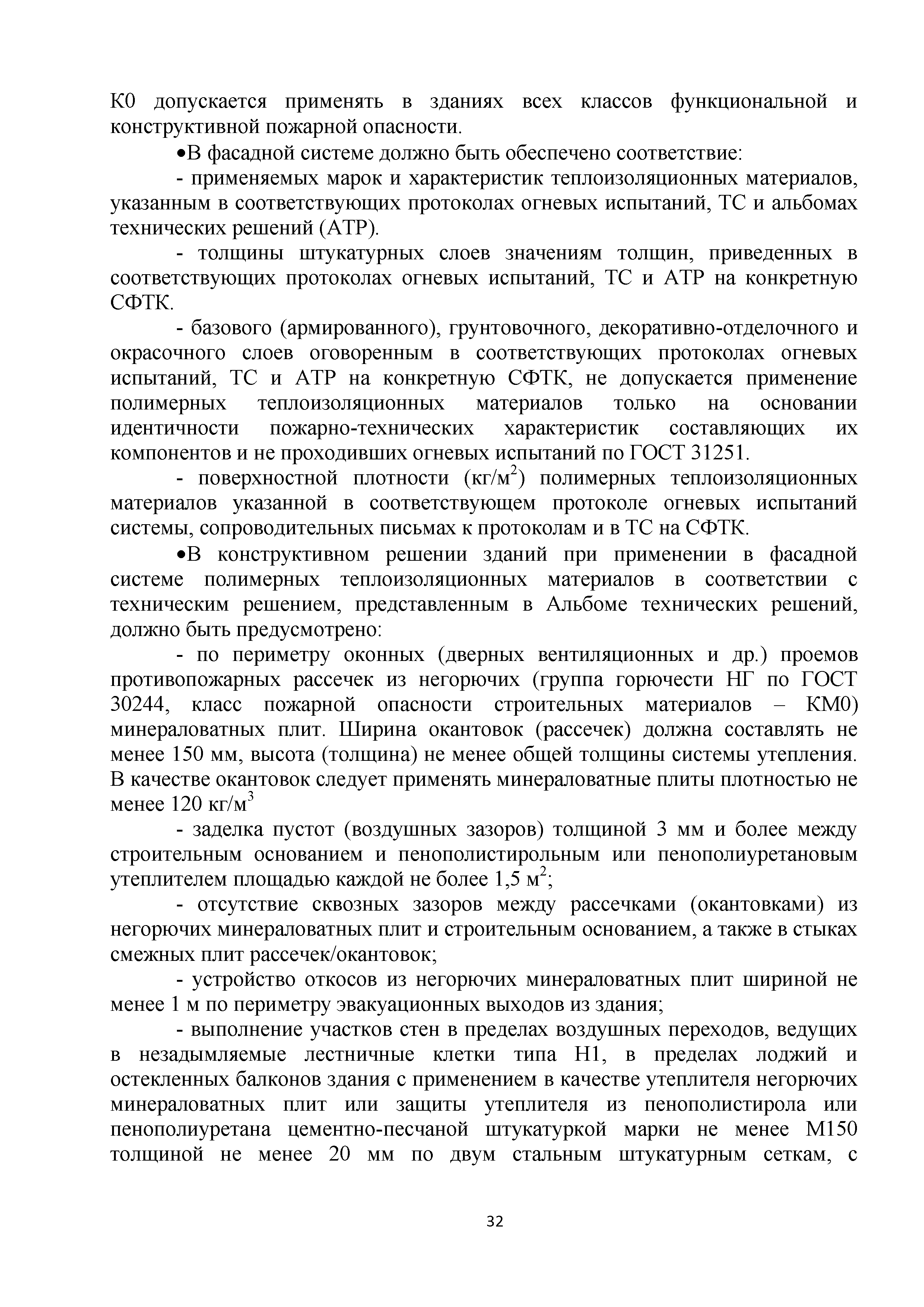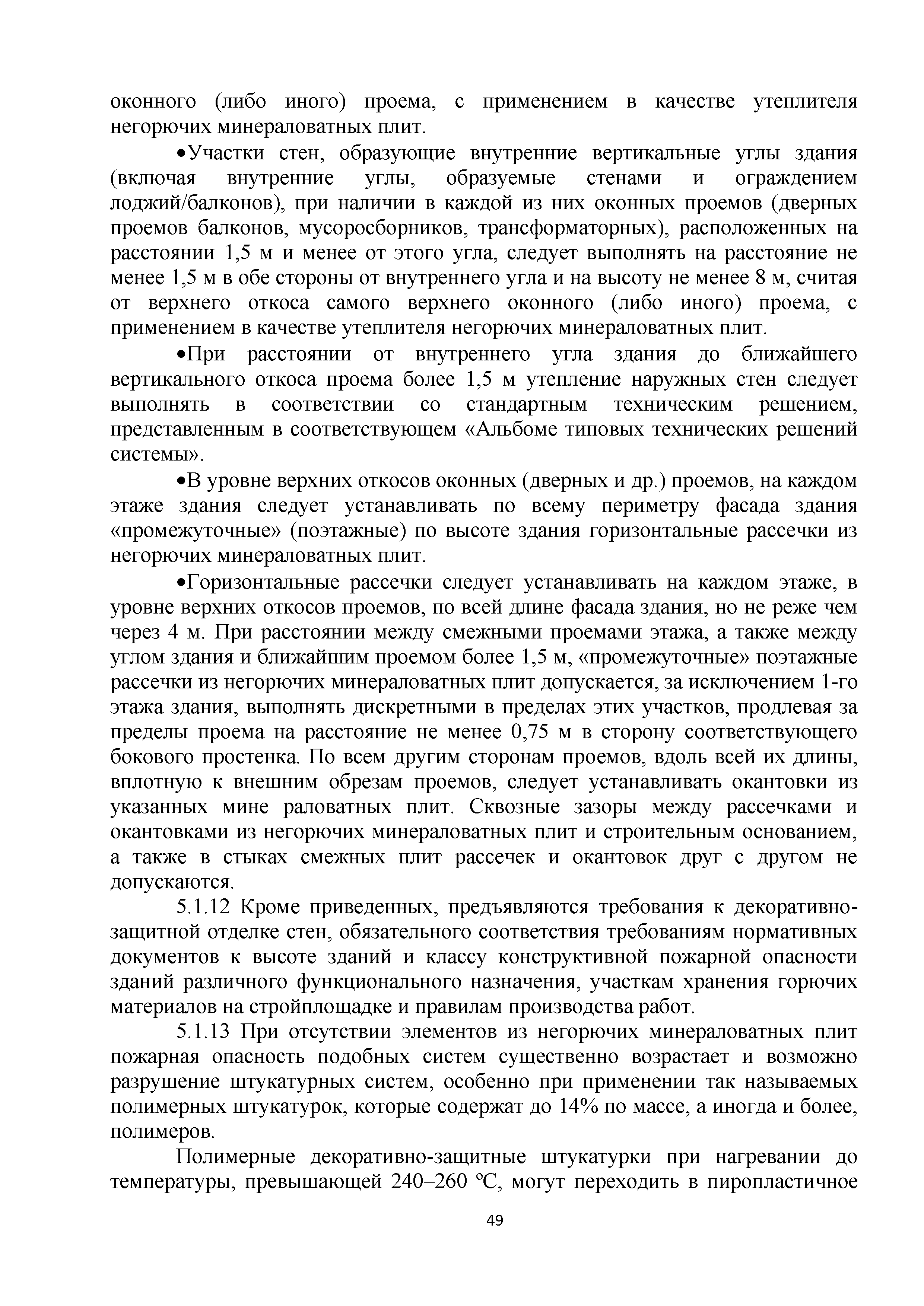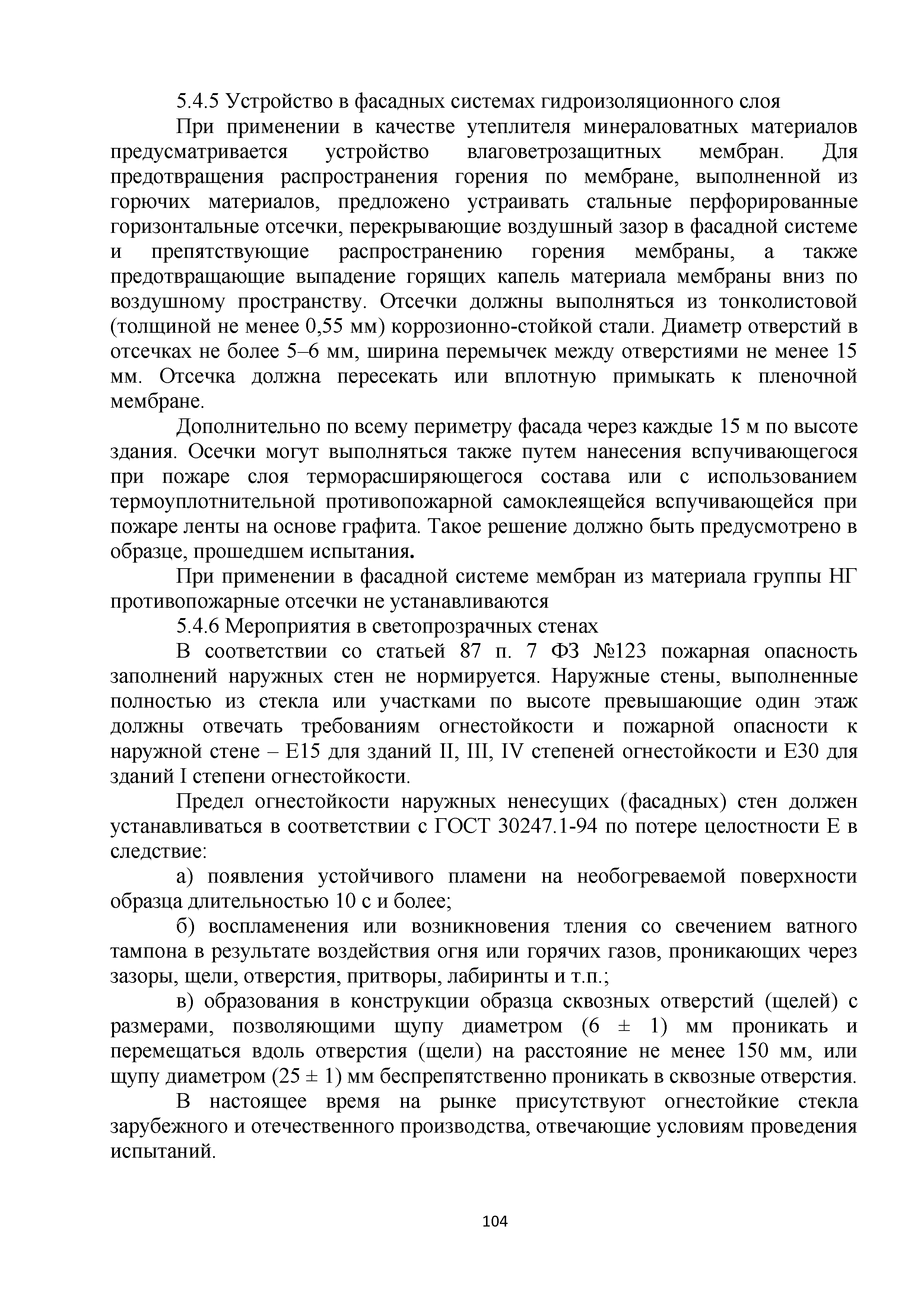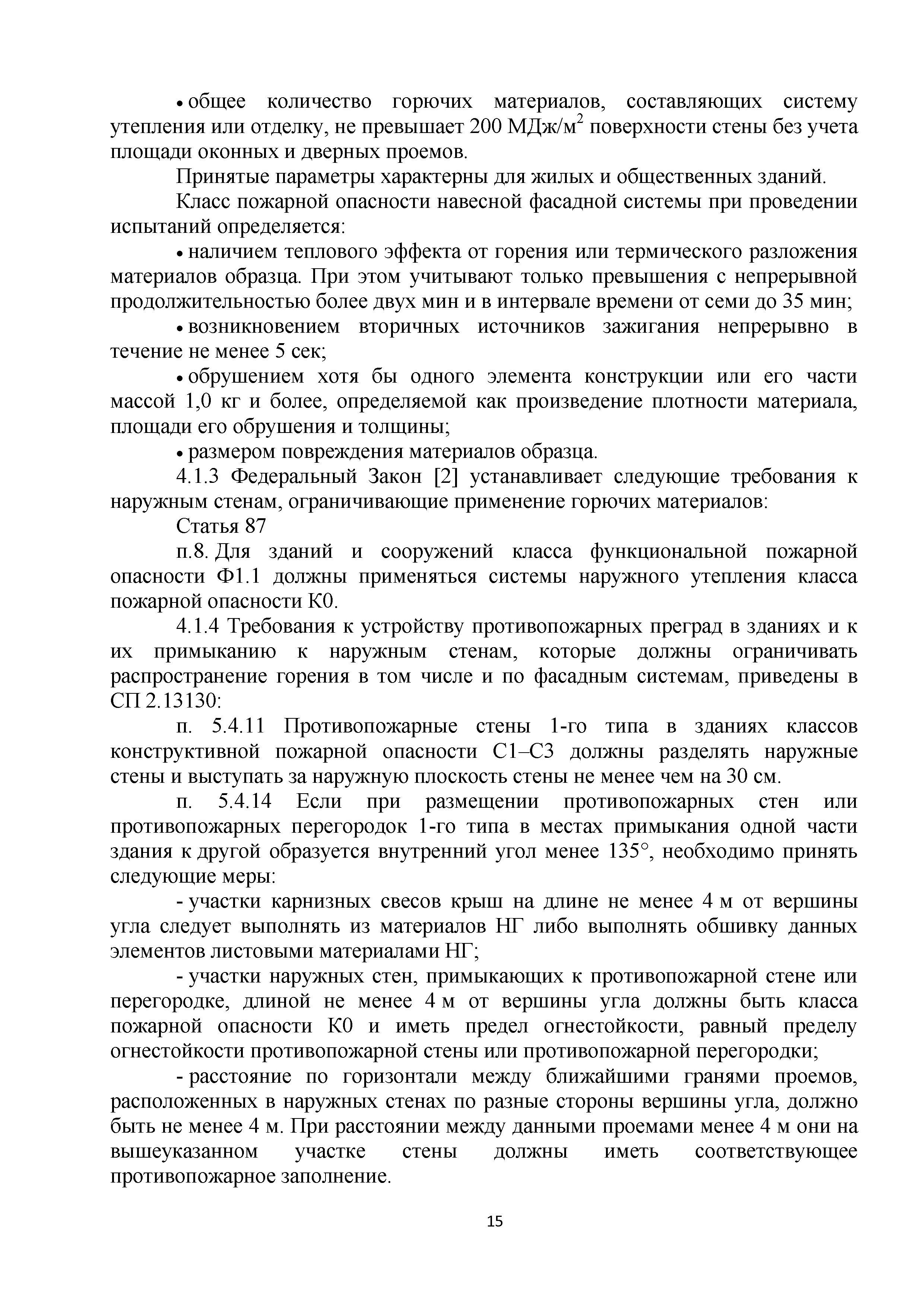 | Оглавление: | Введение 1. Область применения 2. Нормативные ссылки 3. Термины и определения 4. Область применения фасадных систем в зданиях с различными объемно-планировочными и конструктивными решениями фасадных систем с различными материалами и конструктивными решениями с учетом предложений по снижению пожарной опасности 4.1. Оценка пожарной опасности строительных объектов 4.2. Факторы, определяющие поведение фасадных систем при различных объемно-планировочных и конструктивных решениях 4.3. Предложения по области применения фасадных систем 4.4. Требованиями к фасадным системам, направленные на выполнение условий безопасности в соответствии с Федеральными законами № 384-ФЗ и № 123-ФЗ 5. Решения фасадных систем, отвечающих требованиям безопасности в соответствии с Федеральными законами № 384-ФЗ и № 123-ФЗ 5.1. Системы фасадные теплоизоляционные с наружными защитно-декоративными штукатурными слоями (СФТК) и композитными облицовками 5.2. Системы фасадные навесные с воздушным зазором 5.3. Остекление в фасадных системах 5.4. Рекомендации по устранению в конструктивных решениях фасадных систем и в решениях зданий дефектов, приводящих к чрезвычайным ситуациям 5.5. Требования к выполнению монтажных работ 5.6. Требования при эксплуатации зданий Приложение. Примеры пожаров в зданиях с облицовкой наружных стен фасадными системами Библиография |