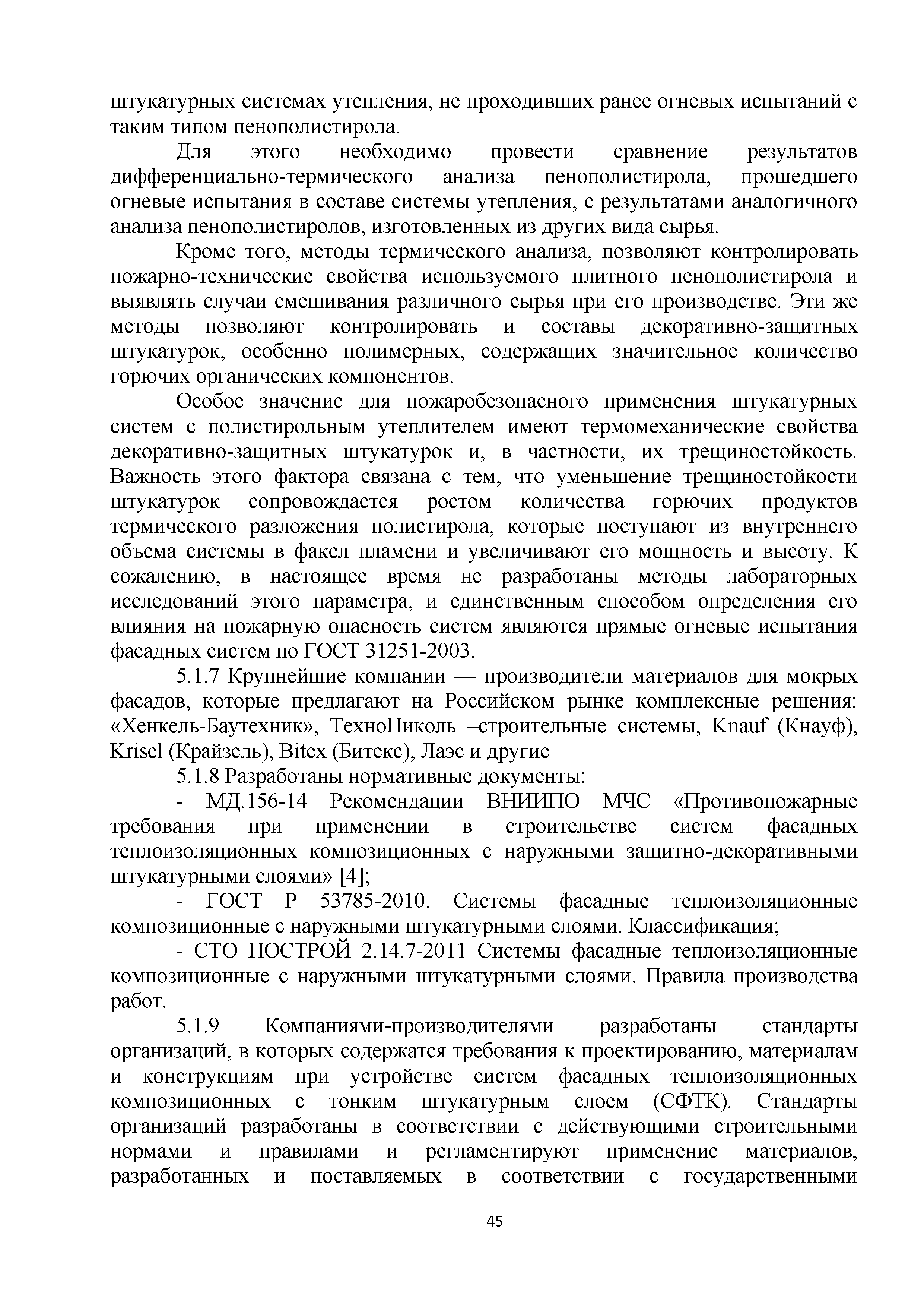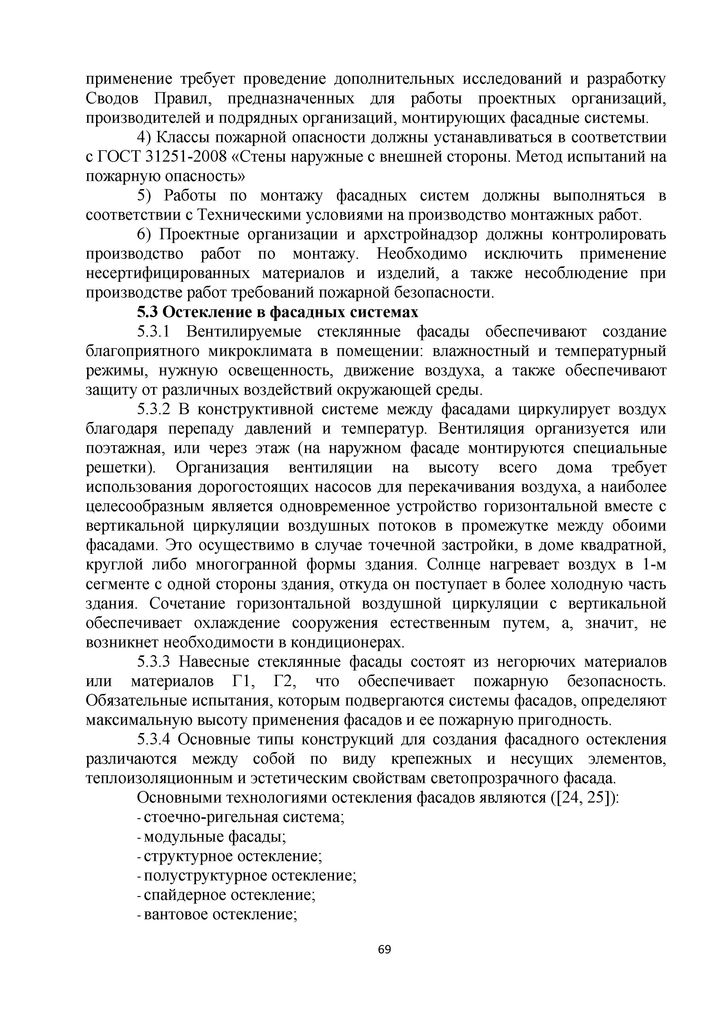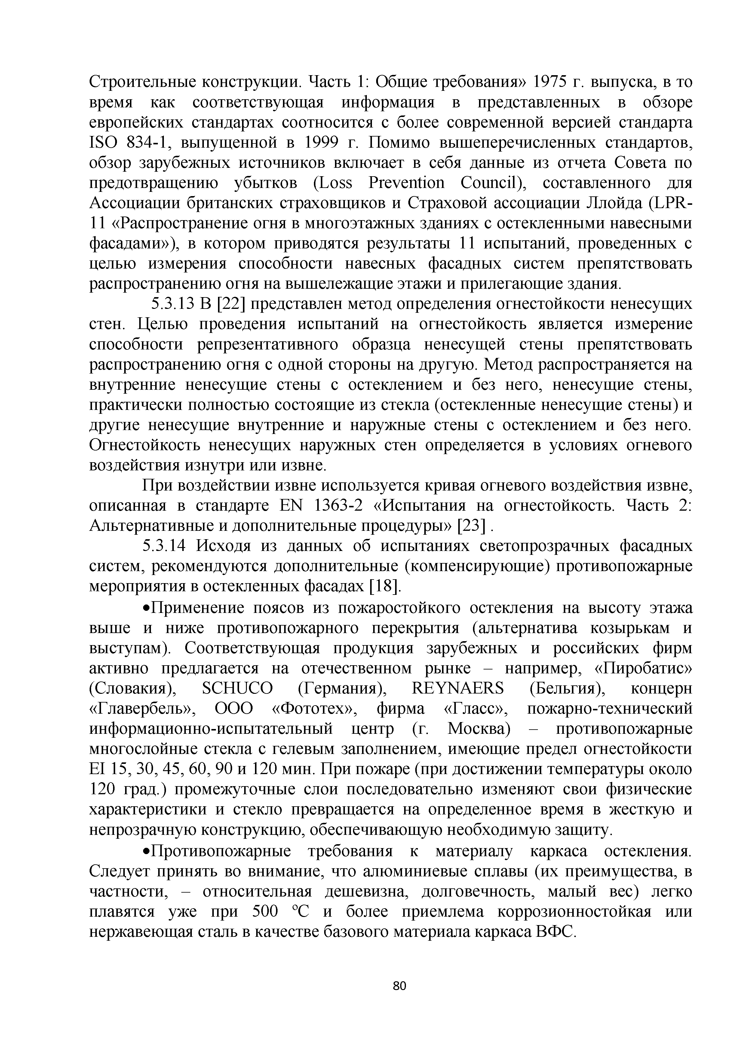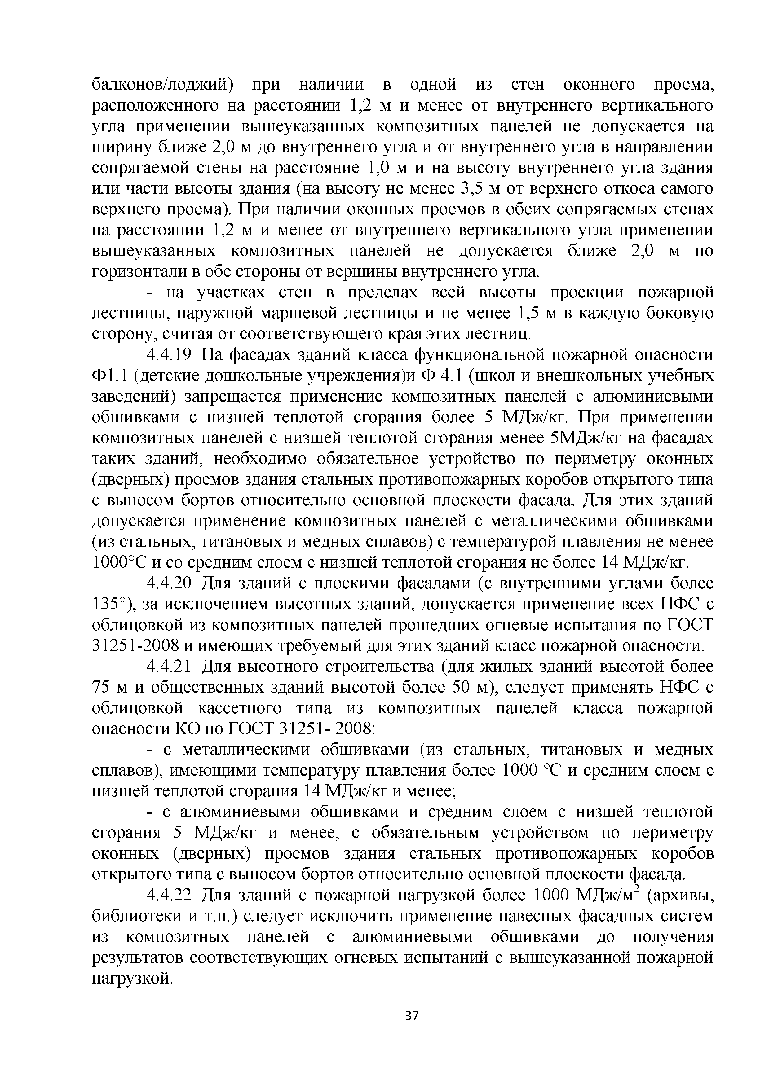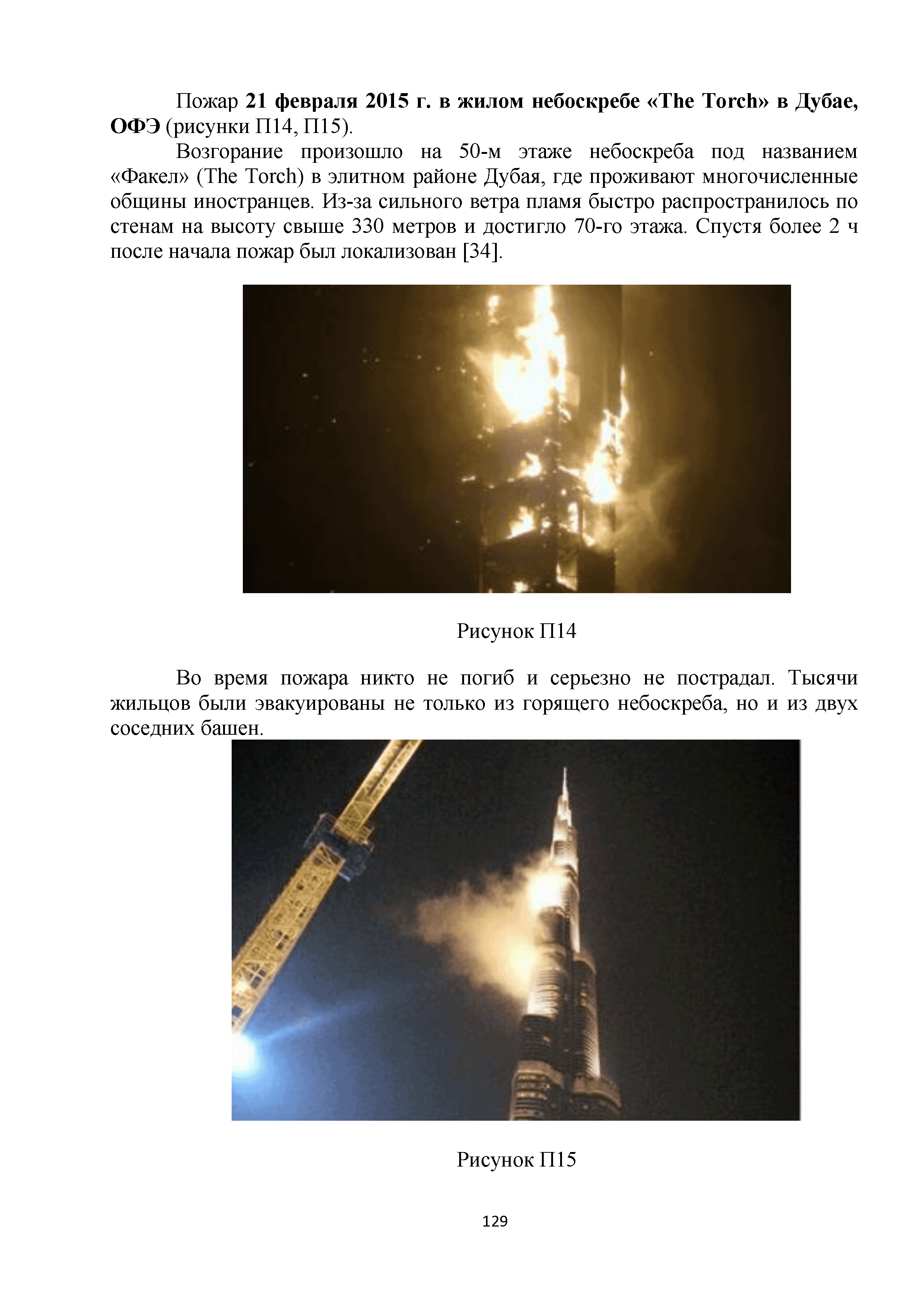 | Оглавление: | Введение 1. Область применения 2. Нормативные ссылки 3. Термины и определения 4. Область применения фасадных систем в зданиях с различными объемно-планировочными и конструктивными решениями фасадных систем с различными материалами и конструктивными решениями с учетом предложений по снижению пожарной опасности 4.1. Оценка пожарной опасности строительных объектов 4.2. Факторы, определяющие поведение фасадных систем при различных объемно-планировочных и конструктивных решениях 4.3. Предложения по области применения фасадных систем 4.4. Требованиями к фасадным системам, направленные на выполнение условий безопасности в соответствии с Федеральными законами № 384-ФЗ и № 123-ФЗ 5. Решения фасадных систем, отвечающих требованиям безопасности в соответствии с Федеральными законами № 384-ФЗ и № 123-ФЗ 5.1. Системы фасадные теплоизоляционные с наружными защитно-декоративными штукатурными слоями (СФТК) и композитными облицовками 5.2. Системы фасадные навесные с воздушным зазором 5.3. Остекление в фасадных системах 5.4. Рекомендации по устранению в конструктивных решениях фасадных систем и в решениях зданий дефектов, приводящих к чрезвычайным ситуациям 5.5. Требования к выполнению монтажных работ 5.6. Требования при эксплуатации зданий Приложение. Примеры пожаров в зданиях с облицовкой наружных стен фасадными системами Библиография |