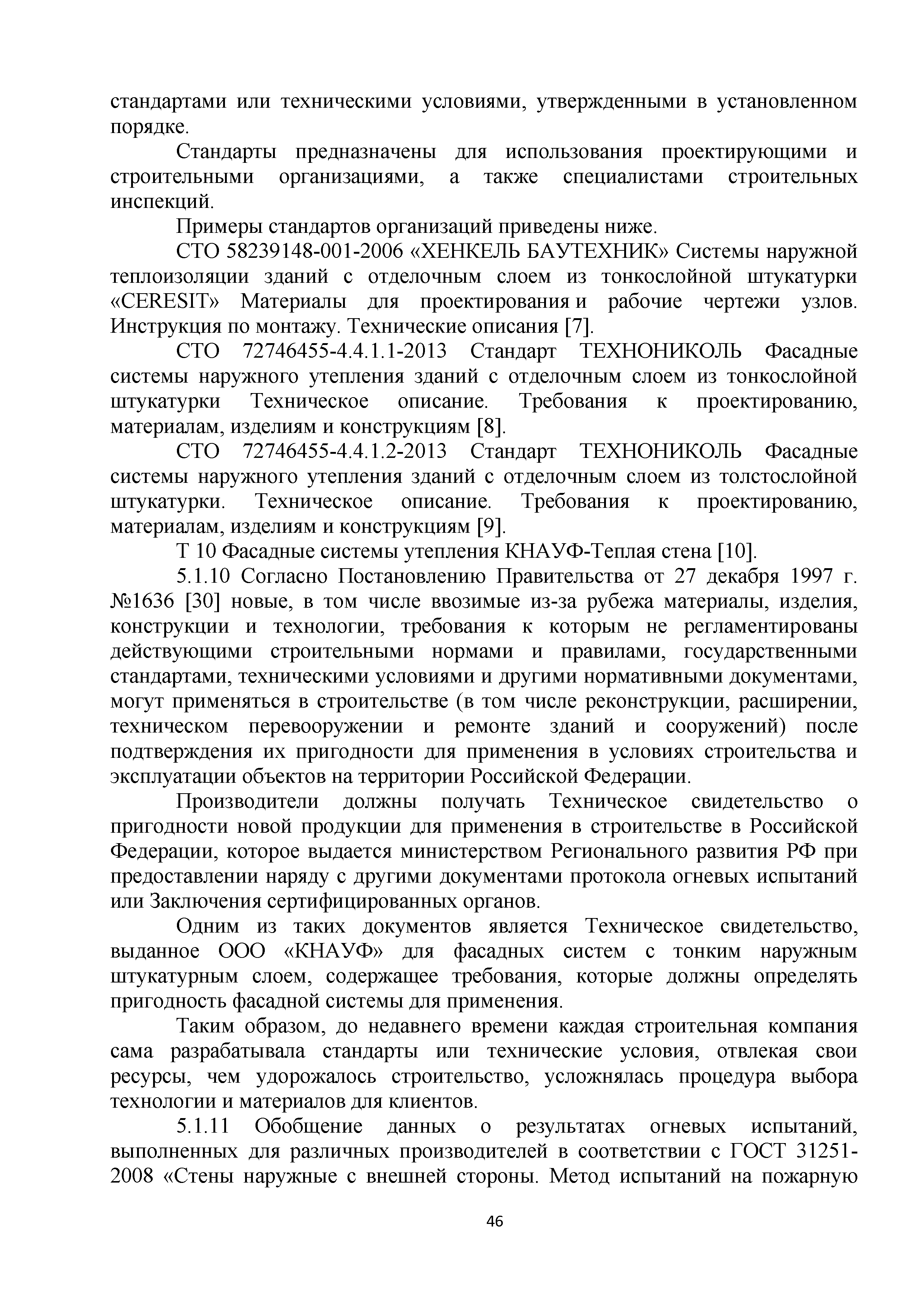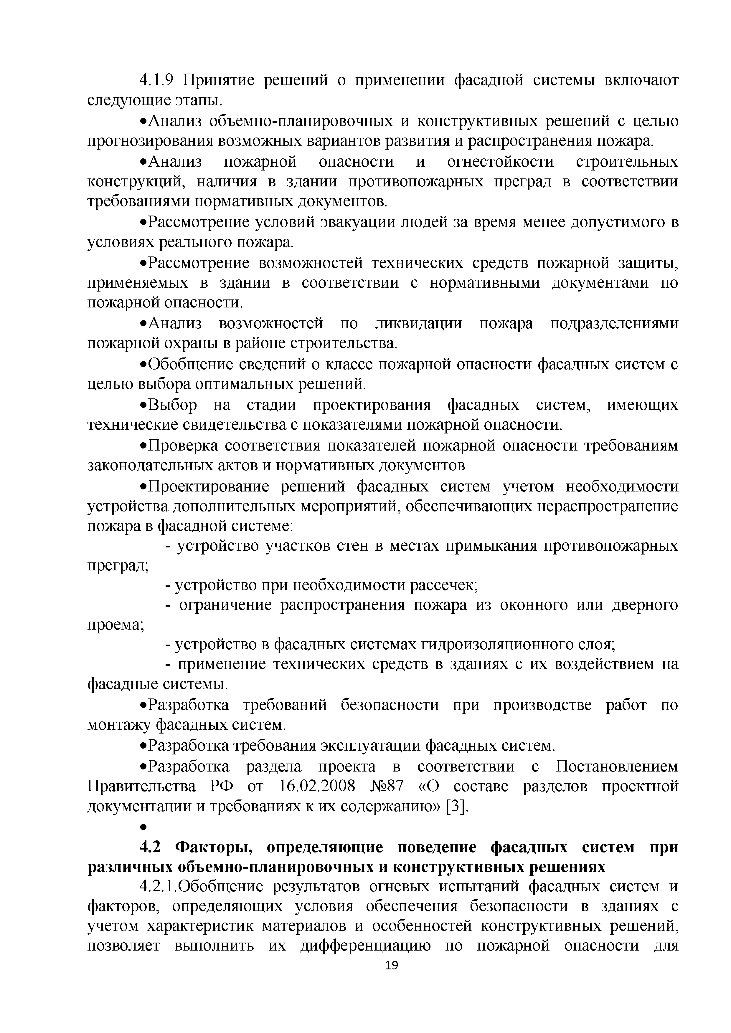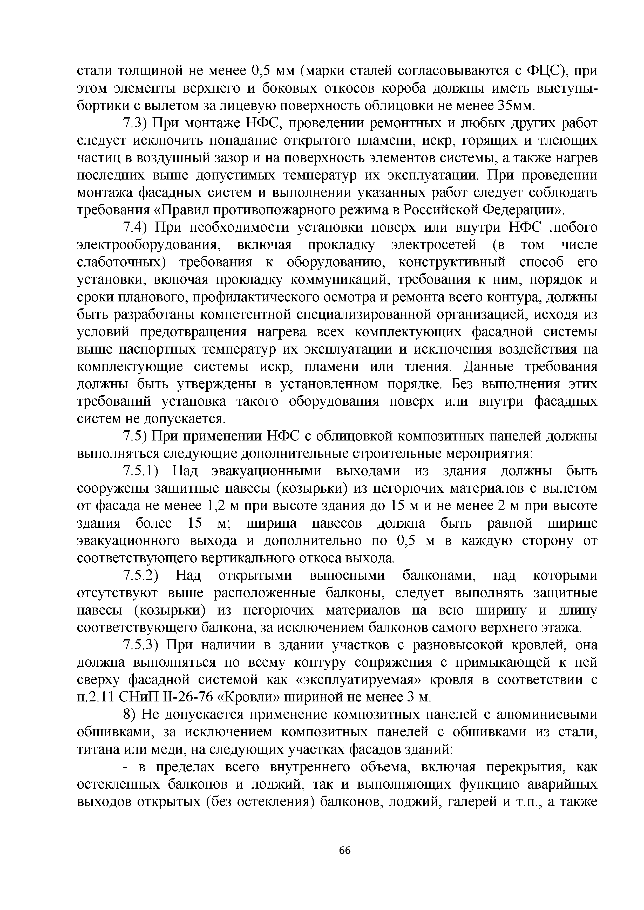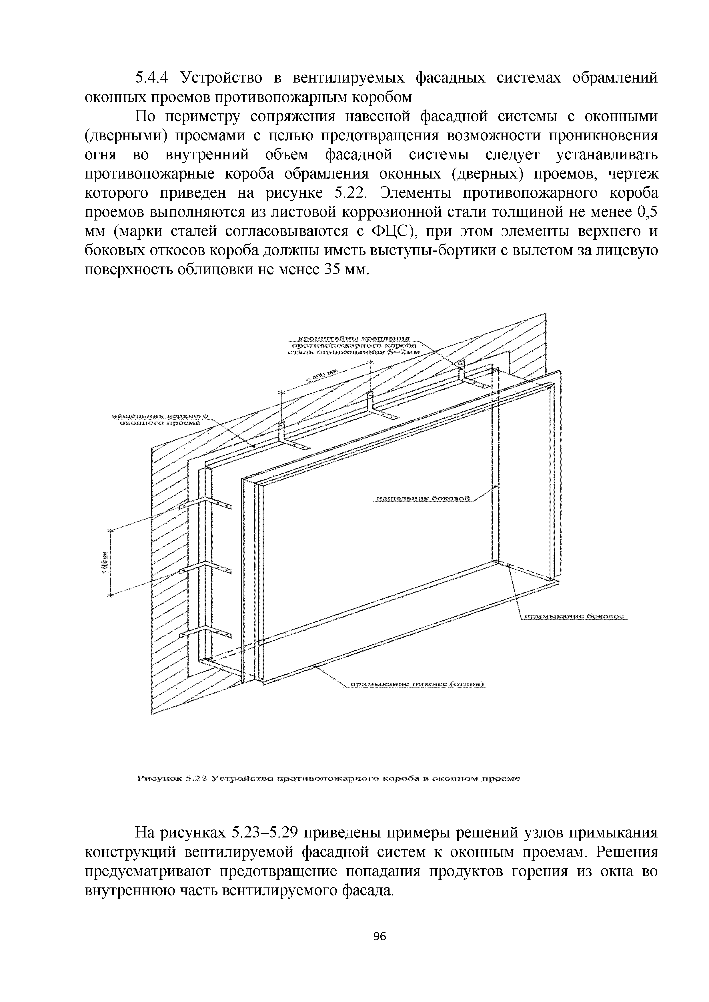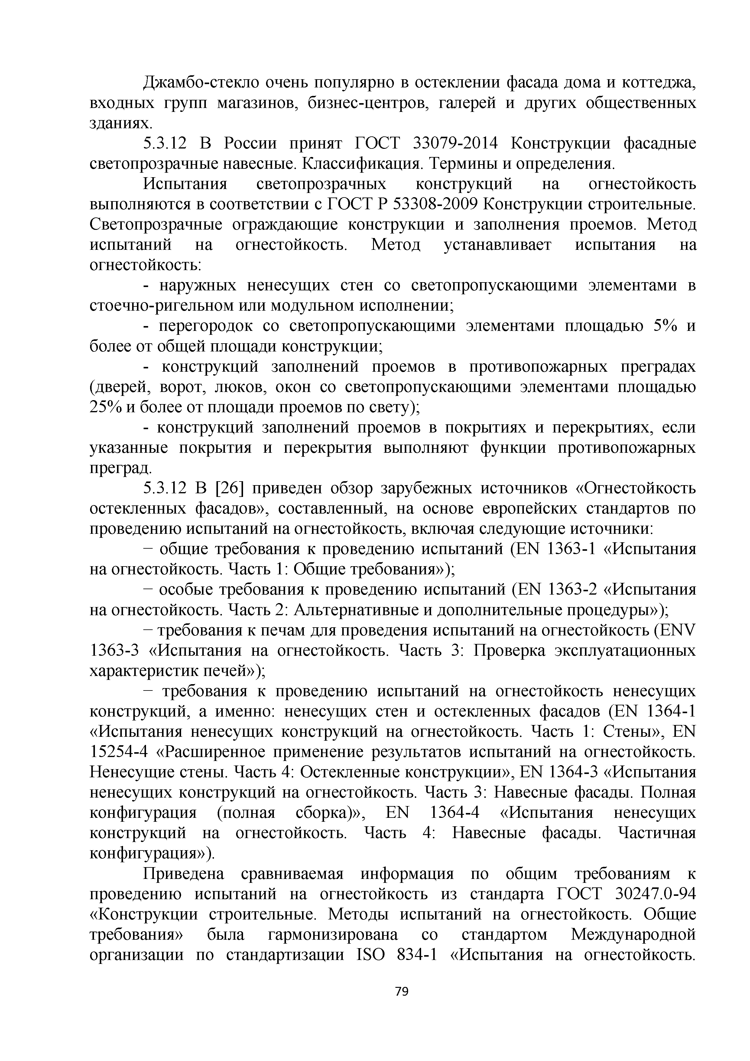 | Оглавление: | Введение 1. Область применения 2. Нормативные ссылки 3. Термины и определения 4. Область применения фасадных систем в зданиях с различными объемно-планировочными и конструктивными решениями фасадных систем с различными материалами и конструктивными решениями с учетом предложений по снижению пожарной опасности 4.1. Оценка пожарной опасности строительных объектов 4.2. Факторы, определяющие поведение фасадных систем при различных объемно-планировочных и конструктивных решениях 4.3. Предложения по области применения фасадных систем 4.4. Требованиями к фасадным системам, направленные на выполнение условий безопасности в соответствии с Федеральными законами № 384-ФЗ и № 123-ФЗ 5. Решения фасадных систем, отвечающих требованиям безопасности в соответствии с Федеральными законами № 384-ФЗ и № 123-ФЗ 5.1. Системы фасадные теплоизоляционные с наружными защитно-декоративными штукатурными слоями (СФТК) и композитными облицовками 5.2. Системы фасадные навесные с воздушным зазором 5.3. Остекление в фасадных системах 5.4. Рекомендации по устранению в конструктивных решениях фасадных систем и в решениях зданий дефектов, приводящих к чрезвычайным ситуациям 5.5. Требования к выполнению монтажных работ 5.6. Требования при эксплуатации зданий Приложение. Примеры пожаров в зданиях с облицовкой наружных стен фасадными системами Библиография |