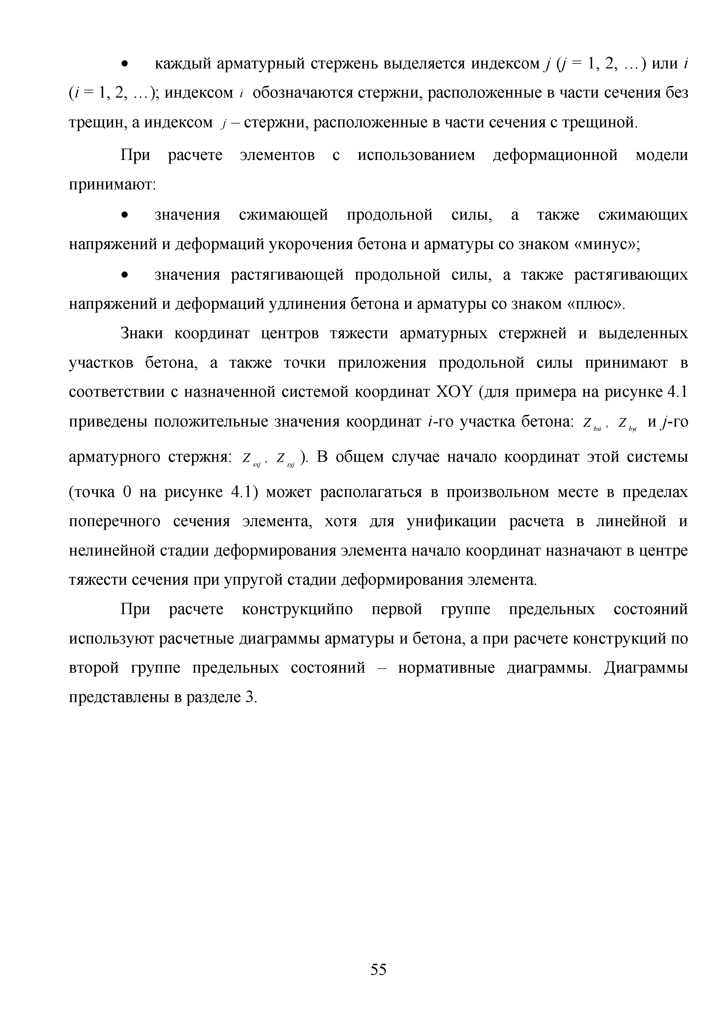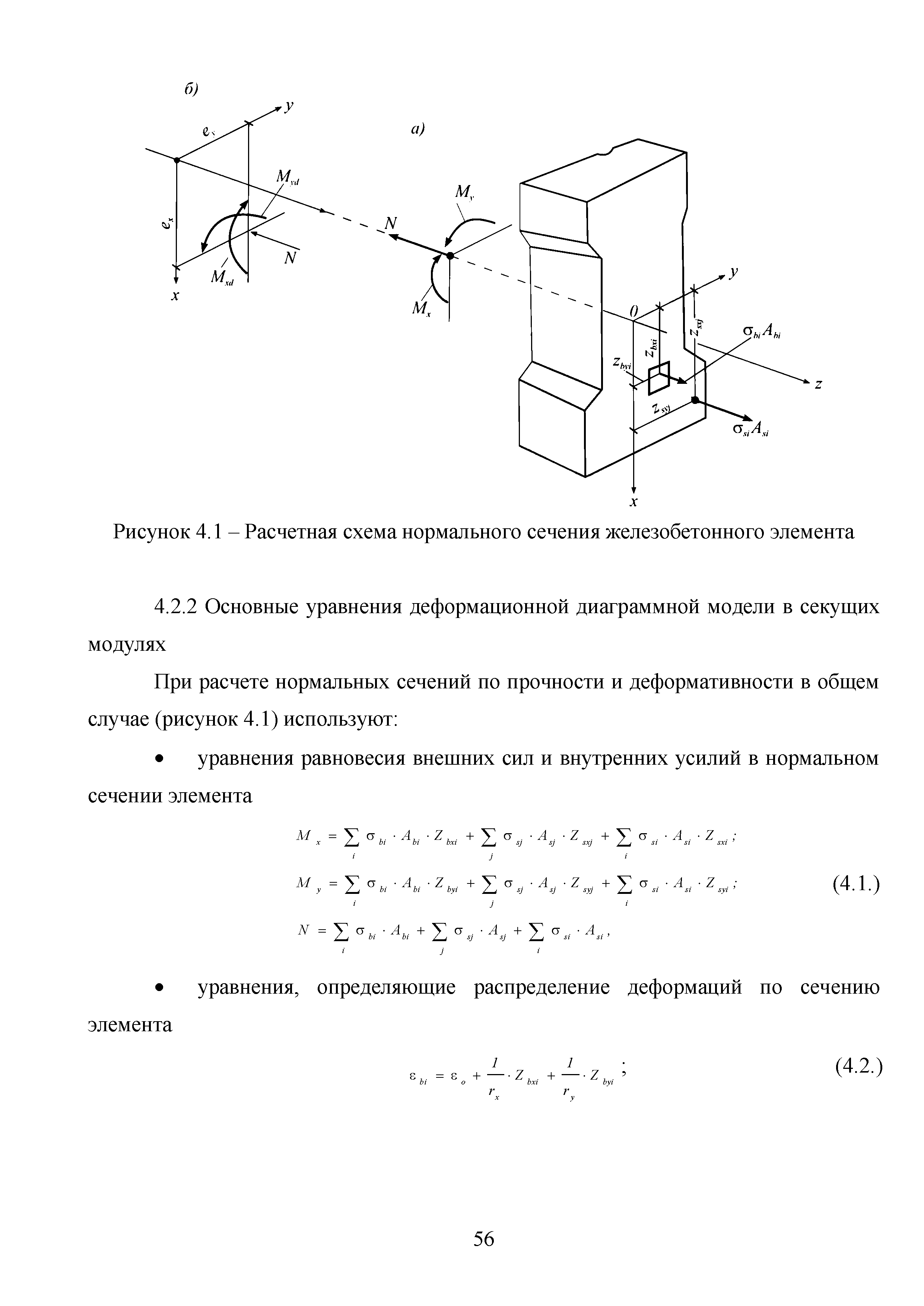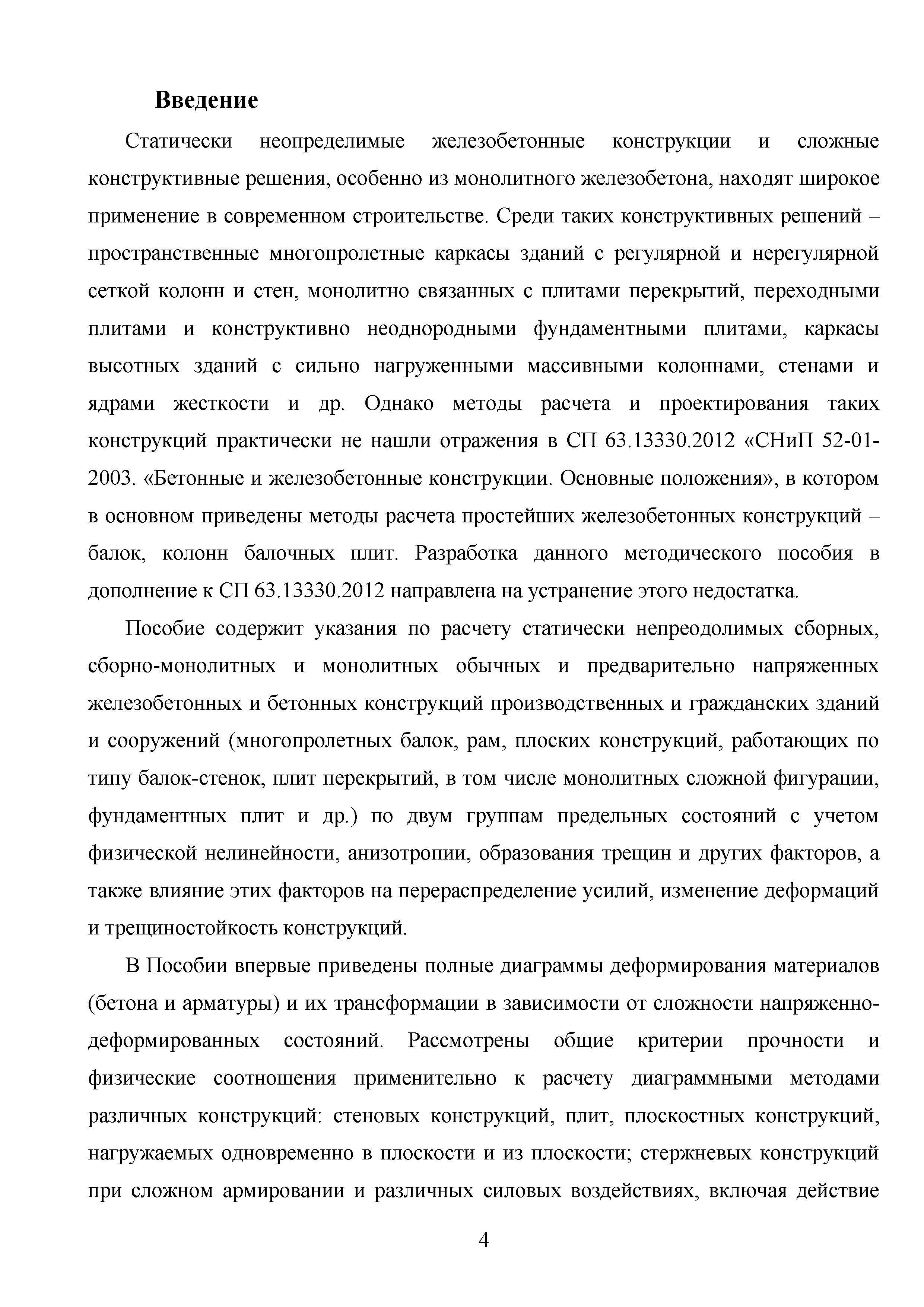 Методическое пособие. Статически неопределимые железобетонные конструкции. Диаграммные методы автоматизированного расчета и проектирования| Статус: | действует | | Название рус.: | Методическое пособие. Статически неопределимые железобетонные конструкции. Диаграммные методы автоматизированного расчета и проектирования | | Дата добавления в базу: | 01.01.2019 | | Дата актуализации: | 01.01.2021 | | Область применения: | Пособие содержит указания по расчету статически непреодолимых сборных, сборно-монолитных и монолитных обычных и предварительно напряженных железобетонных и бетонных конструкций производственных и гражданских зданий и сооружений (многопролетных балок, рам, плоских конструкций, работающих по типу балок-стенок, плит перекрытий, в том числе монолитных сложной фигурации, фундаментных плит и др.) по двум группам предельных состояний с учетом физической нелинейности, анизотропии, образования трещин и других факторов, а также влияние этих факторов на перераспределение усилий, изменение деформаций и трещиностойкость конструкций. | | Оглавление: | Введение 1 Общие положения 2 Общие принципы расчета и проектирования статически неопределимых железобетонных конструкций с учетом нелинейных свойств железобетона 3 Нормативные и расчетные диаграммы деформирования бетона и арматуры 3.1 Диаграммы деформирования бетонов 3.2 Диаграммы деформирования арматуры 3.3 Диаграммы деформирования арматуры в элементах с трещинами 3.4 Диаграммы с учетом длительного действия нагрузки (диаграммы-изохроны) 3.5 Меры ползучести бетона 3.6 Учет влияния повышенных температур 3.7 Учет усадки бетона 3.8 Режимные диаграммы при кратковременном нагружении 3.9 Определение деформаций ползучести бетона при сложных режимах нагружения. Длительный режим загружения 4 Статически неопределимые стержневые конструкции 4.1 Общие положения, расчеты 4.2 Диаграммная модель стержневого элемента в секущих модулях и модулях на конечных приращениях 4.3 Упрощенная диаграммная модель стержневого элемента 4.4 Общая диаграммная модель с учетом предварительного напряжения арматуры и начальных деформаций и напряжений в бетоне 5 Конструкции, работающие в условиях плоского напряженного состояния 5.1 Общие положения и характеристики плоского напряженного состояния (ПНС) 5.2 Расчет плоских бетонных элементов по прочности до трещинообразования 5.3 Расчет прочности железобетонных элементов 5.4 Критерии прочности железобетонных элементов с трещинами 5.5 Общая запись физических соотношений до и после трещинообразования в общем виде и на конечных приращениях 5.6 Определение ширины раскрытия трещин 5.7 Общий алгоритм расчета железобетонной балки-стенки методом конечных элементов 6 Плоскостные конструкции, работающие при совместном действии изгибающих и крутящих моментов, нормальных и касательных сил 6.1 Общие положения 6.2 Критерии прочности для элементов без трещин 6.3 Критерии прочности элементов с трещинами 6.4 Физические соотношения для расчета железобетонных плит по деформациям и трещиностойкости 6.5 Общие методы расчета плоскостных конструкций 7 Расчет конструкции по методу предельного равновесия (МПР) 7.1 Общие положения расчета 7.2 Применение МПР к расчету балочных плит 7.3 Расчет МПР плит, работающих в двух направлениях 7.4 Расчет МПР фундаментных плит под отдельно стоящие сооружения | |