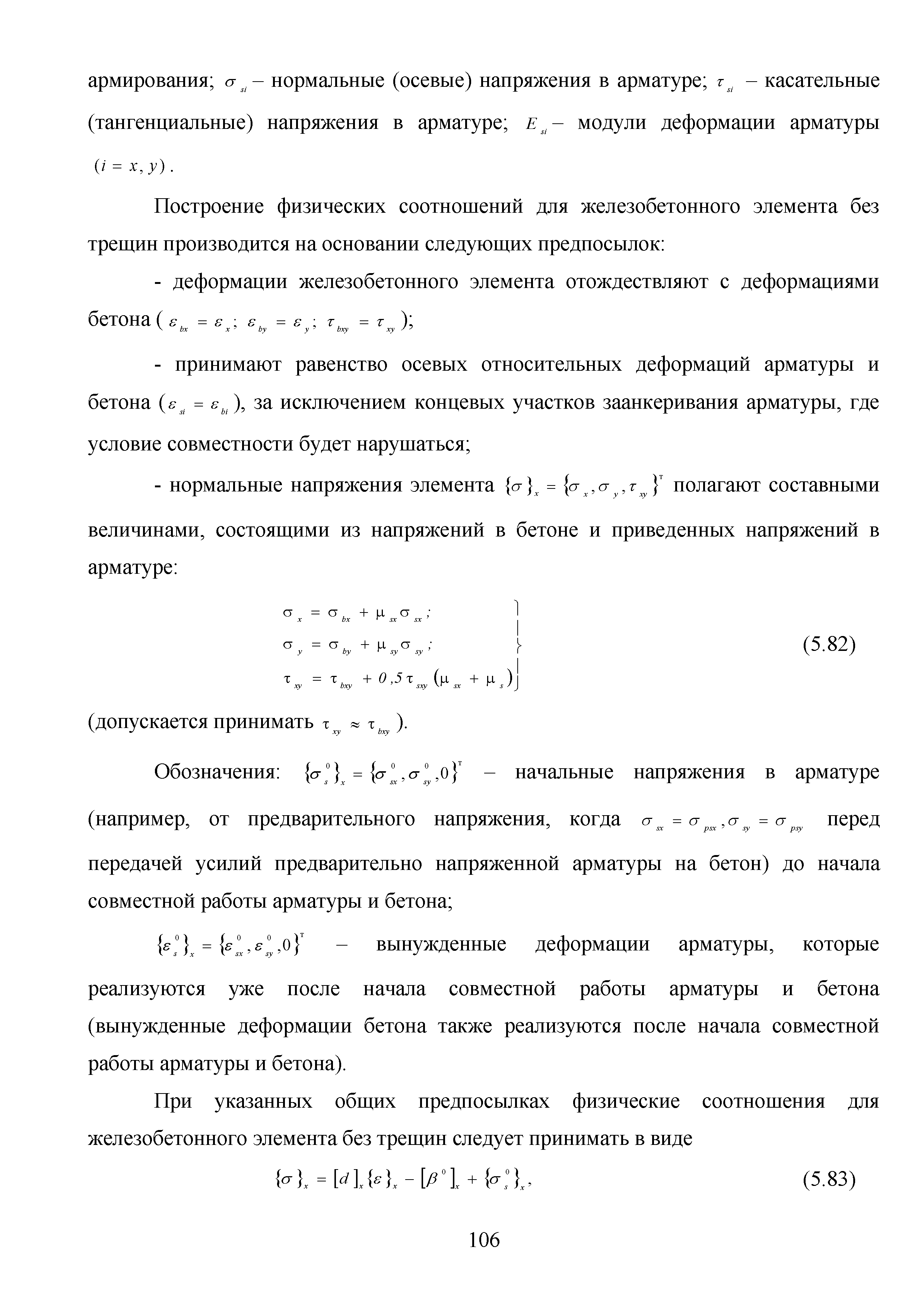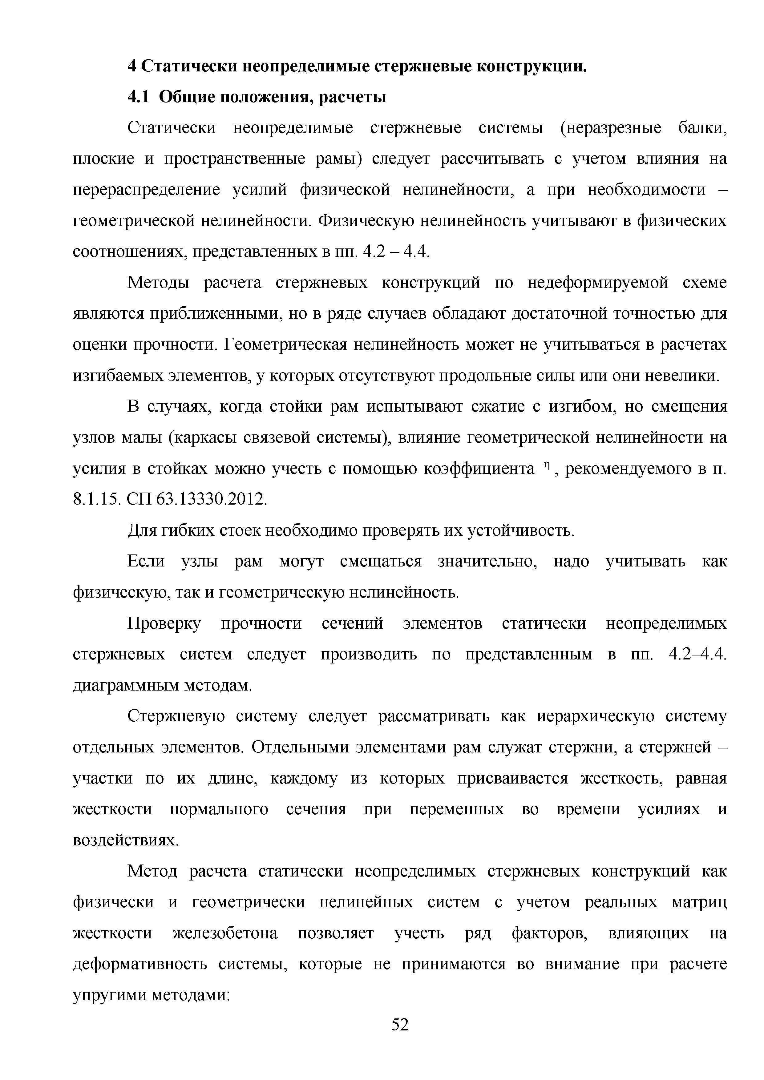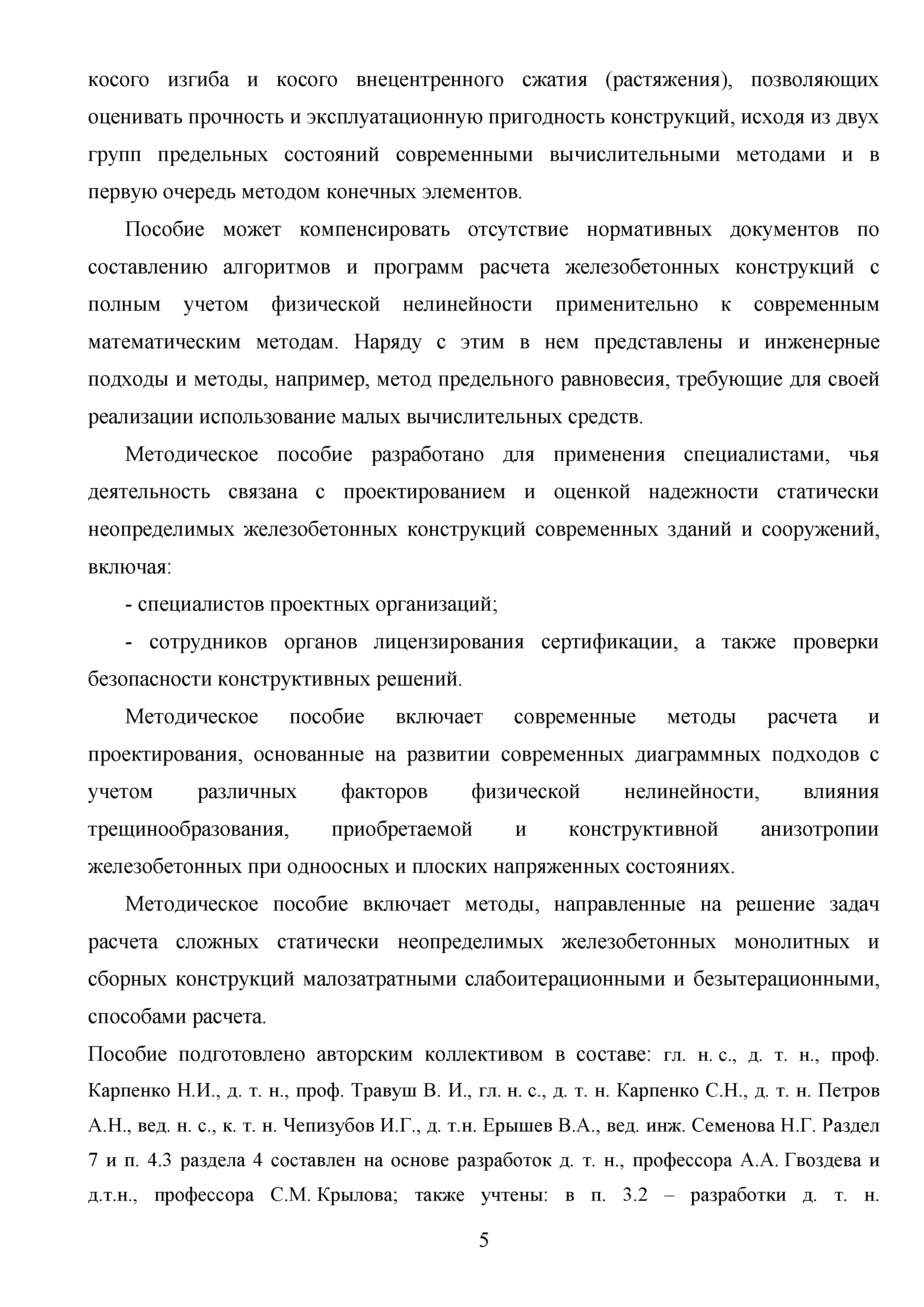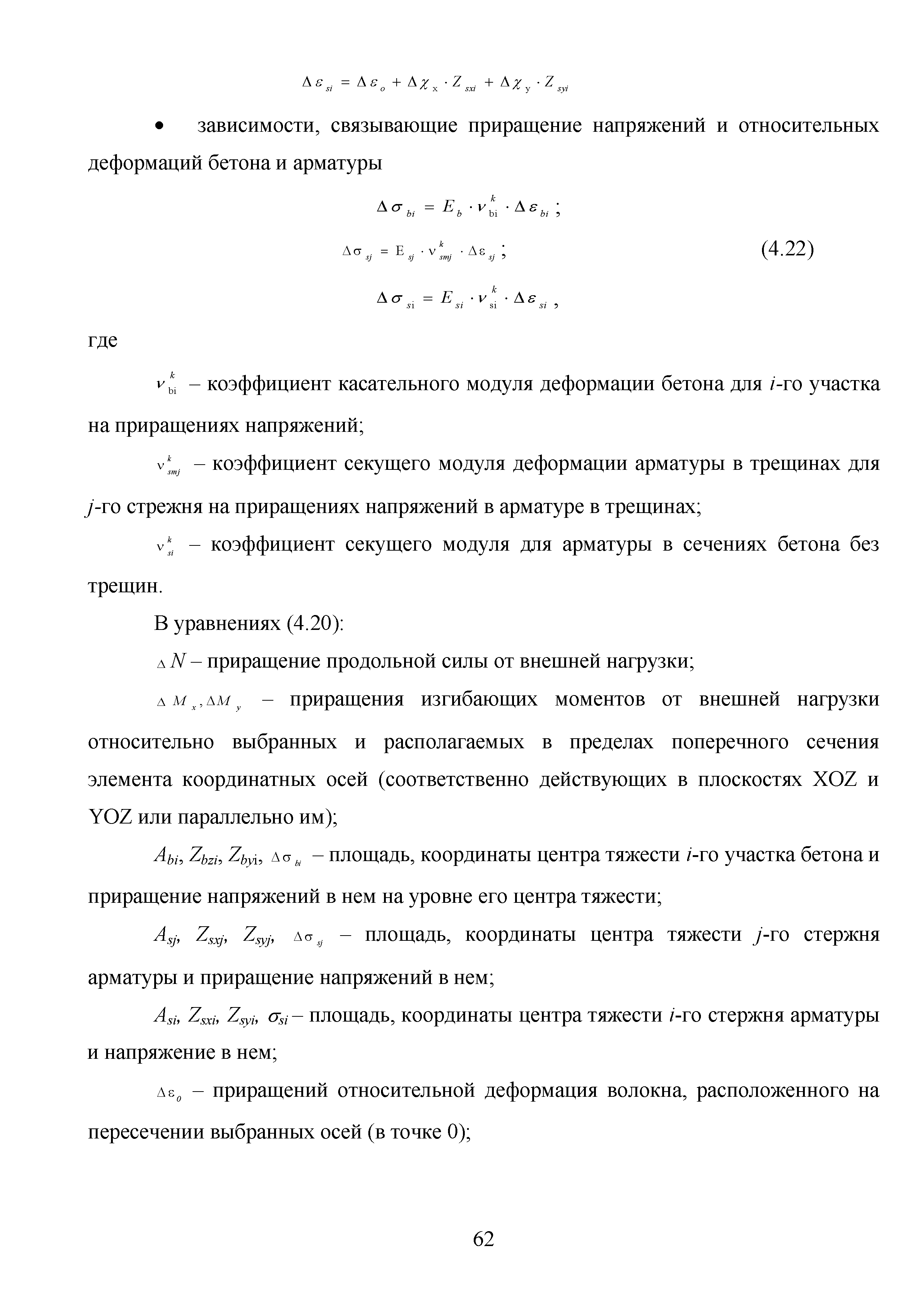 Методическое пособие. Статически неопределимые железобетонные конструкции. Диаграммные методы автоматизированного расчета и проектирования| Статус: | действует | | Название рус.: | Методическое пособие. Статически неопределимые железобетонные конструкции. Диаграммные методы автоматизированного расчета и проектирования | | Дата добавления в базу: | 01.01.2019 | | Дата актуализации: | 01.01.2021 | | Область применения: | Пособие содержит указания по расчету статически непреодолимых сборных, сборно-монолитных и монолитных обычных и предварительно напряженных железобетонных и бетонных конструкций производственных и гражданских зданий и сооружений (многопролетных балок, рам, плоских конструкций, работающих по типу балок-стенок, плит перекрытий, в том числе монолитных сложной фигурации, фундаментных плит и др.) по двум группам предельных состояний с учетом физической нелинейности, анизотропии, образования трещин и других факторов, а также влияние этих факторов на перераспределение усилий, изменение деформаций и трещиностойкость конструкций. | | Оглавление: | Введение 1 Общие положения 2 Общие принципы расчета и проектирования статически неопределимых железобетонных конструкций с учетом нелинейных свойств железобетона 3 Нормативные и расчетные диаграммы деформирования бетона и арматуры 3.1 Диаграммы деформирования бетонов 3.2 Диаграммы деформирования арматуры 3.3 Диаграммы деформирования арматуры в элементах с трещинами 3.4 Диаграммы с учетом длительного действия нагрузки (диаграммы-изохроны) 3.5 Меры ползучести бетона 3.6 Учет влияния повышенных температур 3.7 Учет усадки бетона 3.8 Режимные диаграммы при кратковременном нагружении 3.9 Определение деформаций ползучести бетона при сложных режимах нагружения. Длительный режим загружения 4 Статически неопределимые стержневые конструкции 4.1 Общие положения, расчеты 4.2 Диаграммная модель стержневого элемента в секущих модулях и модулях на конечных приращениях 4.3 Упрощенная диаграммная модель стержневого элемента 4.4 Общая диаграммная модель с учетом предварительного напряжения арматуры и начальных деформаций и напряжений в бетоне 5 Конструкции, работающие в условиях плоского напряженного состояния 5.1 Общие положения и характеристики плоского напряженного состояния (ПНС) 5.2 Расчет плоских бетонных элементов по прочности до трещинообразования 5.3 Расчет прочности железобетонных элементов 5.4 Критерии прочности железобетонных элементов с трещинами 5.5 Общая запись физических соотношений до и после трещинообразования в общем виде и на конечных приращениях 5.6 Определение ширины раскрытия трещин 5.7 Общий алгоритм расчета железобетонной балки-стенки методом конечных элементов 6 Плоскостные конструкции, работающие при совместном действии изгибающих и крутящих моментов, нормальных и касательных сил 6.1 Общие положения 6.2 Критерии прочности для элементов без трещин 6.3 Критерии прочности элементов с трещинами 6.4 Физические соотношения для расчета железобетонных плит по деформациям и трещиностойкости 6.5 Общие методы расчета плоскостных конструкций 7 Расчет конструкции по методу предельного равновесия (МПР) 7.1 Общие положения расчета 7.2 Применение МПР к расчету балочных плит 7.3 Расчет МПР плит, работающих в двух направлениях 7.4 Расчет МПР фундаментных плит под отдельно стоящие сооружения | |