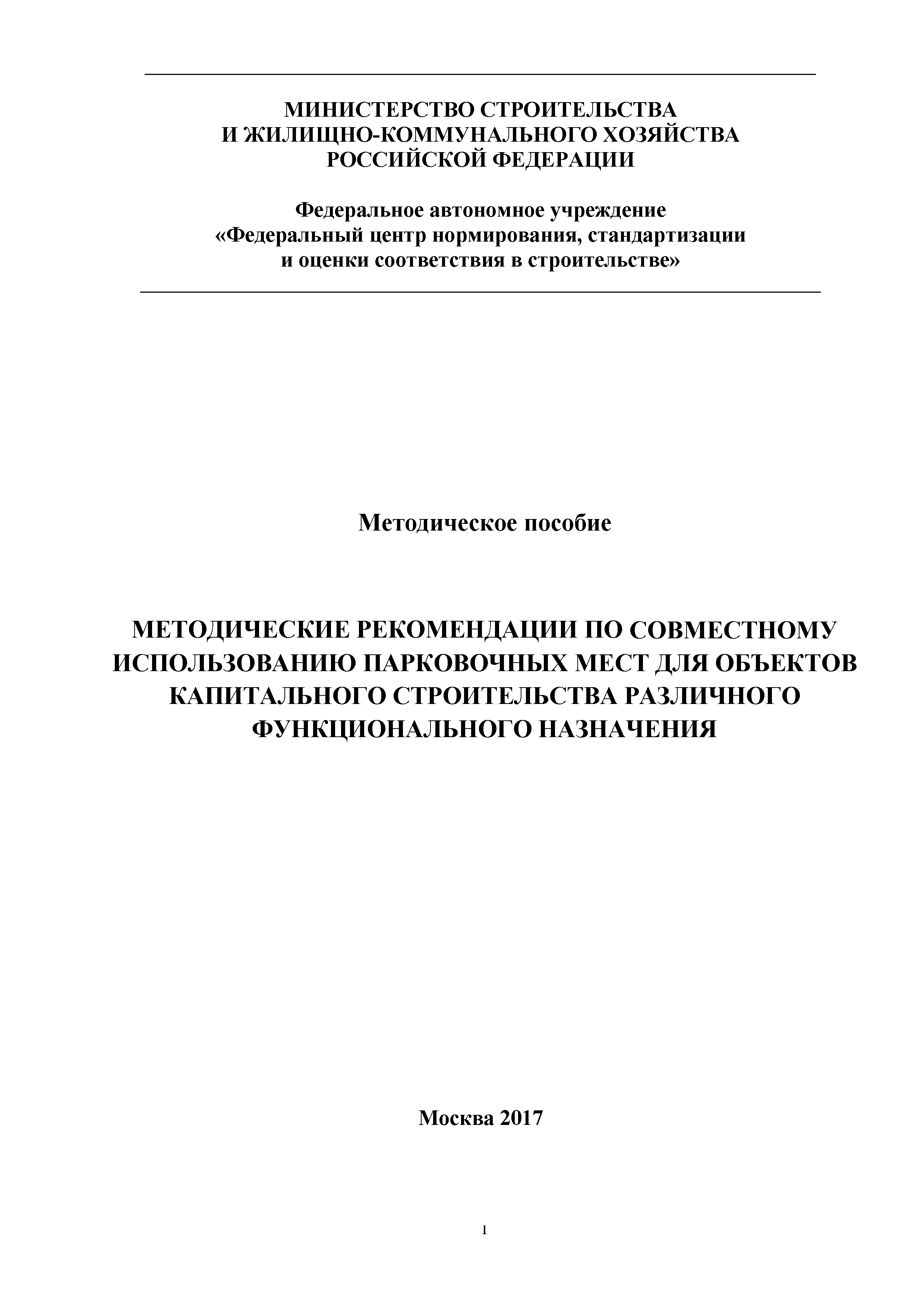 | Название рус.: | Методическое пособие. Методические рекомендации по совместному использованию парковочных мест для объектов капитального строительства различного функционального назначения |