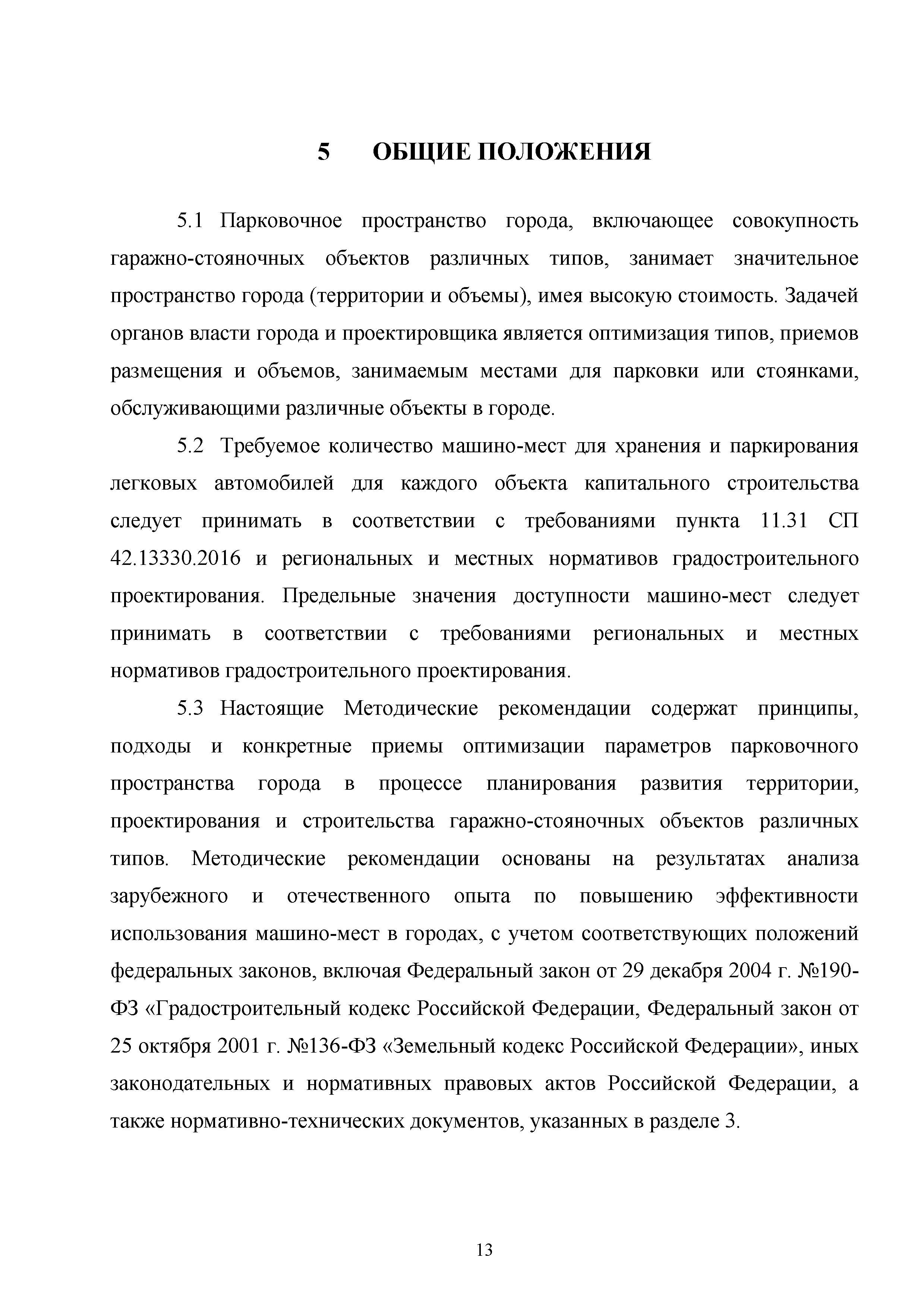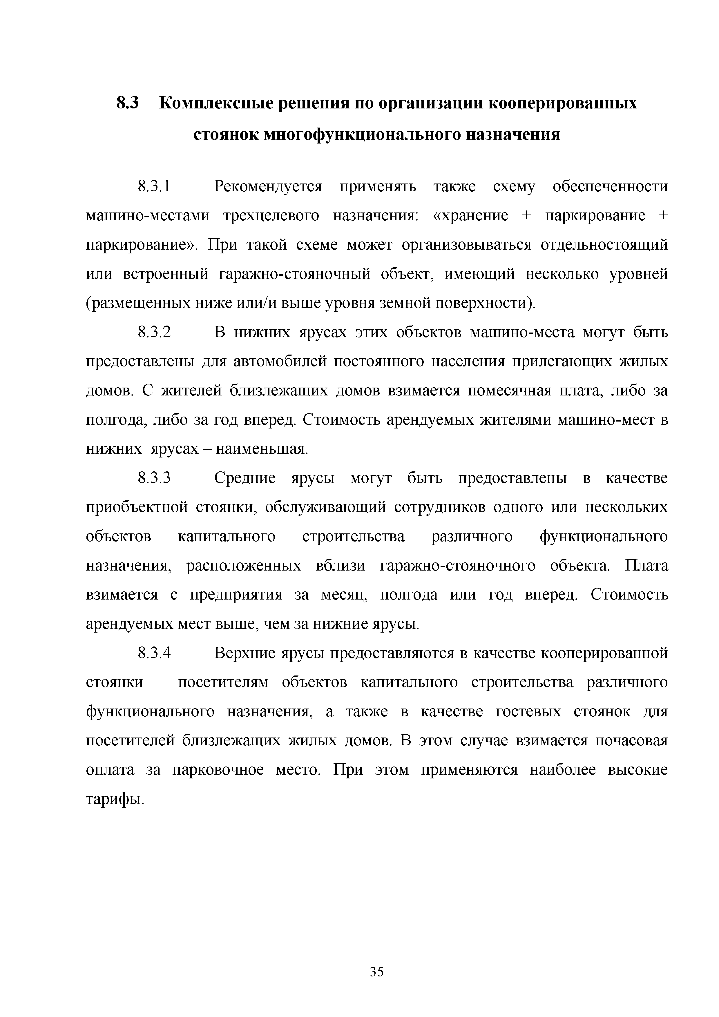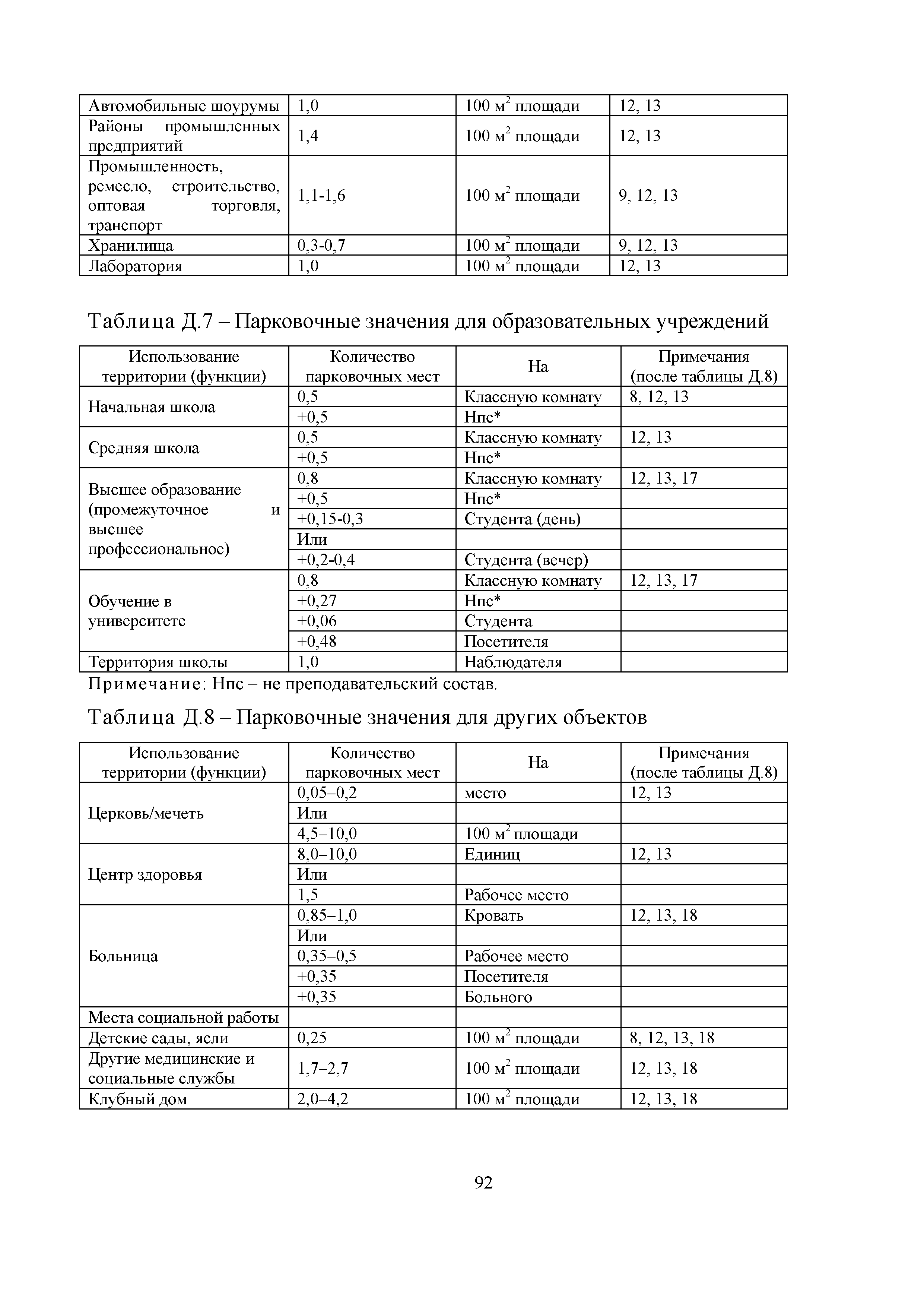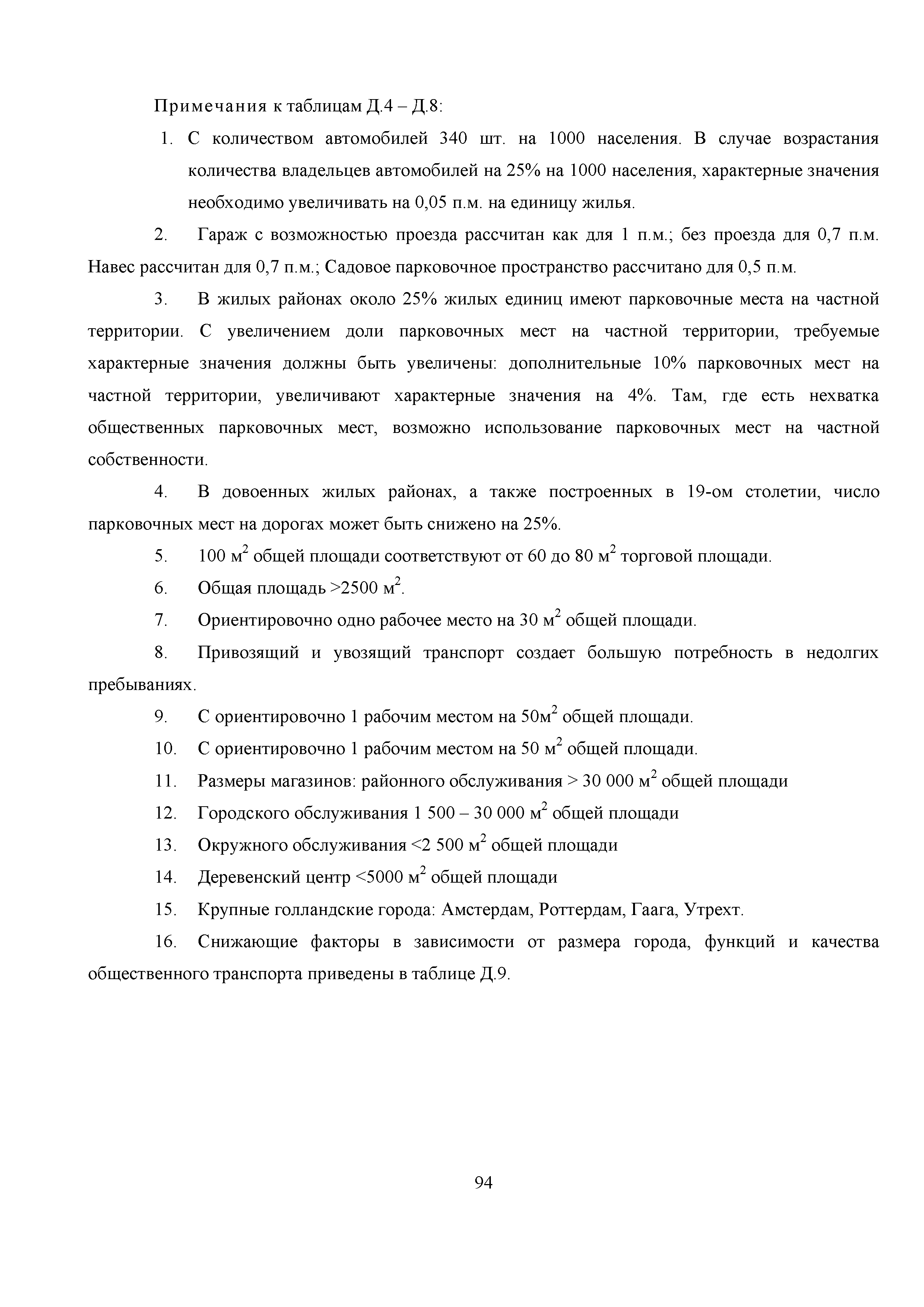 | Оглавление: | 1. Введение 2. Область применения 3. Нормативные ссылки 4. Термины и определения 5. Общие положения 6. Классификация, функциональные характеристики, основные параметры совместного использования парковочных мест, пустующих в течение значительной части суток, для объектов капитального строительства различного функционального назначения 6.1. Организация хранения легковых автомобилей 6.2. Организация паркирования легковых автомобилей 6.3. Типы гаражно-стояночных объектов 6.4. Повышение эффективности использования машино-мест. Классификация ситуаций 7. Методика расчета минимально необходимого количества парковочных мест для расположенных на смежных земельных участках объектов капитального строительства различного функционального назначения 8. Требования к организации совместного использования парковочных мест 8.1. Эффект экономии машино-мест за счет увеличения оборачиваемости одного машино-места 8.2. Эффект экономии машино-мест за счет совместного пользования гаражно-стояночных объектов (кооперированные стоянки) 8.3. Комплексные решения по организации кооперированных стоянок многофункционального назначения 9. Рекомендации по правовому обеспечению совместного использования парковочных мест для объектов капитального строительства различного функционального назначения 9.1. Правовые положения, регулирующие понятие автостоянок, парковок 9.2. Правовое регулирование деятельности автостоянок и парковок 9.3. Рекомендации по правовому обеспечению совместного использования парковочных мест для объектов капитального строительства функционального назначения Приложение А. Пример расчета Приложение Б. Примеры подготовленных материалов натурных обследований аналогичных объектов для расчета требуемого количества машино-мест Приложение В. Договор оказания услуг по хранению автомототранспортного средства на автостоянке Приложение Г. Договор аренды парковочного места Приложение Д (справочное). Результаты анализа отечественного и зарубежного опыта по повышению эффективности использования машино-мест в городах Список используемой литературы |