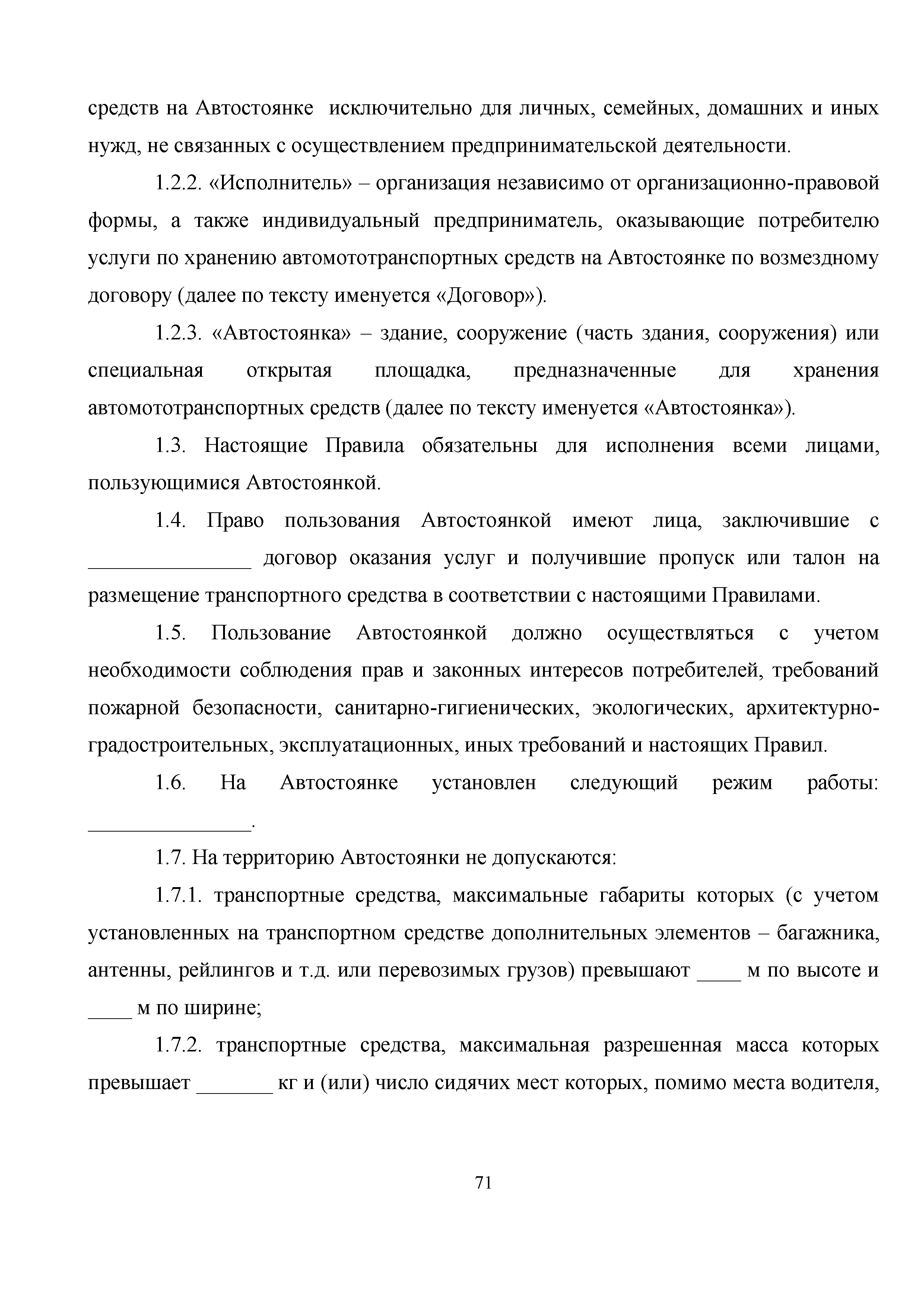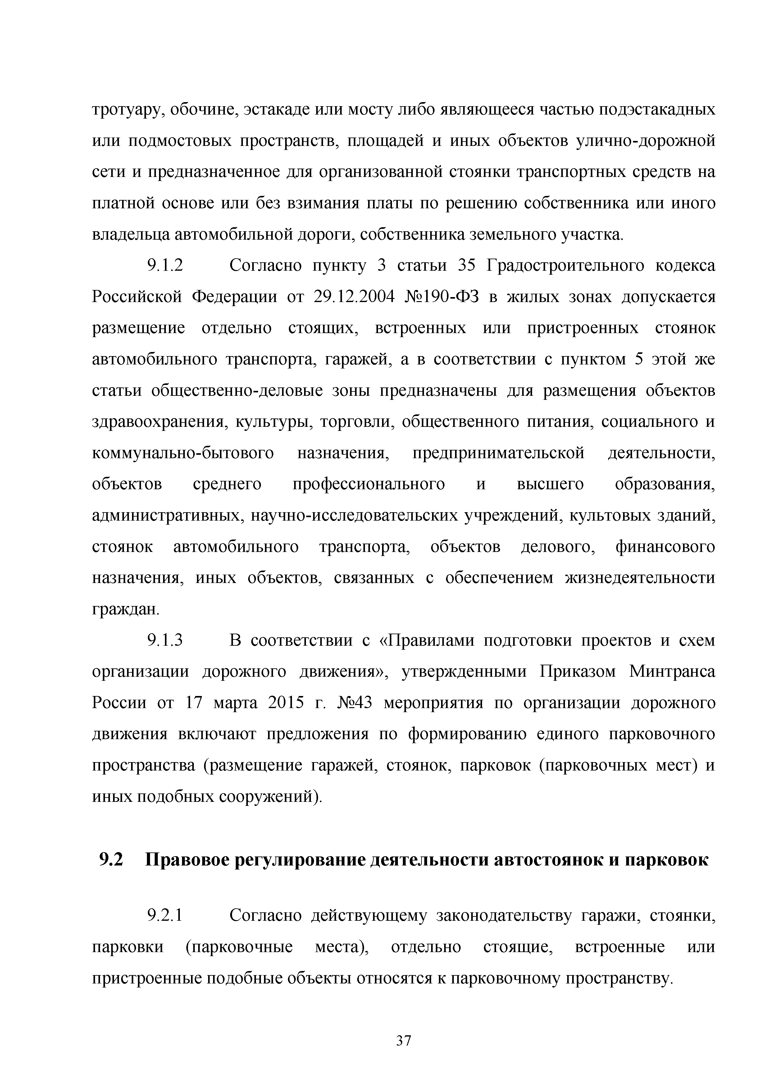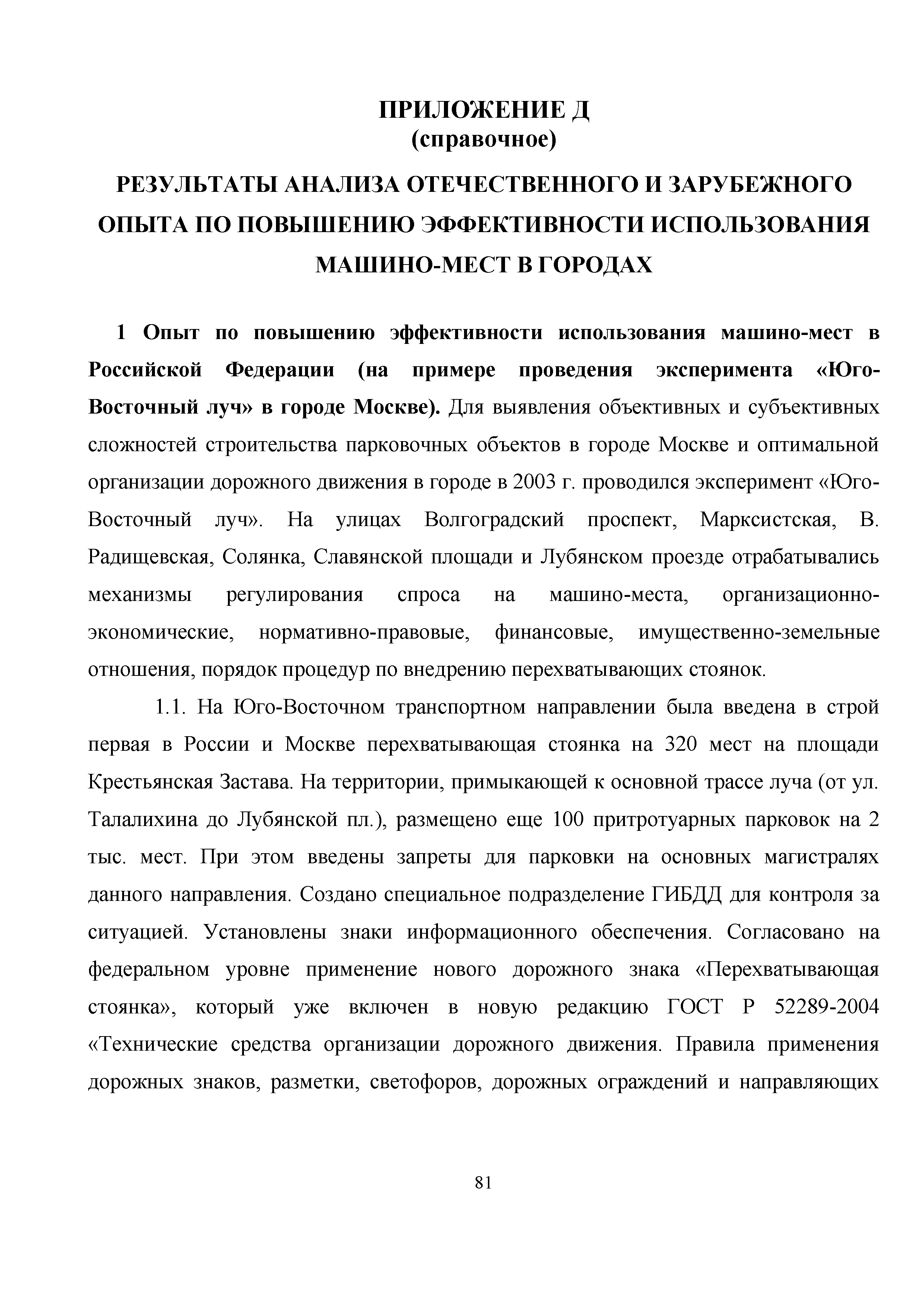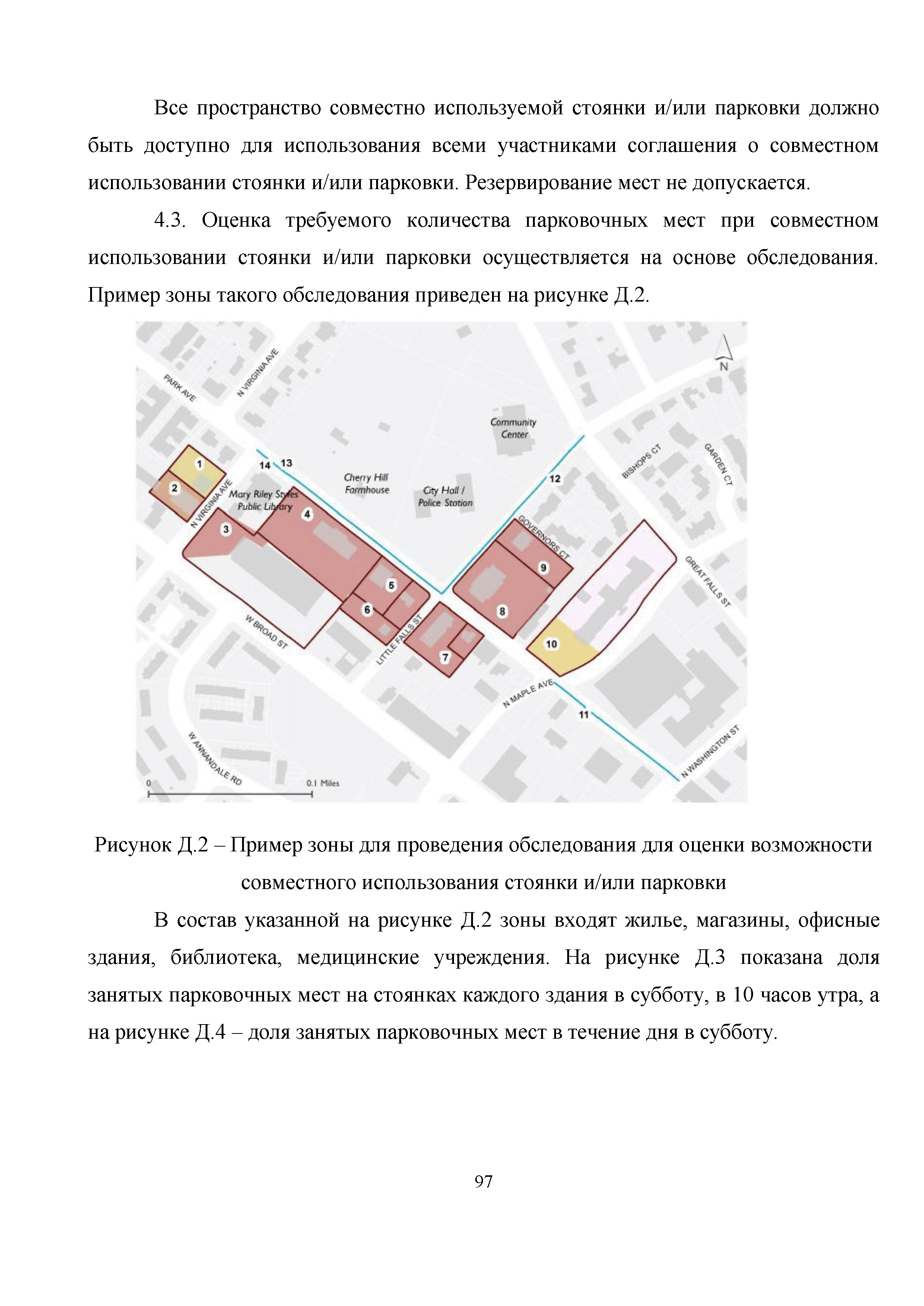 | Оглавление: | 1. Введение 2. Область применения 3. Нормативные ссылки 4. Термины и определения 5. Общие положения 6. Классификация, функциональные характеристики, основные параметры совместного использования парковочных мест, пустующих в течение значительной части суток, для объектов капитального строительства различного функционального назначения 6.1. Организация хранения легковых автомобилей 6.2. Организация паркирования легковых автомобилей 6.3. Типы гаражно-стояночных объектов 6.4. Повышение эффективности использования машино-мест. Классификация ситуаций 7. Методика расчета минимально необходимого количества парковочных мест для расположенных на смежных земельных участках объектов капитального строительства различного функционального назначения 8. Требования к организации совместного использования парковочных мест 8.1. Эффект экономии машино-мест за счет увеличения оборачиваемости одного машино-места 8.2. Эффект экономии машино-мест за счет совместного пользования гаражно-стояночных объектов (кооперированные стоянки) 8.3. Комплексные решения по организации кооперированных стоянок многофункционального назначения 9. Рекомендации по правовому обеспечению совместного использования парковочных мест для объектов капитального строительства различного функционального назначения 9.1. Правовые положения, регулирующие понятие автостоянок, парковок 9.2. Правовое регулирование деятельности автостоянок и парковок 9.3. Рекомендации по правовому обеспечению совместного использования парковочных мест для объектов капитального строительства функционального назначения Приложение А. Пример расчета Приложение Б. Примеры подготовленных материалов натурных обследований аналогичных объектов для расчета требуемого количества машино-мест Приложение В. Договор оказания услуг по хранению автомототранспортного средства на автостоянке Приложение Г. Договор аренды парковочного места Приложение Д (справочное). Результаты анализа отечественного и зарубежного опыта по повышению эффективности использования машино-мест в городах Список используемой литературы |