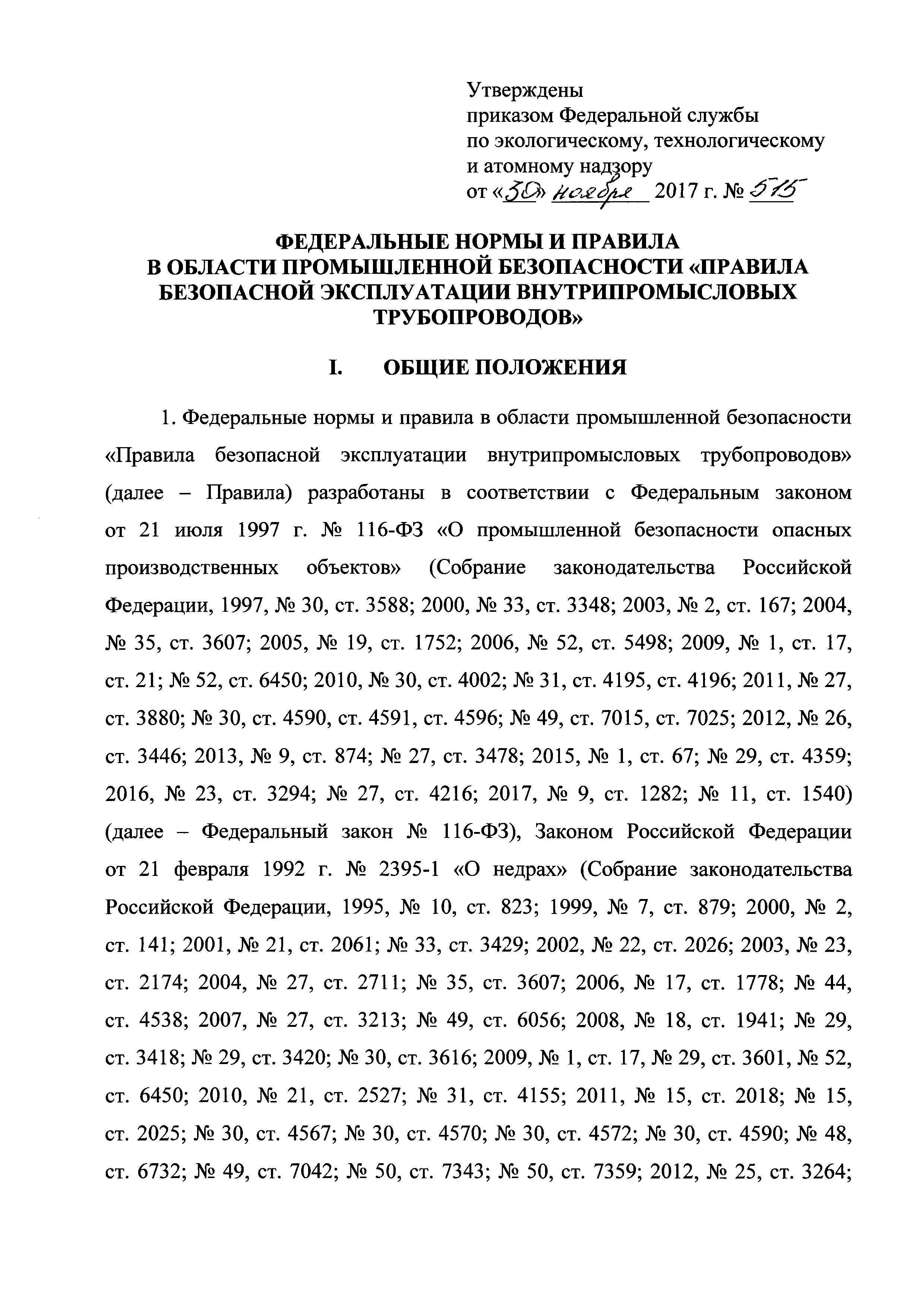 | Название рус.: | Федеральные нормы и правила в области промышленной безопасности "Правила безопасной эксплуатации внутрипромысловых трубопроводов" |
