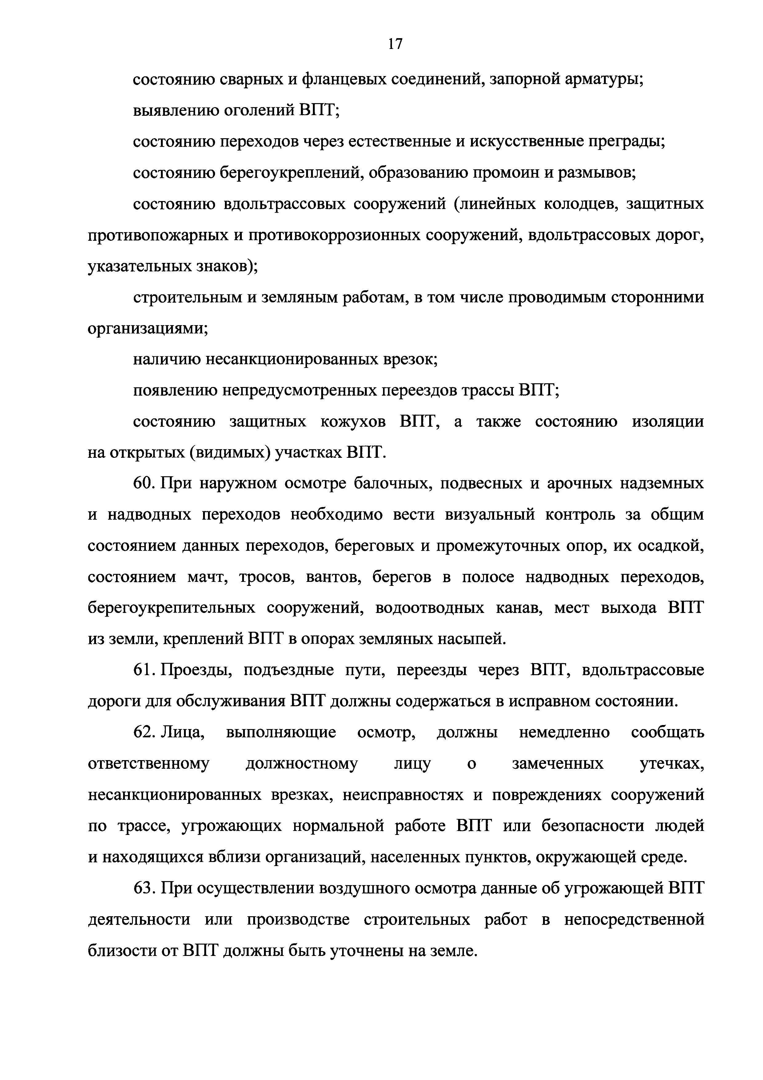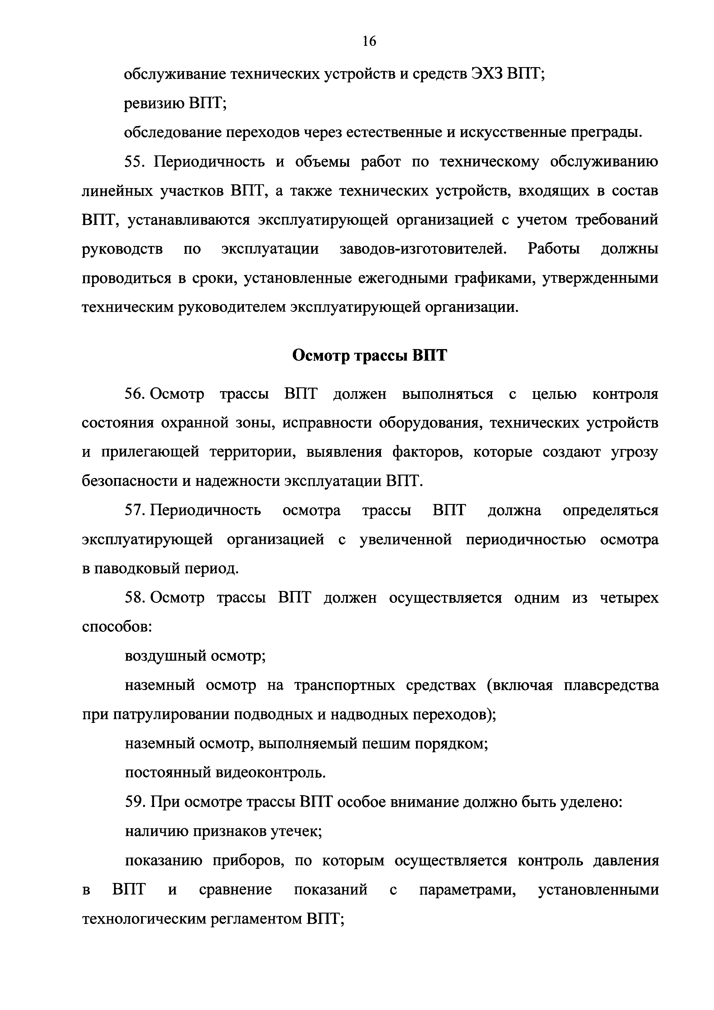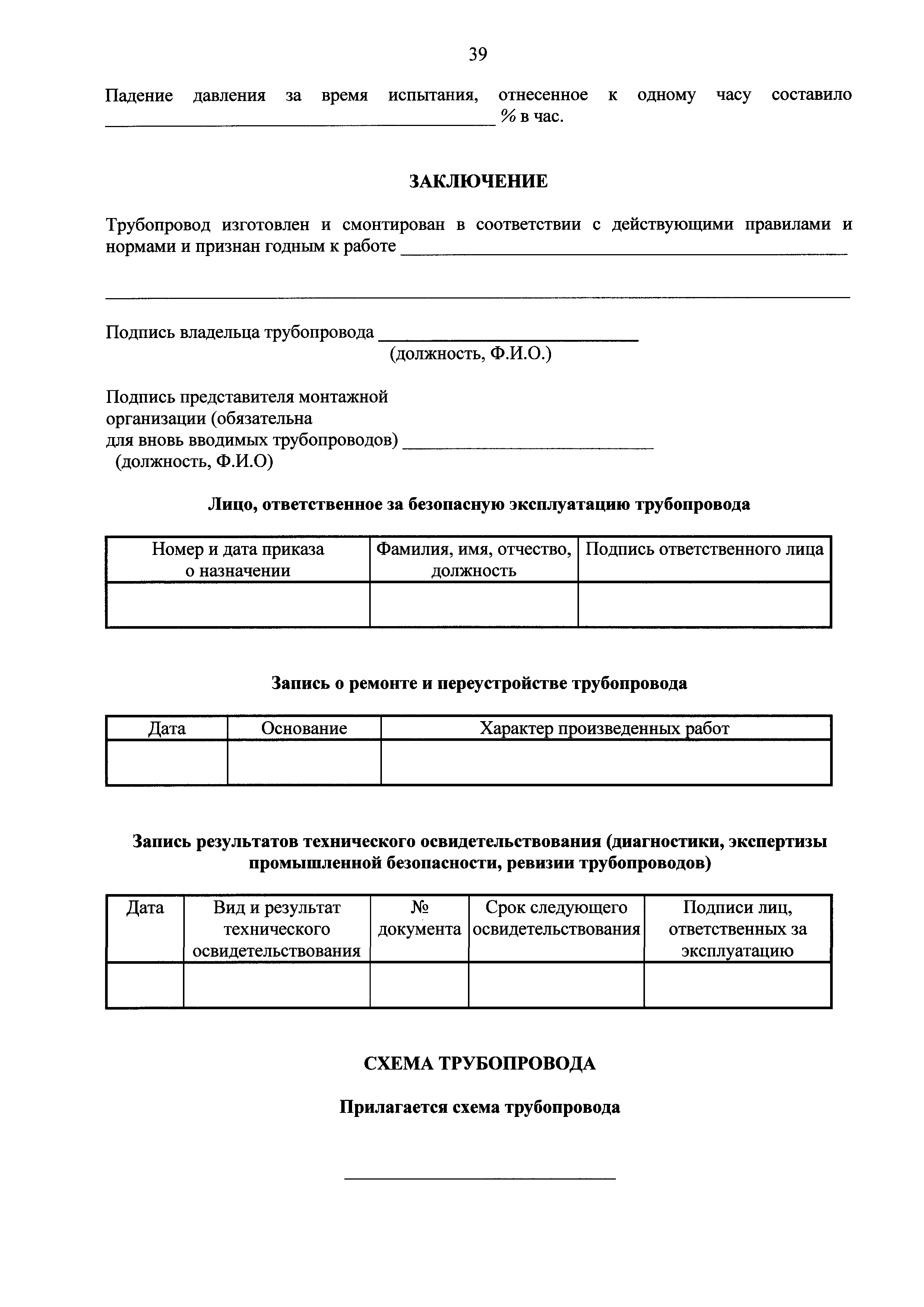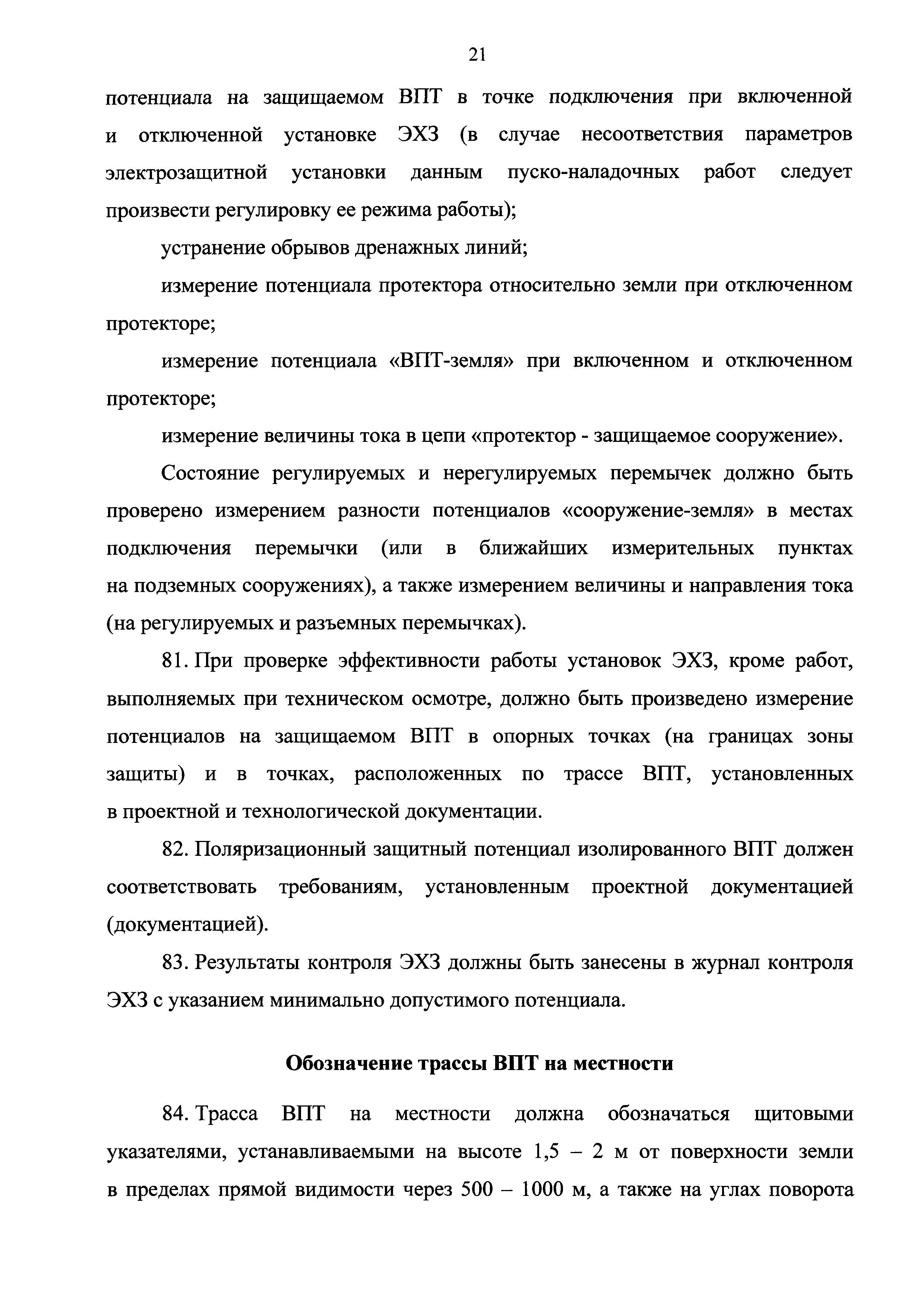| Оглавление: | I. Общие положения II. Общие требования к разработке технологического процесса III. Требования при проектировании IV. Требования при строительстве, реконструкции, техническом перевооружении и капитальном ремонте V. Требования при вводе в эксплуатацию VI. Требования при эксплуатации Паспорт и технологический регламент на эксплуатацию внутрипромыслового водопровода Техническое обслуживание внутрипромыслового водопровода Осмотр трассы внутрипромыслового водопровода Обслуживание технических устройств внутрипромыслового водопровода Обслуживание средств электрохимической защиты Обозначение трассы внутрипромыслового водопровода на местности Ревизия Обследование переходов через естественные и искусственные преграды Обработка труб и деталей внутрипромыслового водопровода Периодические испытания внутрипромыслового водопровода Очистка внутрипромыслового водопровода Ремонт внутрипромыслового водопровода VI. Требования к выводу из эксплуатации, консервации и ликвидации внутрипромыслового водопровода VII. Перечень документации по эксплуатации Приложение № 1 Паспорт внутрипромыслового водопровода Приложение № 2 Расчет критической толщины стенки и деталей внутрипромыслового водопровода Приложение № 3 |