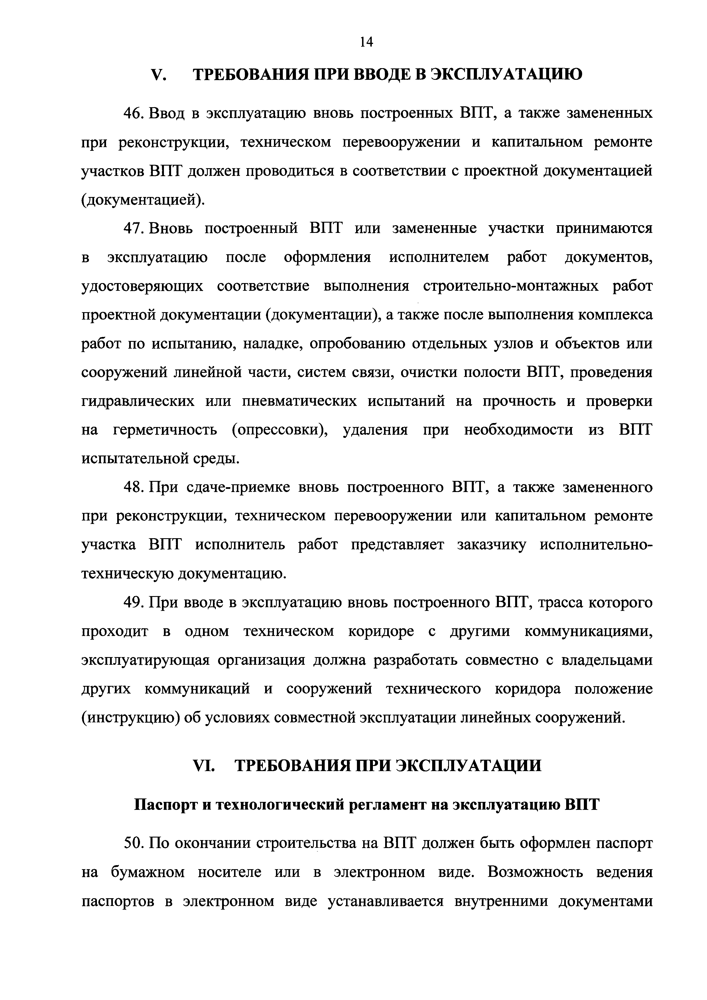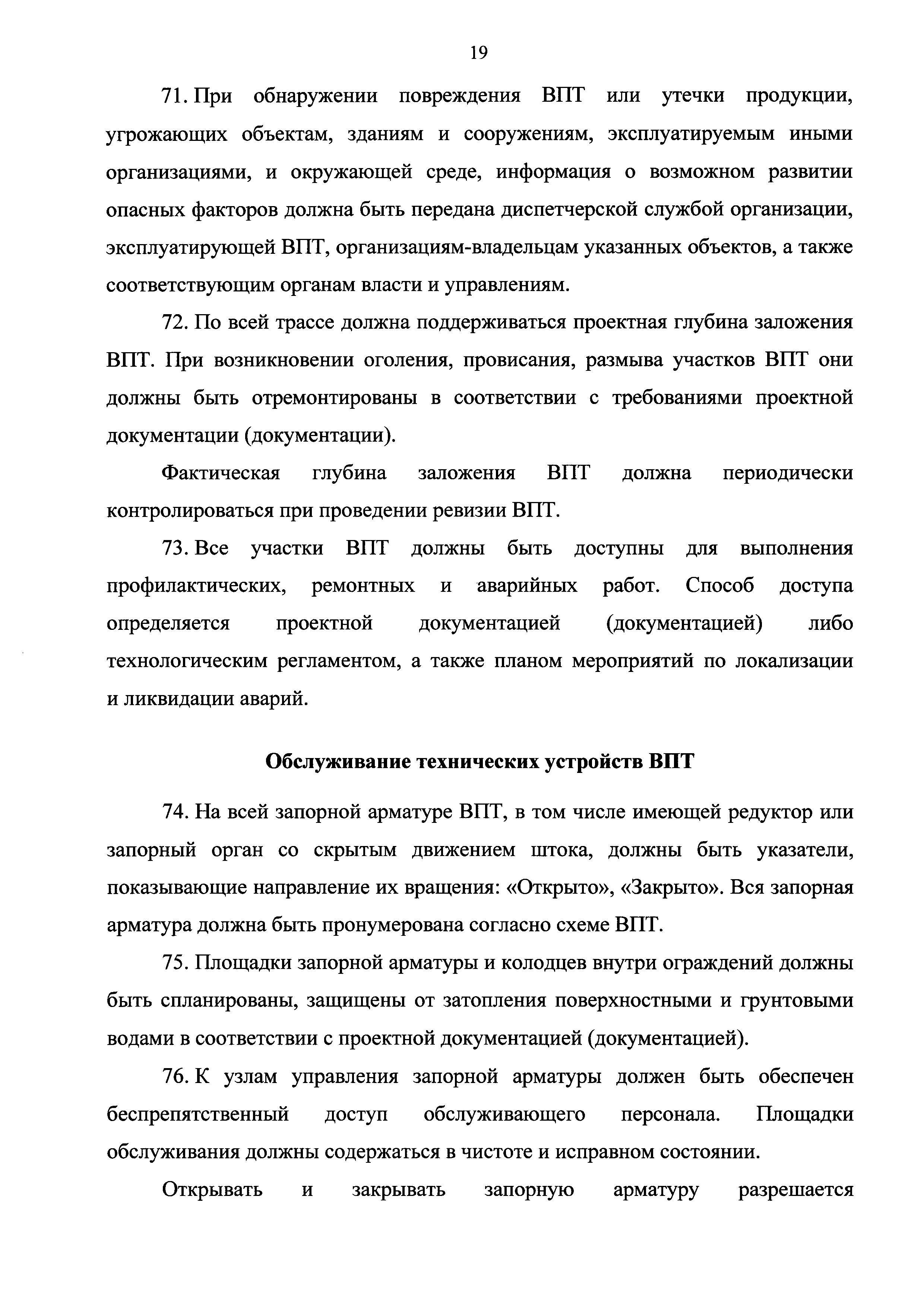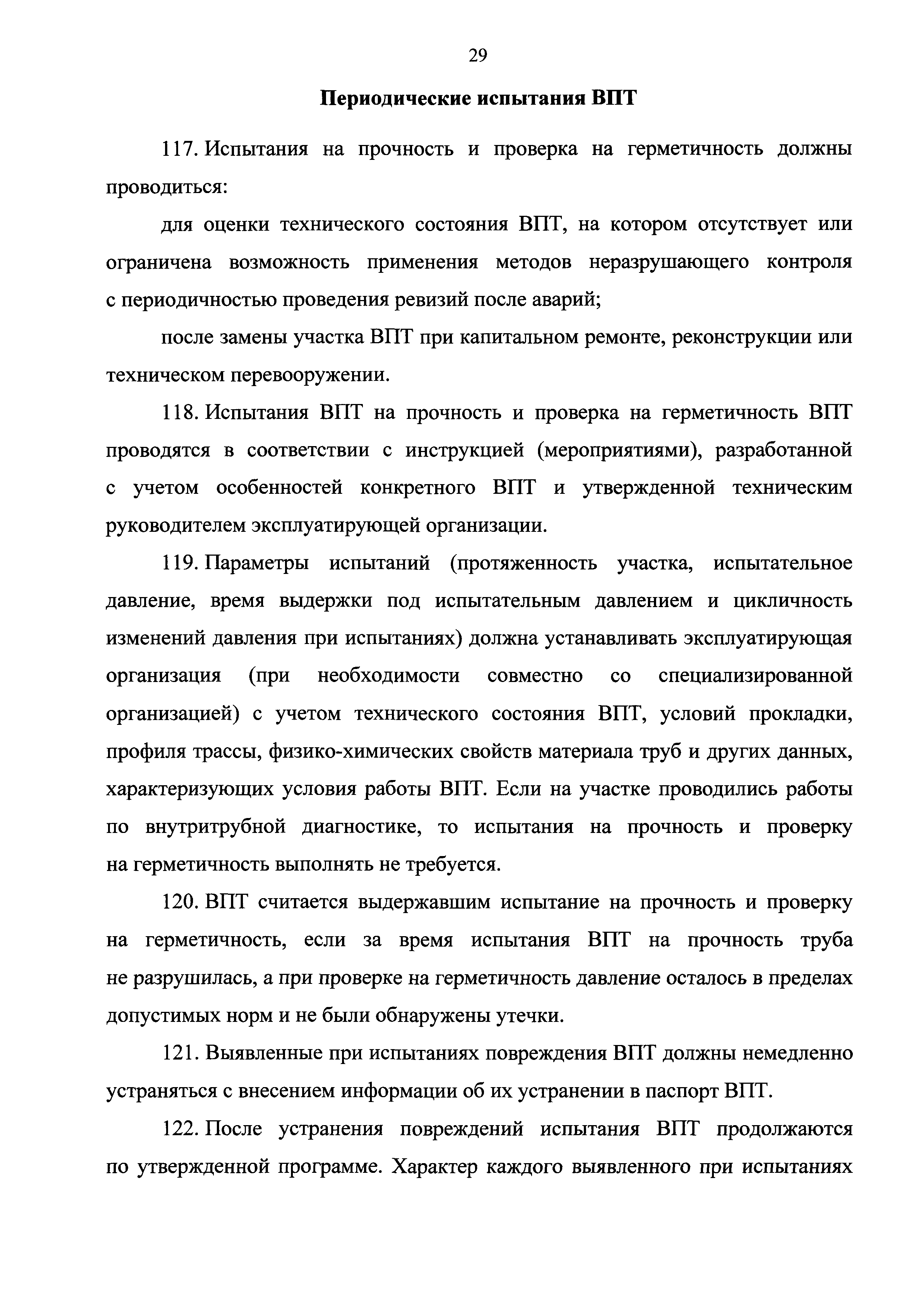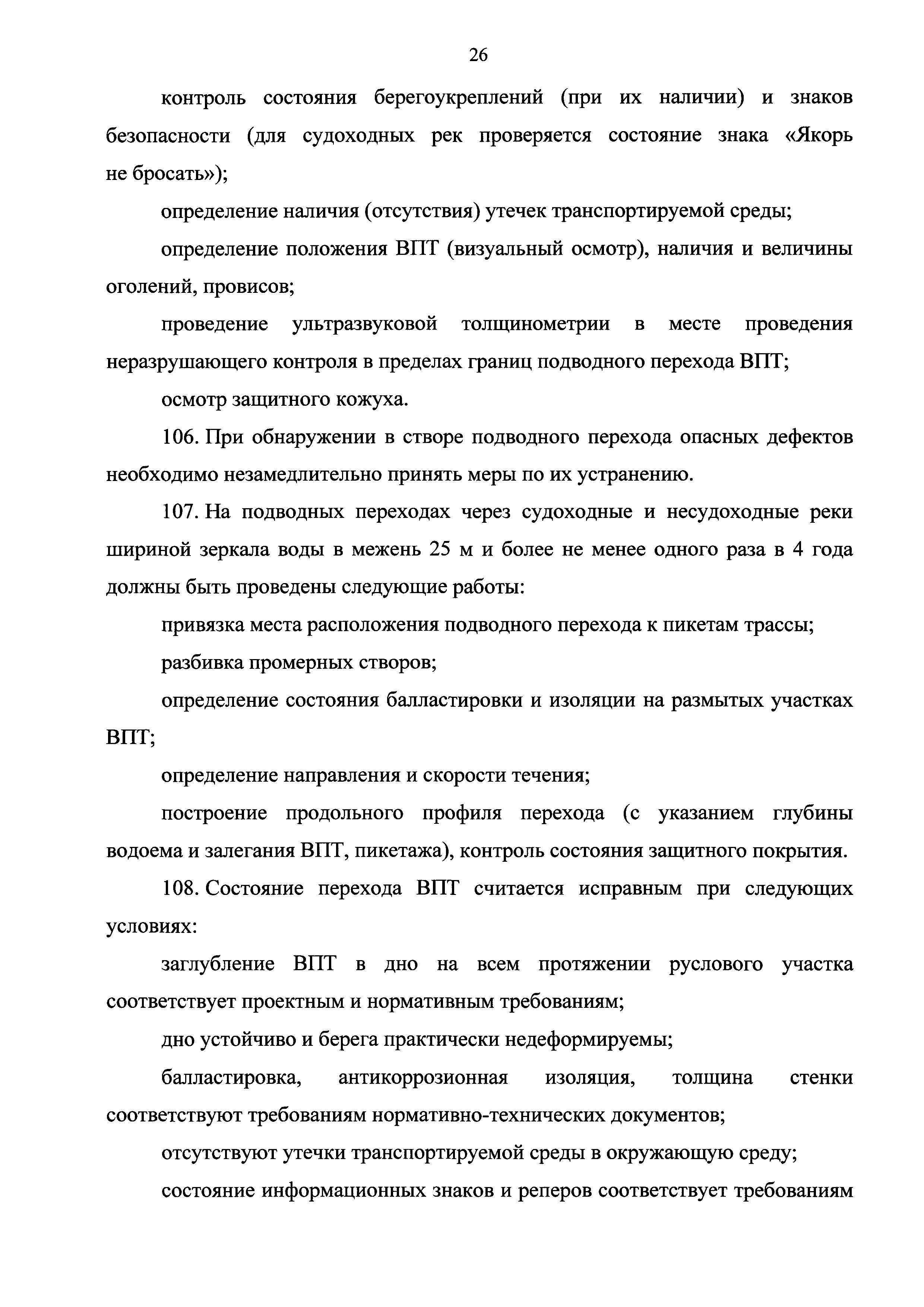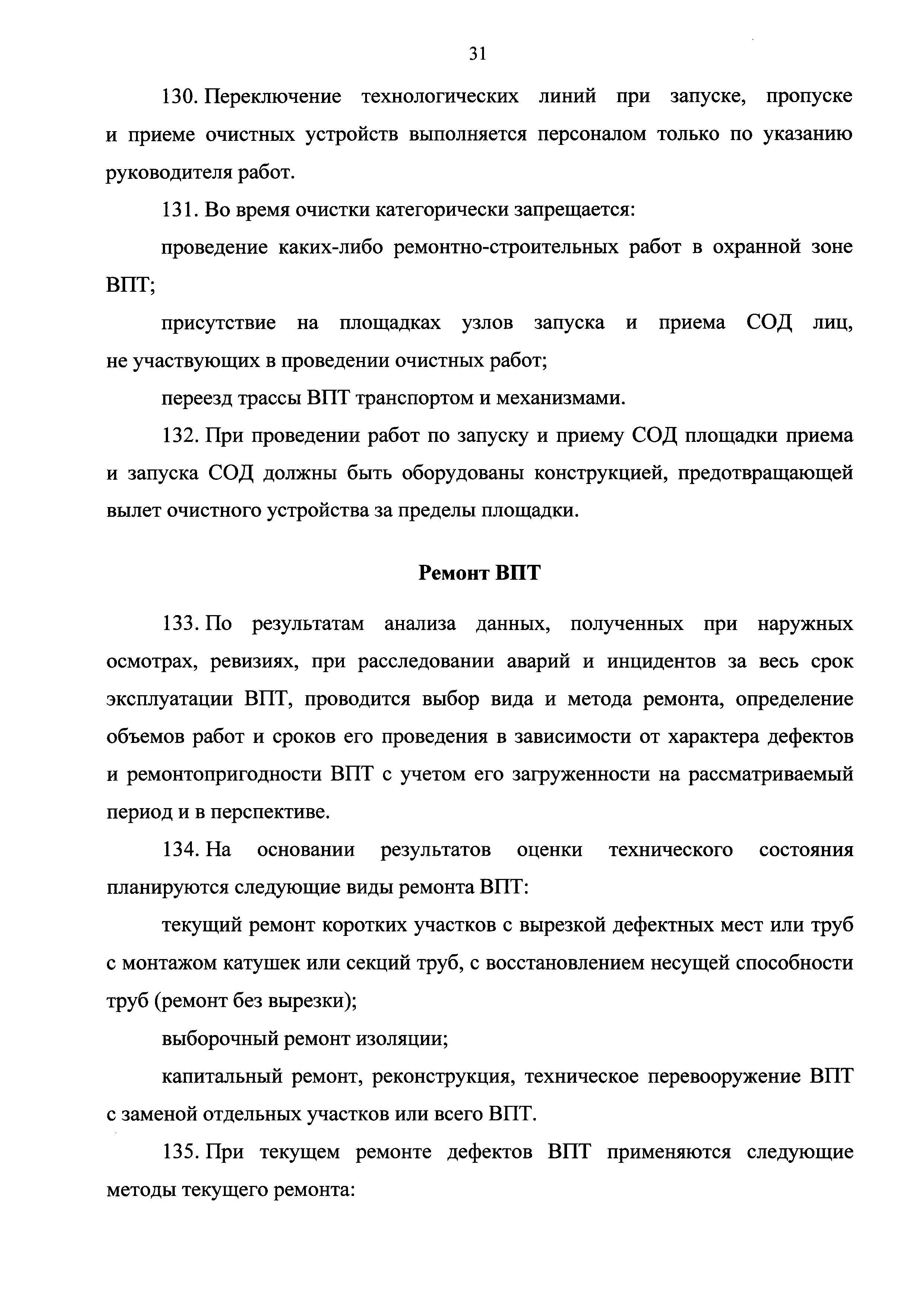 | Оглавление: | I. Общие положения II. Общие требования к разработке технологического процесса III. Требования при проектировании IV. Требования при строительстве, реконструкции, техническом перевооружении и капитальном ремонте V. Требования при вводе в эксплуатацию VI. Требования при эксплуатации Паспорт и технологический регламент на эксплуатацию внутрипромыслового водопровода Техническое обслуживание внутрипромыслового водопровода Осмотр трассы внутрипромыслового водопровода Обслуживание технических устройств внутрипромыслового водопровода Обслуживание средств электрохимической защиты Обозначение трассы внутрипромыслового водопровода на местности Ревизия Обследование переходов через естественные и искусственные преграды Обработка труб и деталей внутрипромыслового водопровода Периодические испытания внутрипромыслового водопровода Очистка внутрипромыслового водопровода Ремонт внутрипромыслового водопровода VI. Требования к выводу из эксплуатации, консервации и ликвидации внутрипромыслового водопровода VII. Перечень документации по эксплуатации Приложение № 1 Паспорт внутрипромыслового водопровода Приложение № 2 Расчет критической толщины стенки и деталей внутрипромыслового водопровода Приложение № 3 |