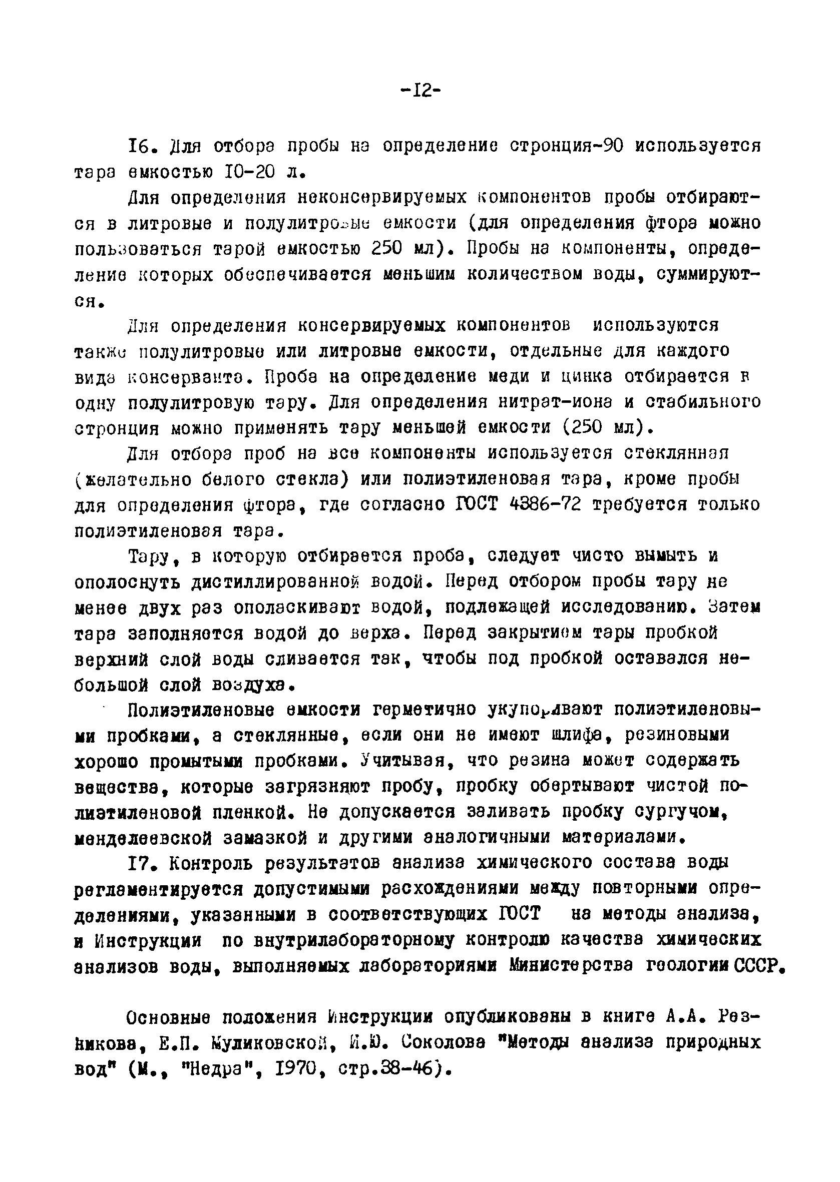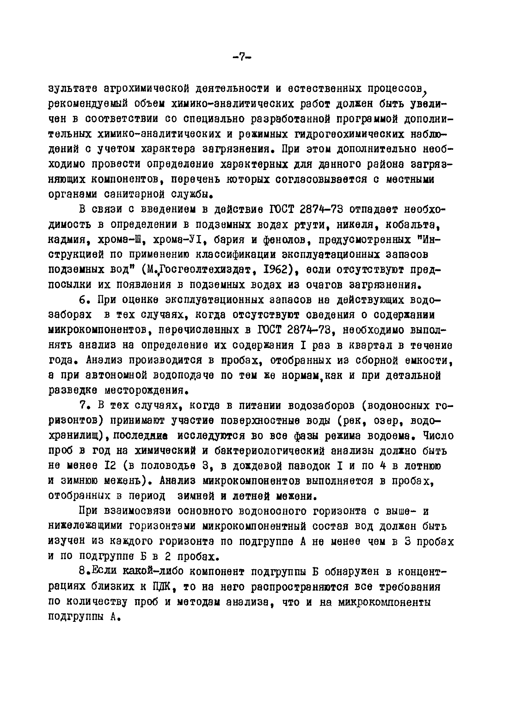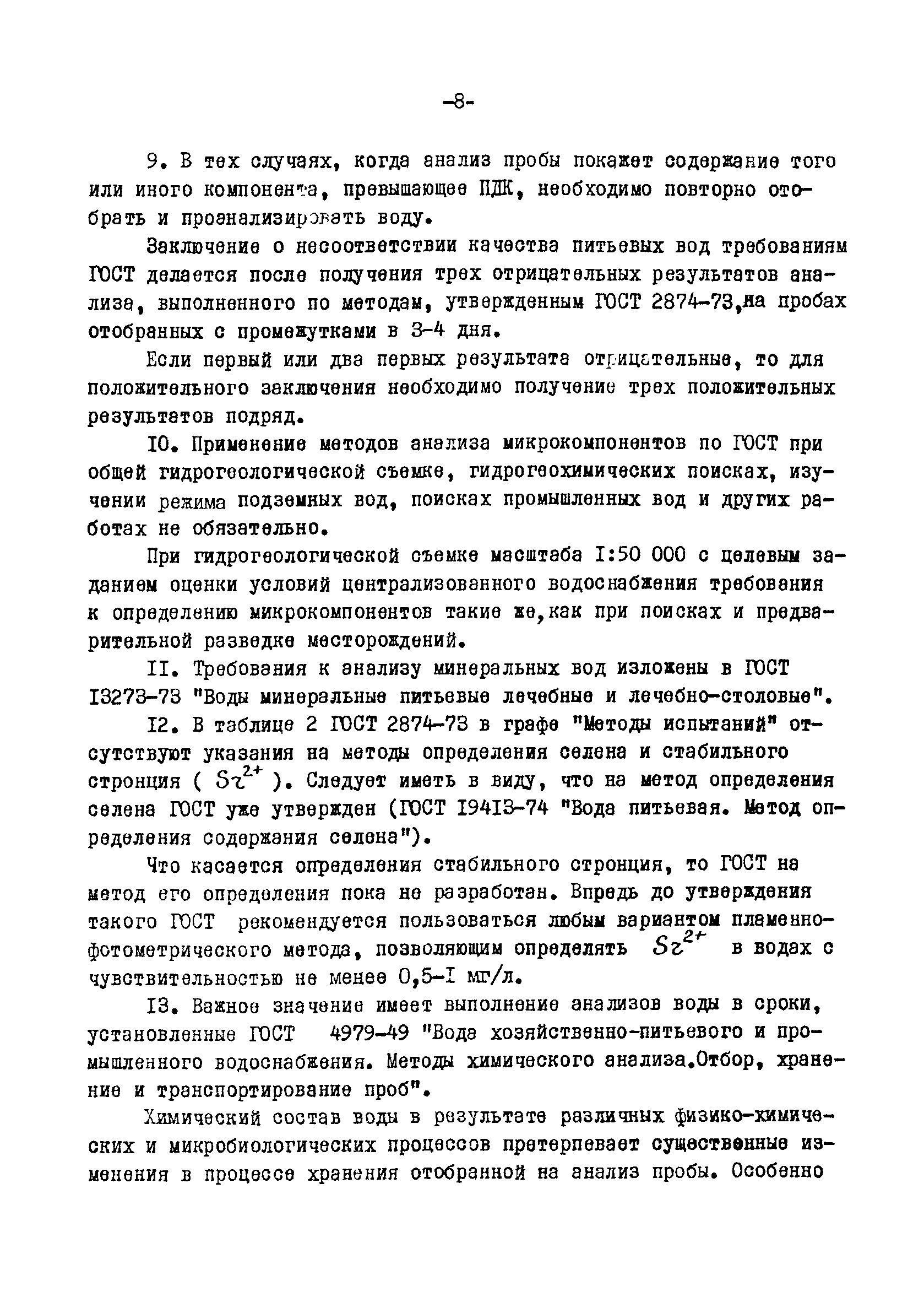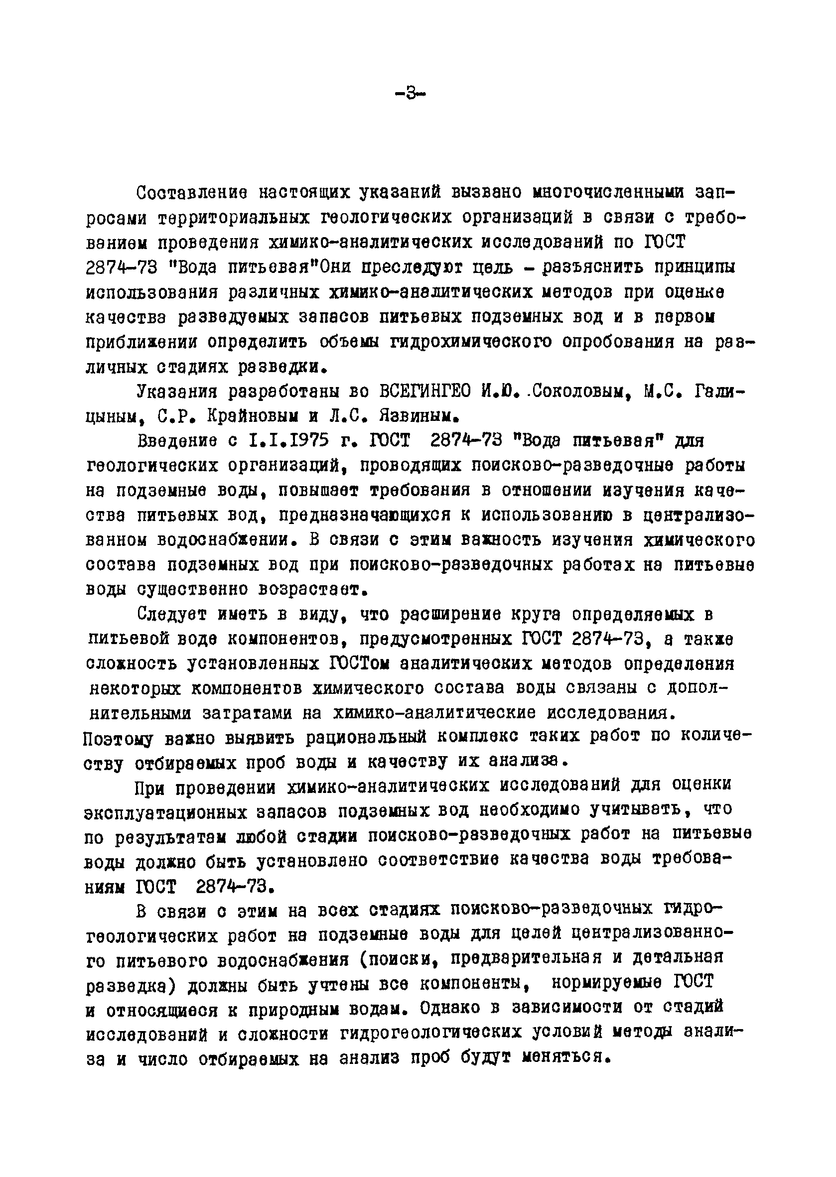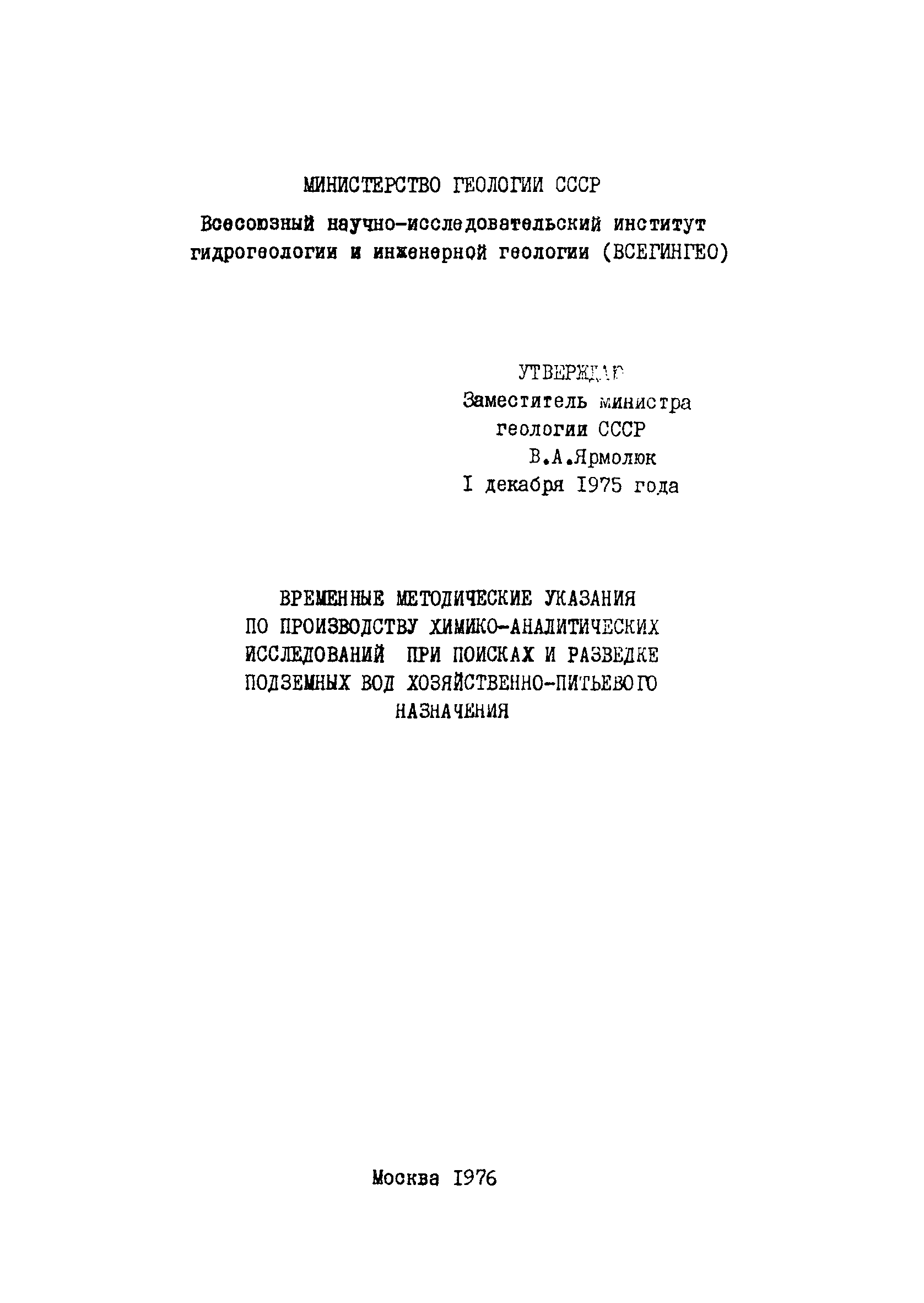 Временные методические указания по производству химико-аналитических исследований при поисках и разведке подземных вод хозяйственно-питьевого назначения