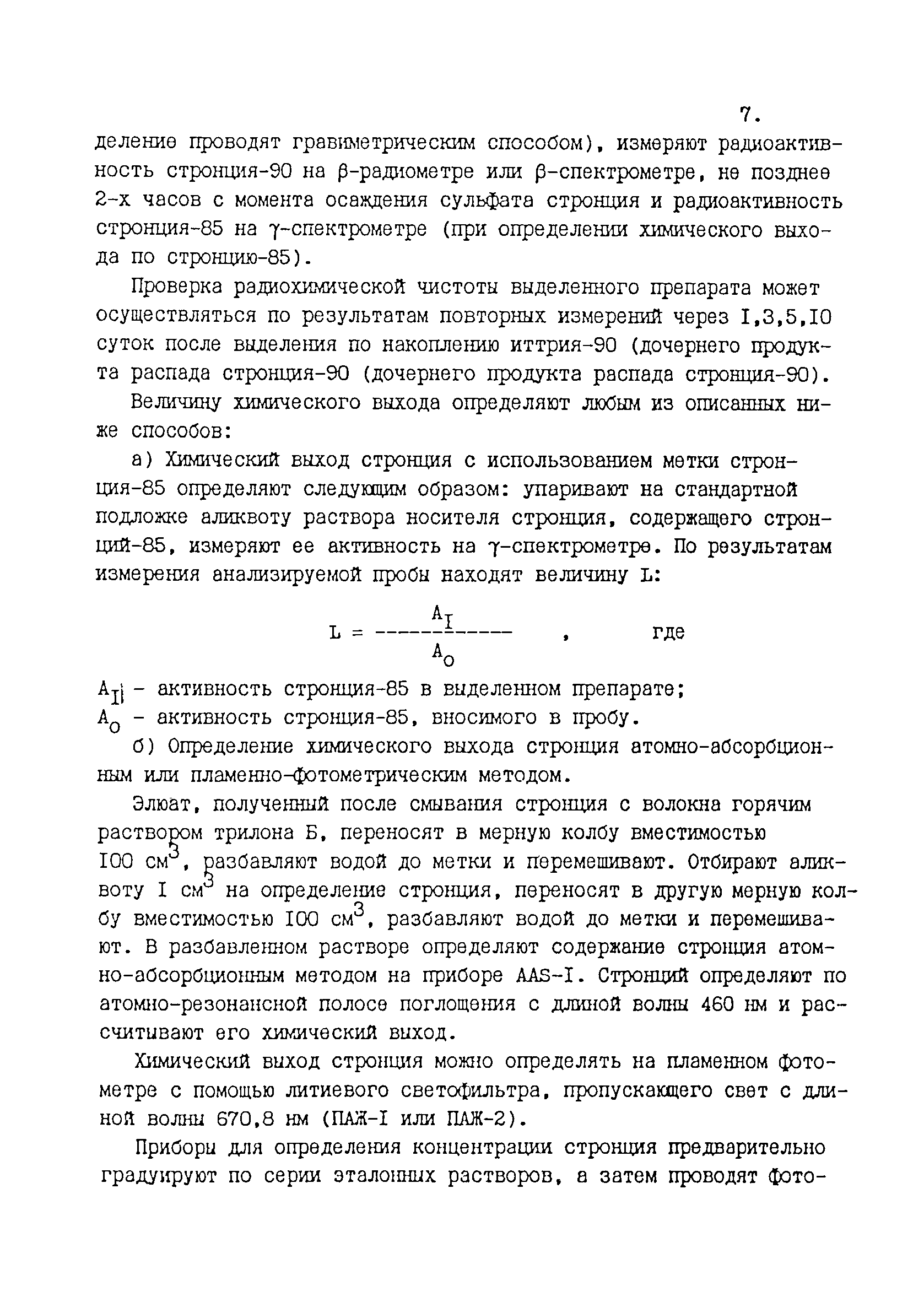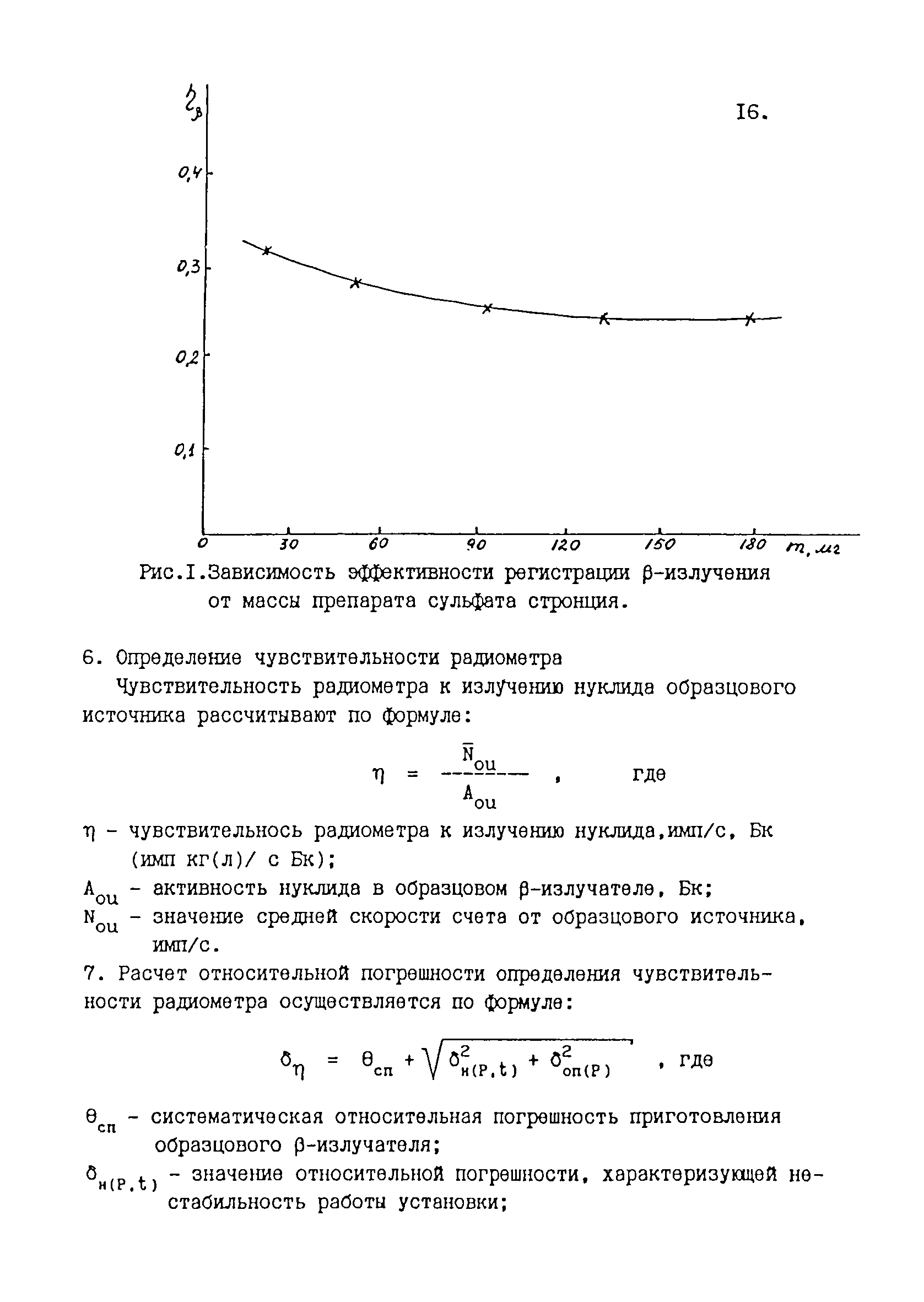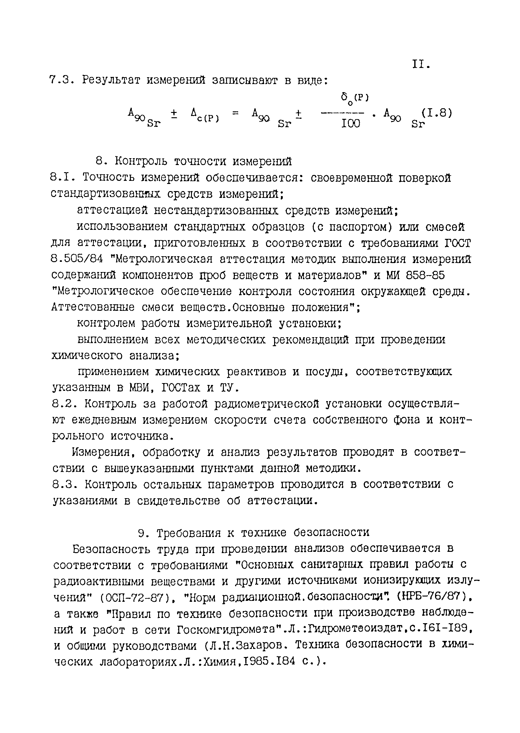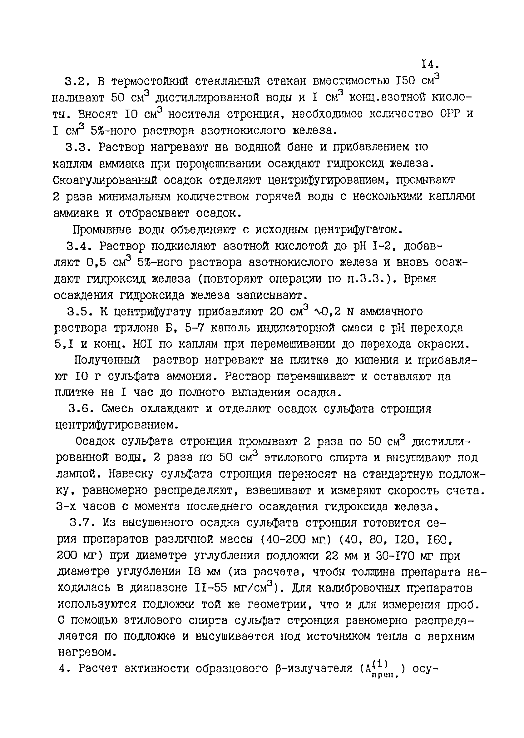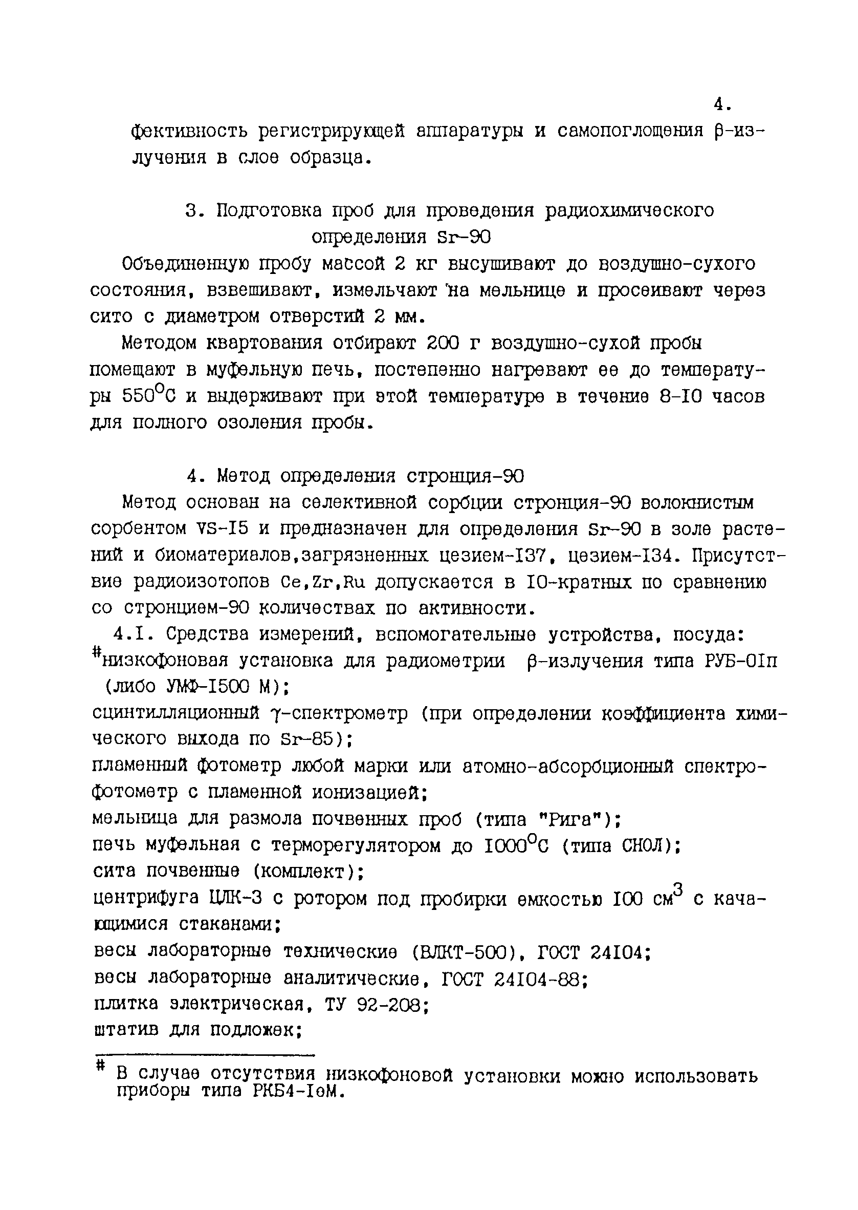 | Оглавление: | 1. Нормы точности определения Sr-90 2. Обработка результатов измерений 3. Подготовка проб для проведения радиохимического определения Sr-90 4. Метод определения стронция-90 в золе растений и биоматериалов 5. Приготовление растворов 6. Подготовка и проведение измерений 7. Определение погрешности результатов измерений 8. Контроль точности измерений 9. Требования к технике безопасности 10. Требования к квалификации оператора Приложение Методика приготовления из образцового радиоактивного раствора (ОРР) образца активности радионуклида Sr90 твердотельном радиометрическом источнике бета-излучения и определение эффективности регистрация его бета-излучения |